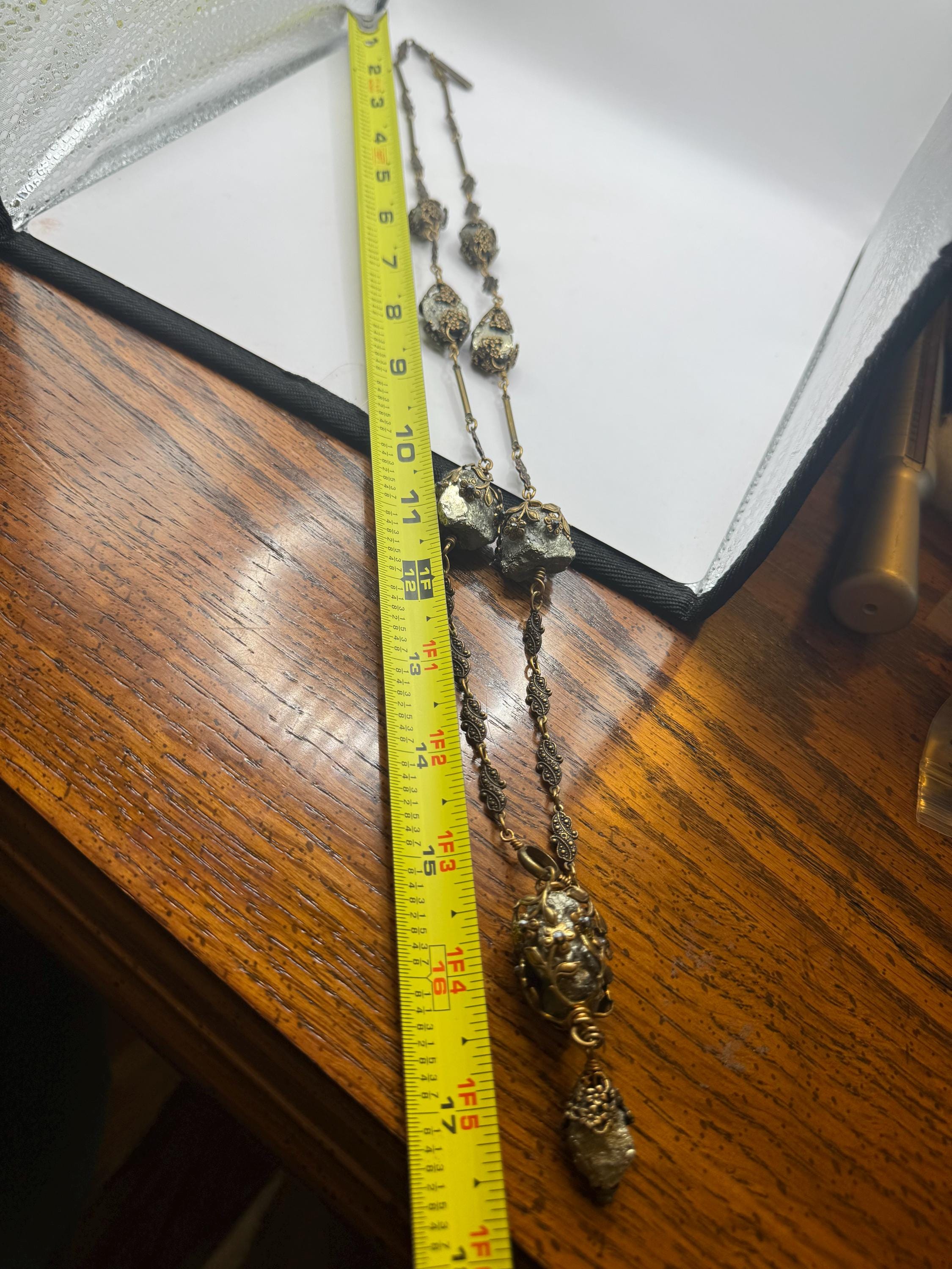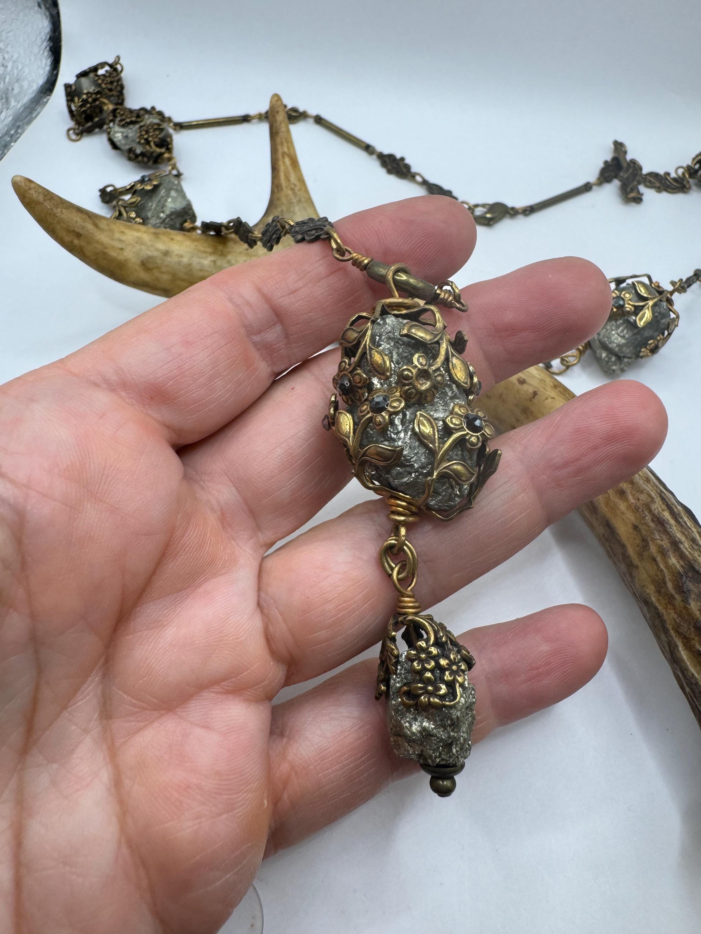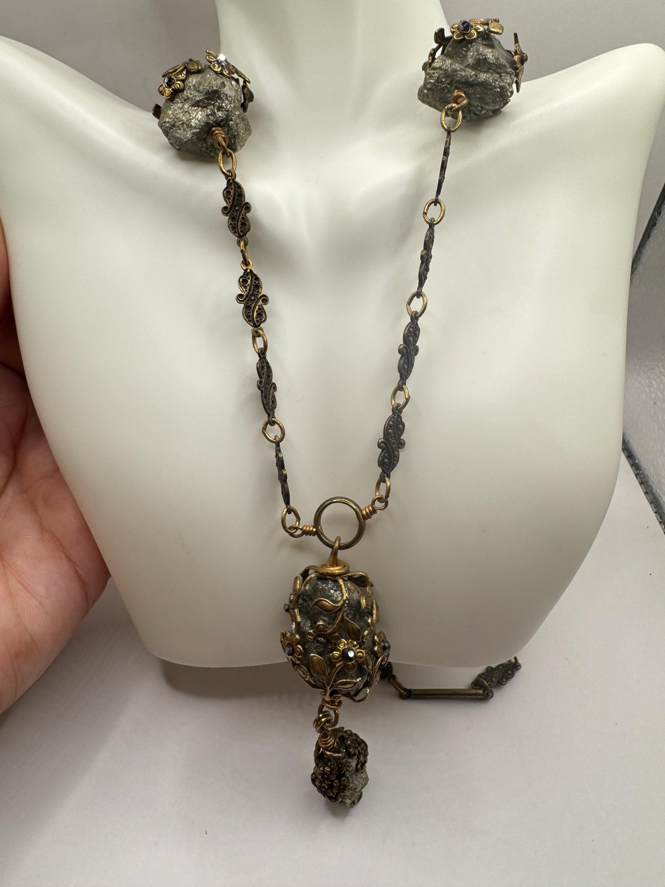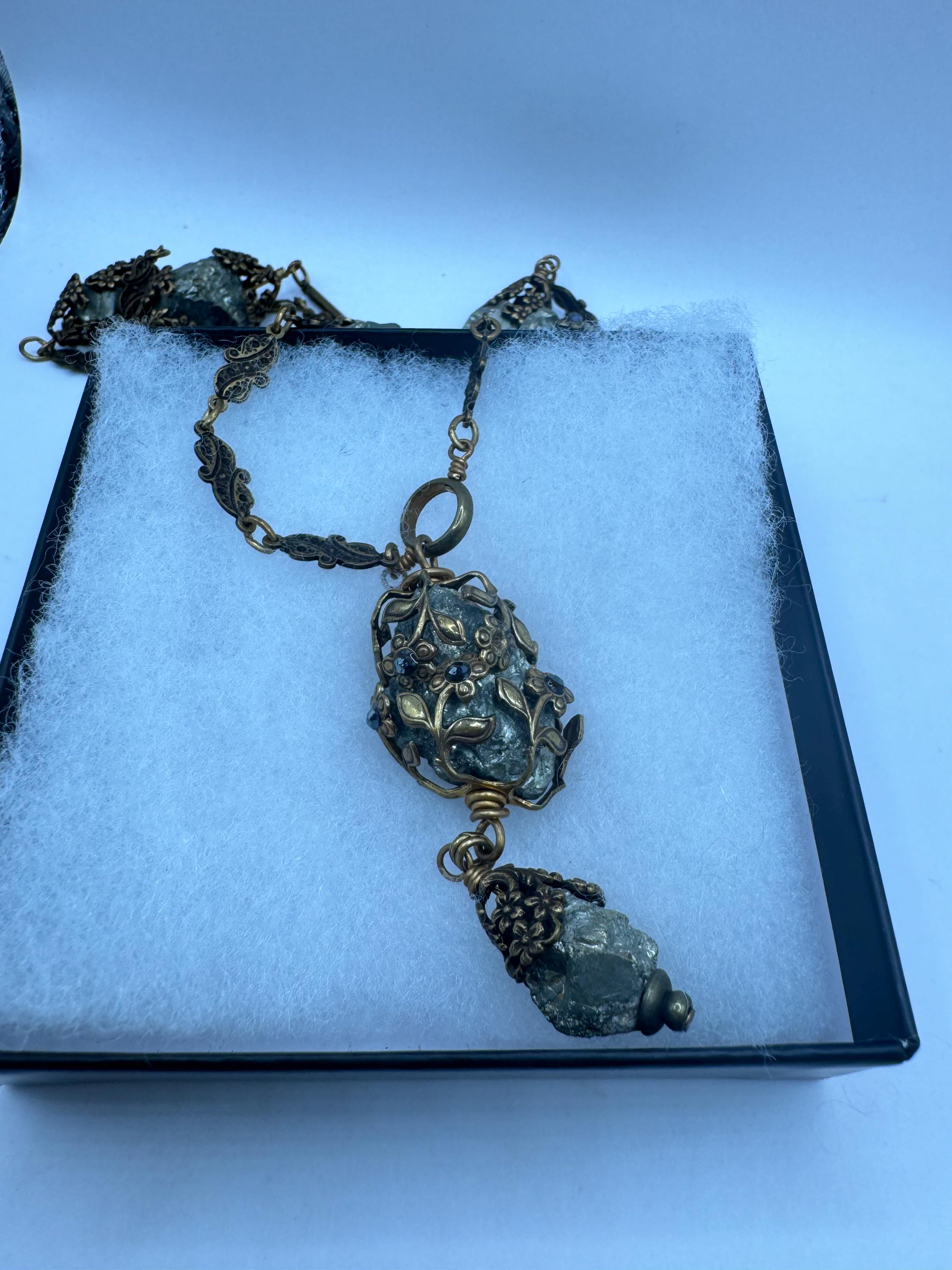 Elegant Vintage Pyrite Crystal Bronze Necklace Gold Pyrite