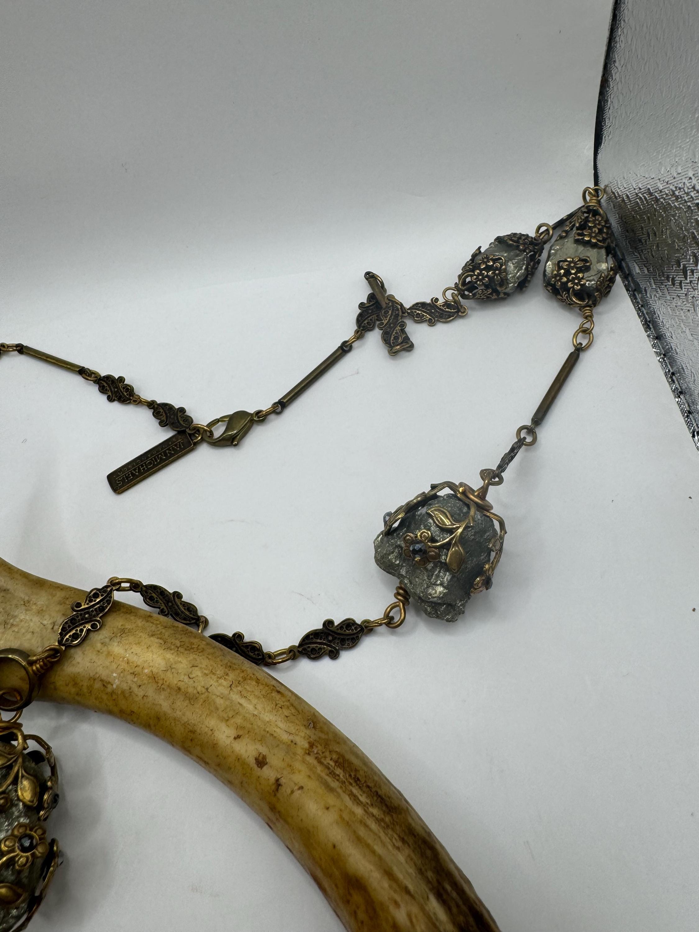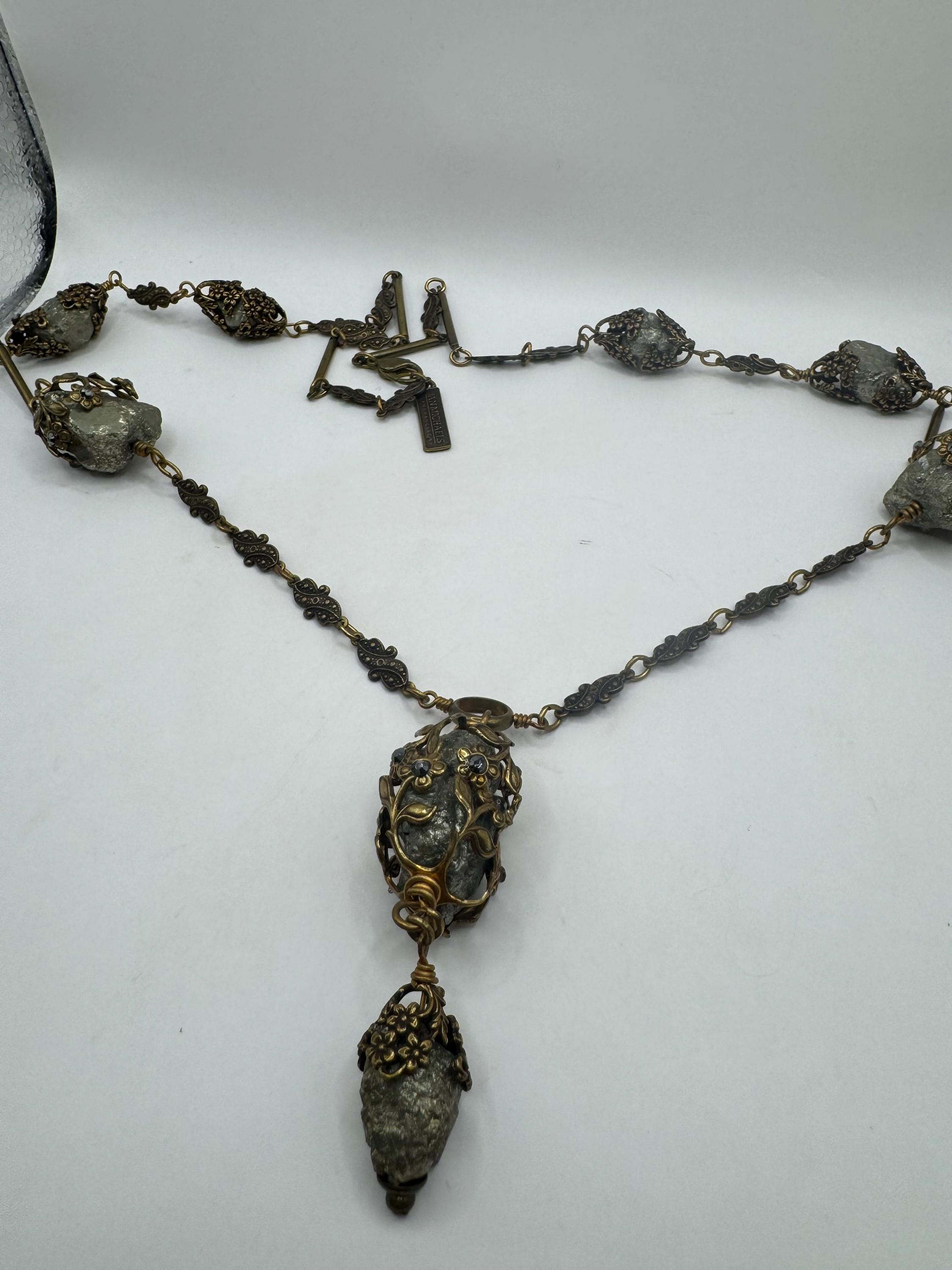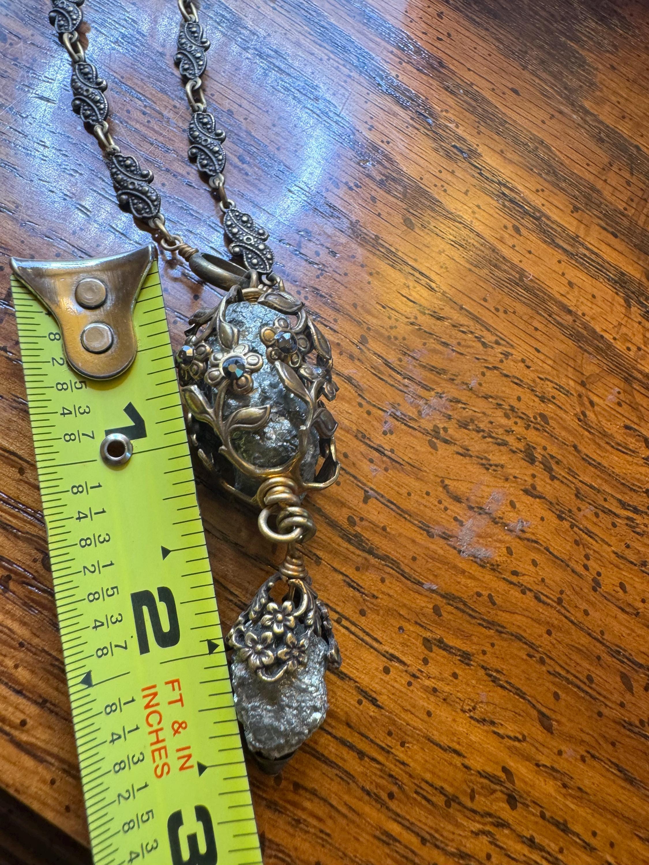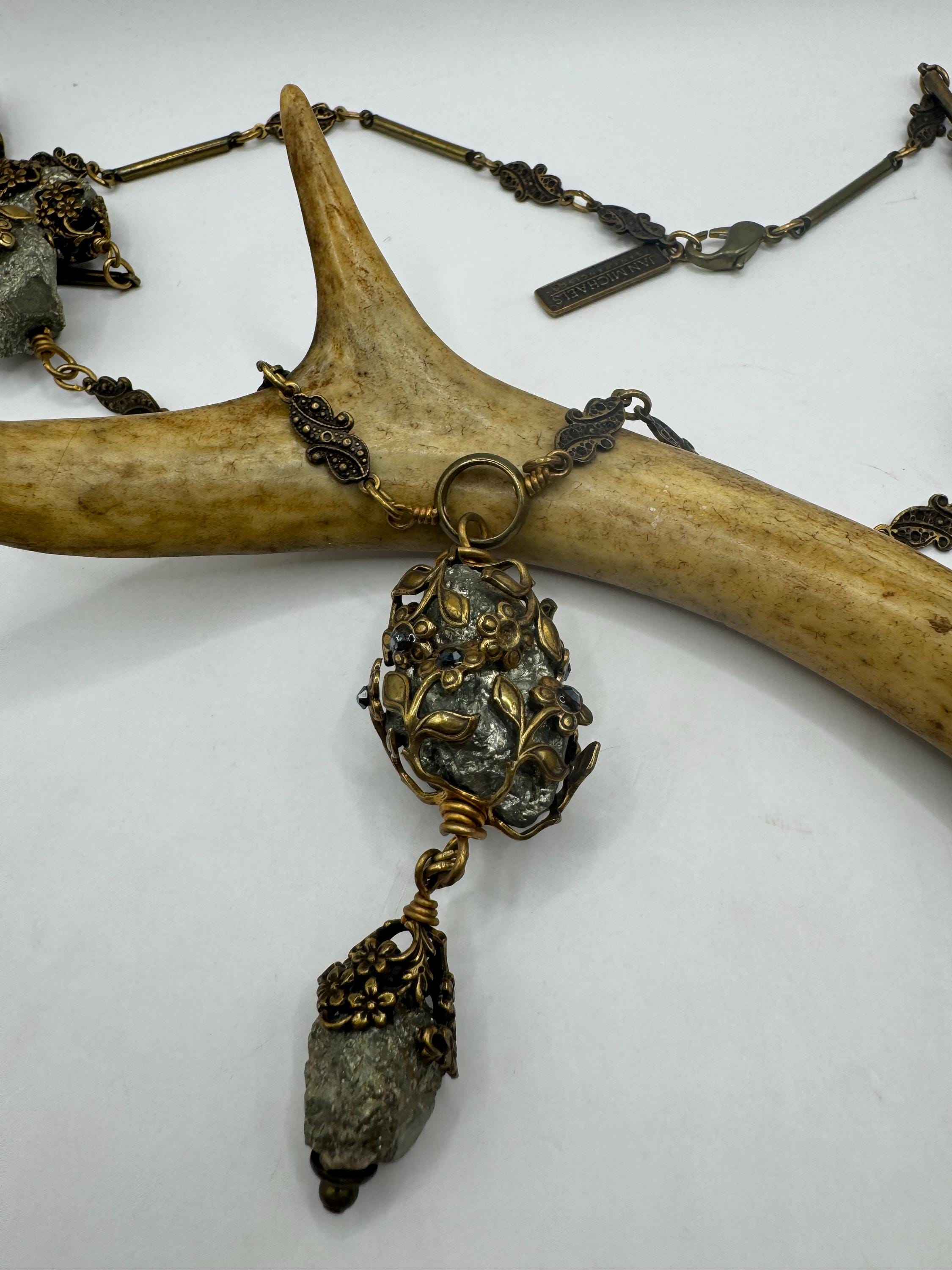 Elegant Vintage Pyrite Crystal Bronze Necklace Gold Pyrite