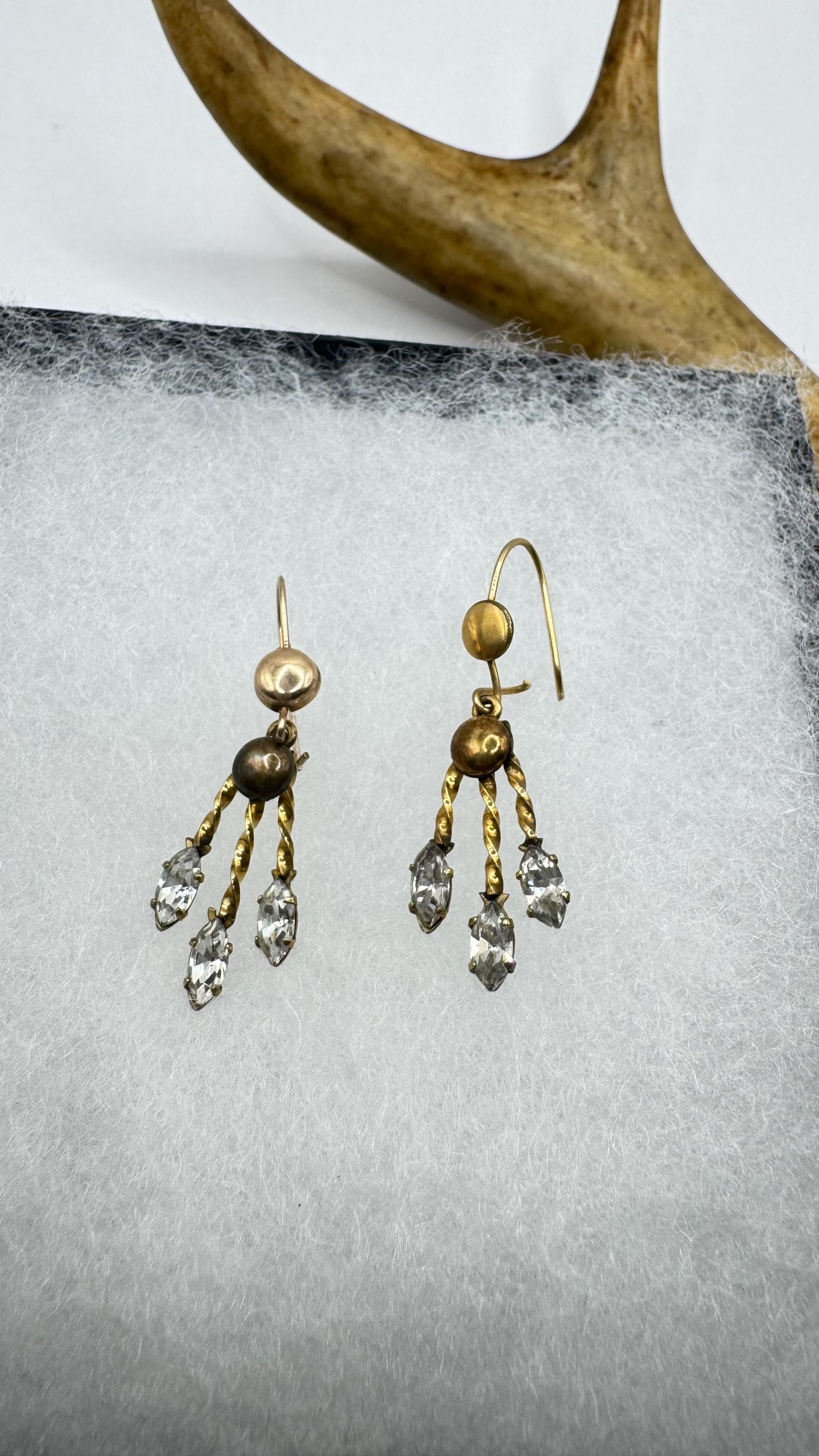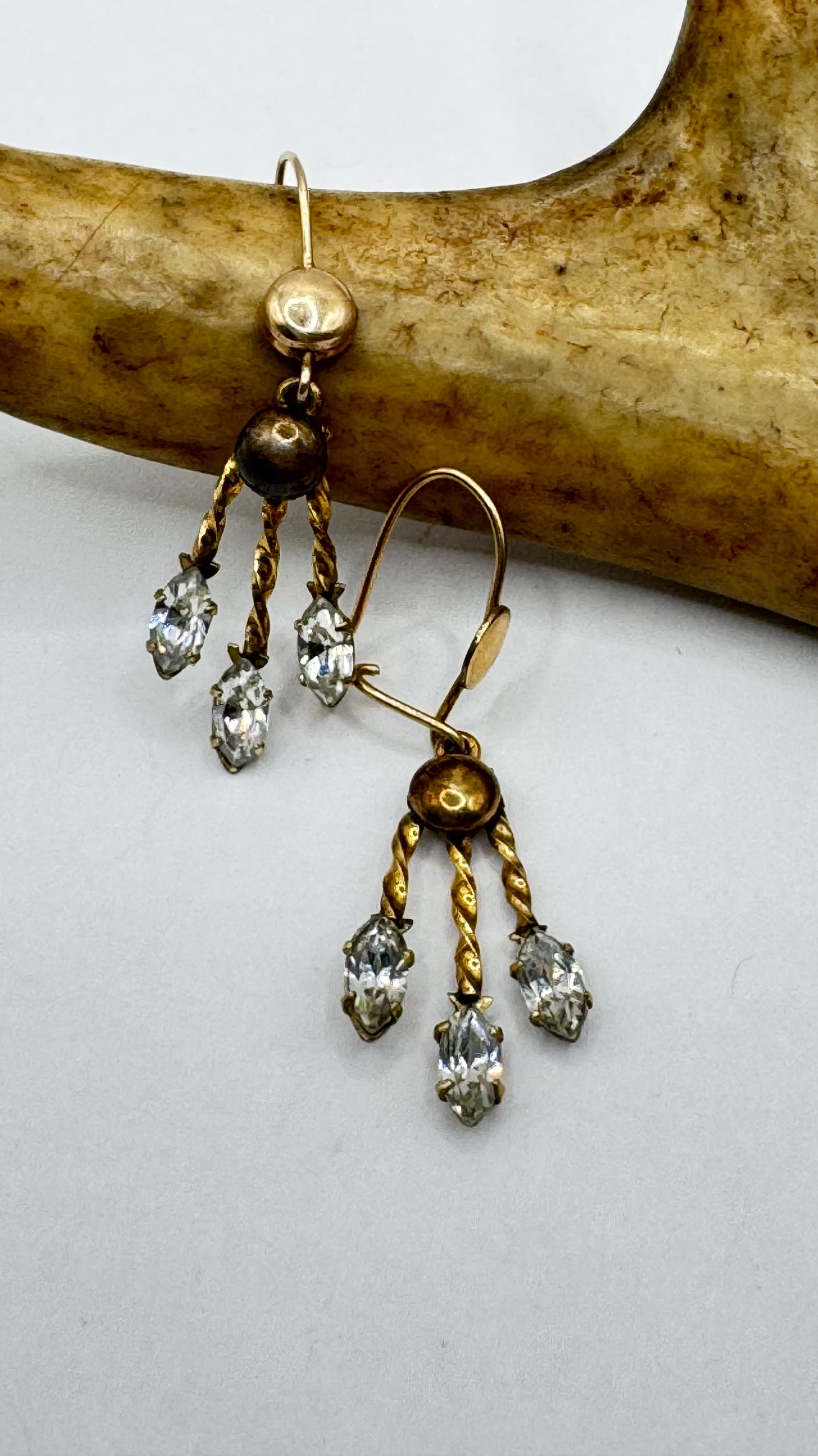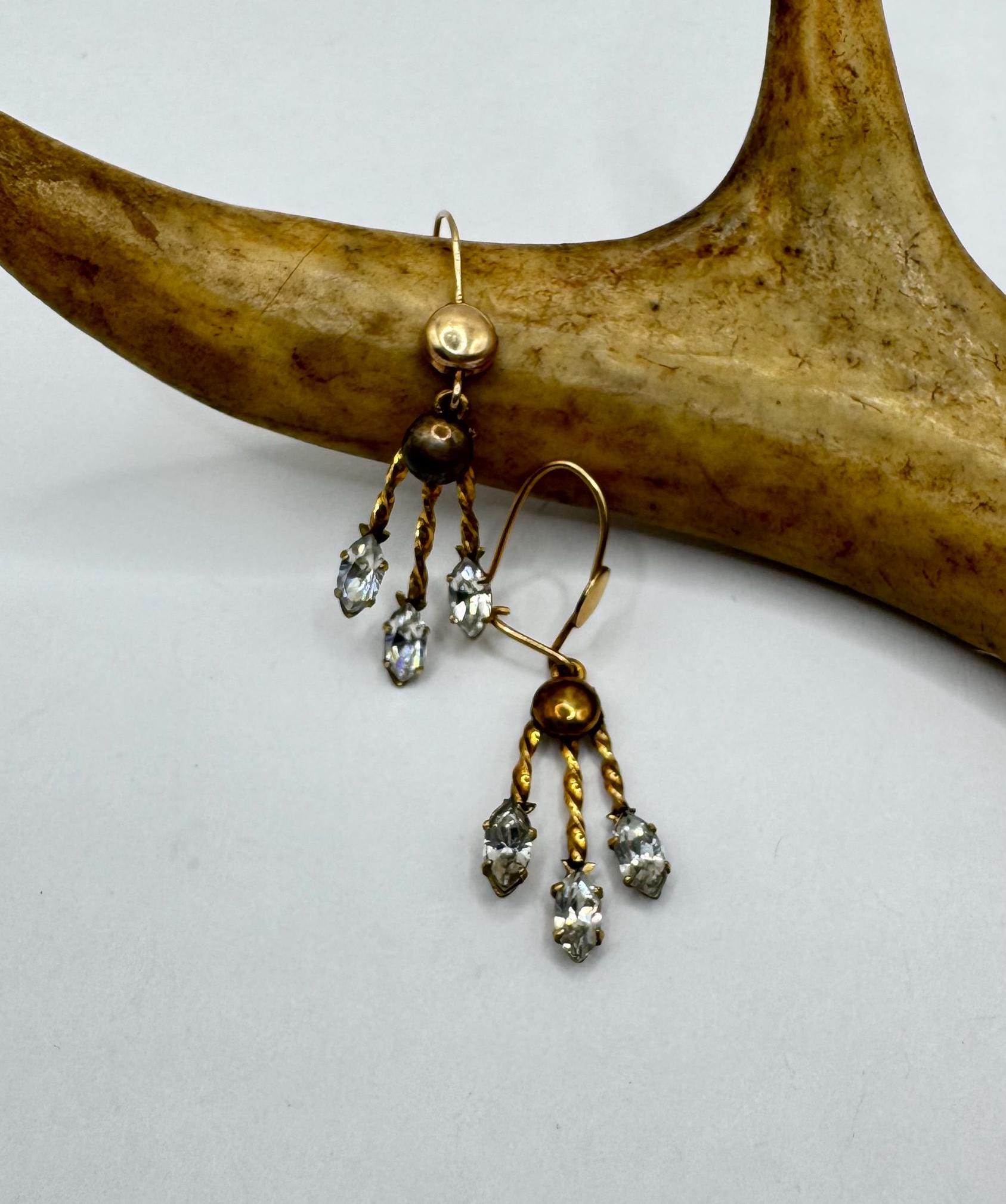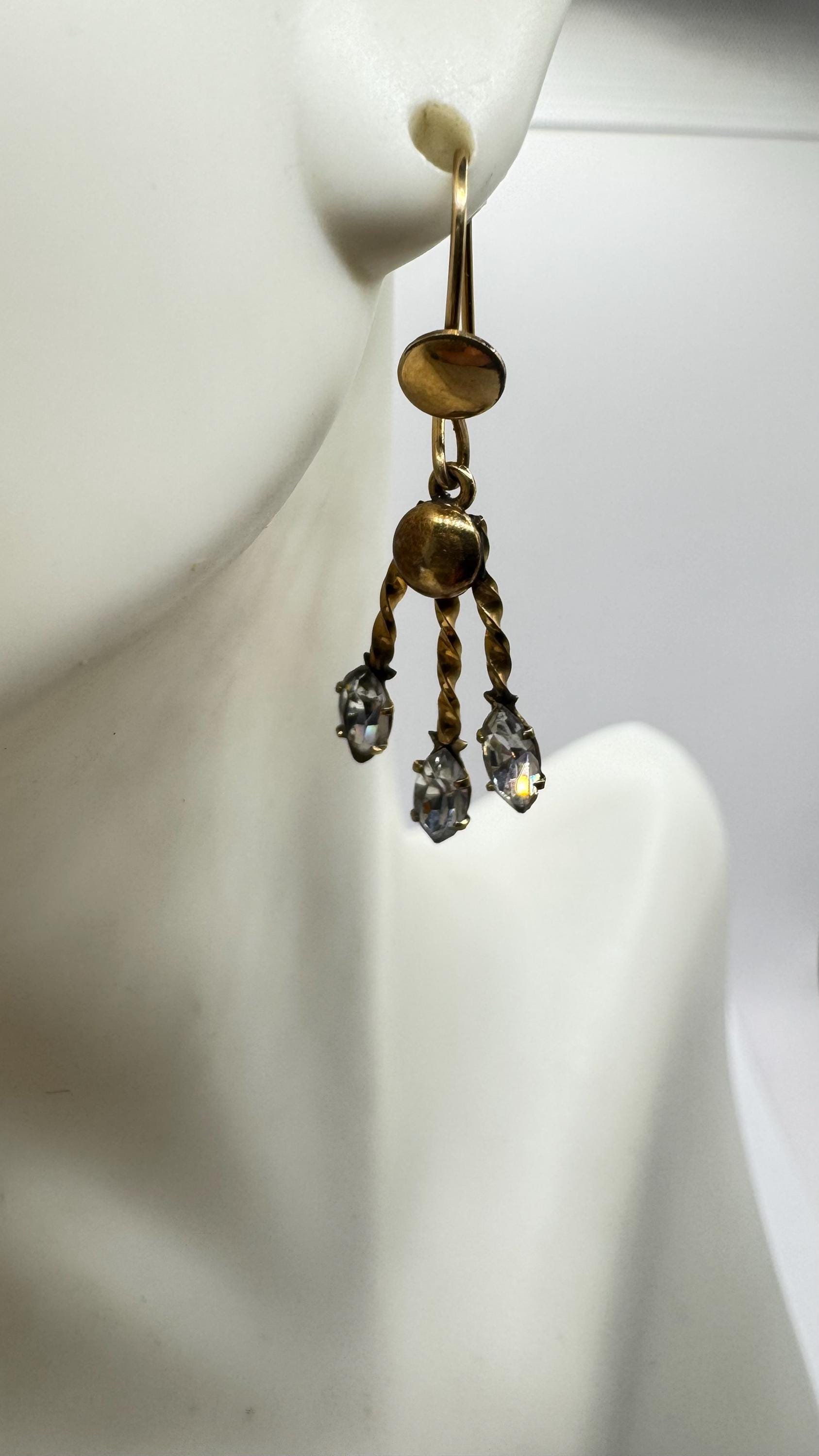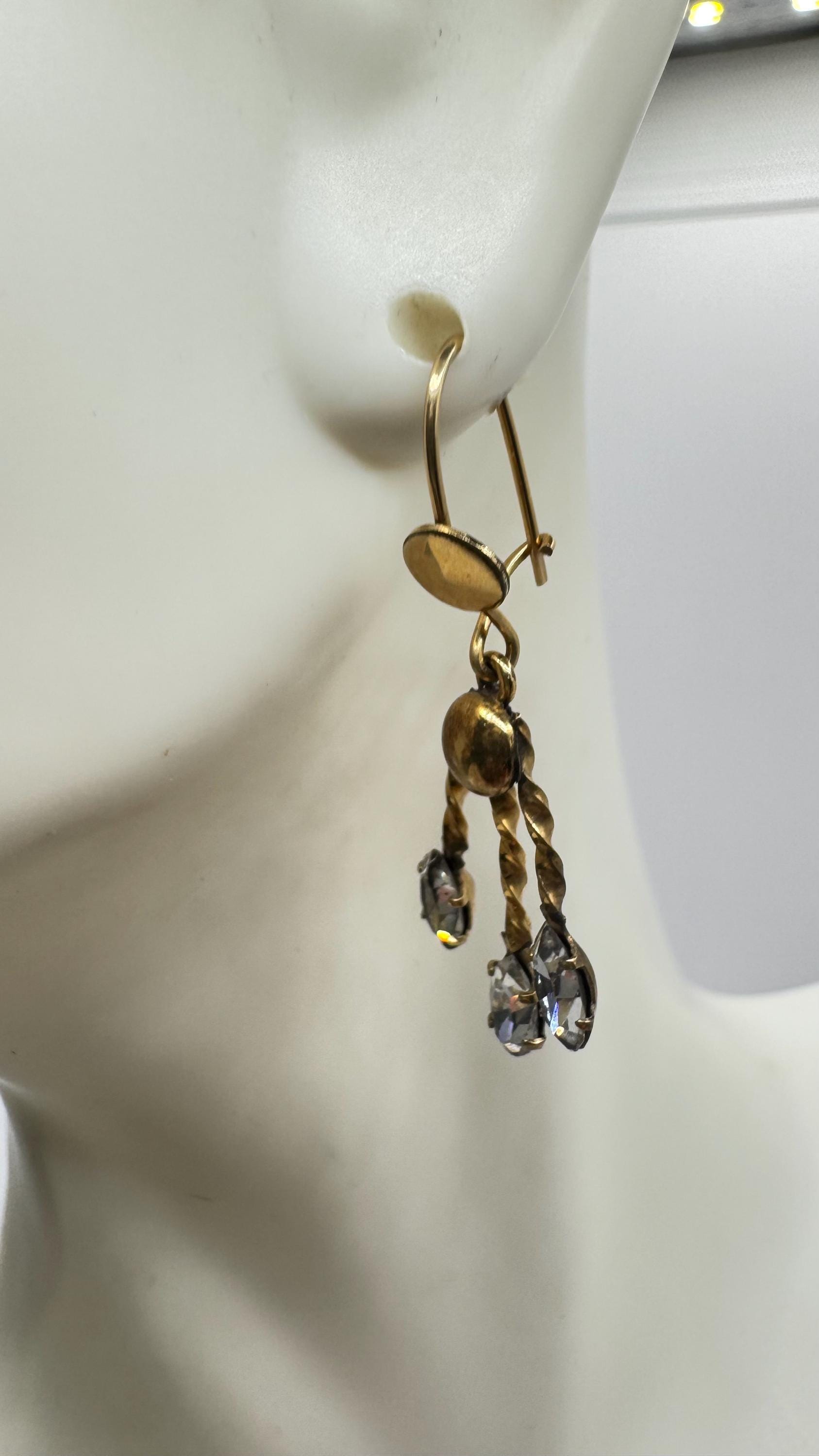 Our Vintage Gold dangleearrings features a 12 k gold filled set with clear crystals. Measures about 3/4 inch long in... Read more