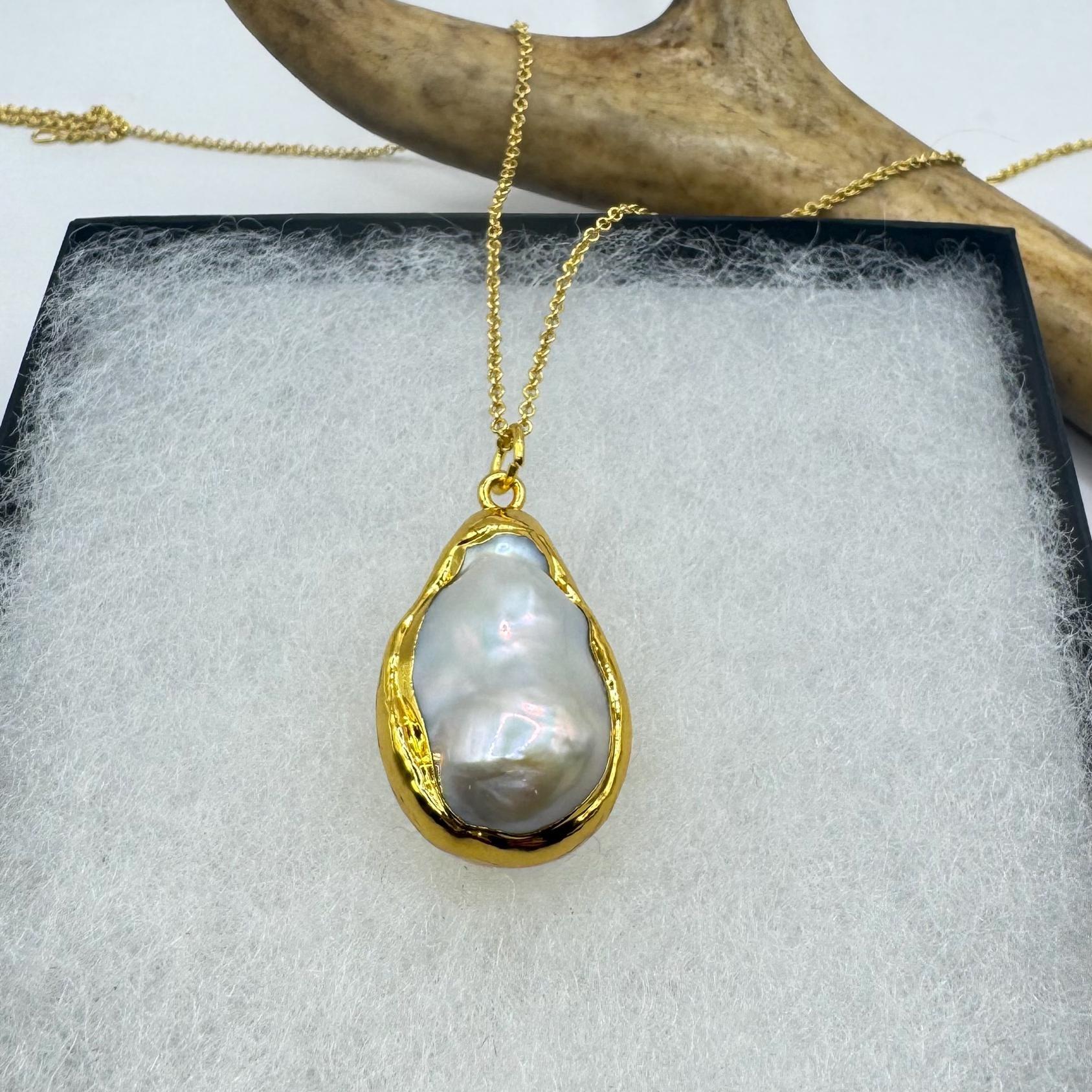 Vintage Biwa Pearl Gold Filled Necklace - Everyday Simple . Great for a bride or white wedding. Vintage pendant Set... Read more