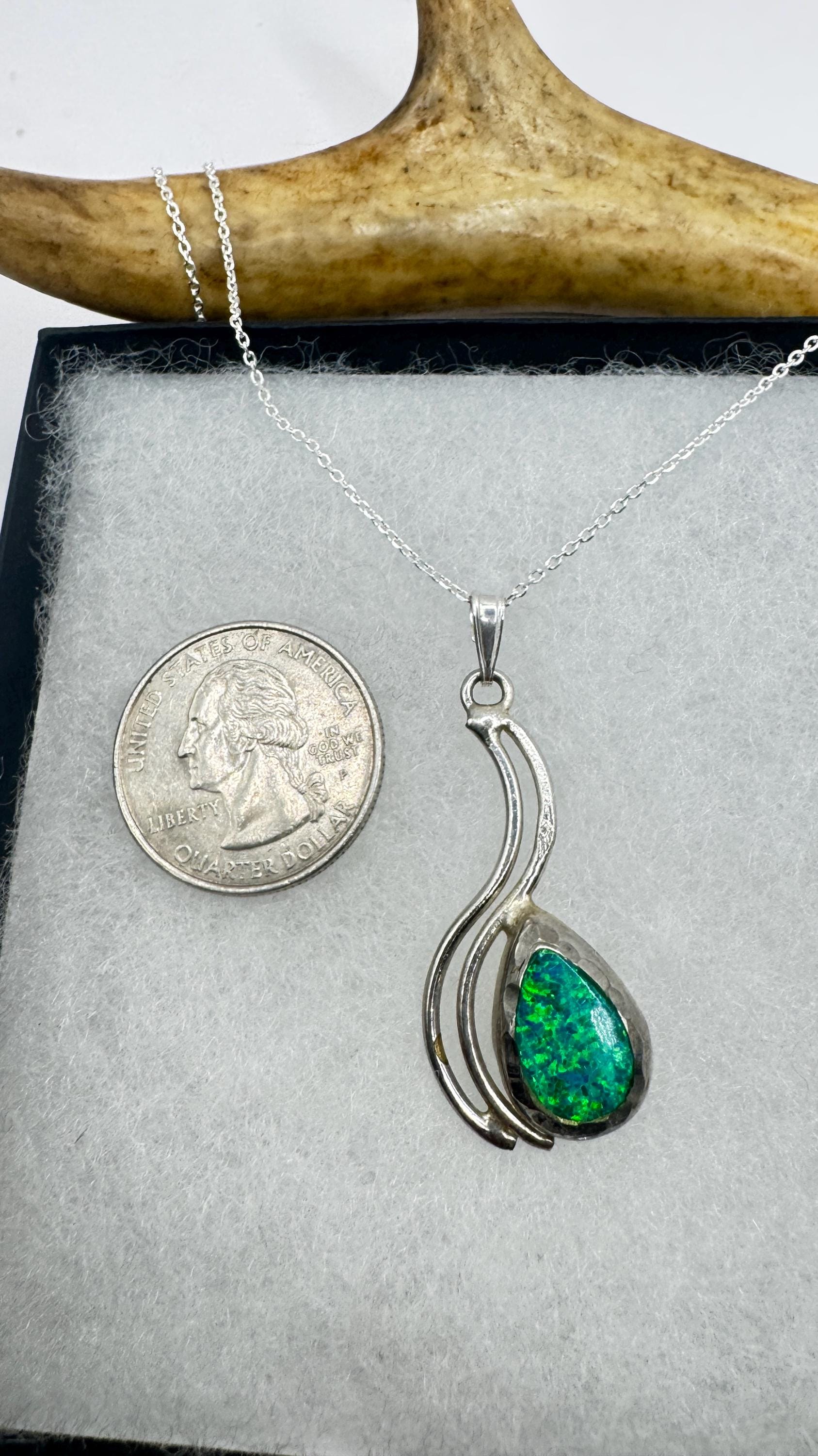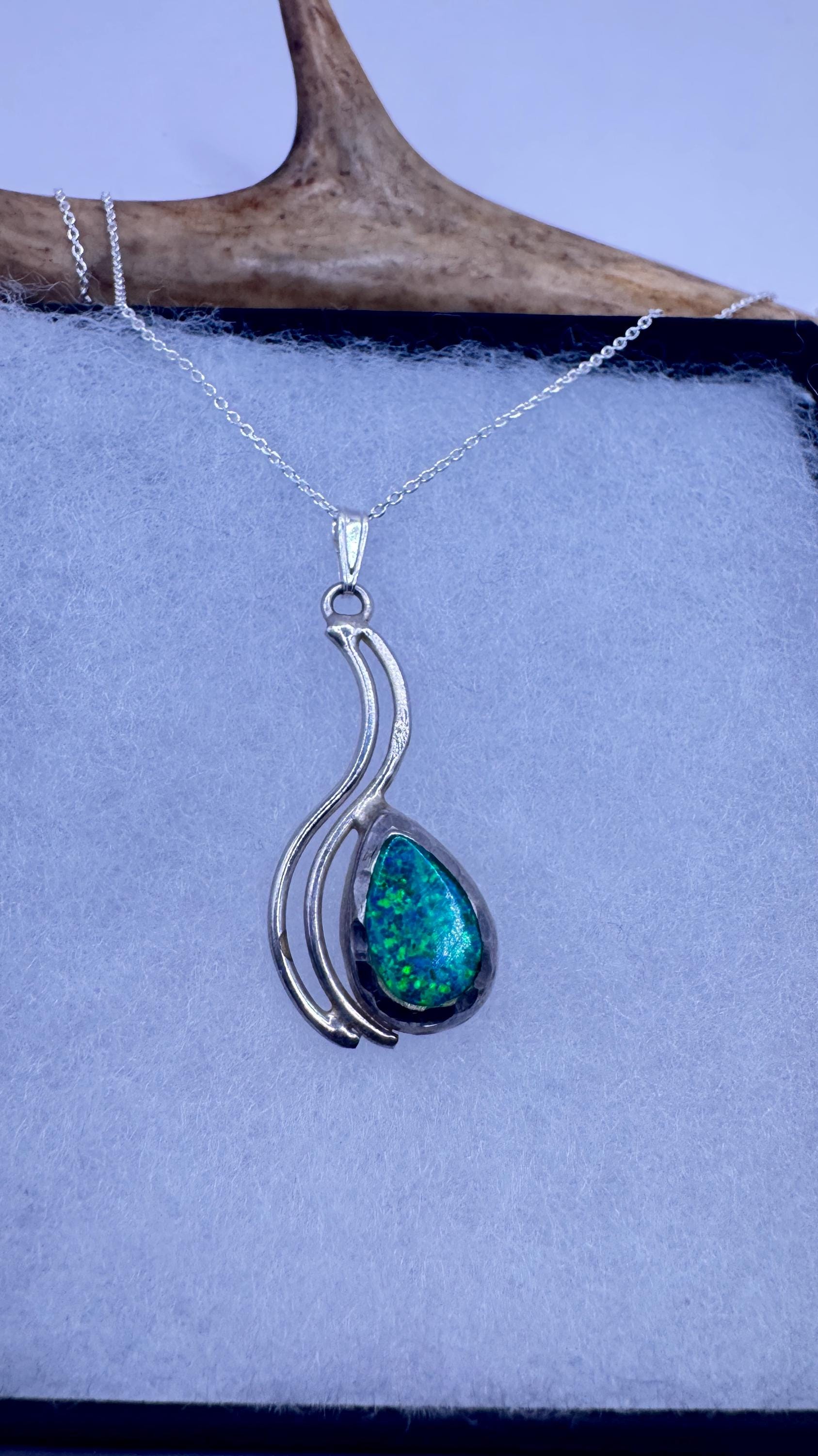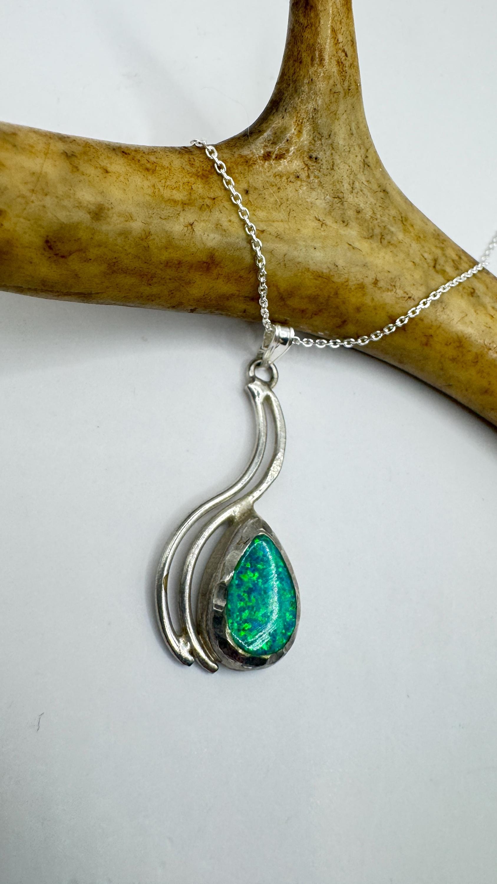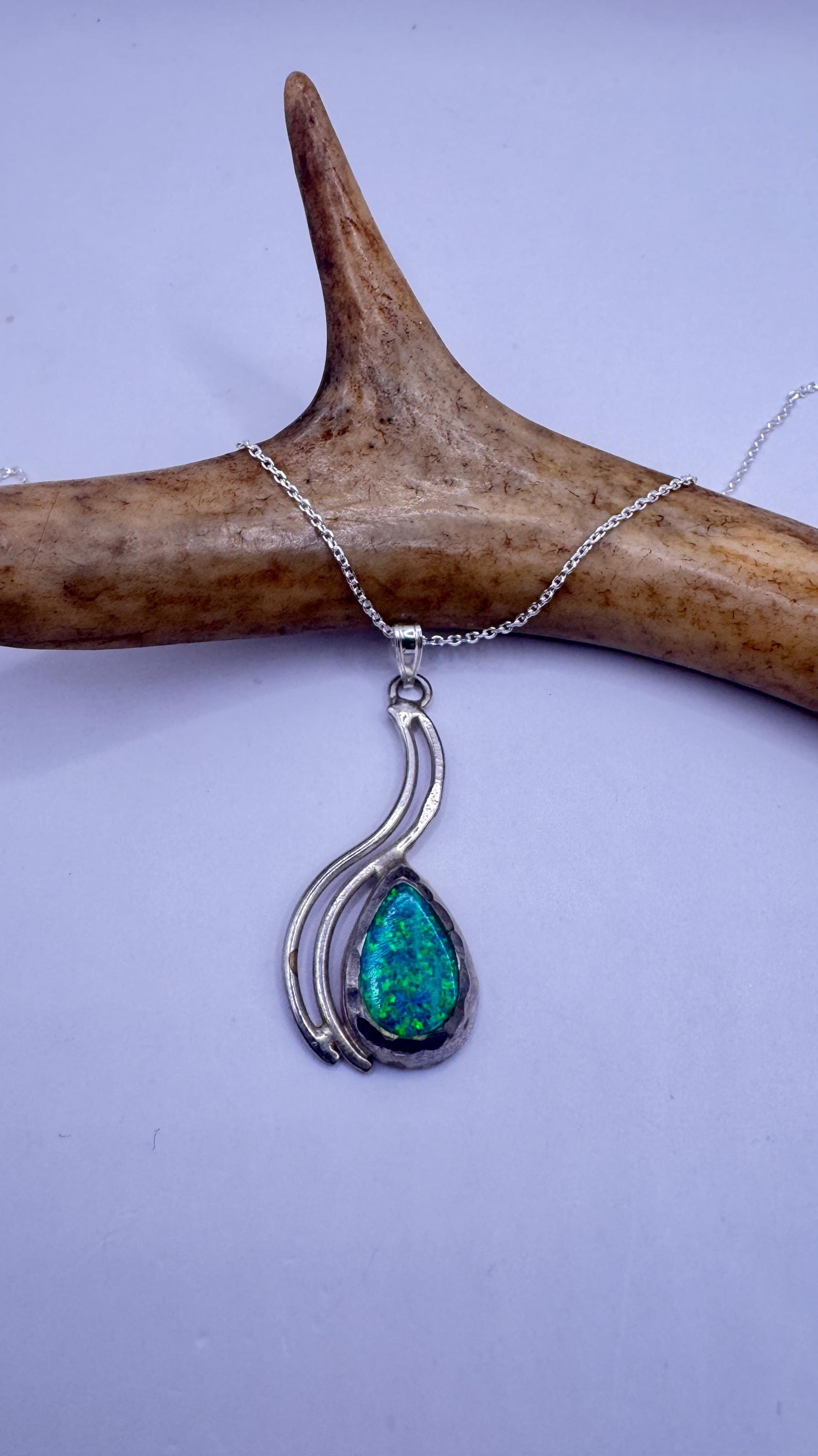 Vintage Blue Fire Opal 925 Sterling Silver Necklace