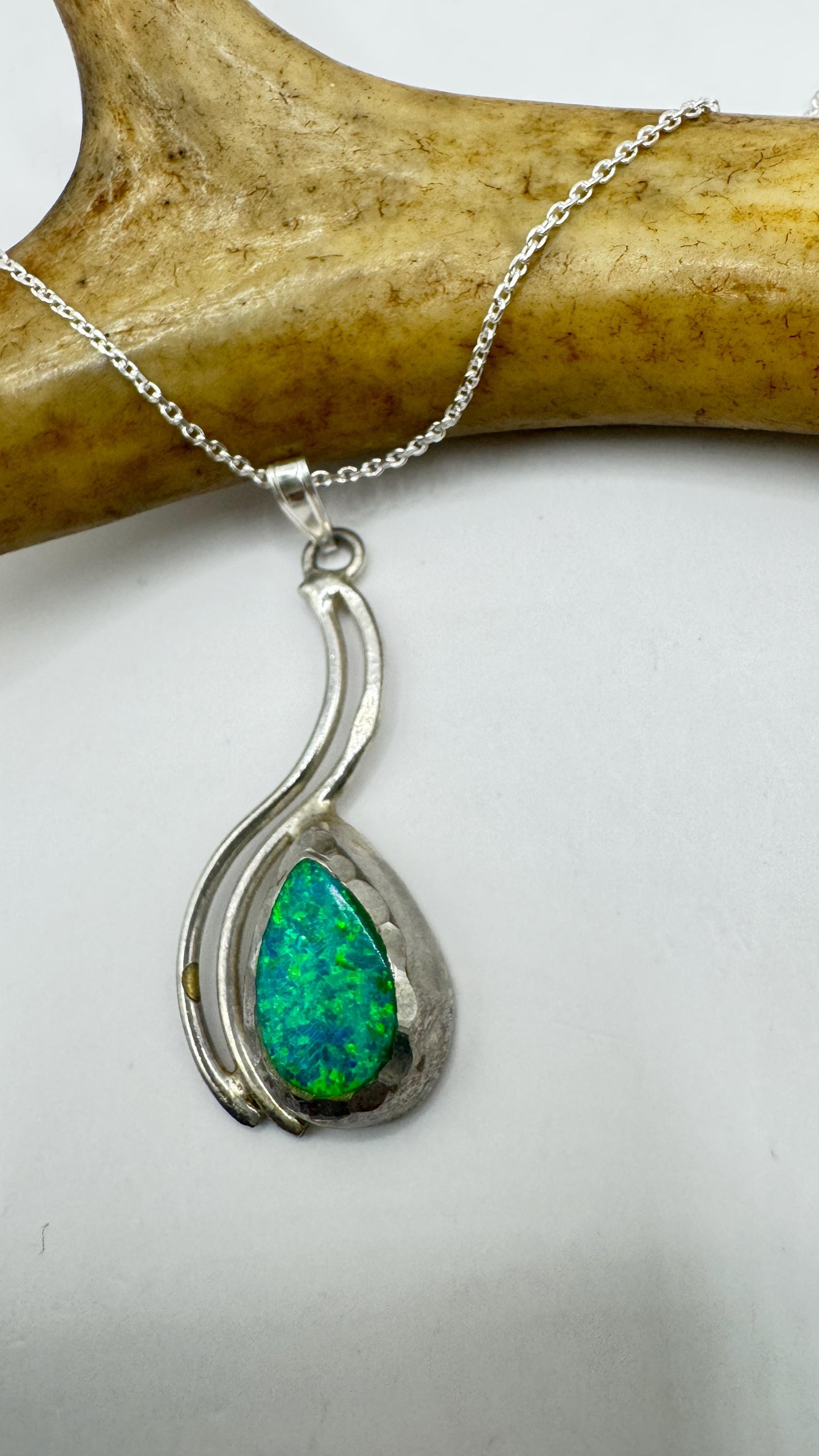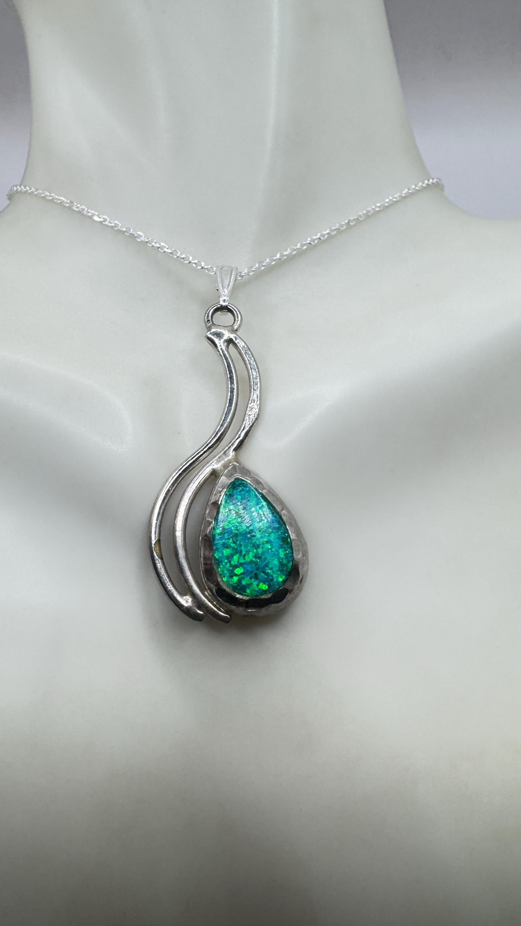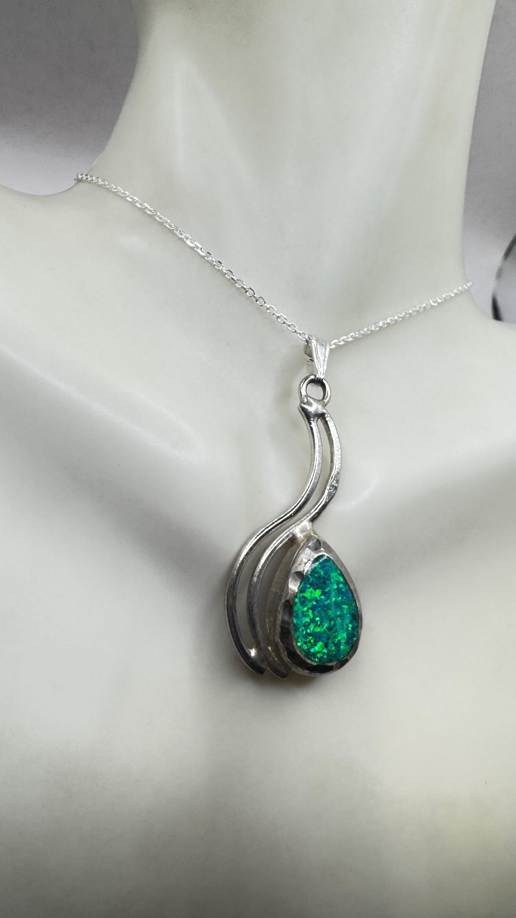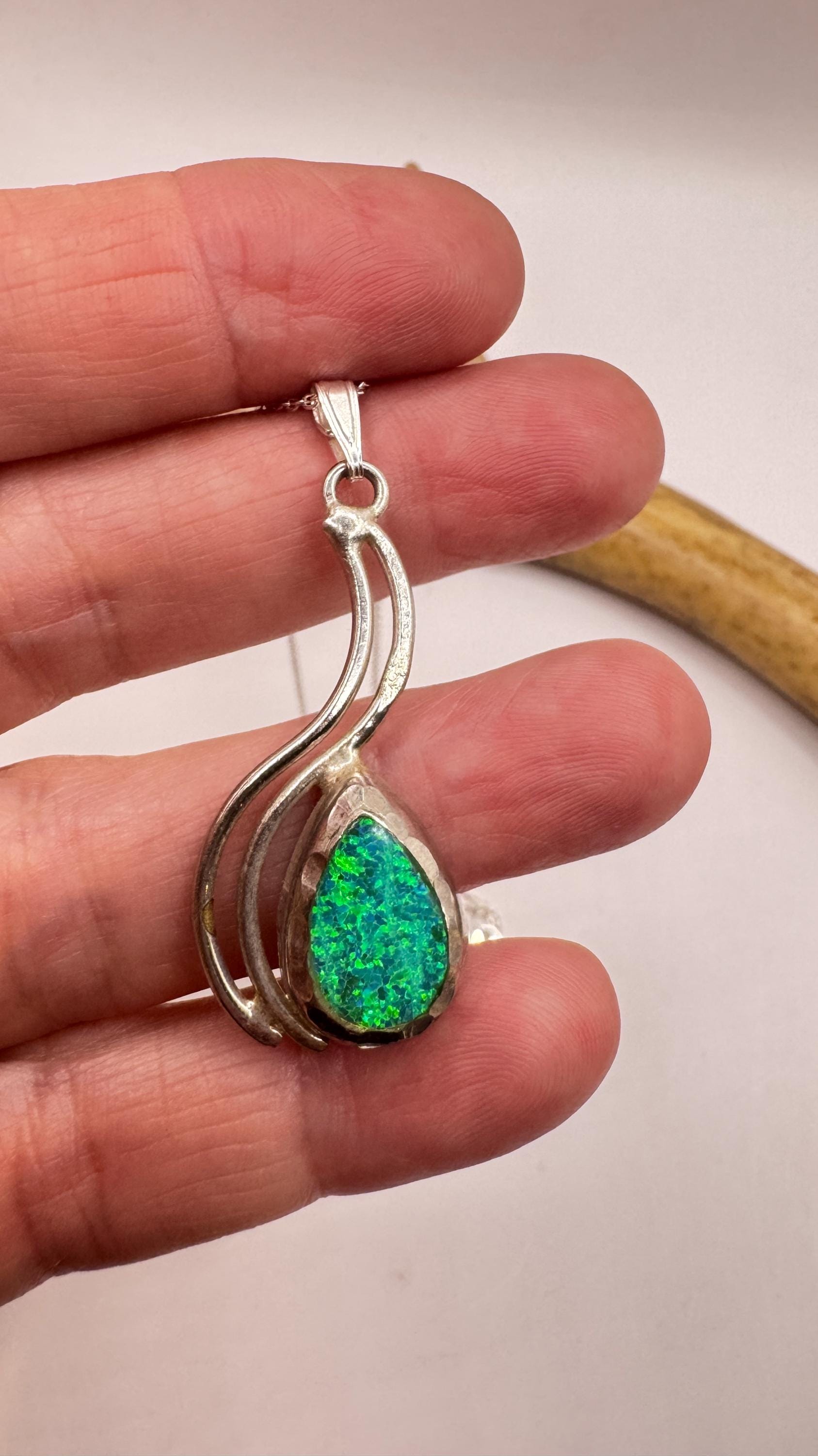 Vintage Blue Fire Opal 925 Sterling Silver Necklace