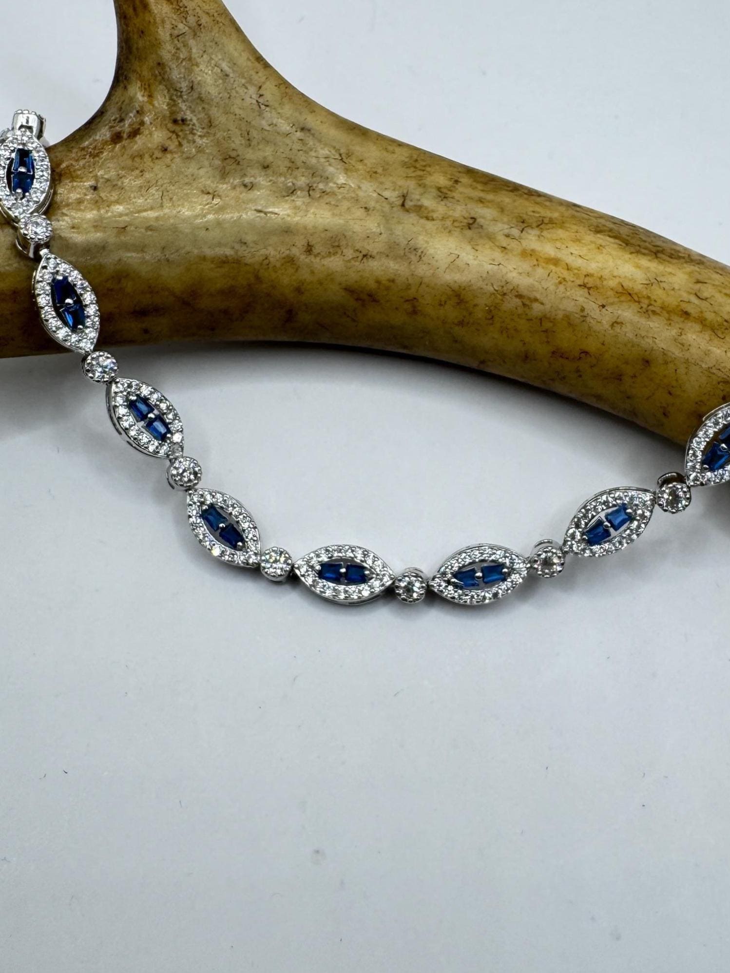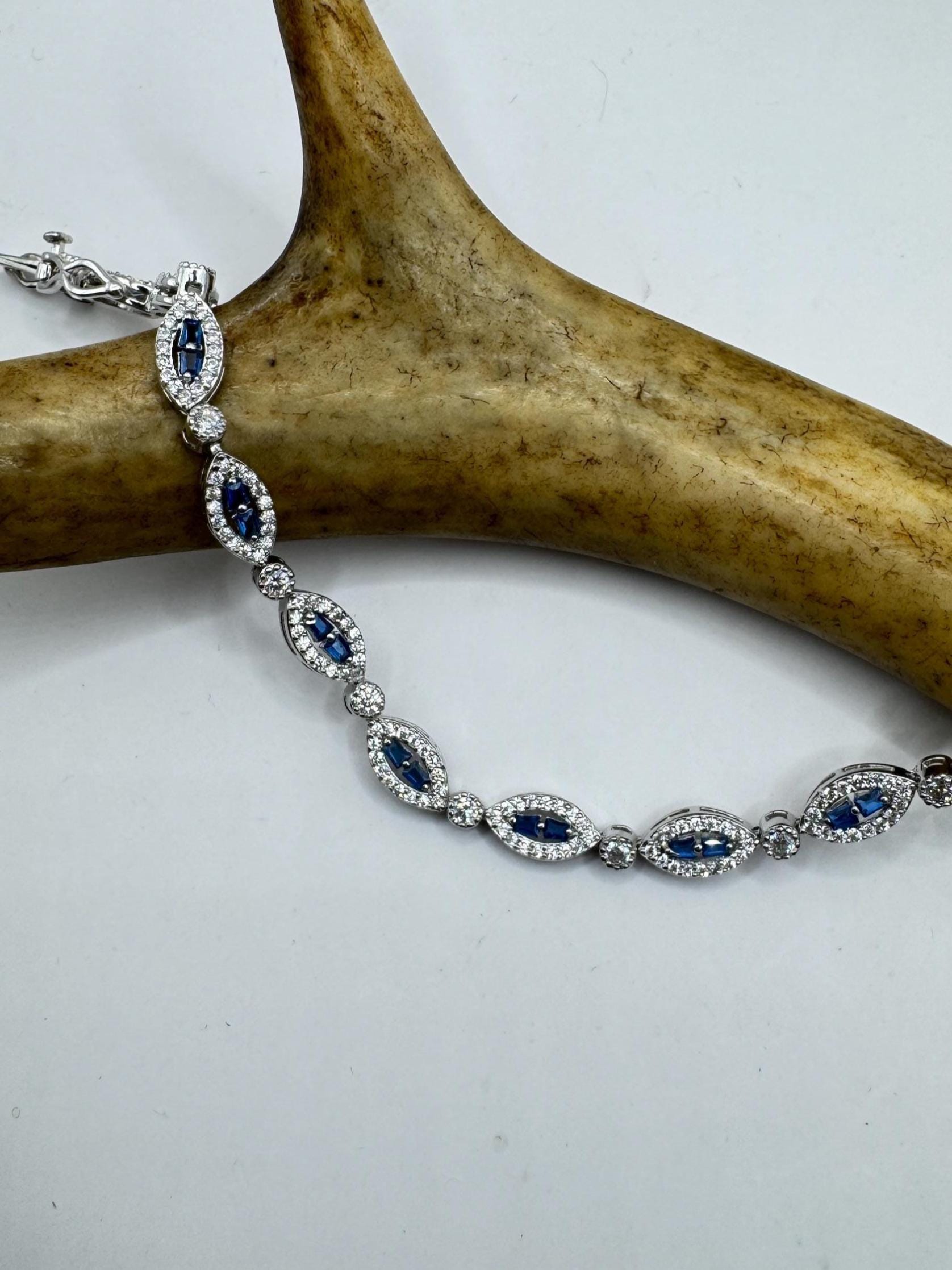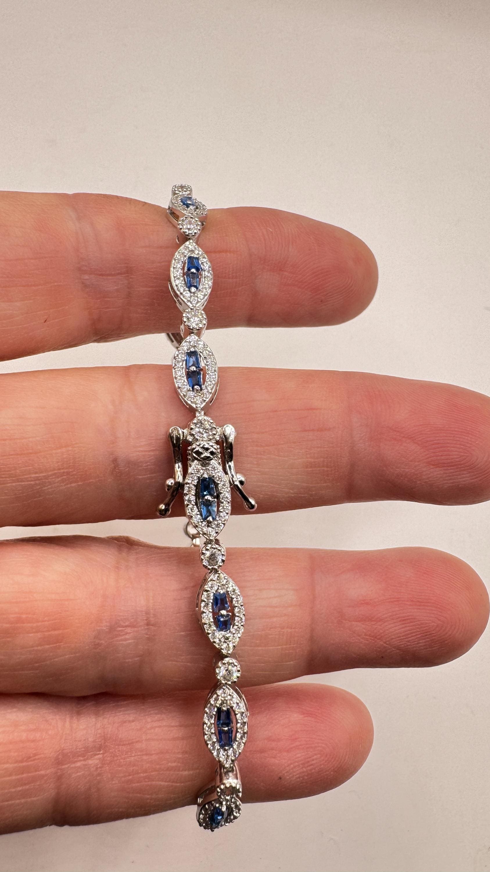 Vintage Blue Iolite CZ Bracelet Sterling Silver 925