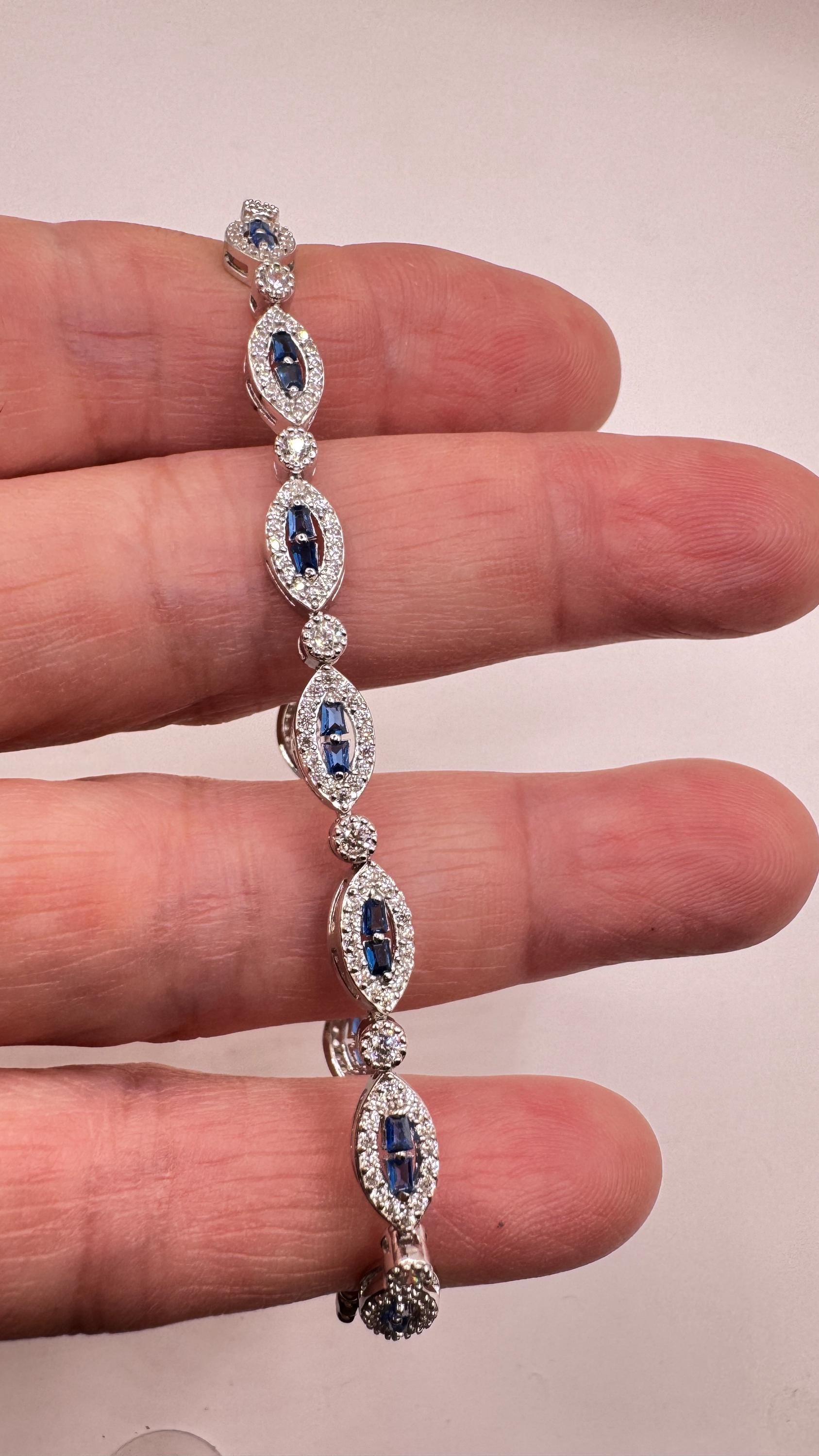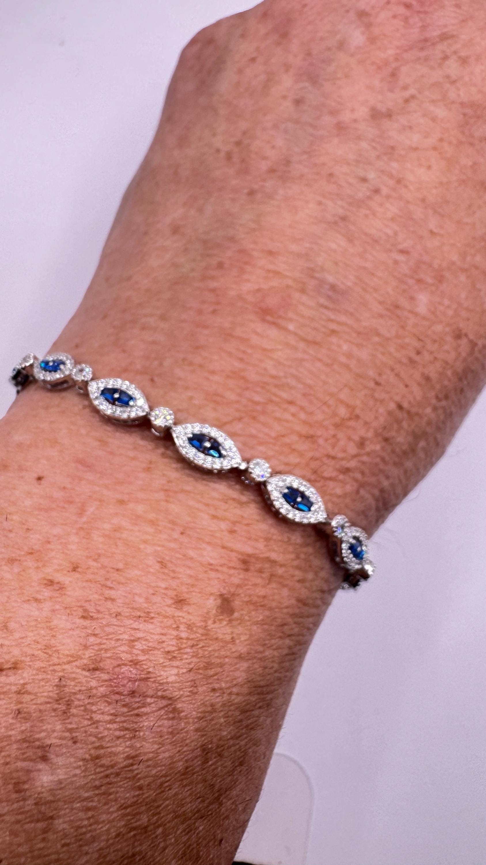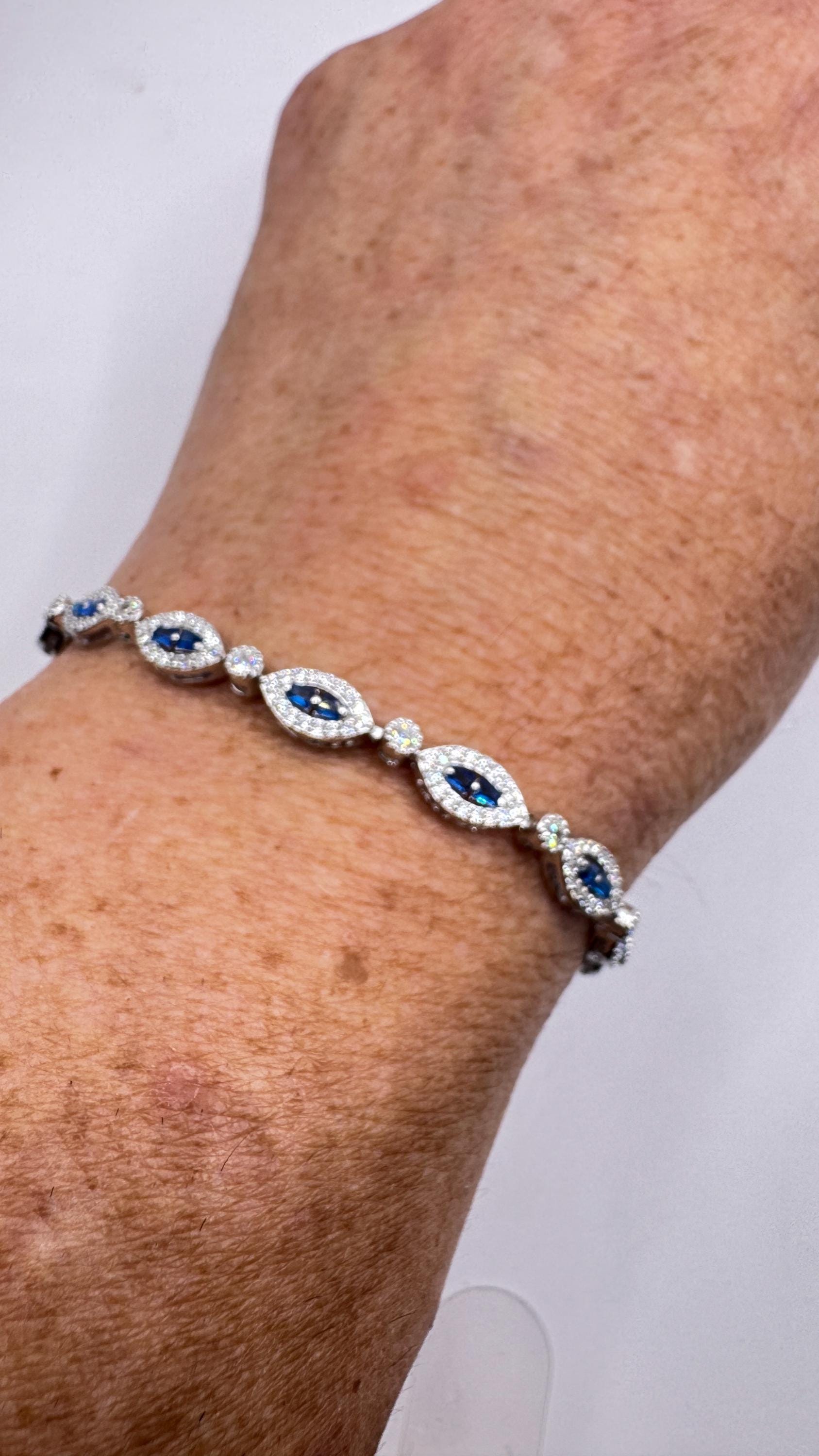 Vintage Blue Iolite CZ Bracelet Sterling Silver 925