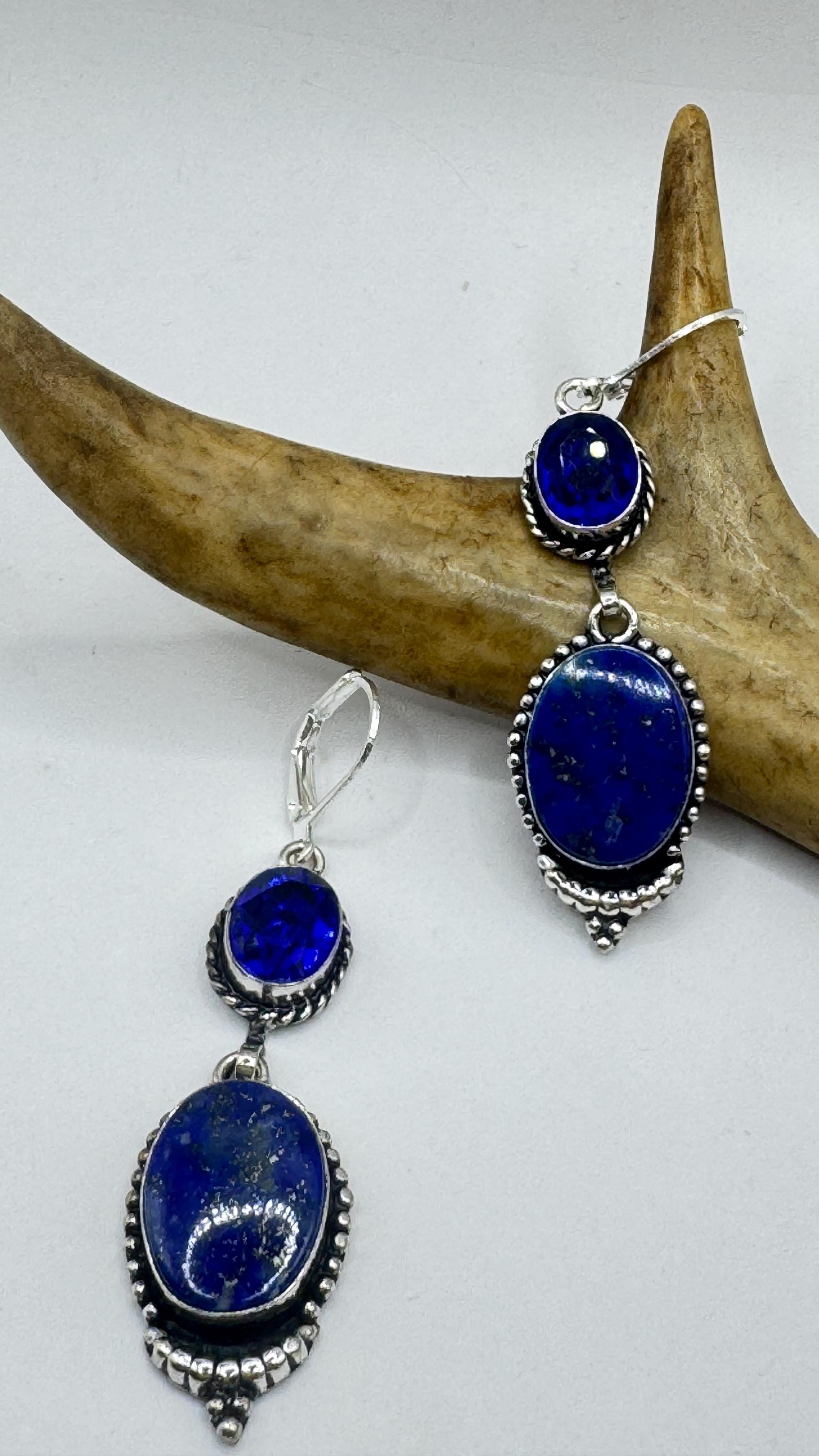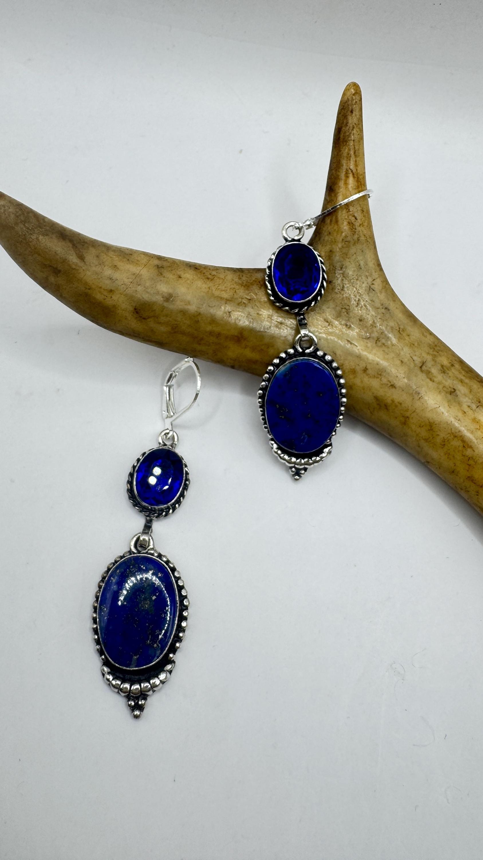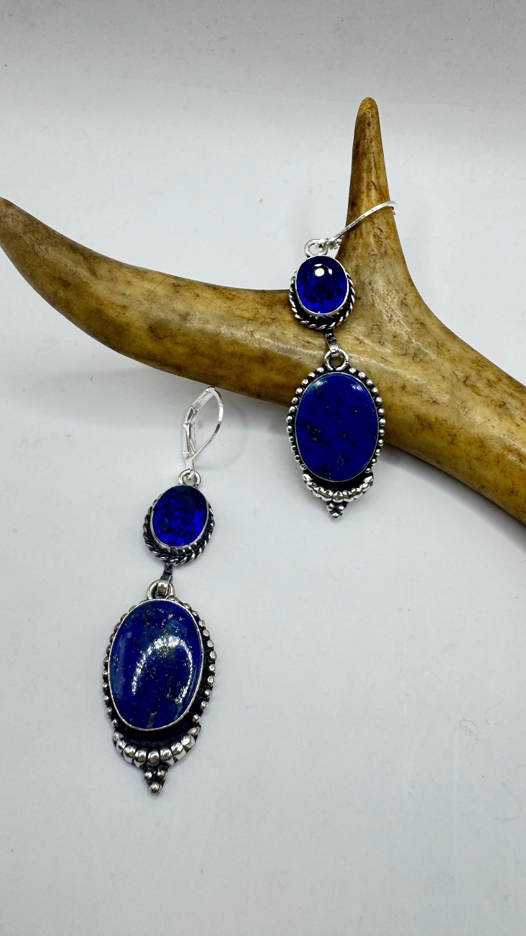 Our Vintage Pendant dangle earrings features a stunning drop of blue lapis lazuli elegant style statement adorned with 925 sterling... Read more