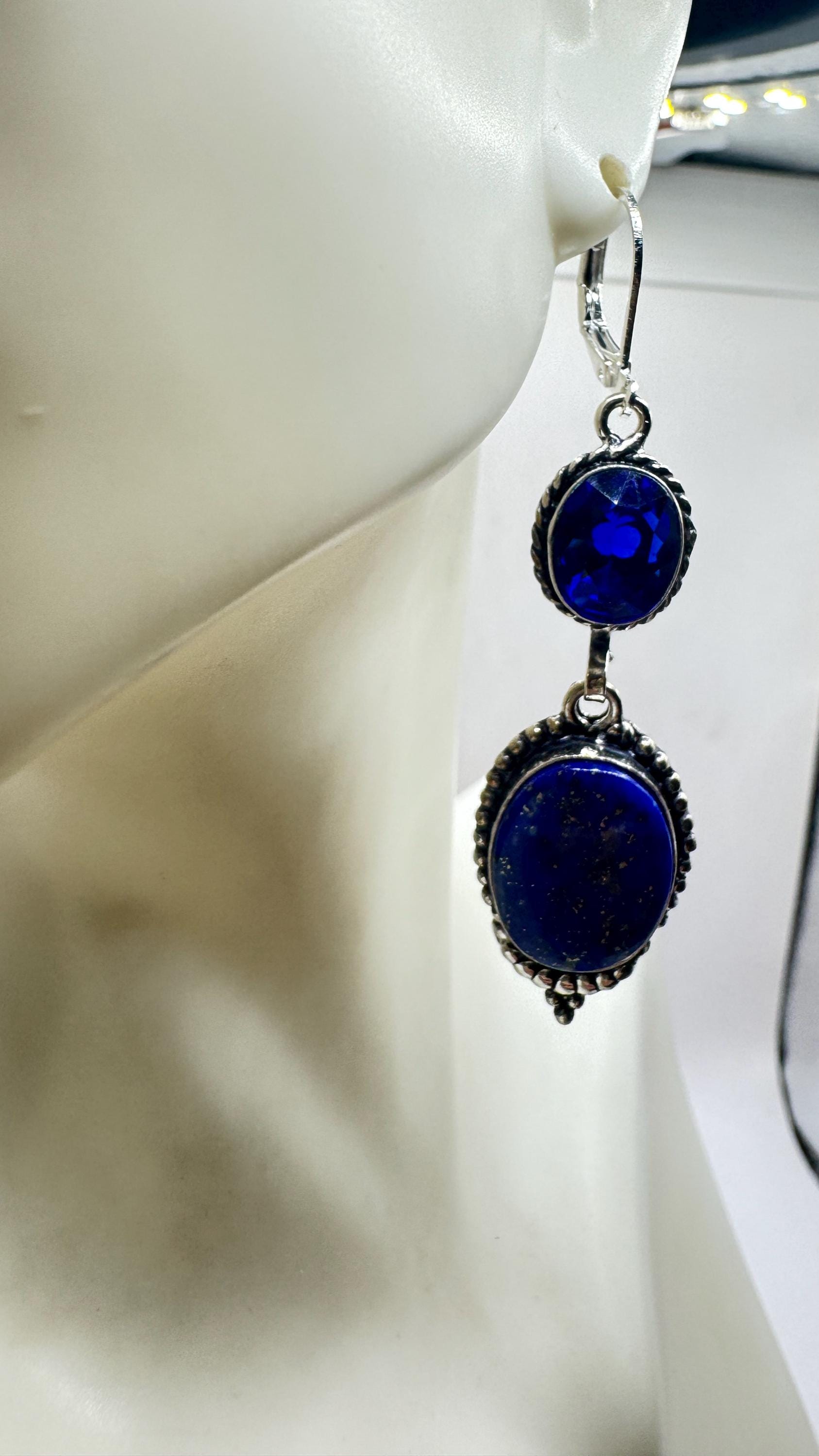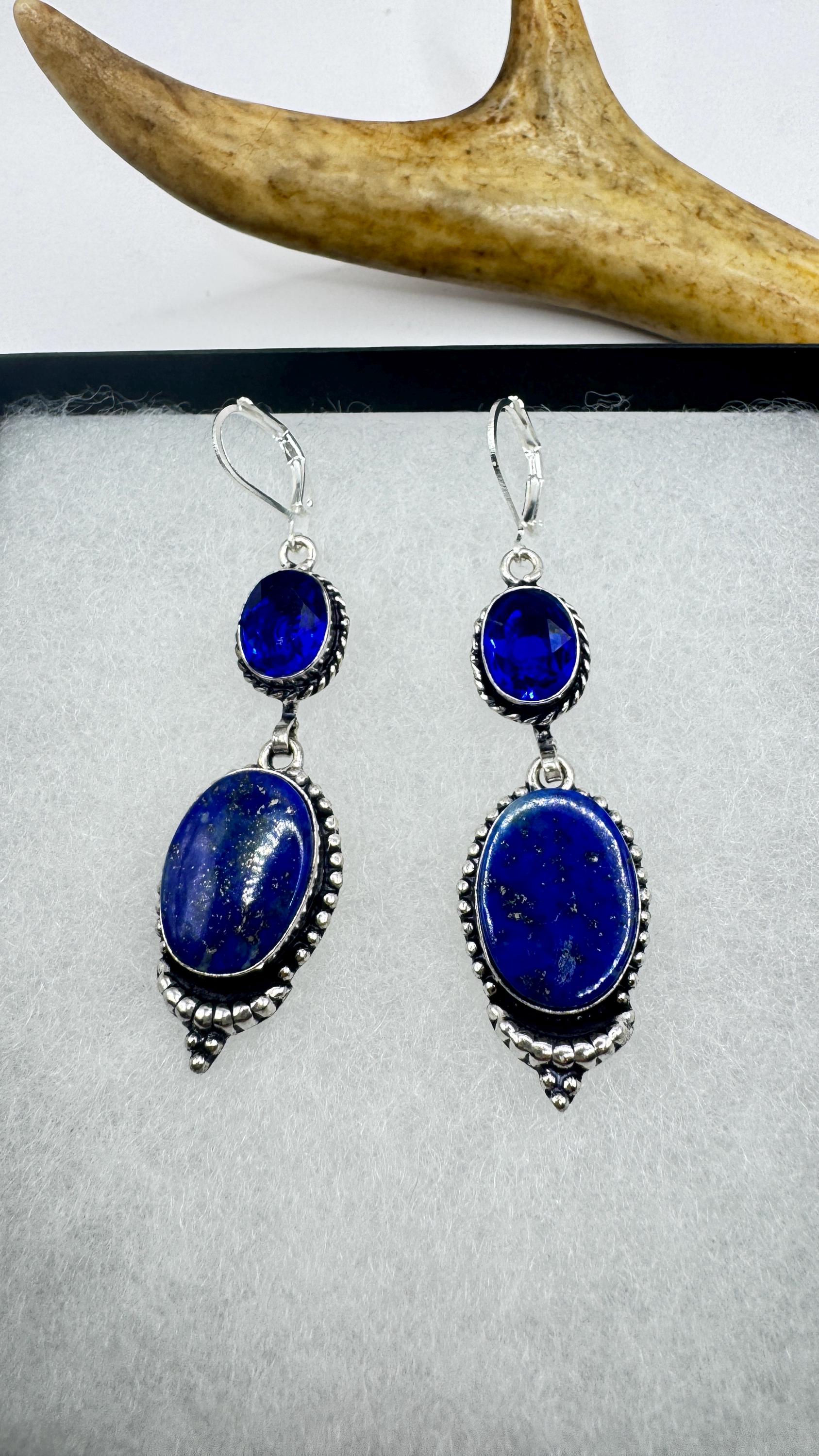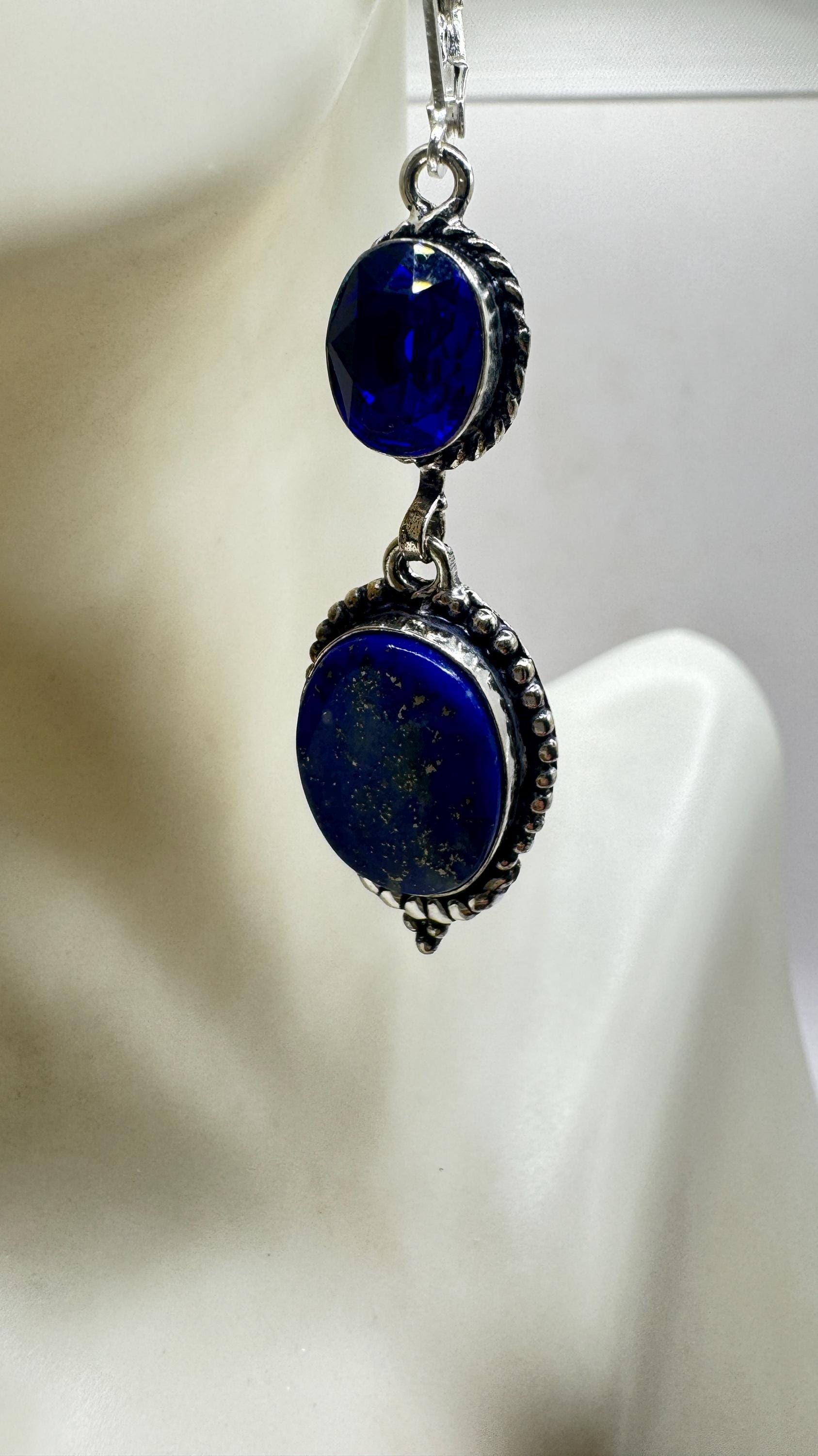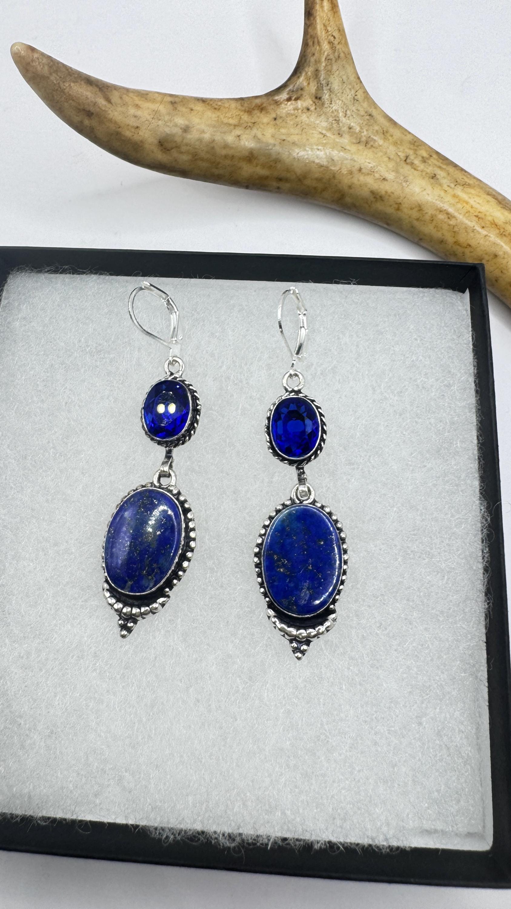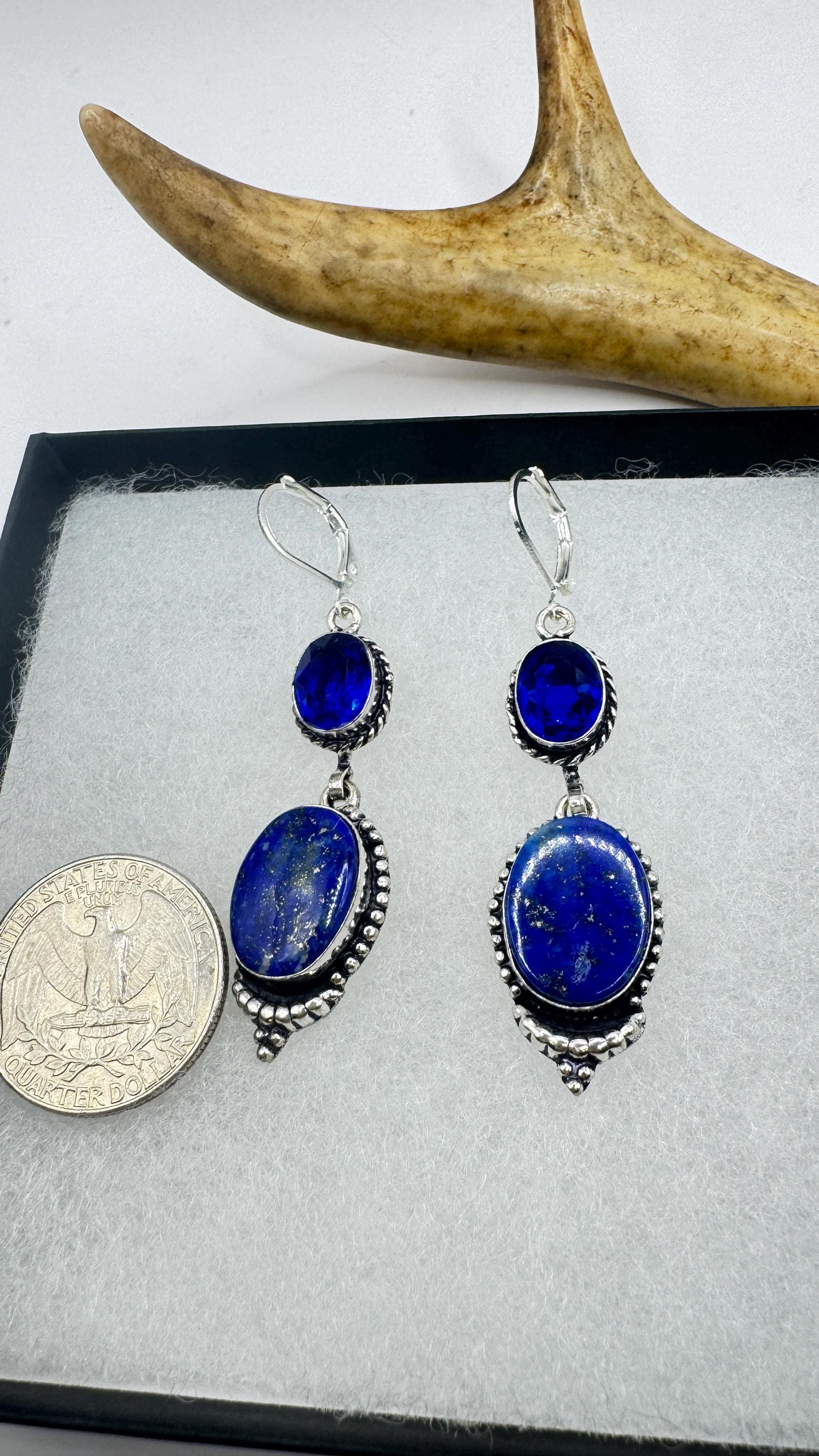 Vintage Blue Lapis Lazuli Dangle Earrings Sterling Silver Leverbacks
