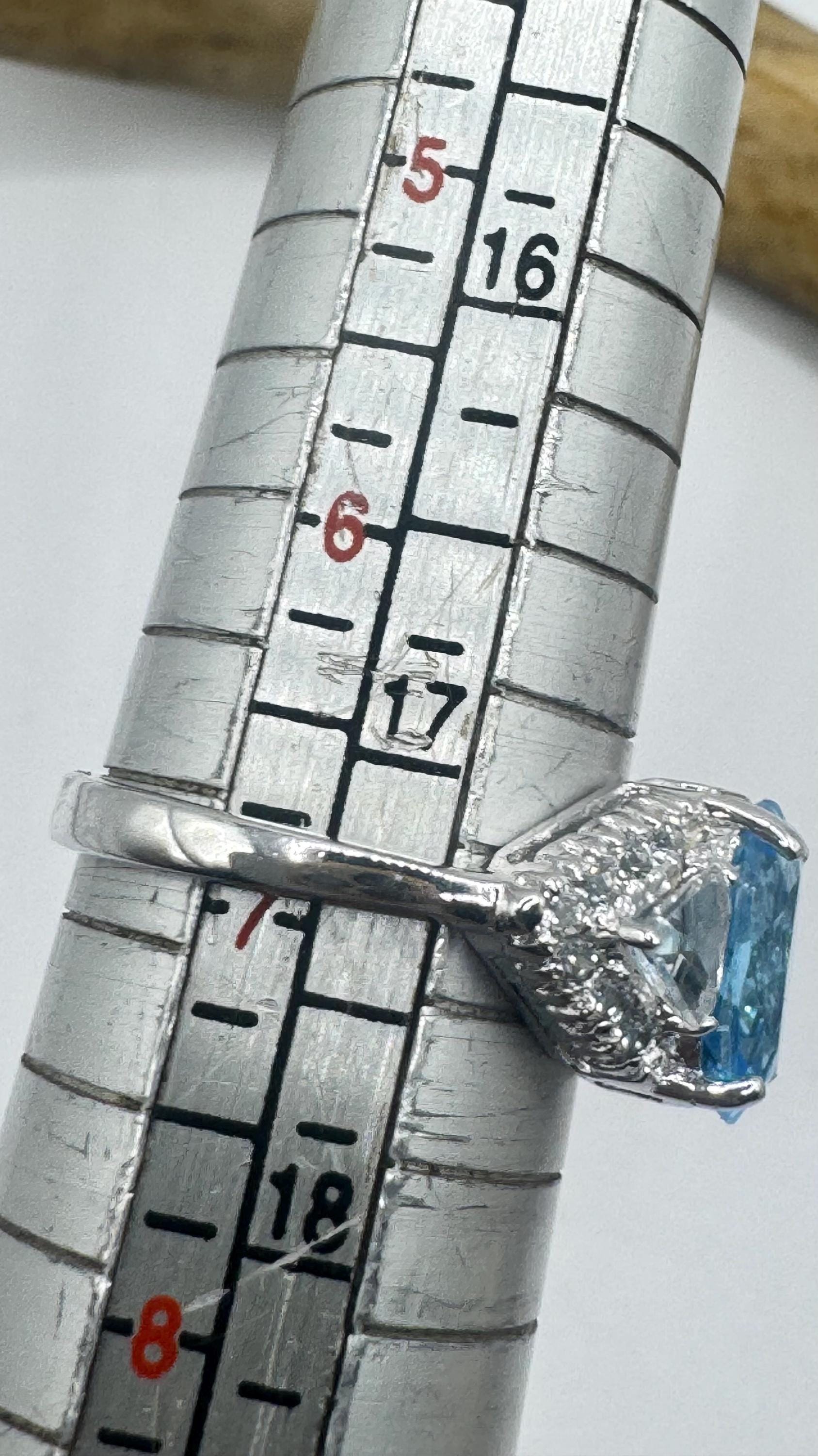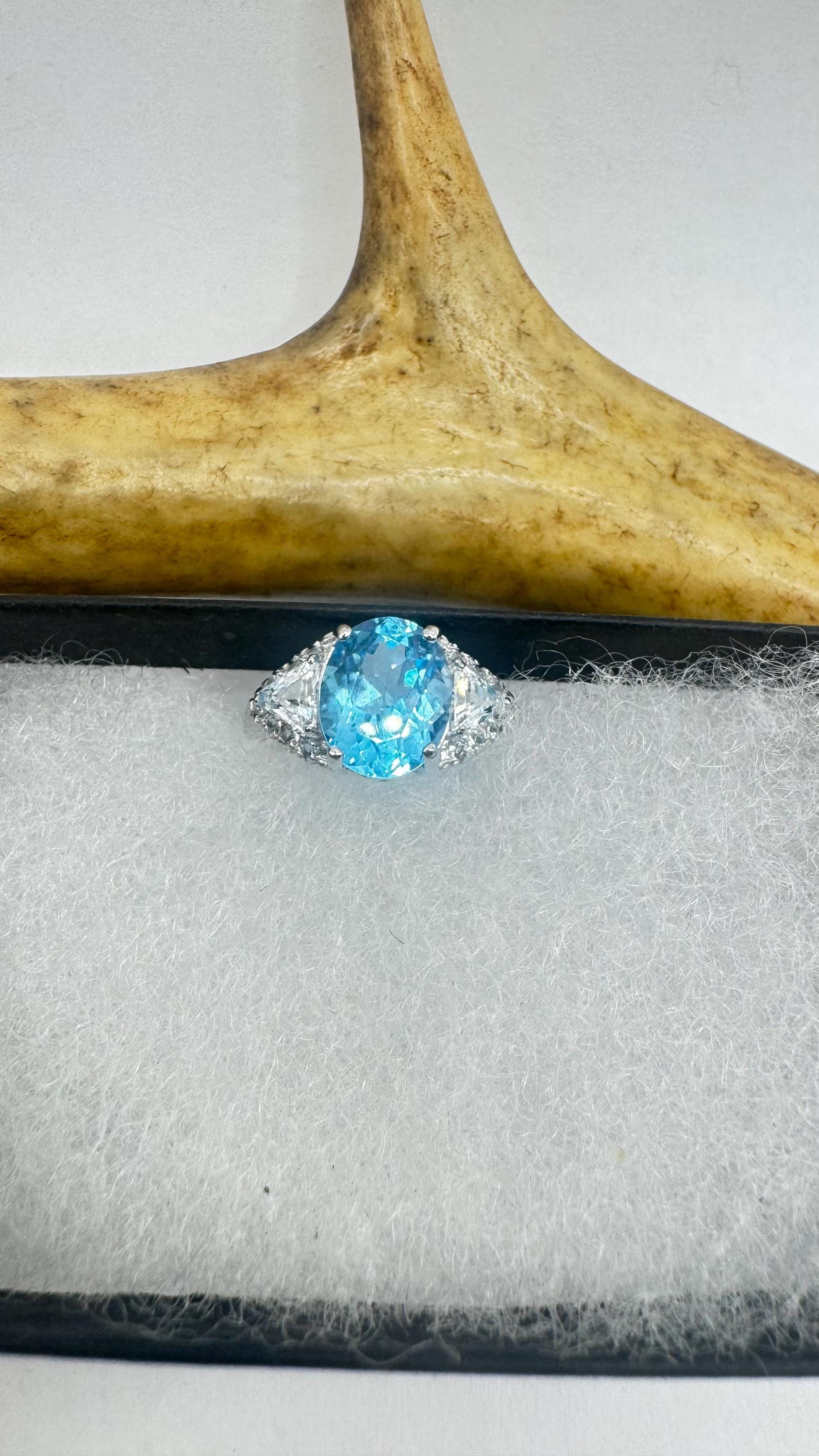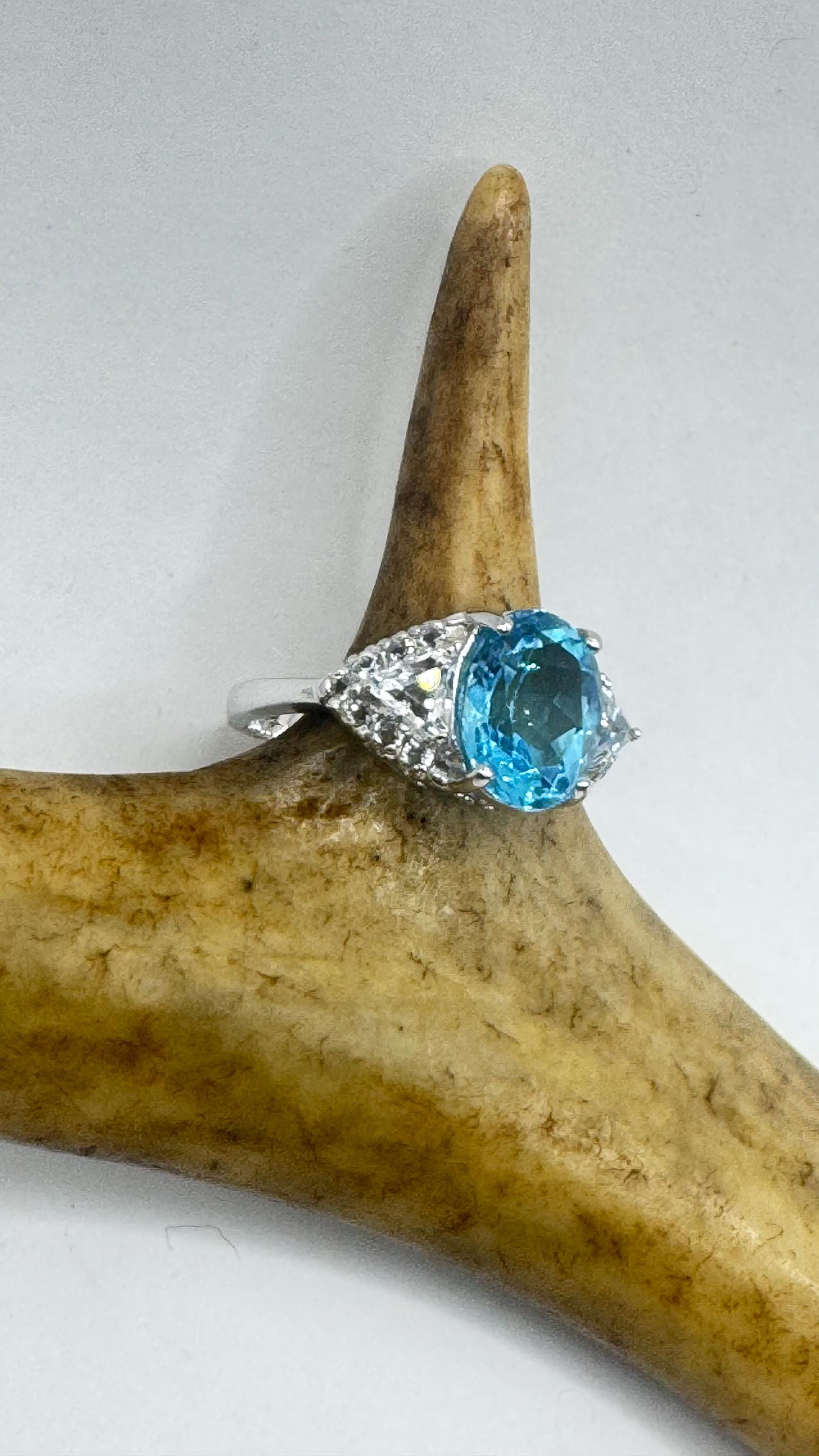 Vintage Blue Topaz Clear Diamond 925 Sterling Silver Ring