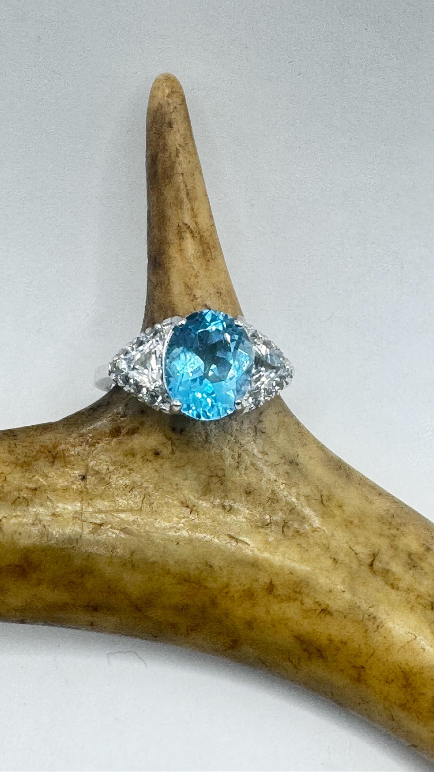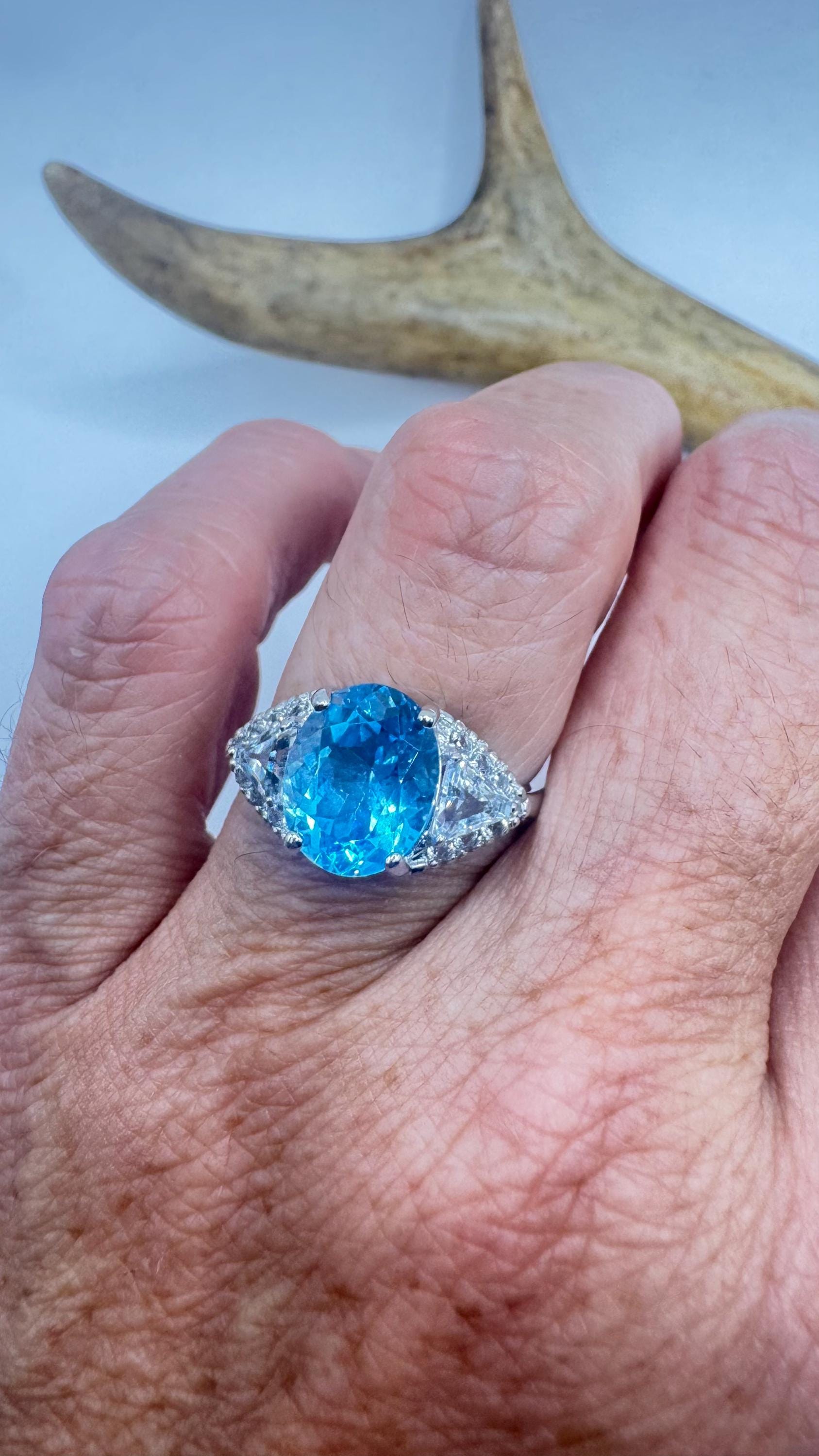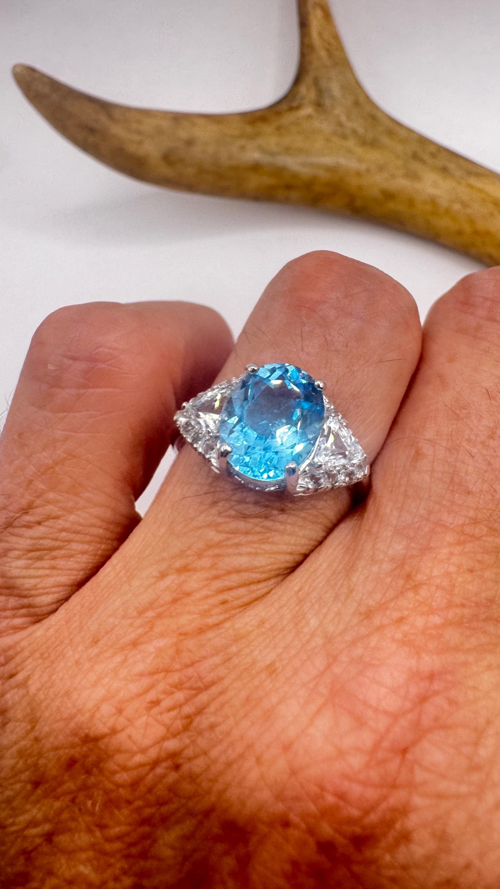 Vintage Blue Topaz Clear Diamond 925 Sterling Silver Ring