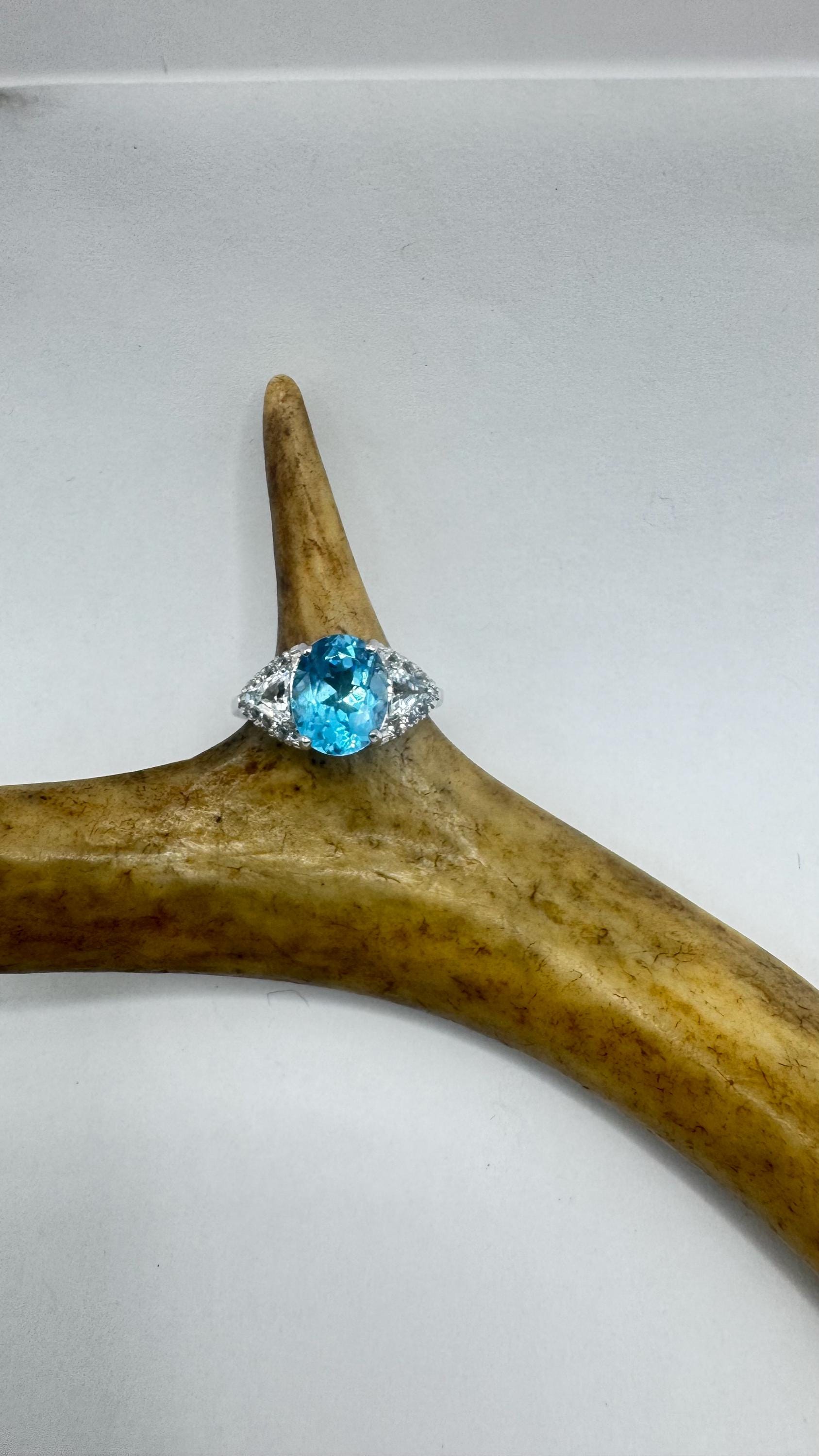 Vintage Silver blue topaz Ring featuring tiny genuine white sapphires in a cocktail band. Great promise or engagement ring something... Read more