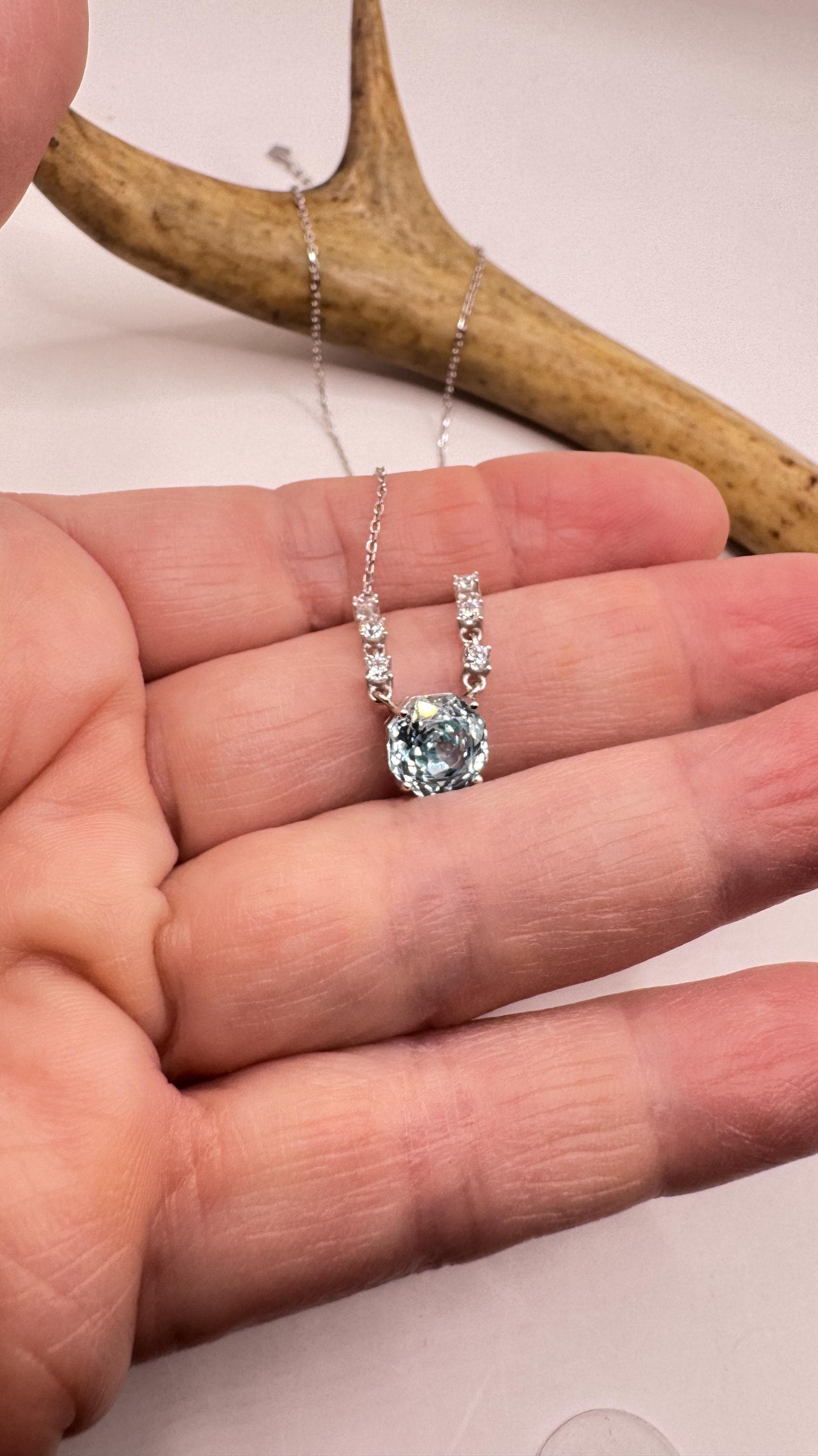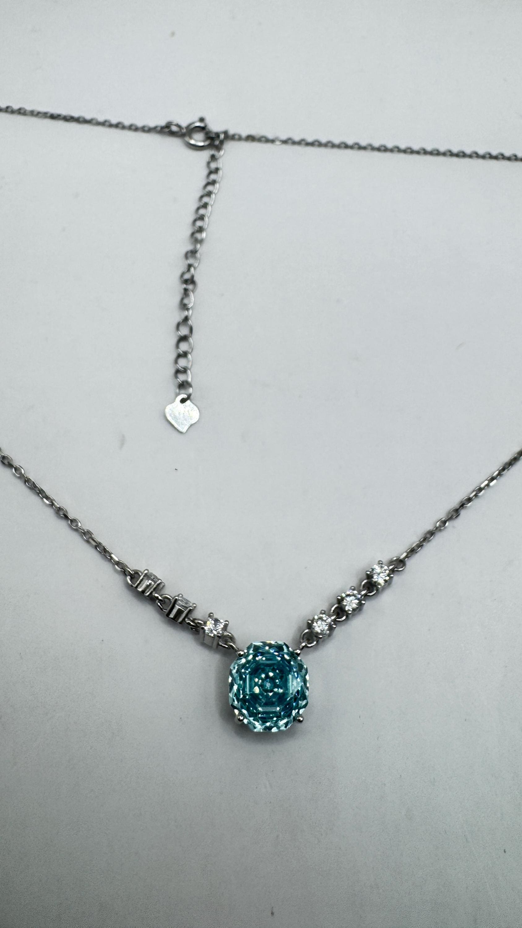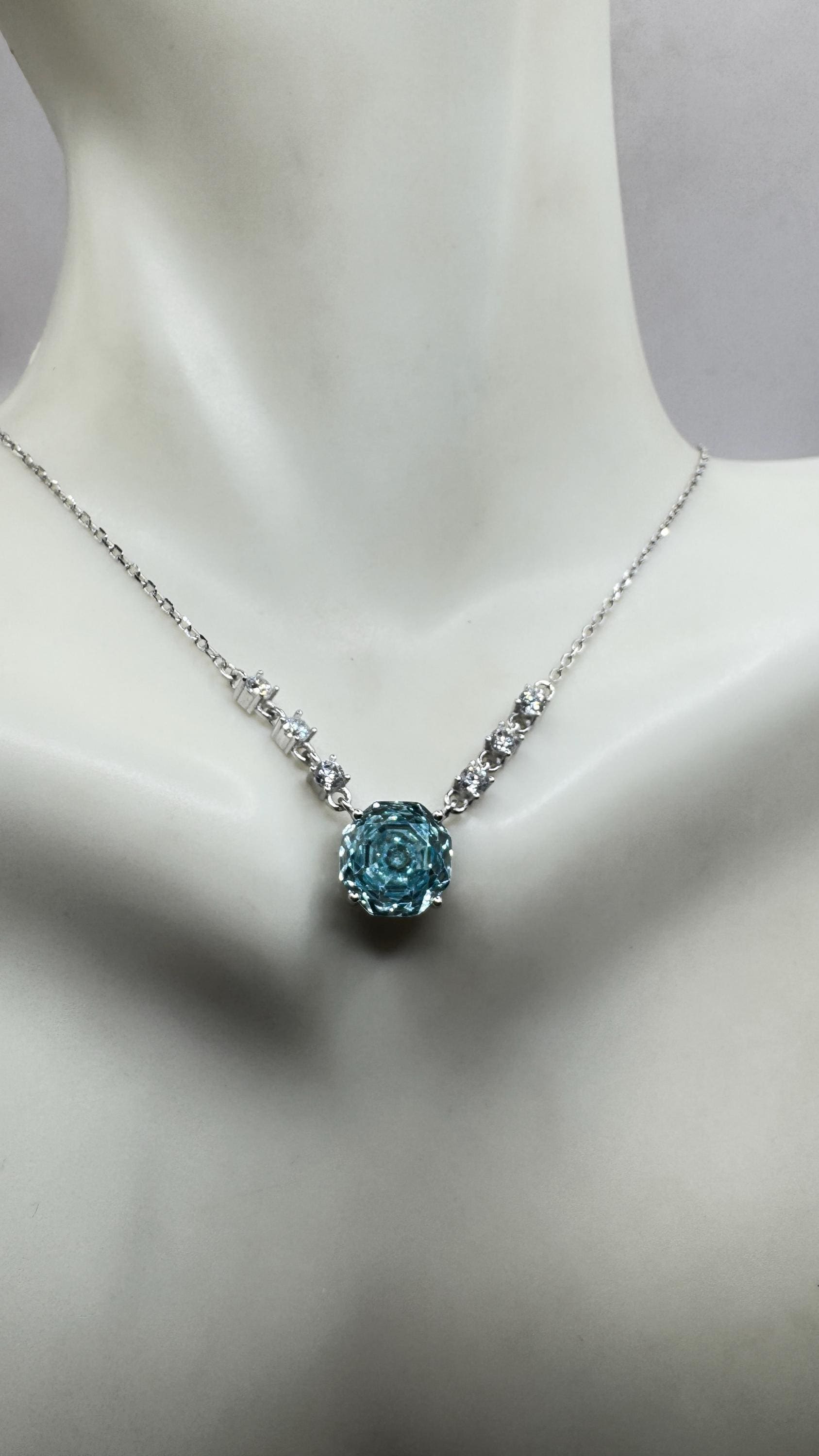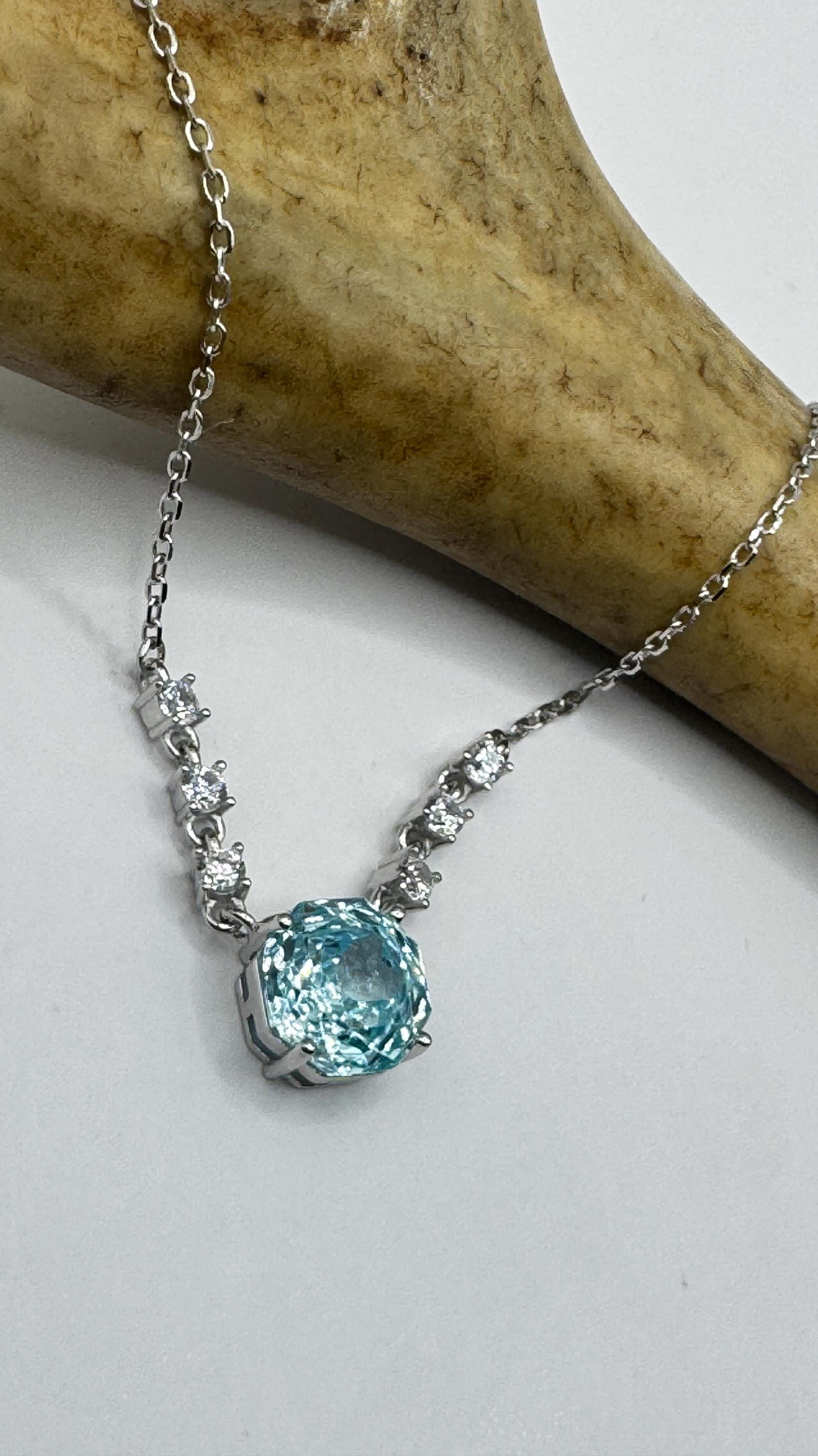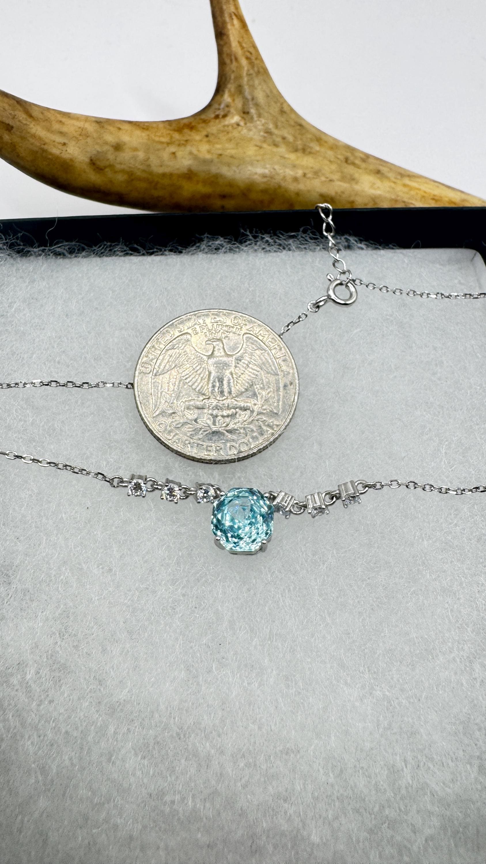Vintage 925 Sterling Silver Necklace featuring blue topaz Cubic Zirconia framed with clear crystal CZ. Very unusual flower, cut stone... Read more