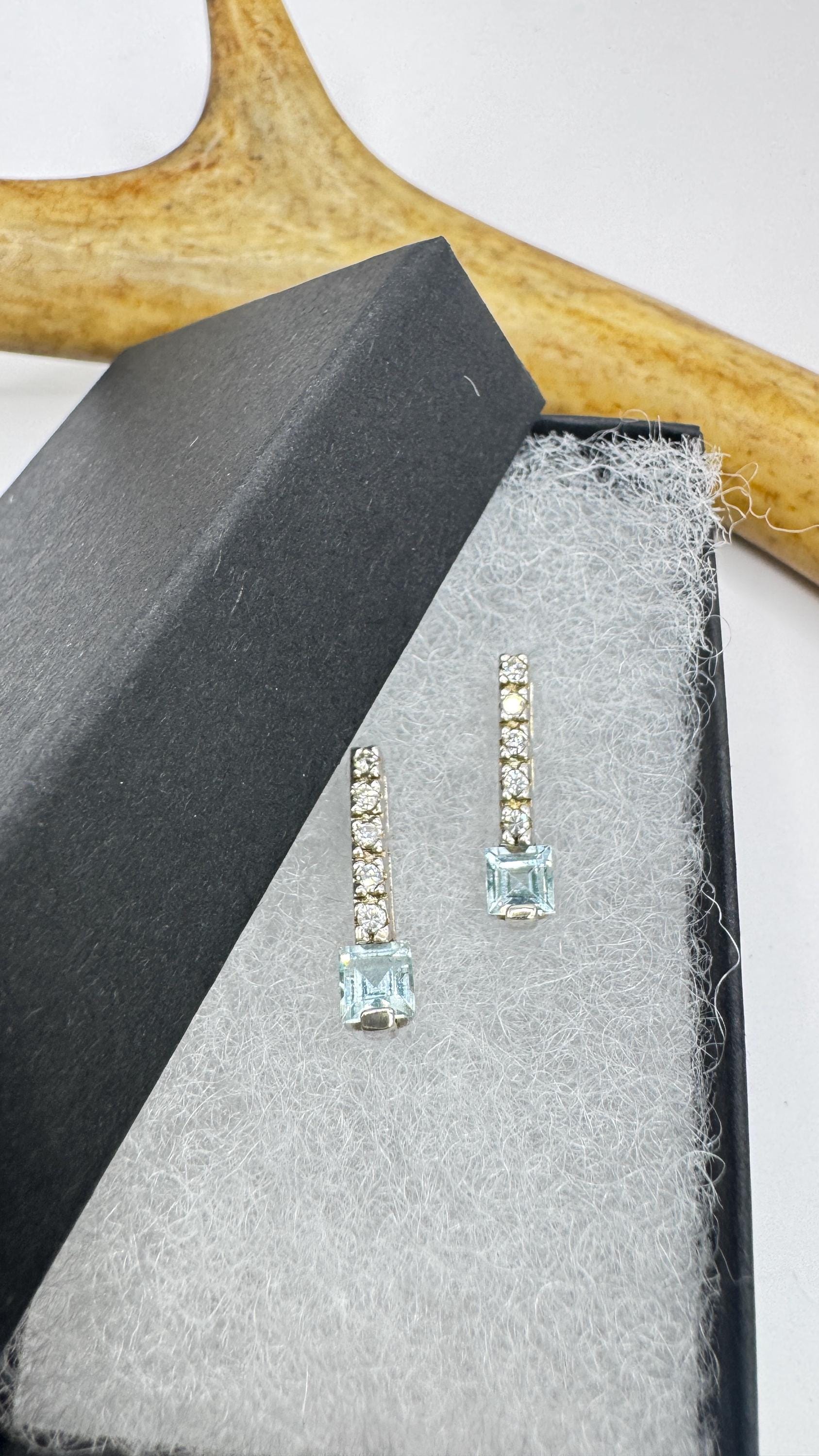 Vintage Blue Topaz & Sapphire 925 Sterling Silver earrings