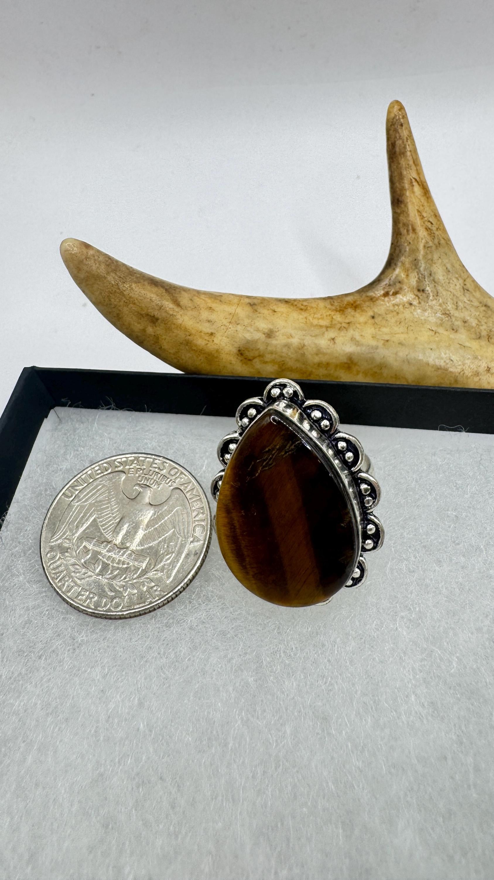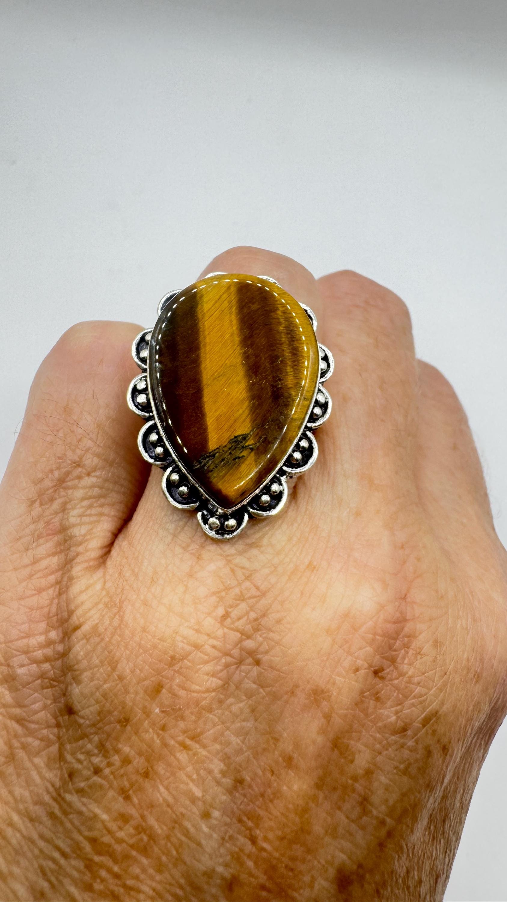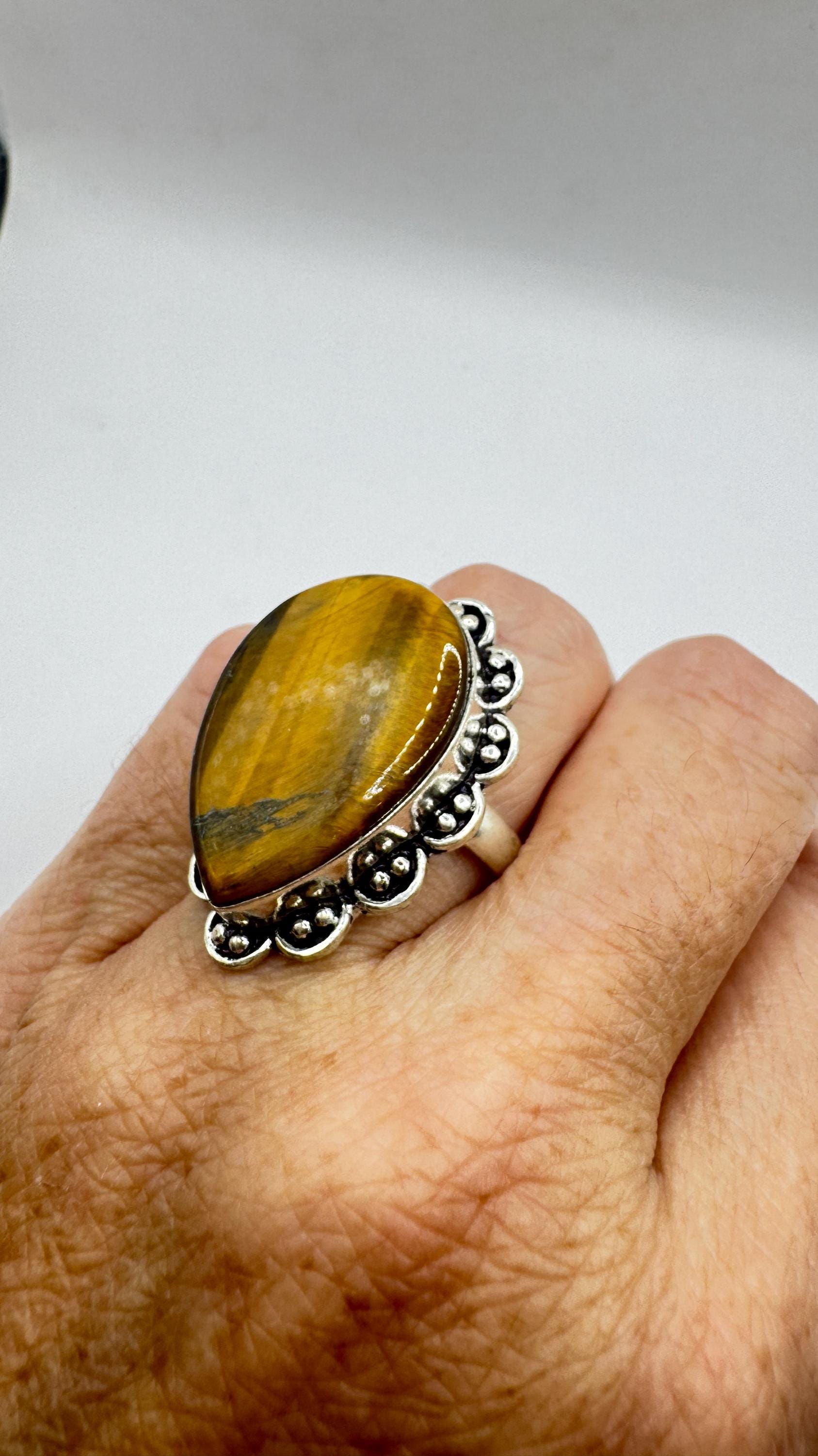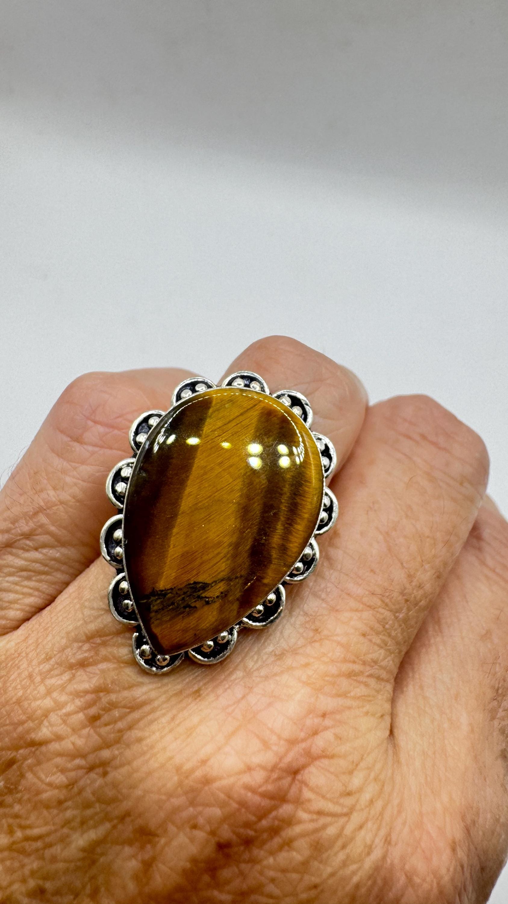 vintage Golden Tiger eye statement ring huge boho funky Setting is a silver finished bronze setting May be marked 925... Read more