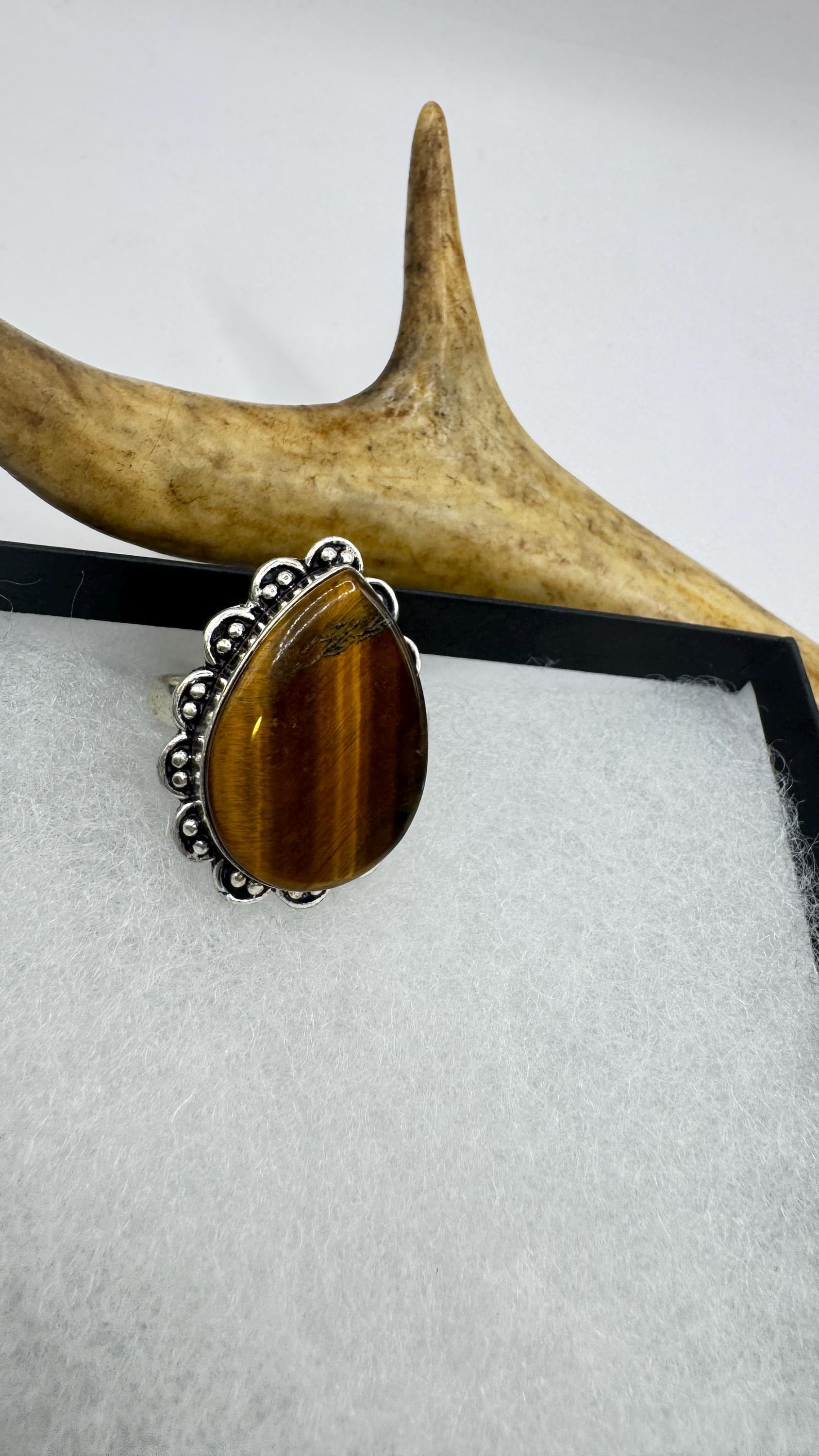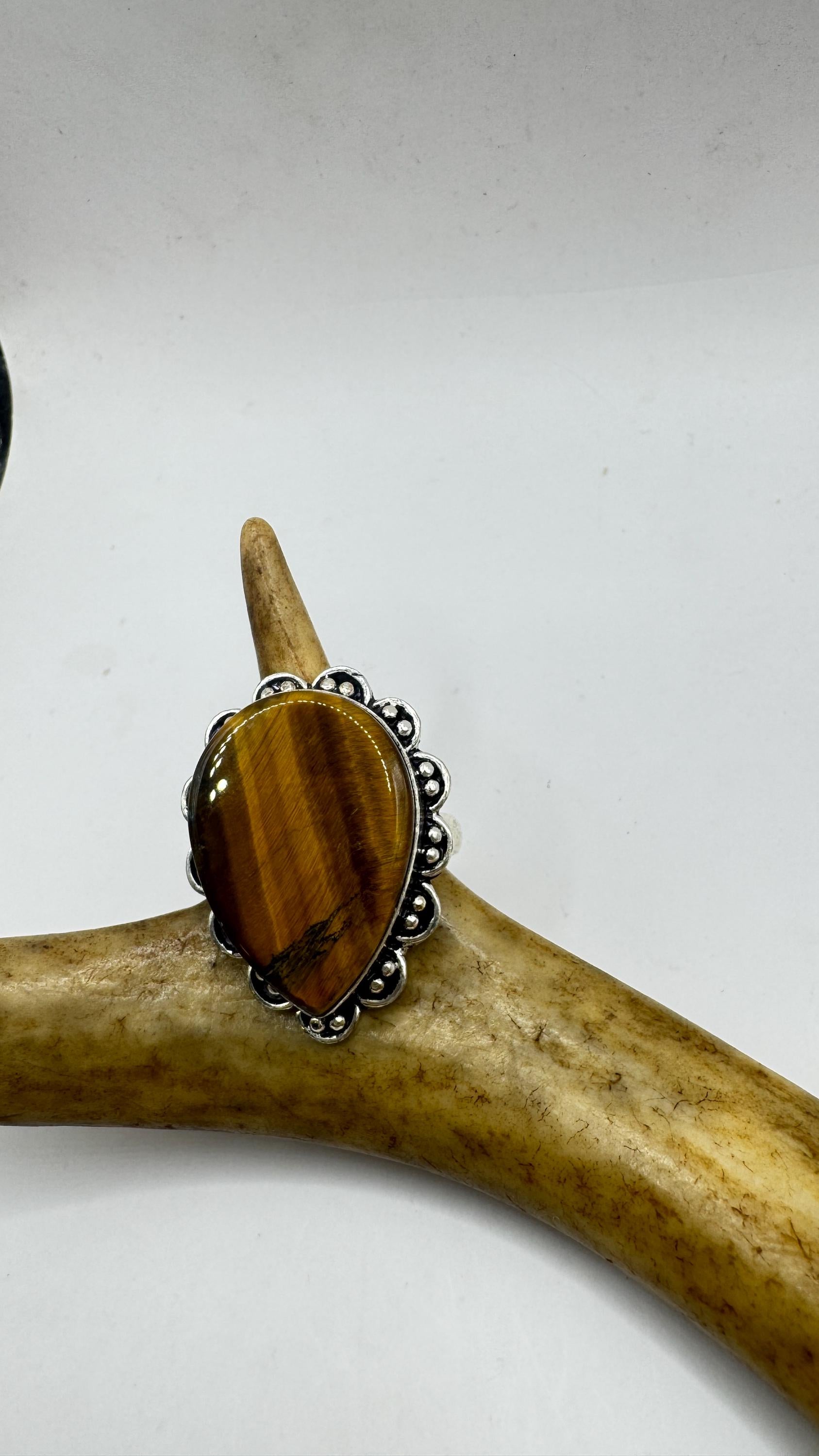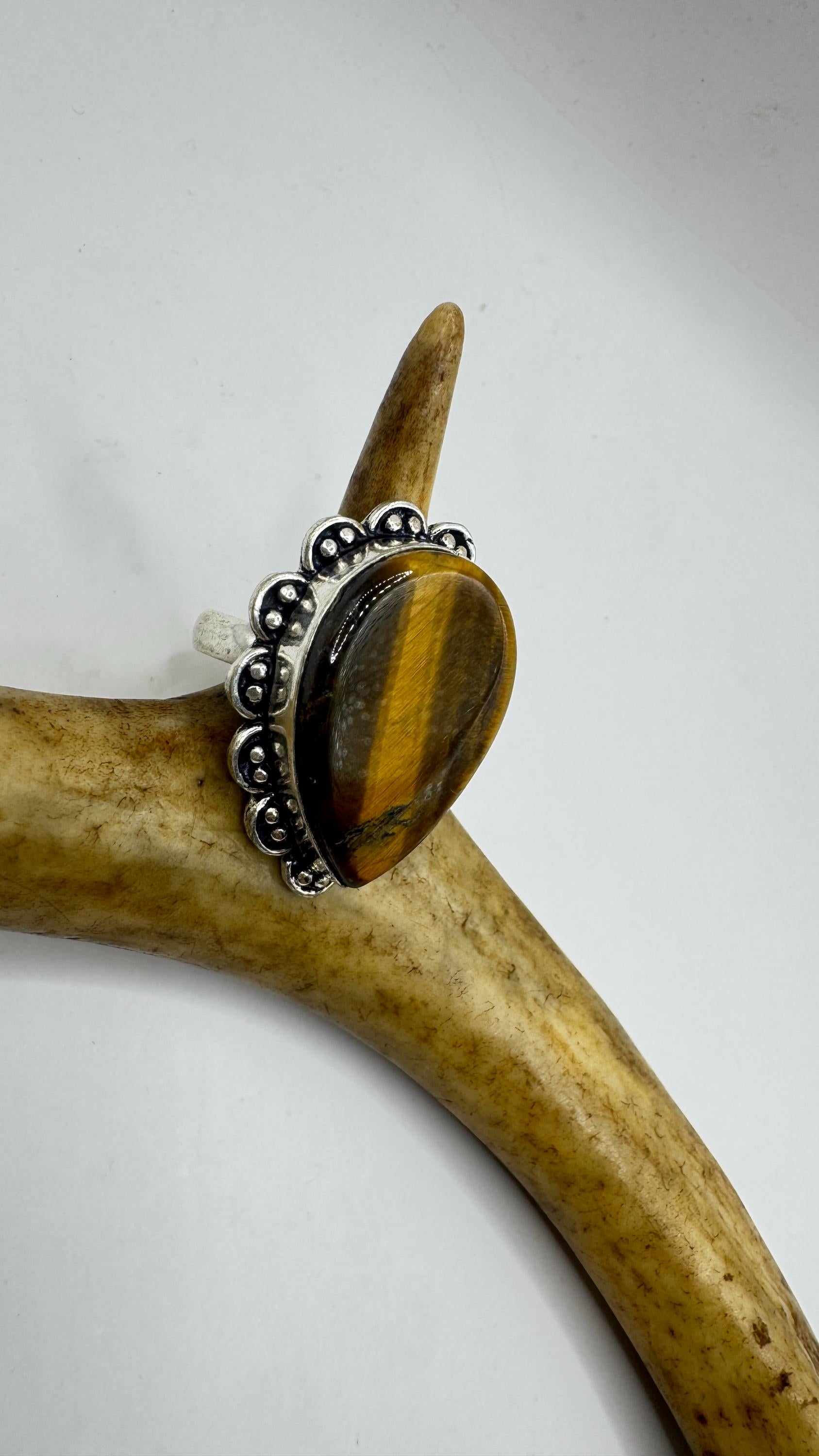 vintage Golden Tiger eye statement ring huge boho funky Setting is a silver finished bronze setting May be marked 925... Read more