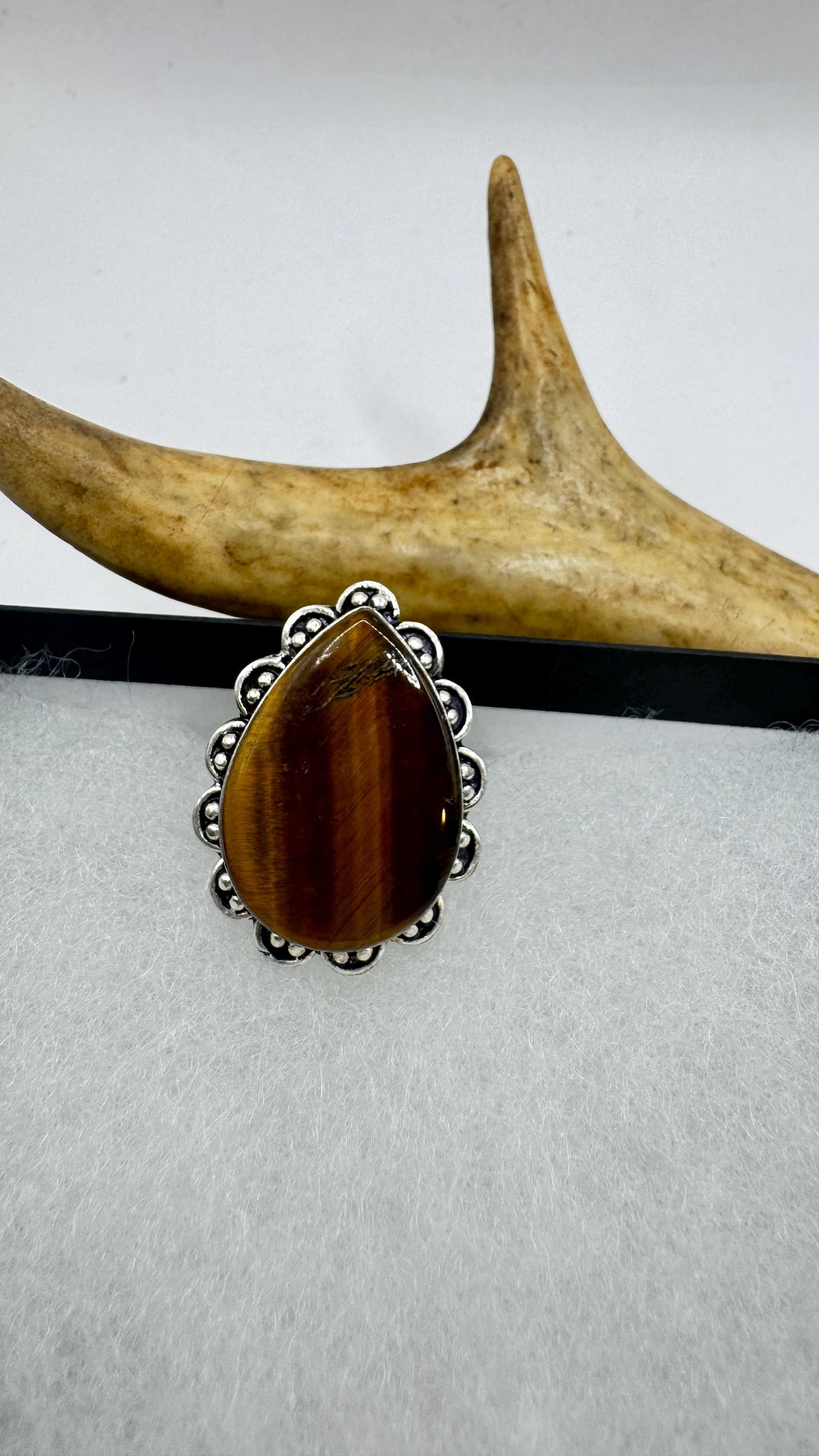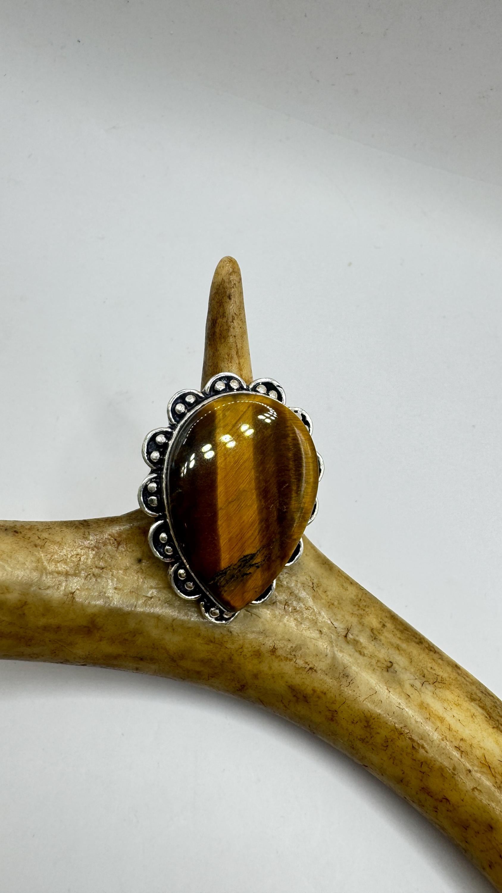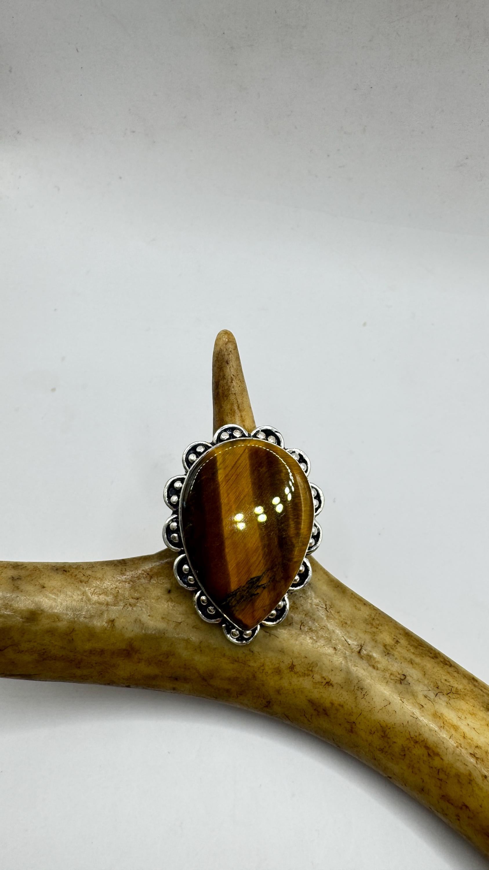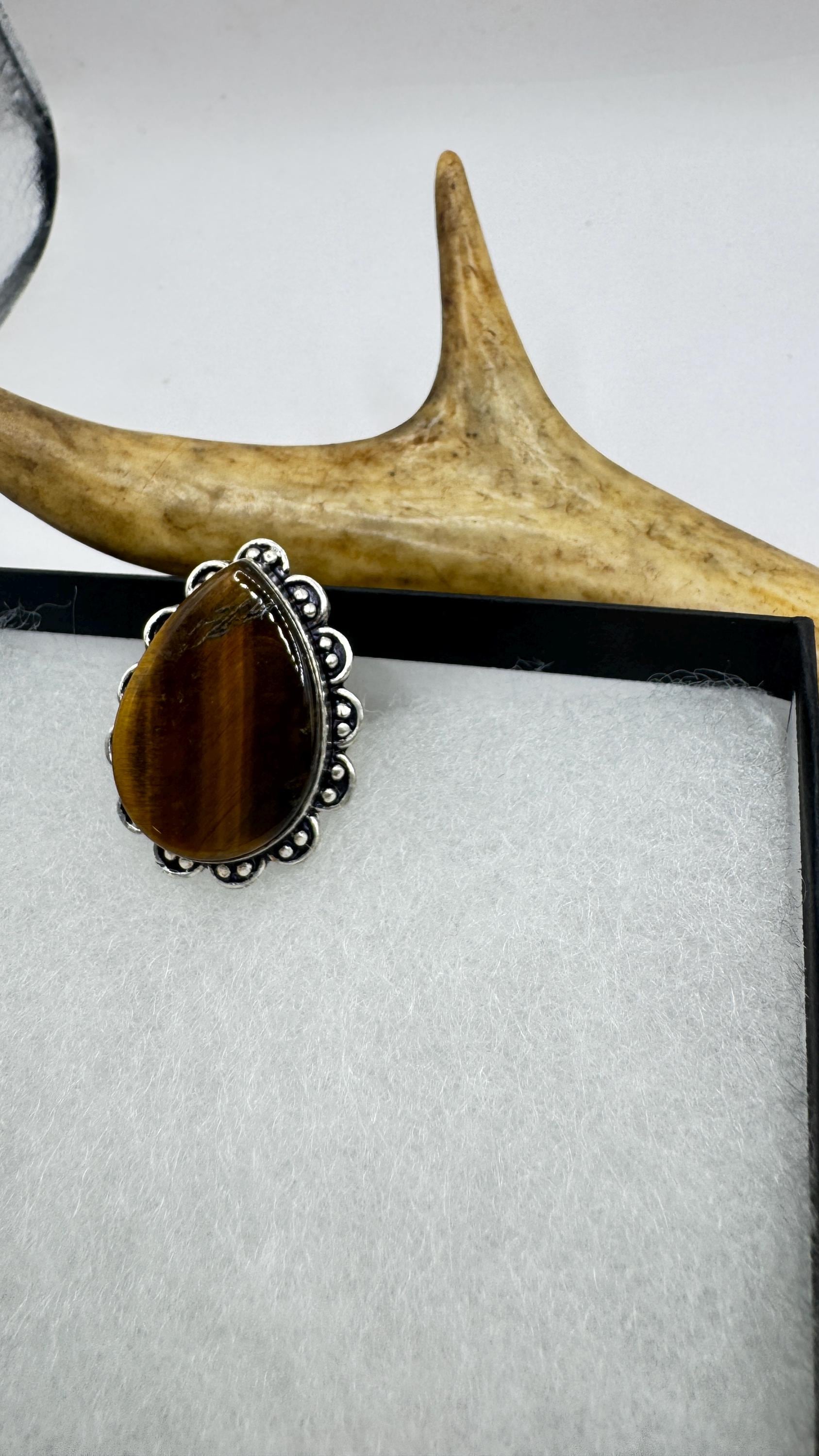 vintage Golden Tiger eye statement ring huge boho funky Setting is a silver finished bronze setting May be marked 925... Read more