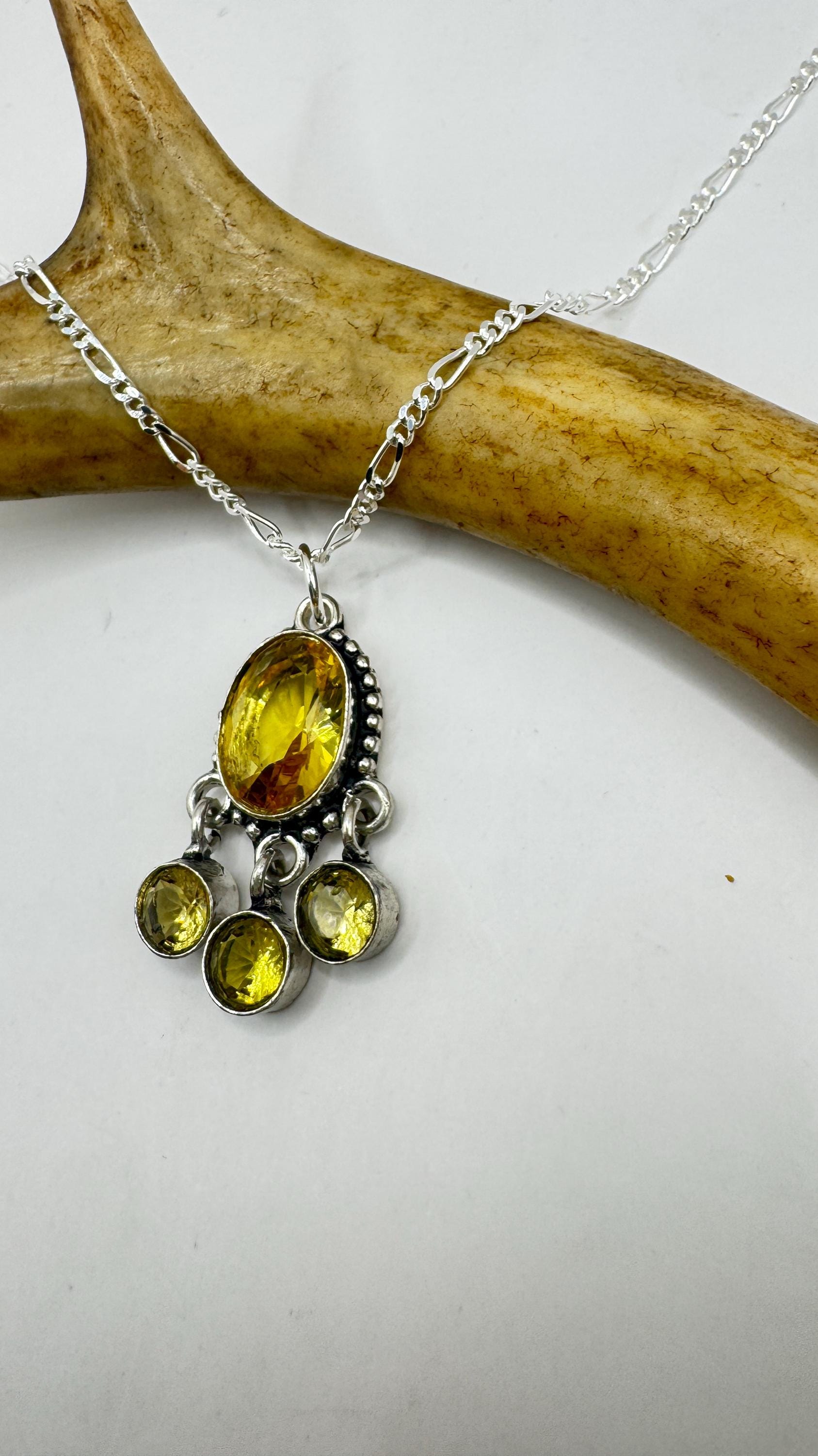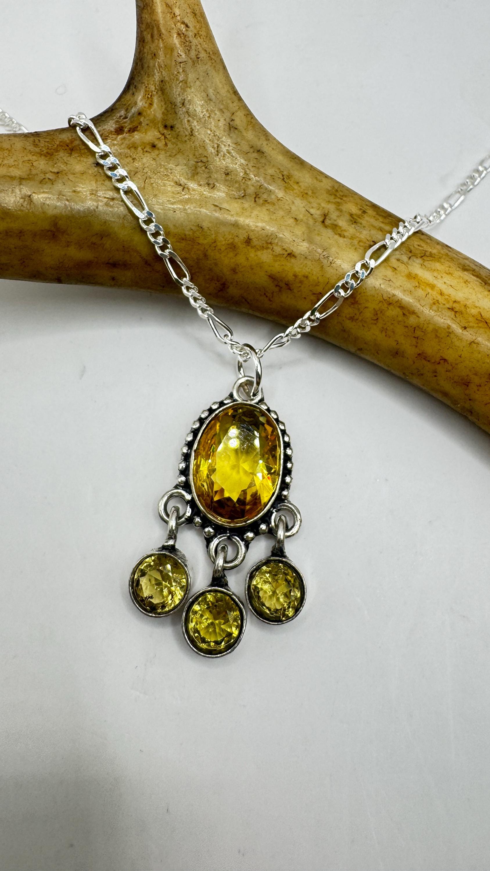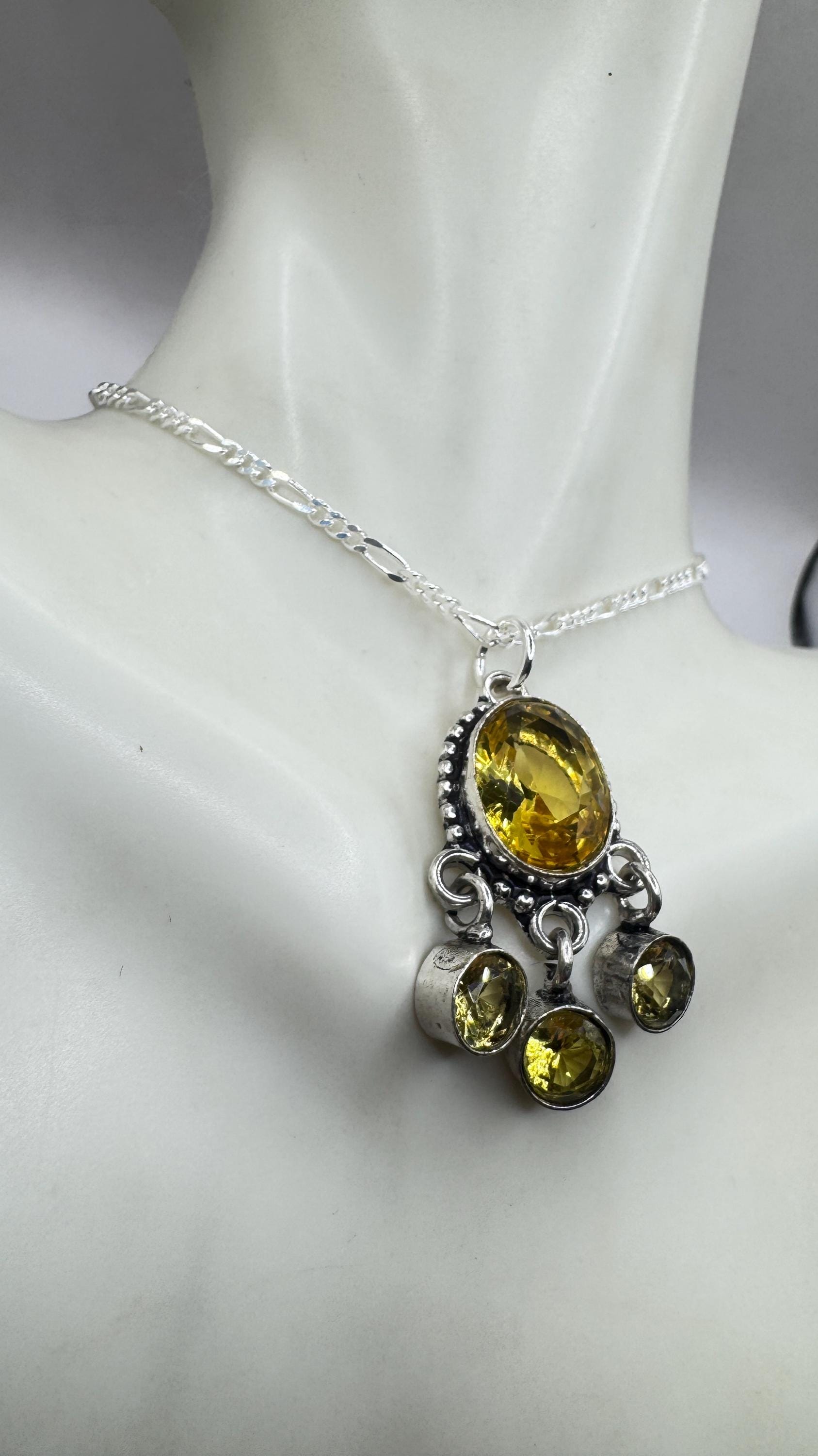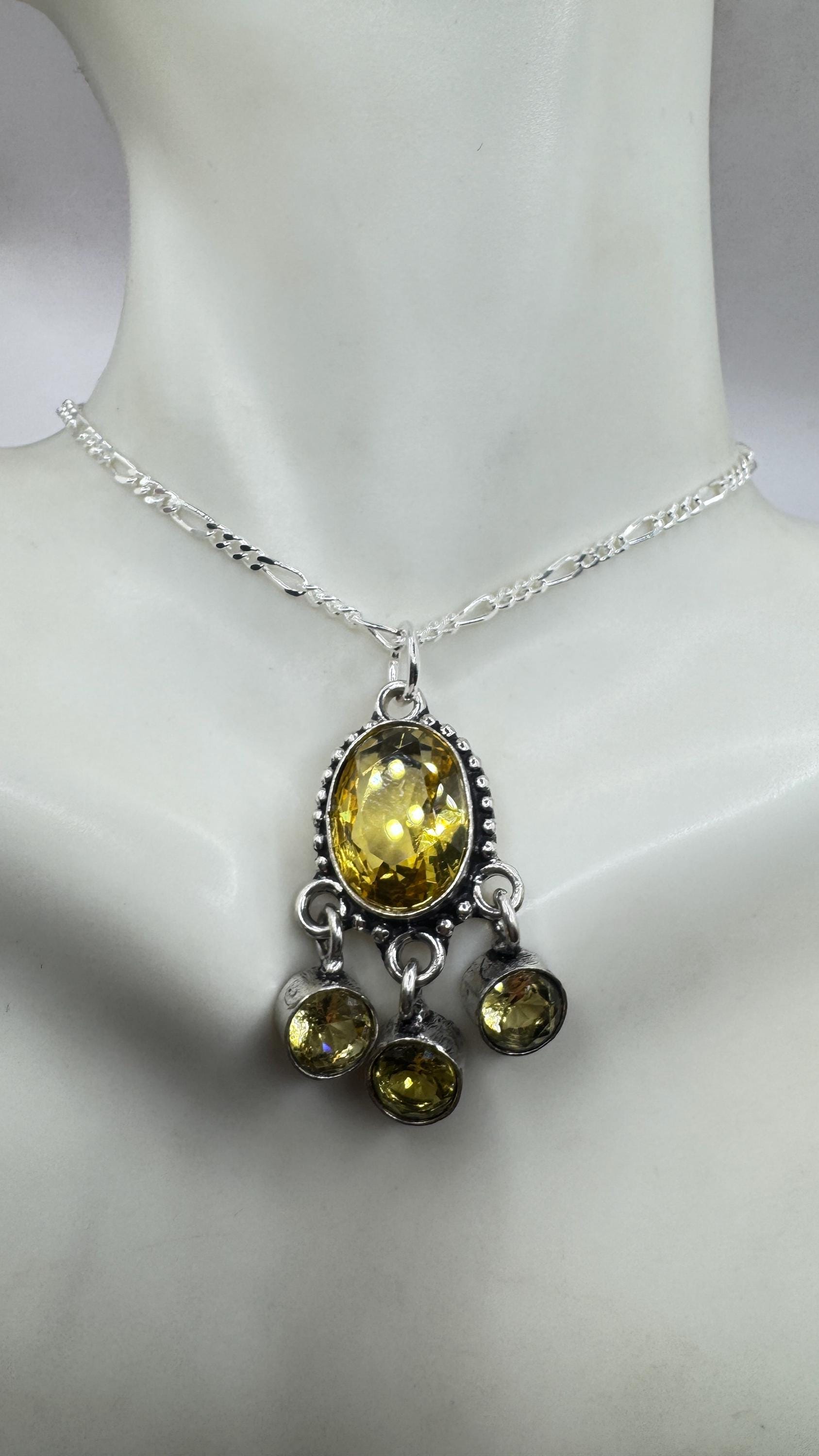 Vintage Citrine Necklace 925 Sterling Silver Chain | Statement Choker Stacking Layered