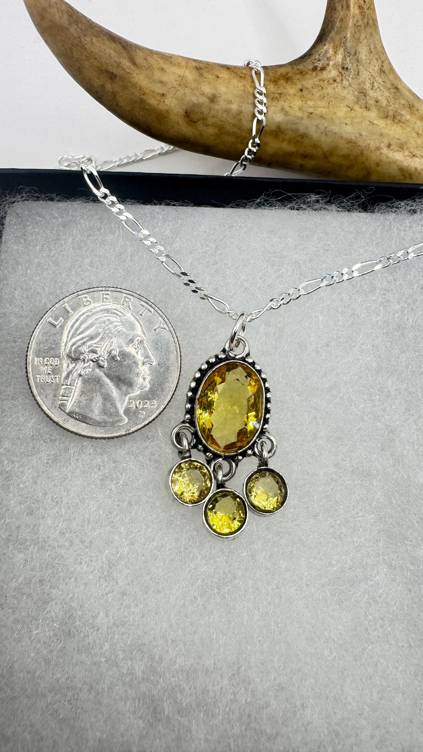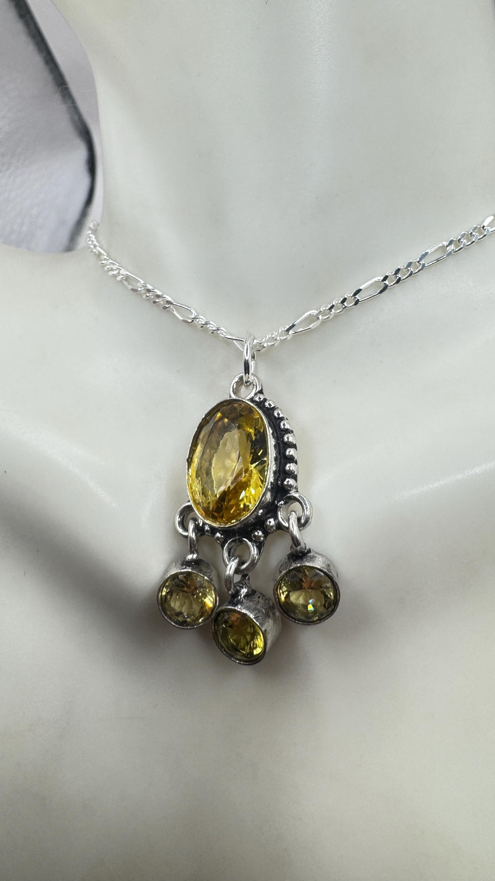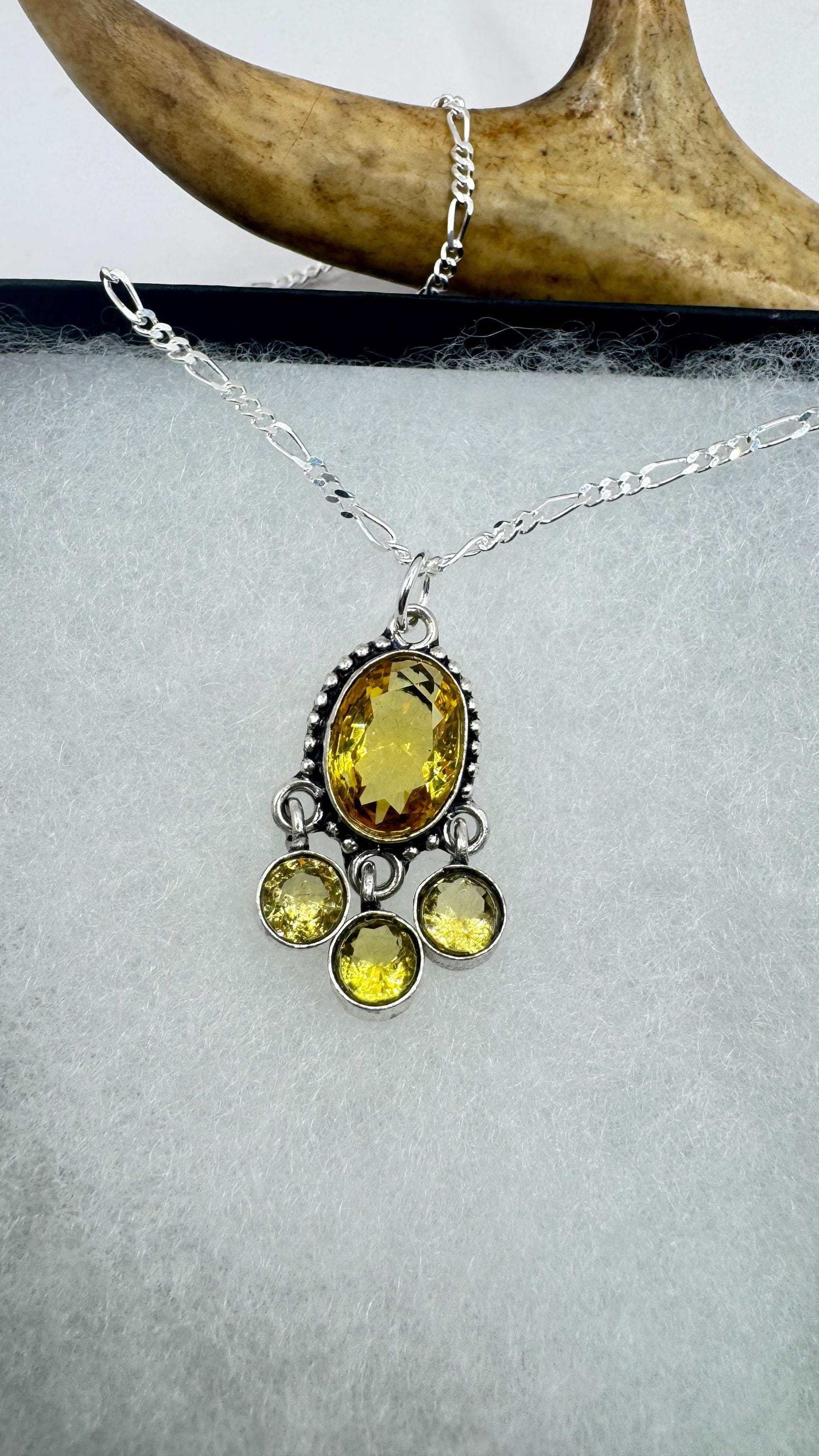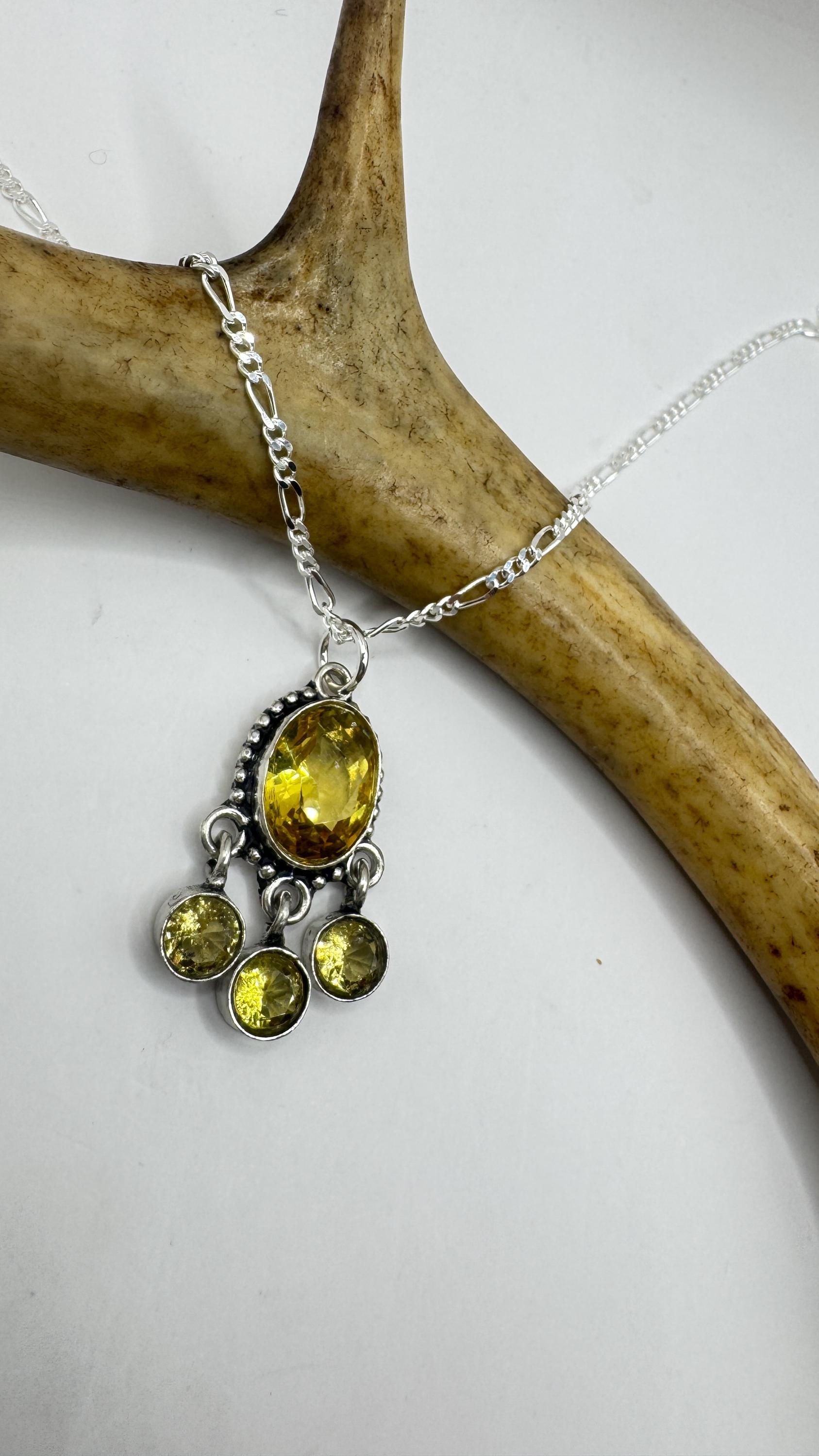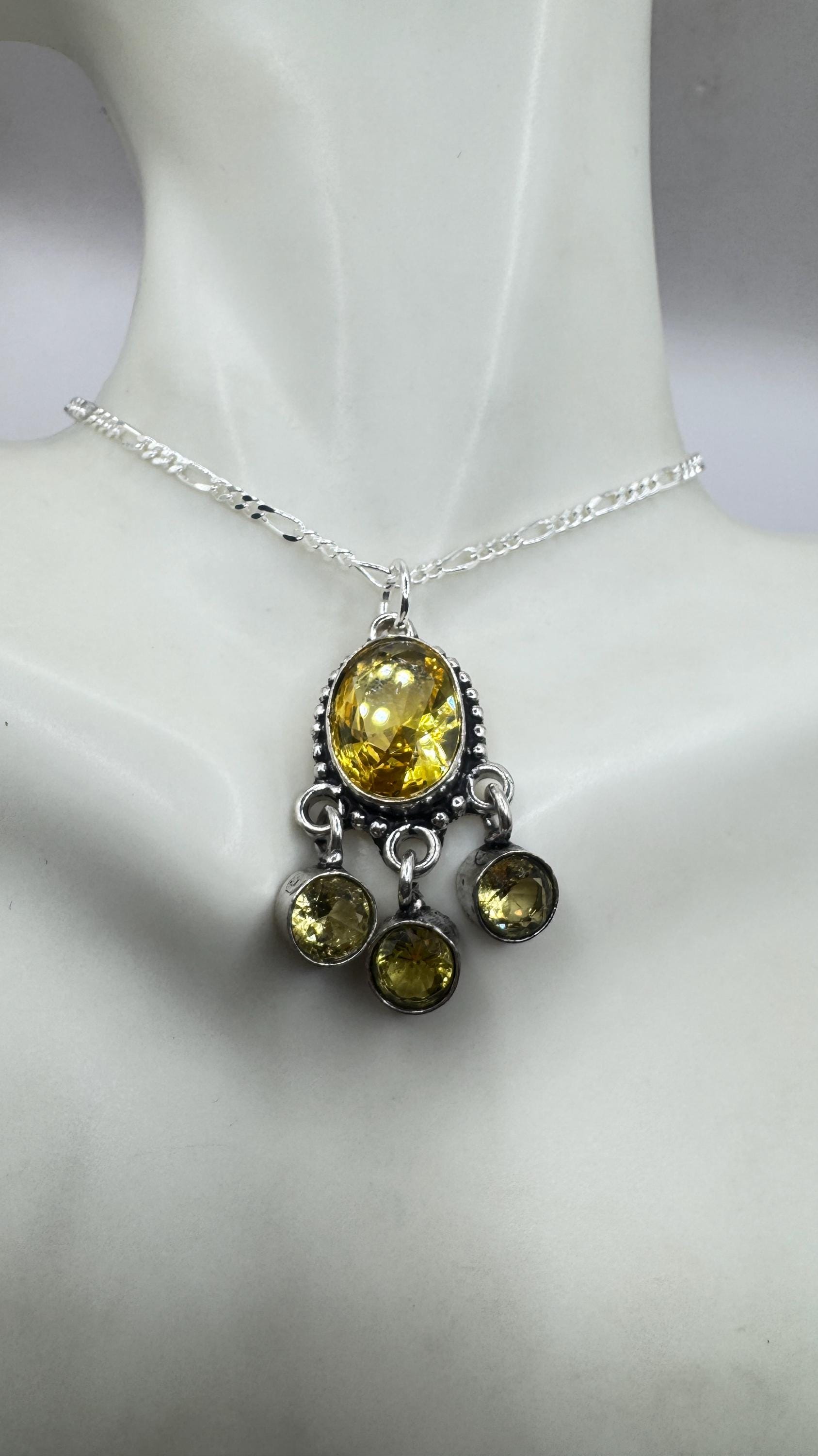 Vintage Citrine Necklace 925 Sterling Silver Chain | Statement Choker Stacking Layered