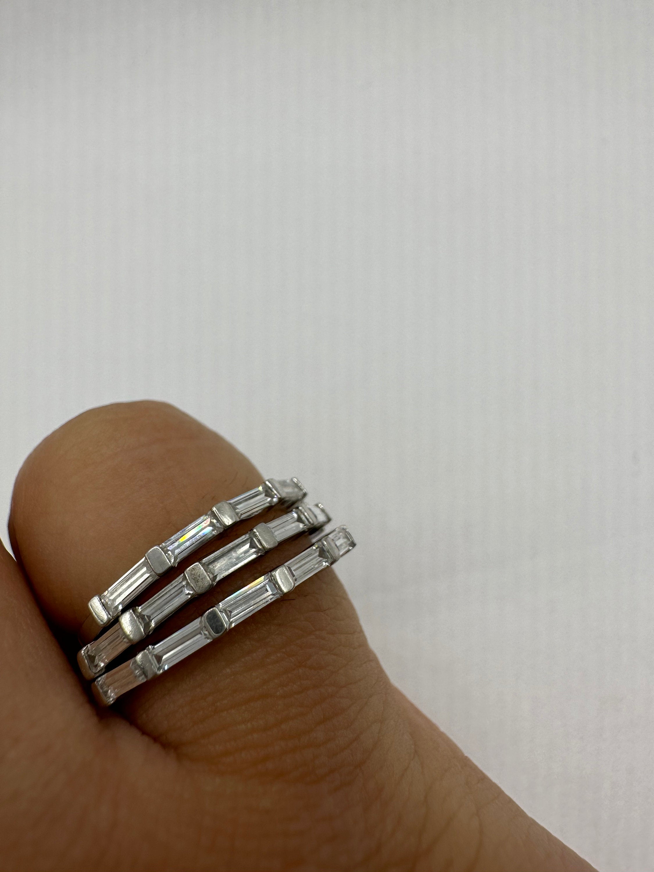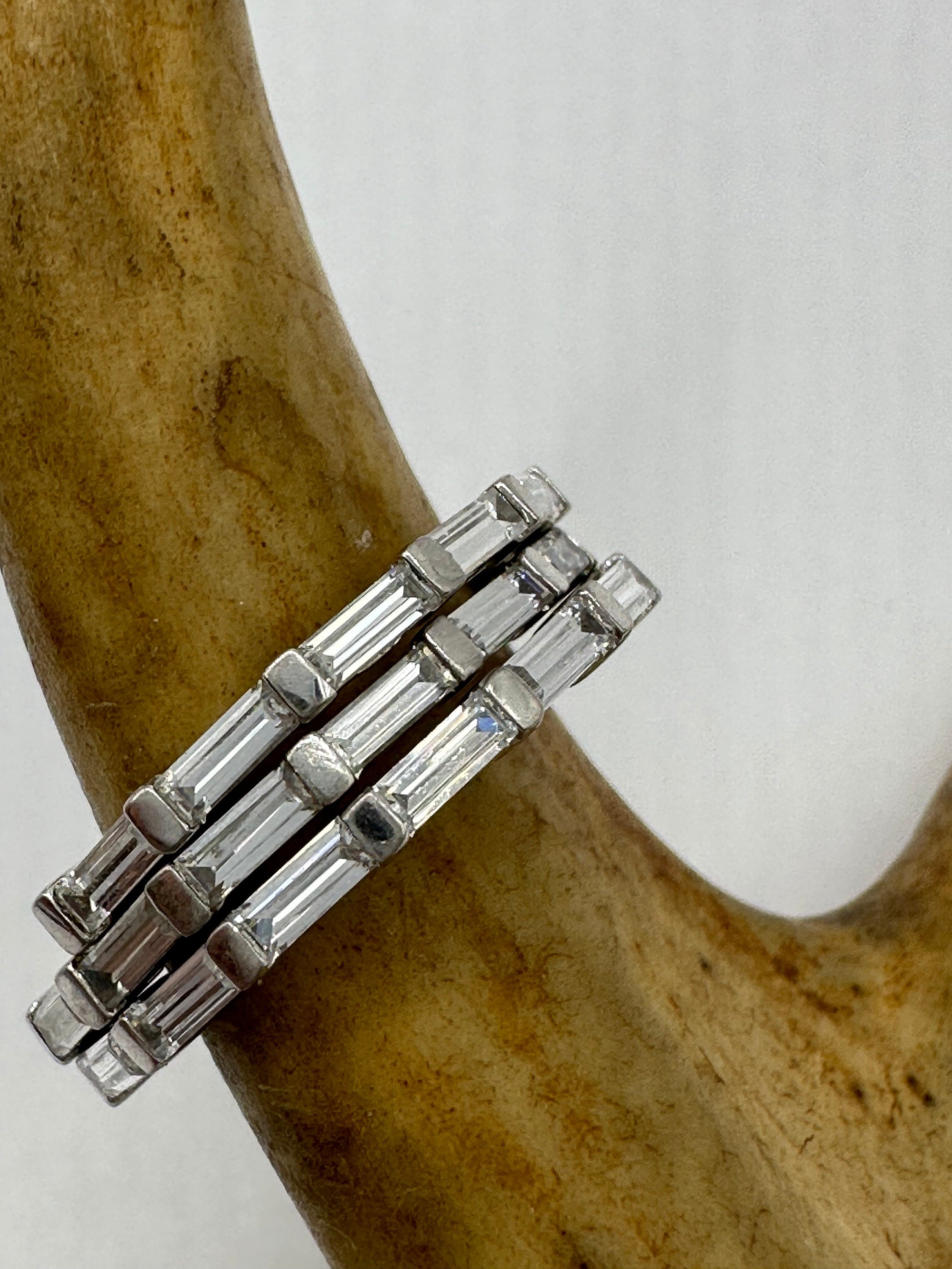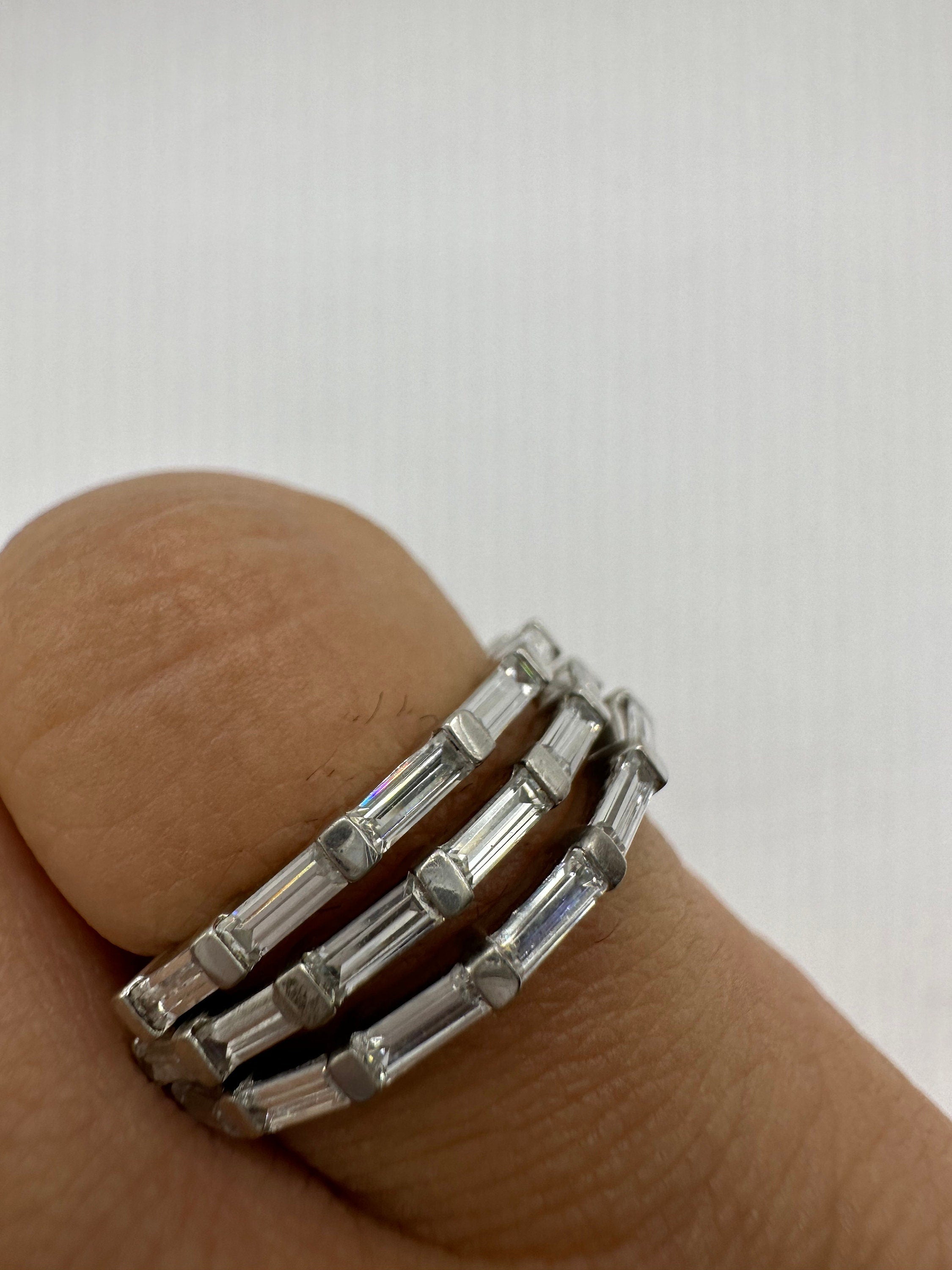 Vintage clear crystal stacking Wedding Ring Band set in 925 Sterling Silver wedding band or promise ring. 2 x size... Read more