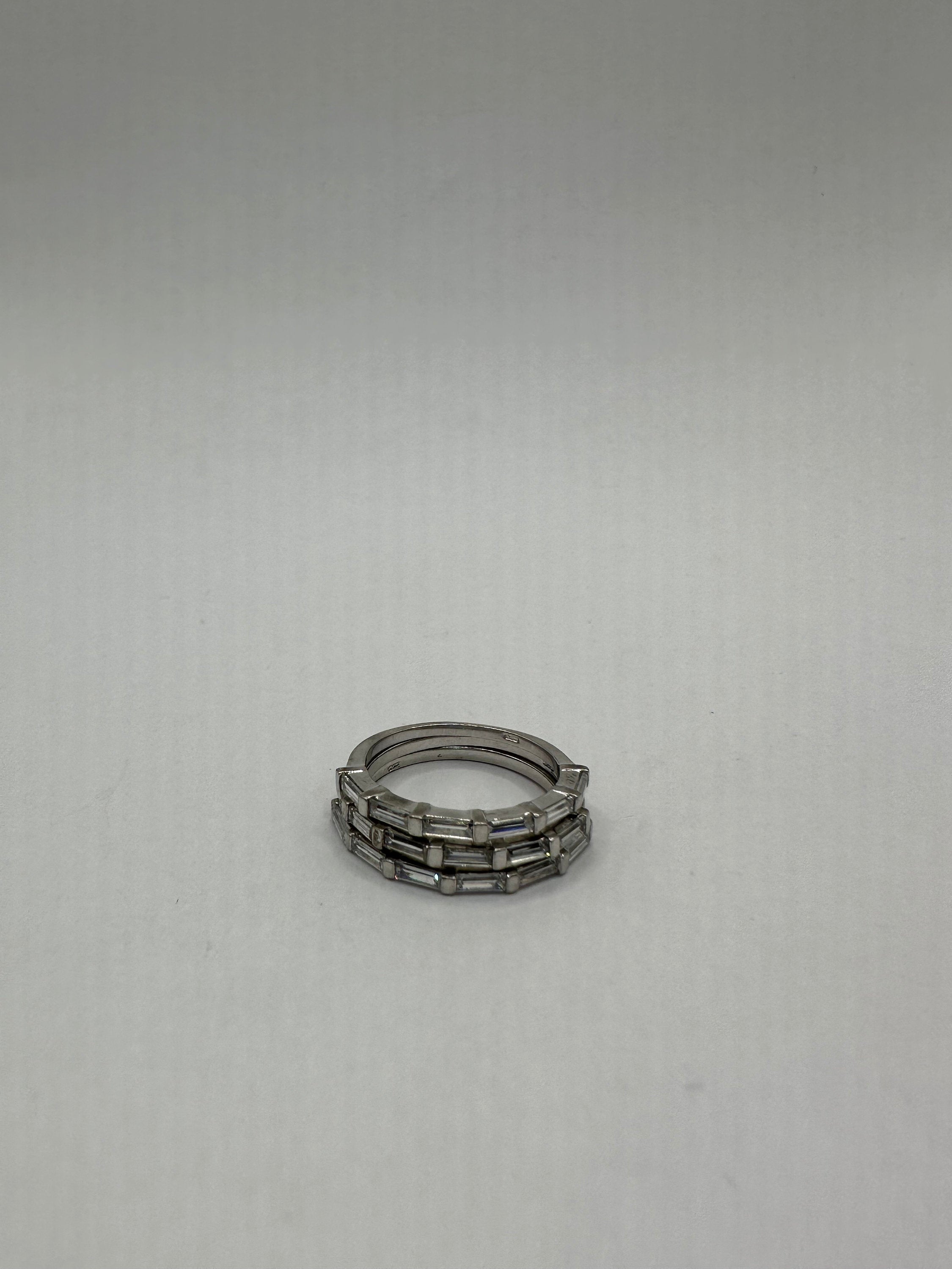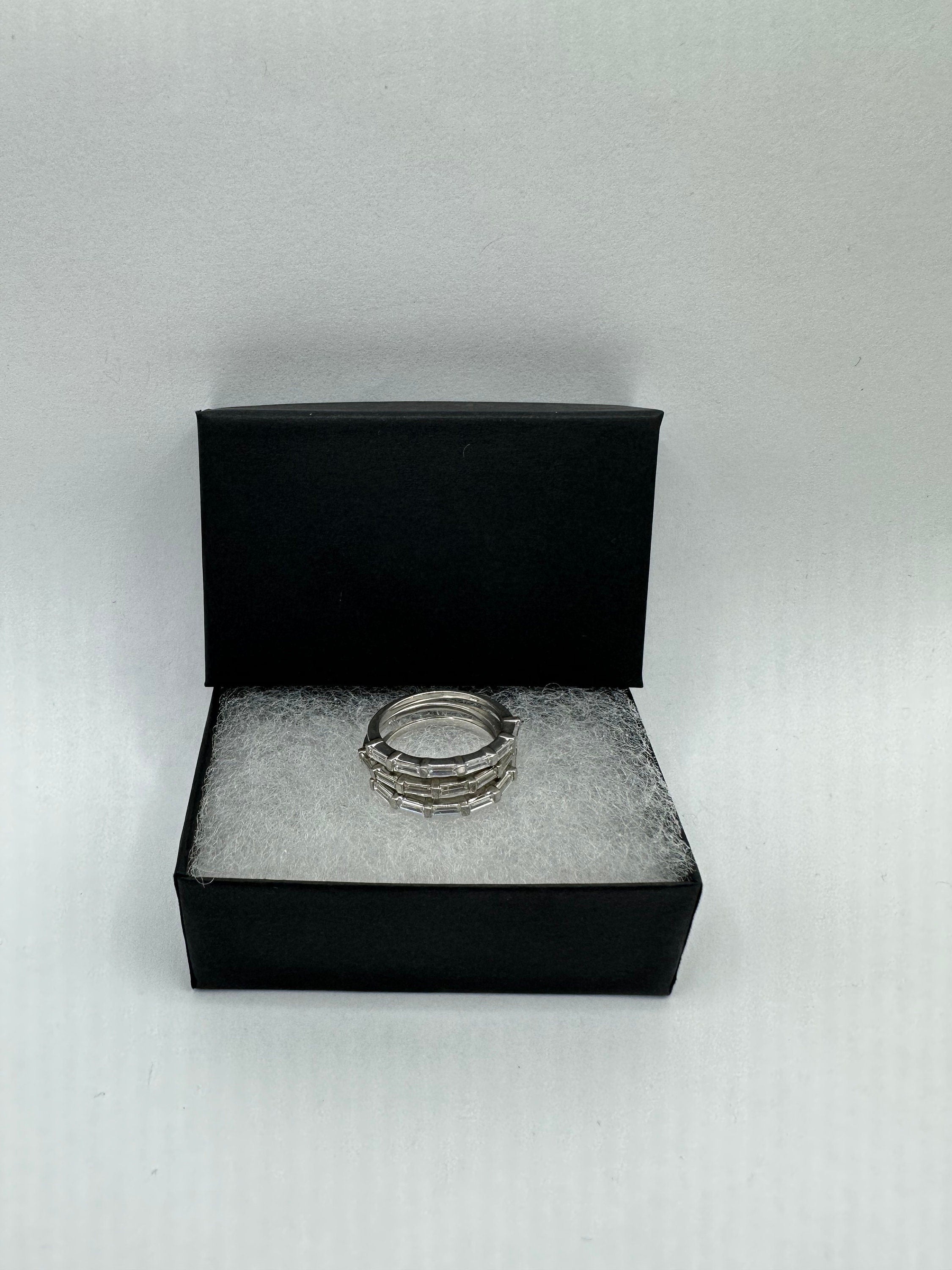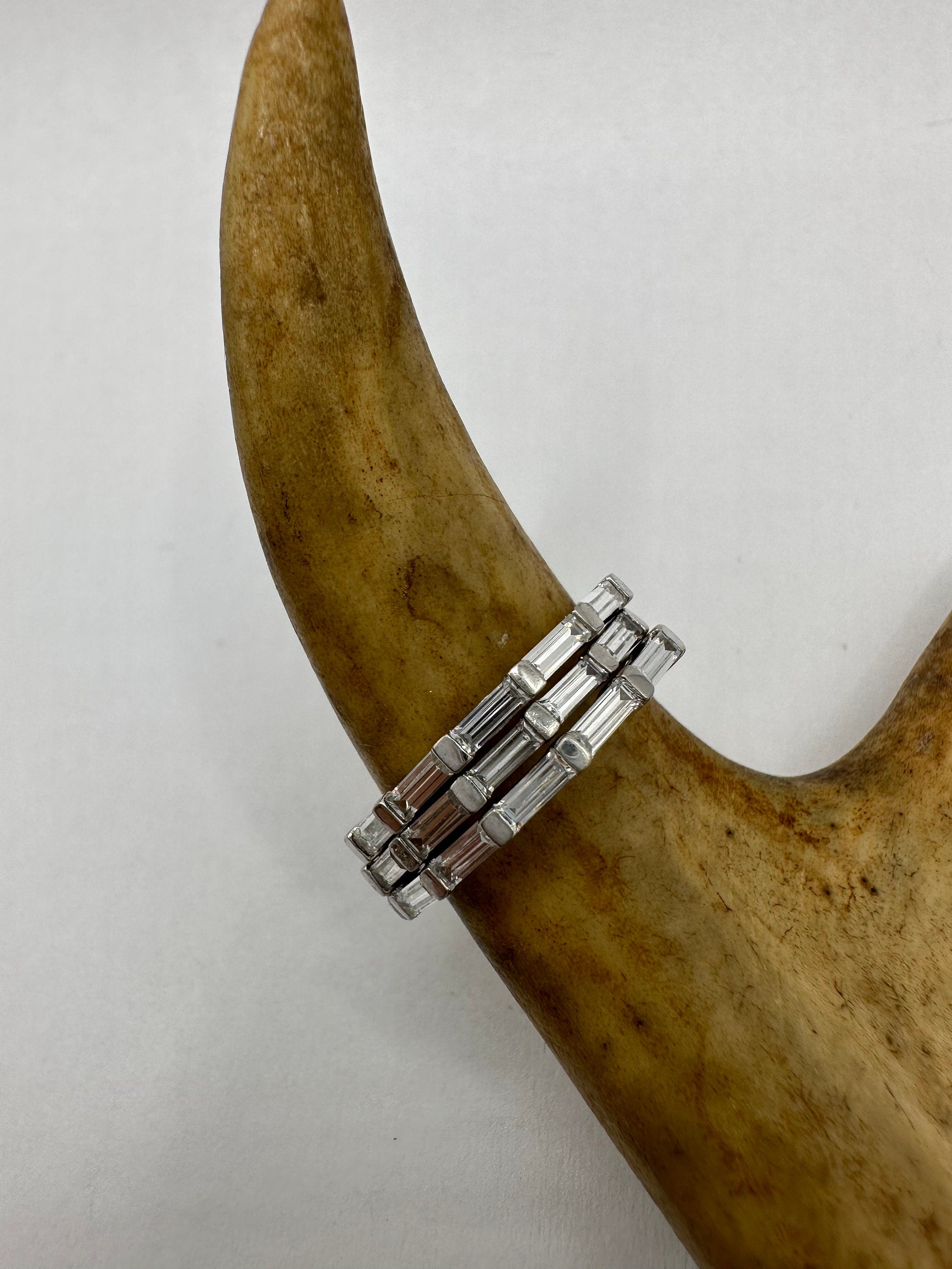 Vintage clear crystal stacking Wedding Ring Band set in 925 Sterling Silver wedding band or promise ring. 2 x size... Read more