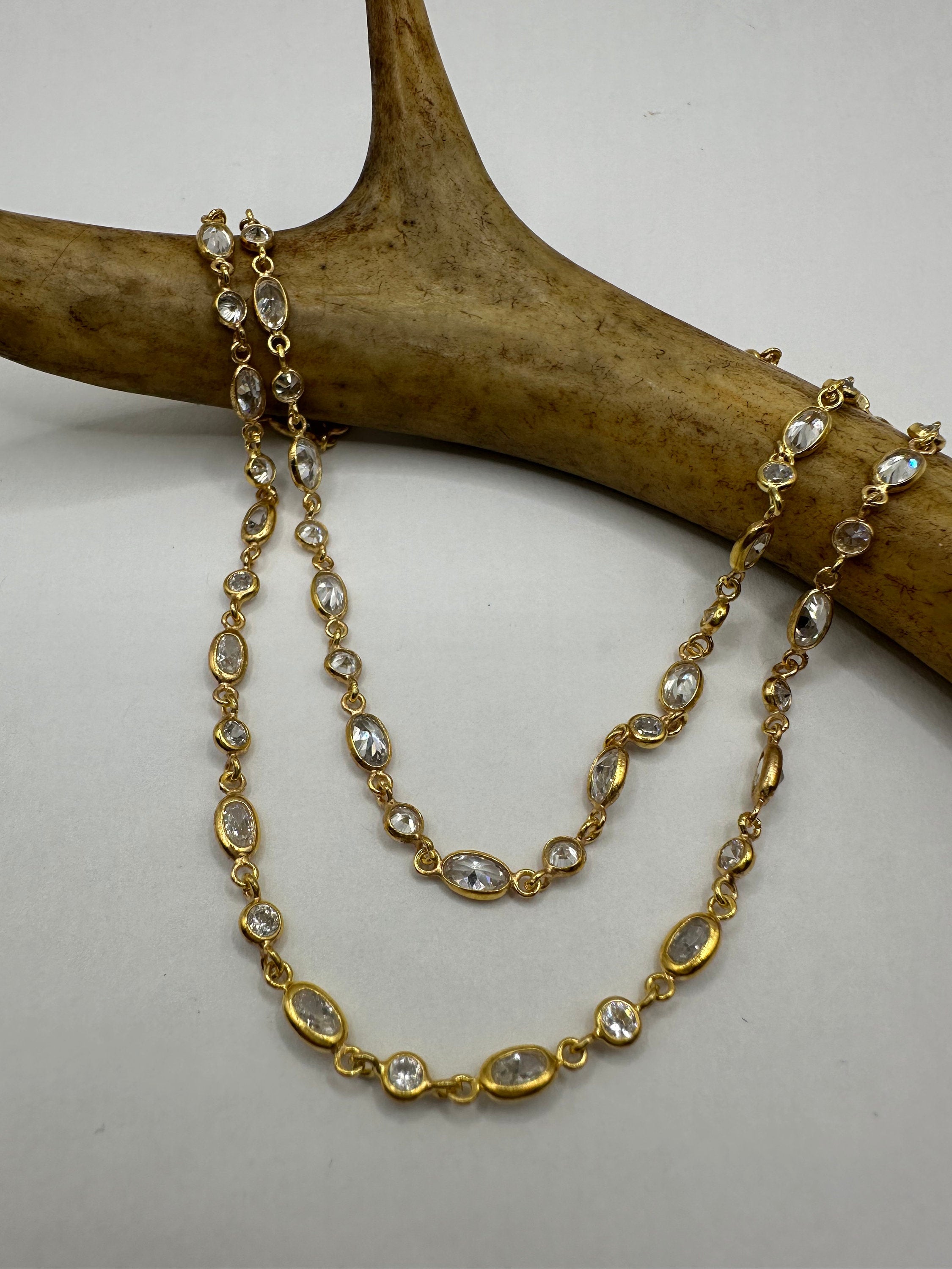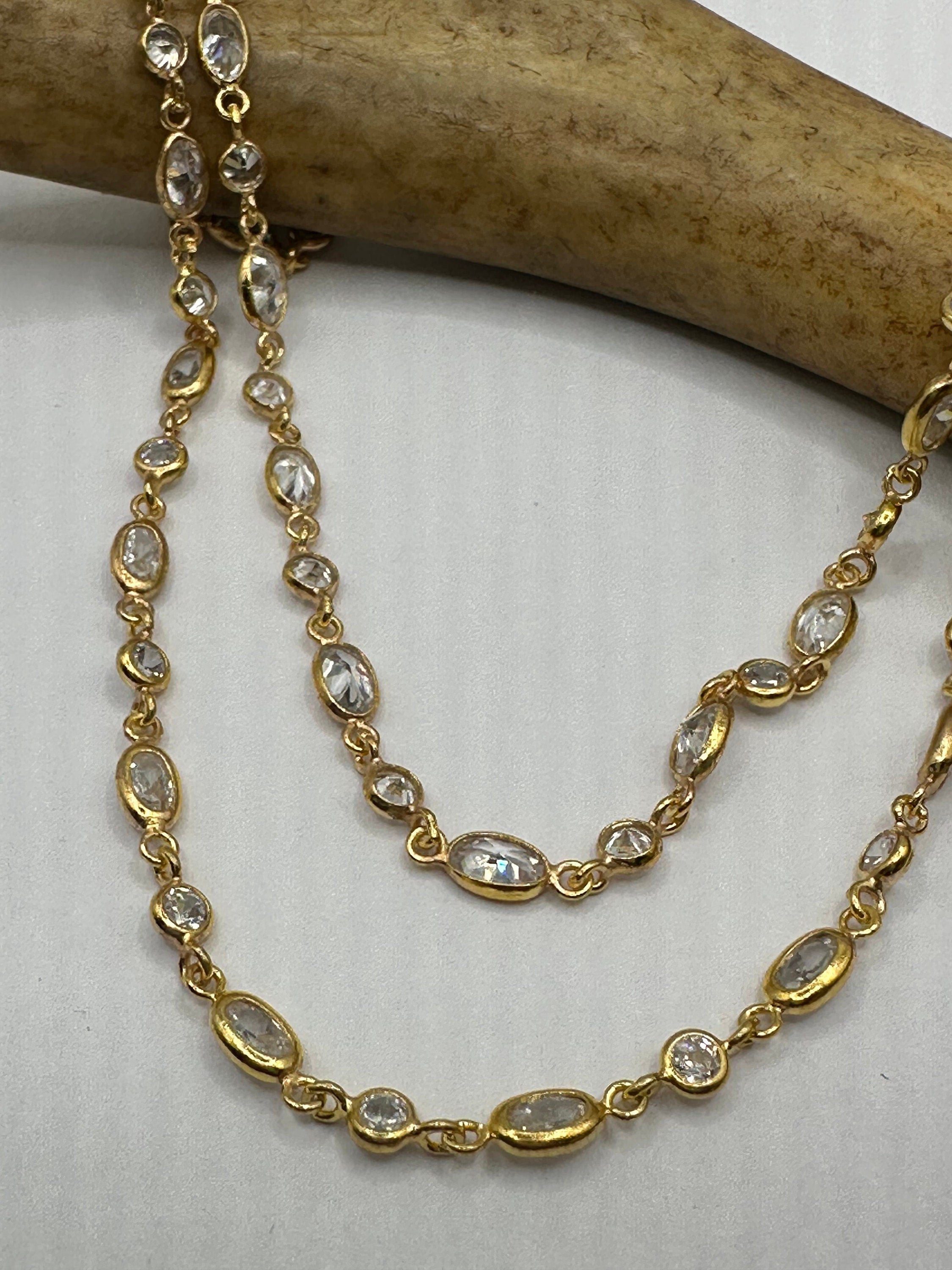Vintage Cubic Zirconia 925 Sterling Silver Chain Necklace - Elegant Jewelry