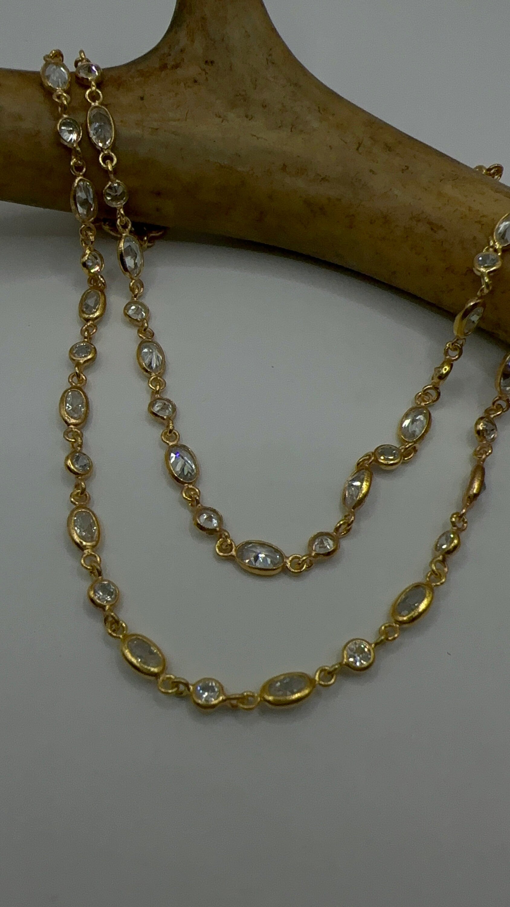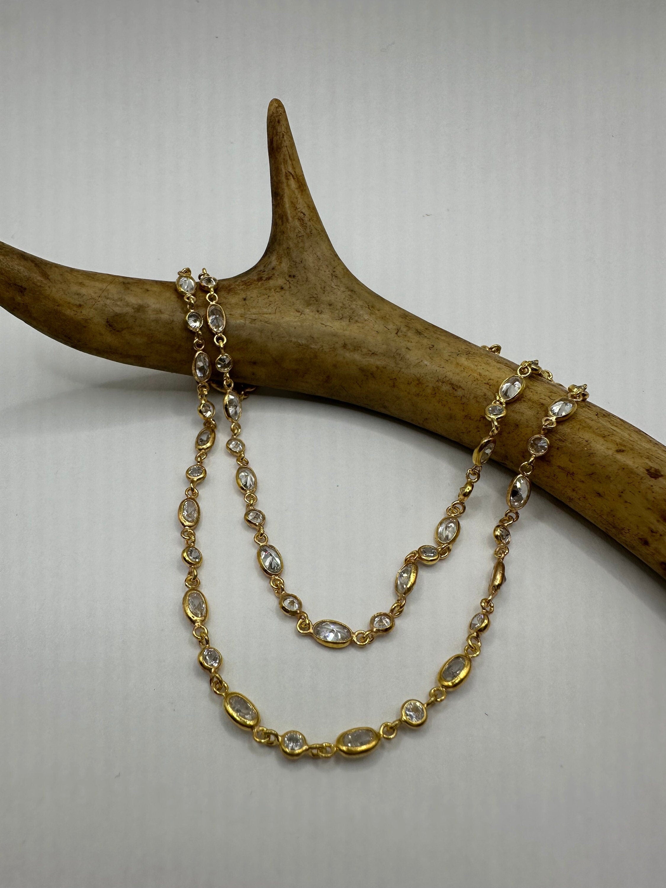 Vintage necklace golden 925 sterling silver Over an inch long hand set cubic zirconia Lovely etched design Matching 925 sterling... Read more