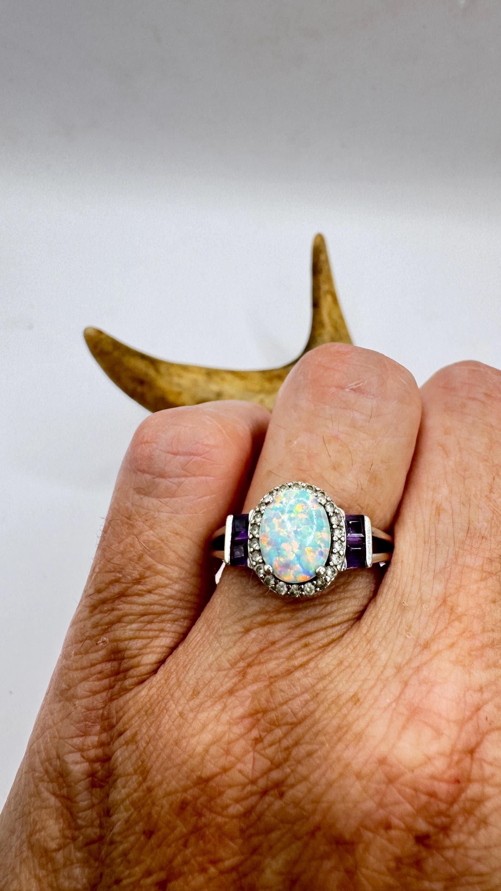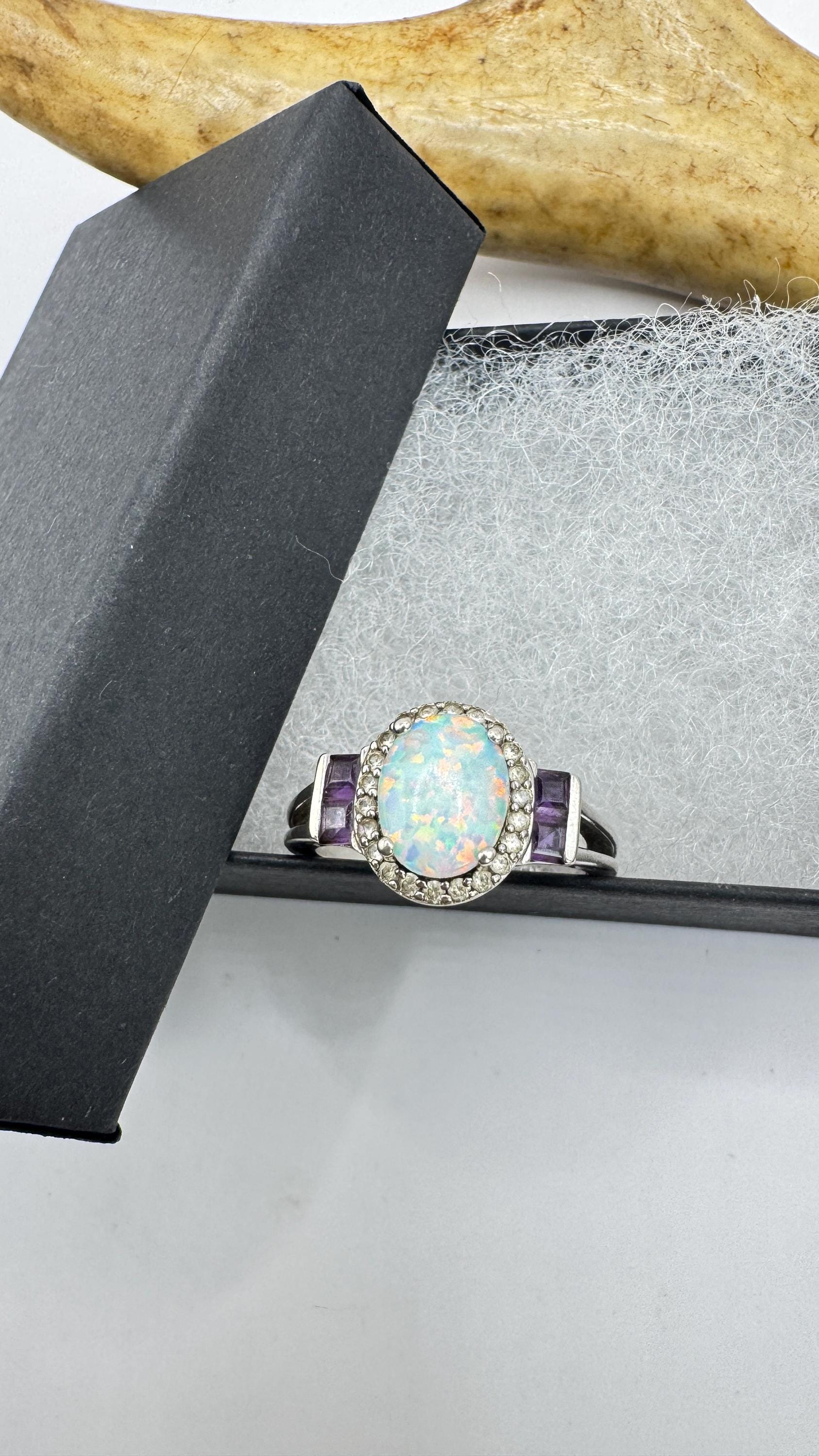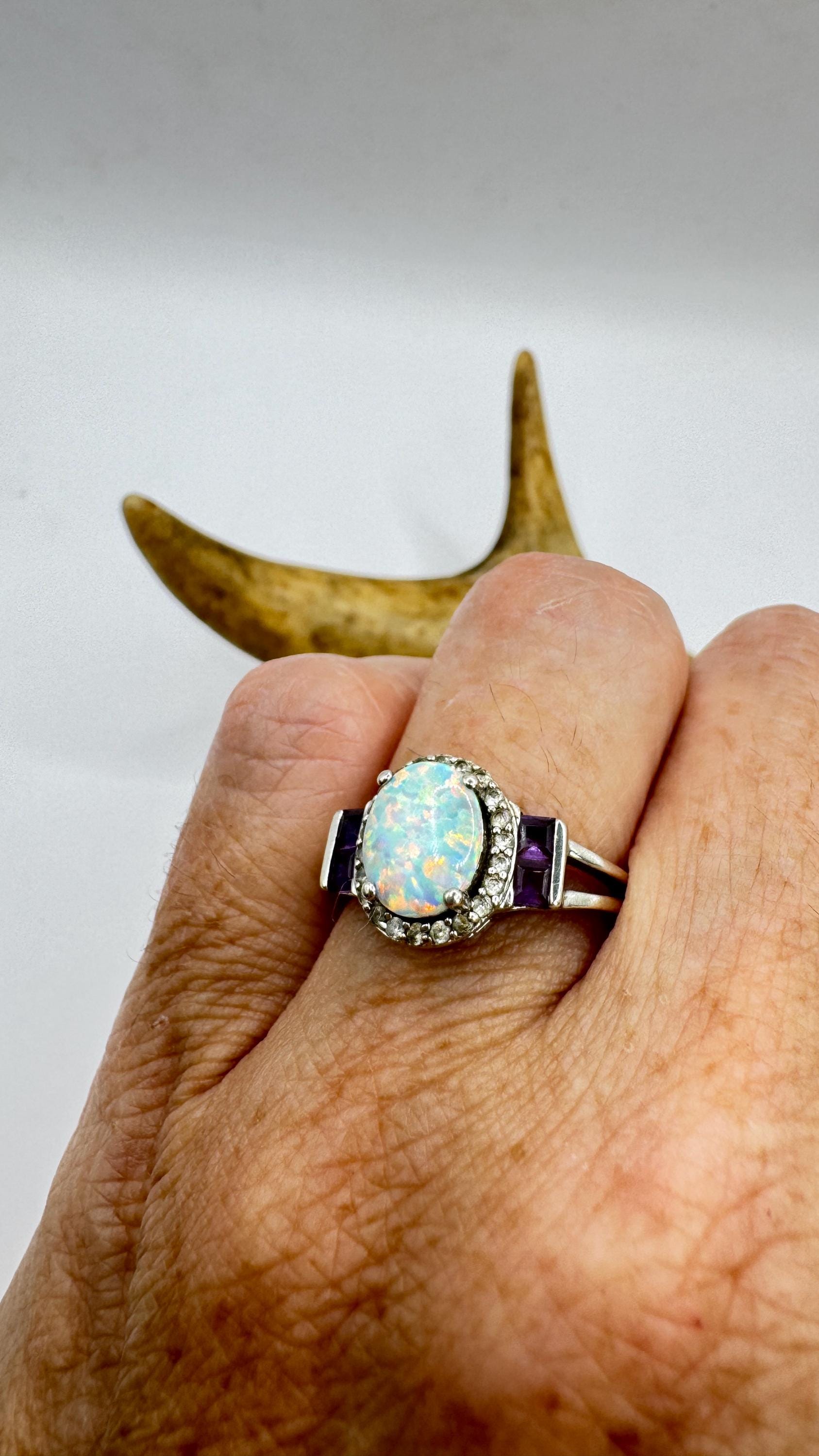 Vintage purple amethyst with white opal and diamond accent Great promise, engagement ring wedding Ring Band 925 Sterling Silver This... Read more