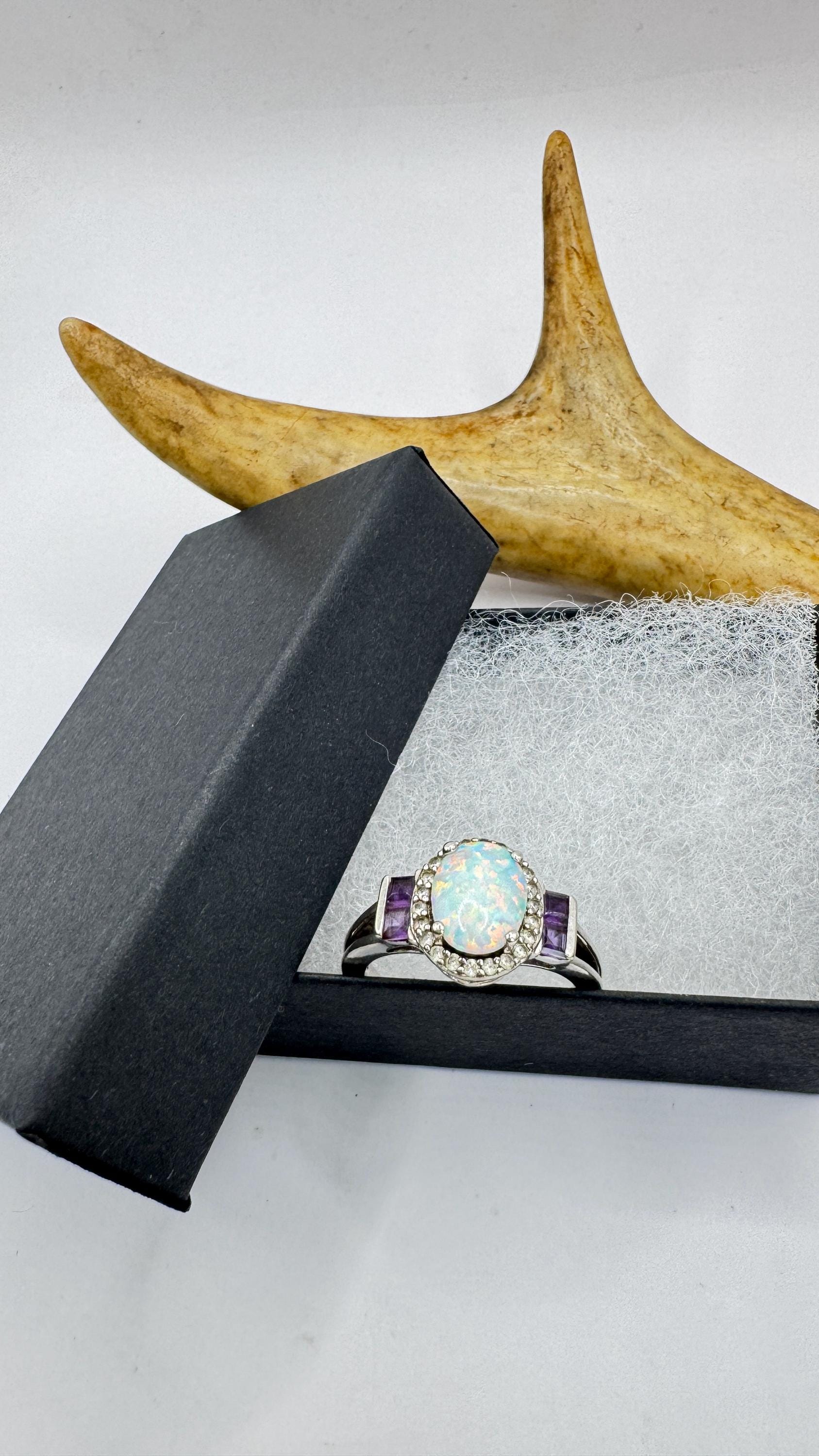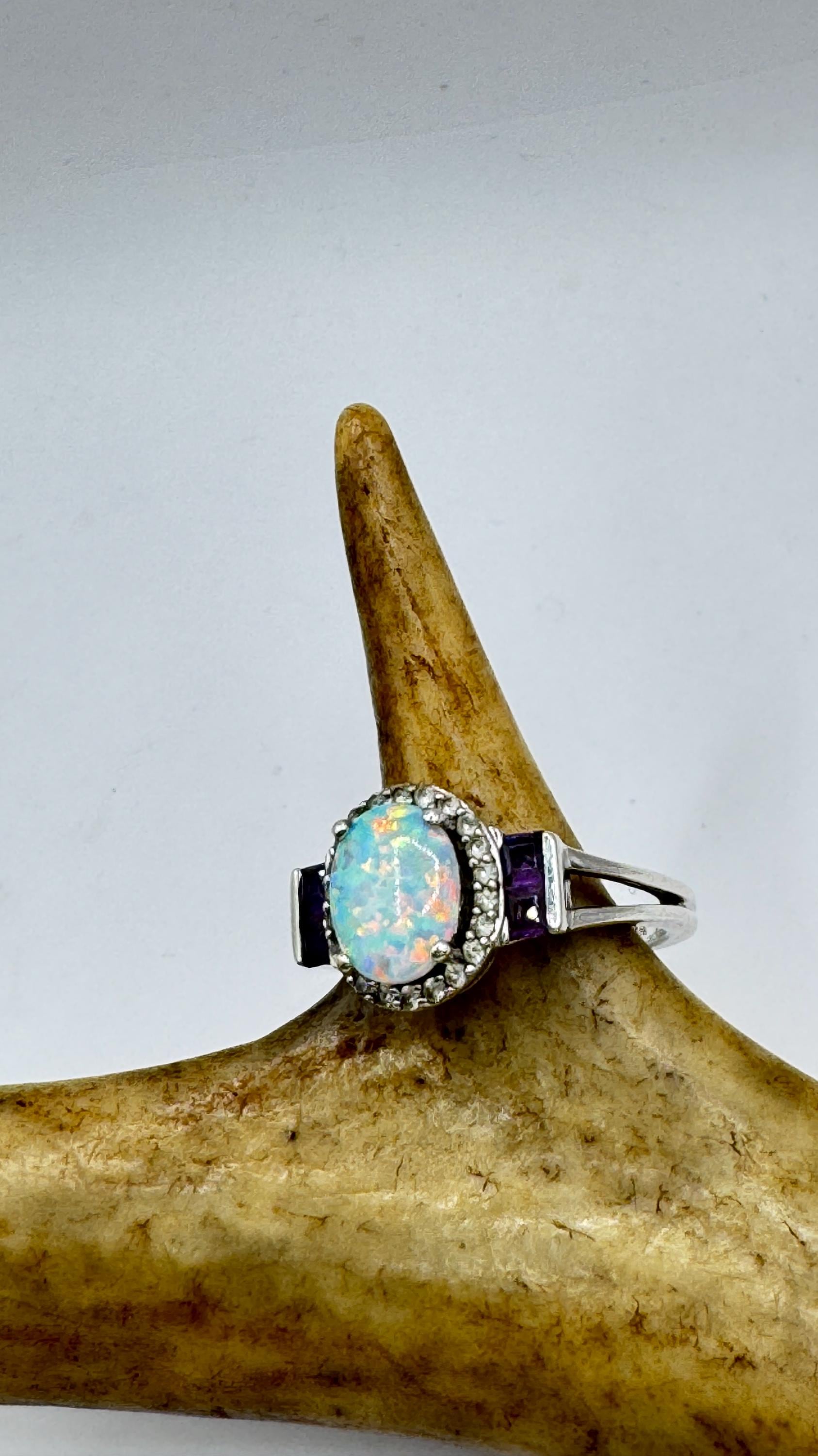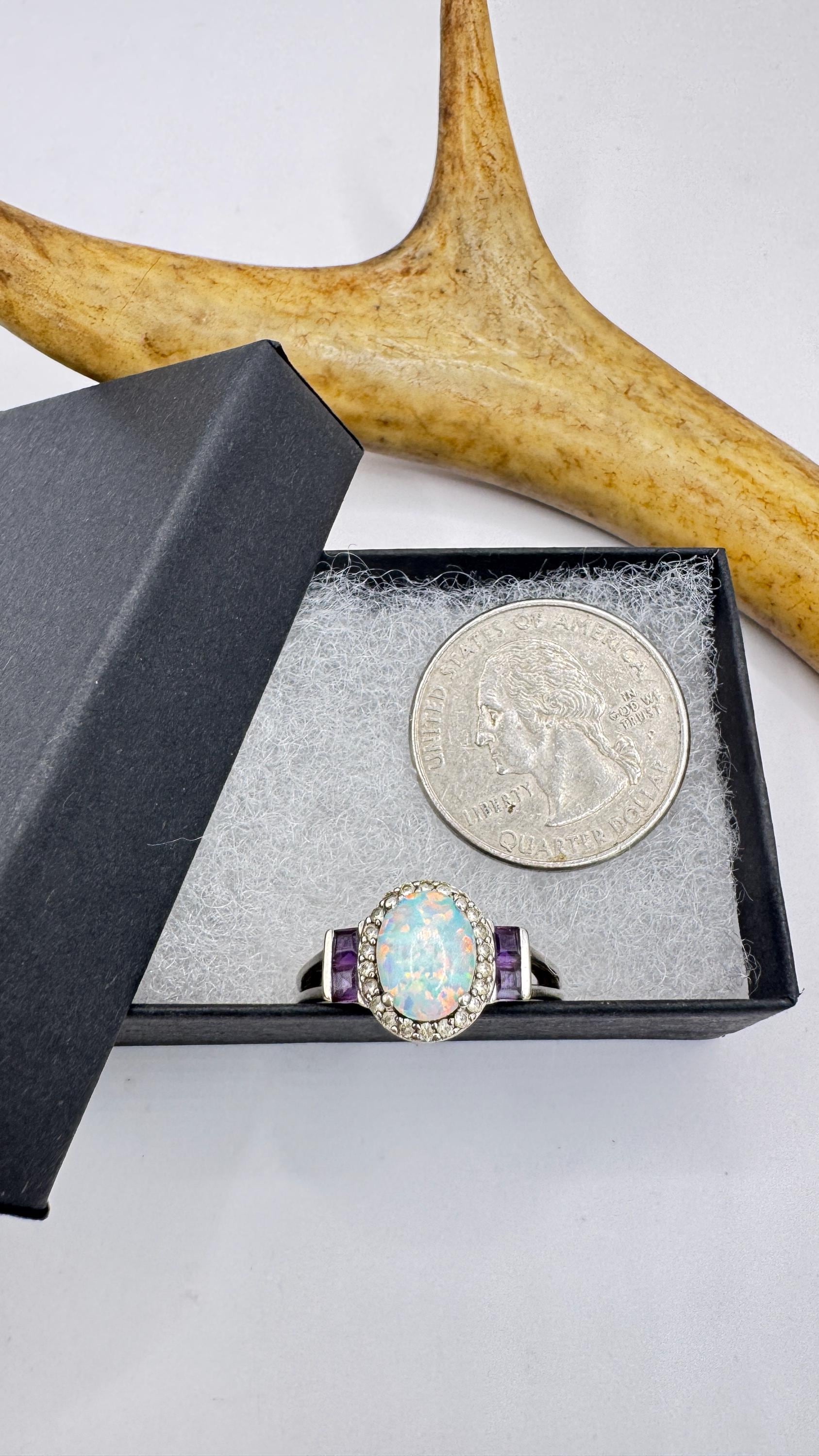 Vintage purple amethyst with white opal and diamond accent Great promise, engagement ring wedding Ring Band 925 Sterling Silver This... Read more