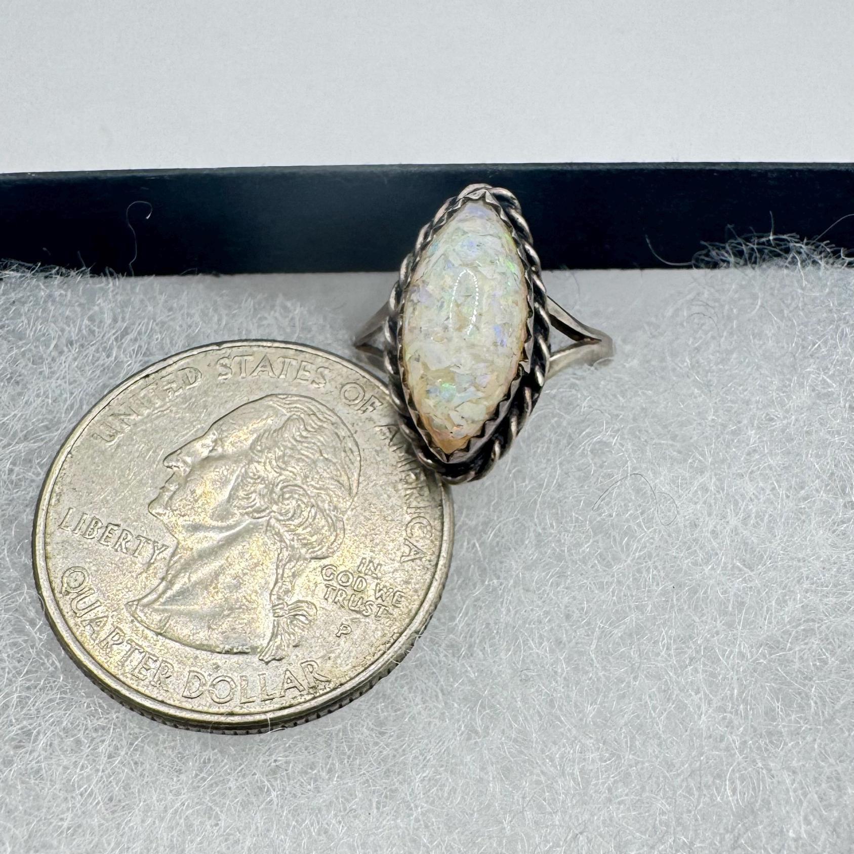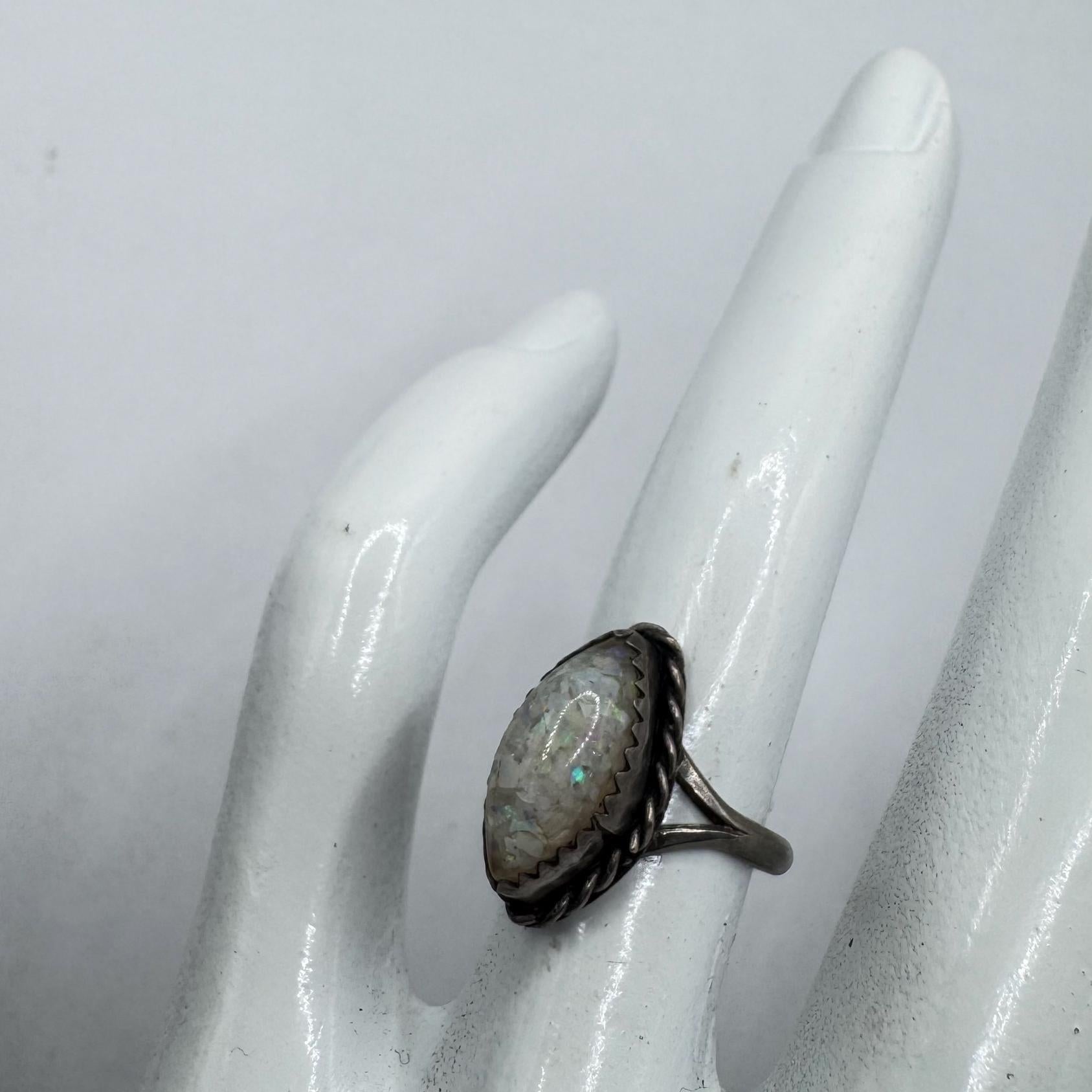 Vintage Fire opal heart ring great blue fire in the stones set in 925 sterling silverpromise, engagement, stacking ringSize 4... Read more