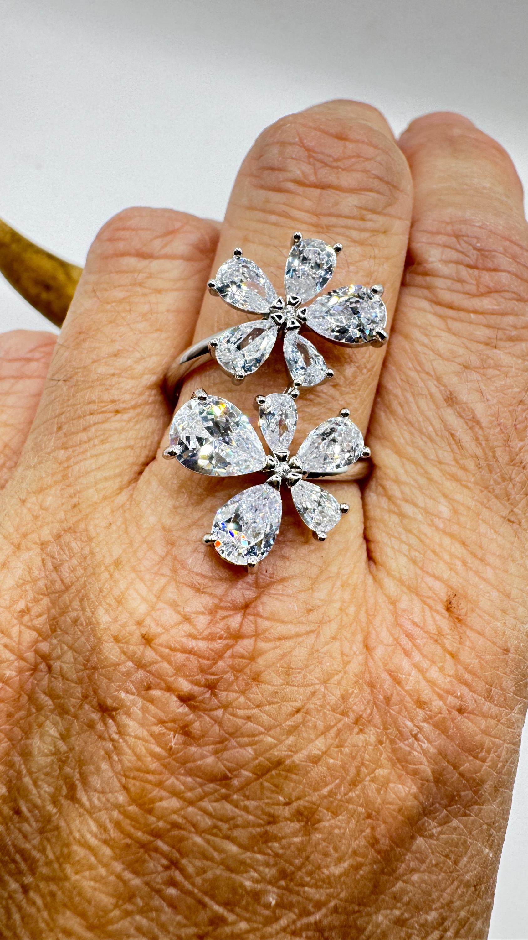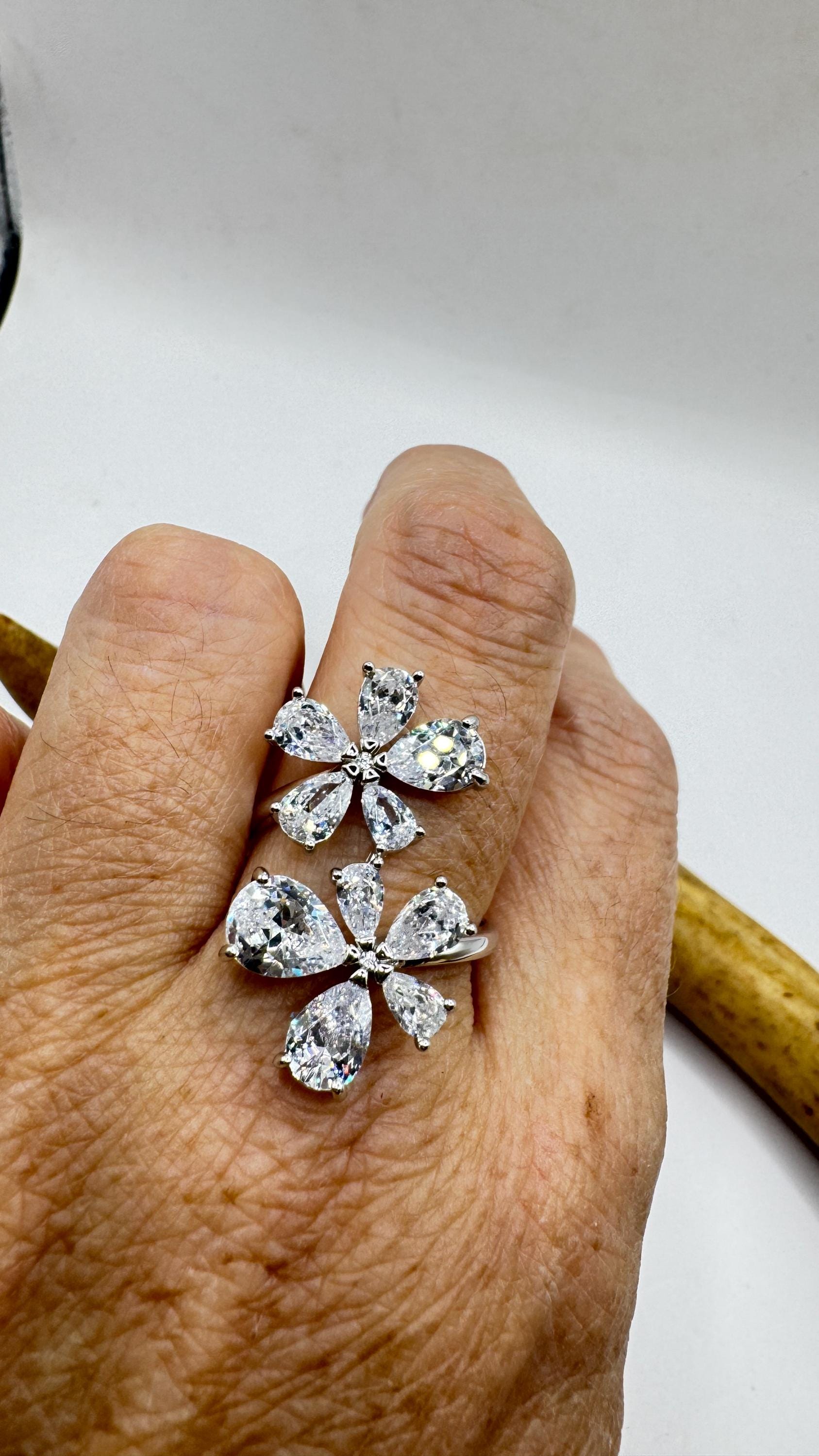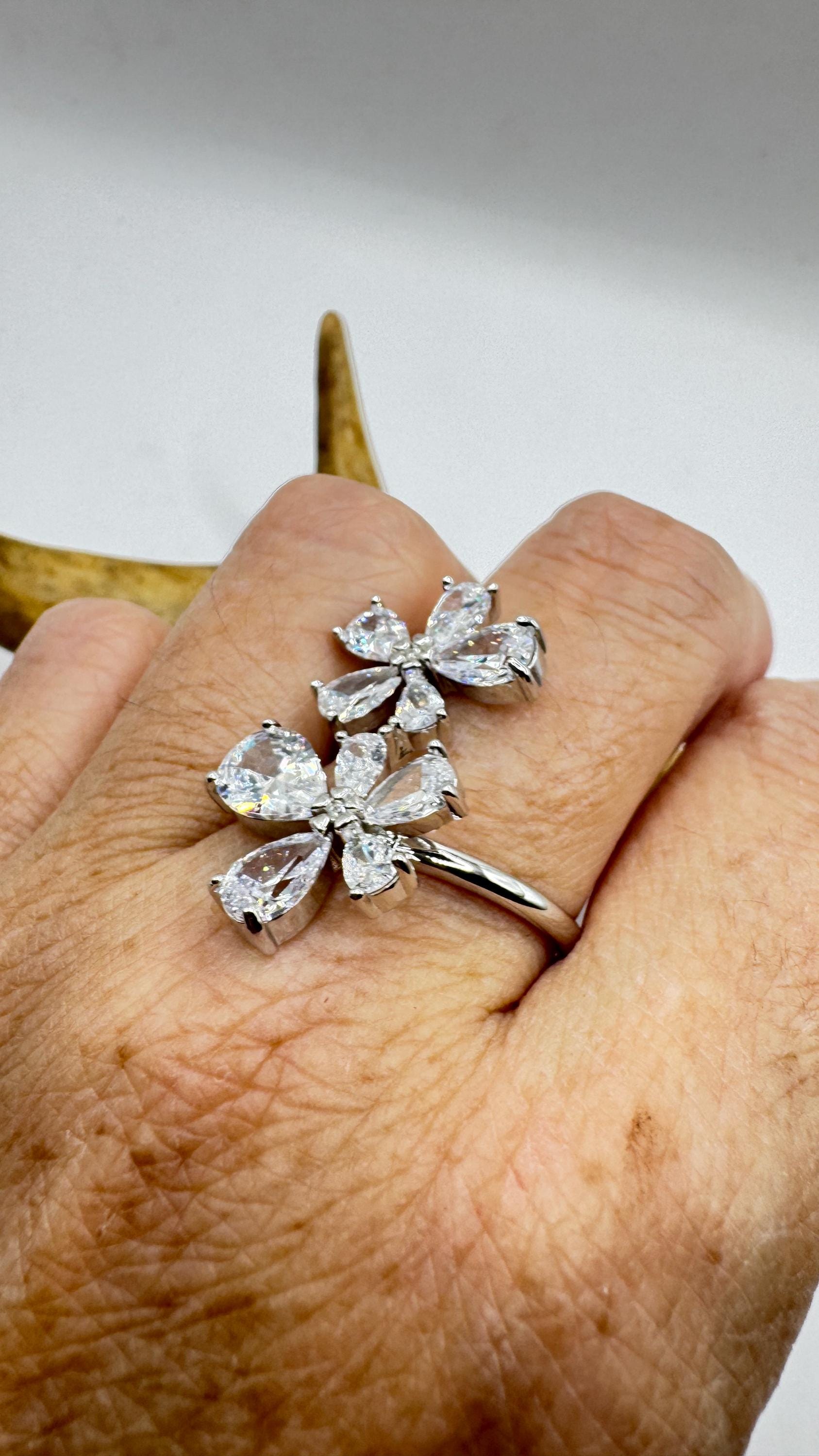 Vintage clear crystal stacking Wedding Ring Band set in 925 Sterling Silver wedding band or promise ring. lovely statement flower... Read more