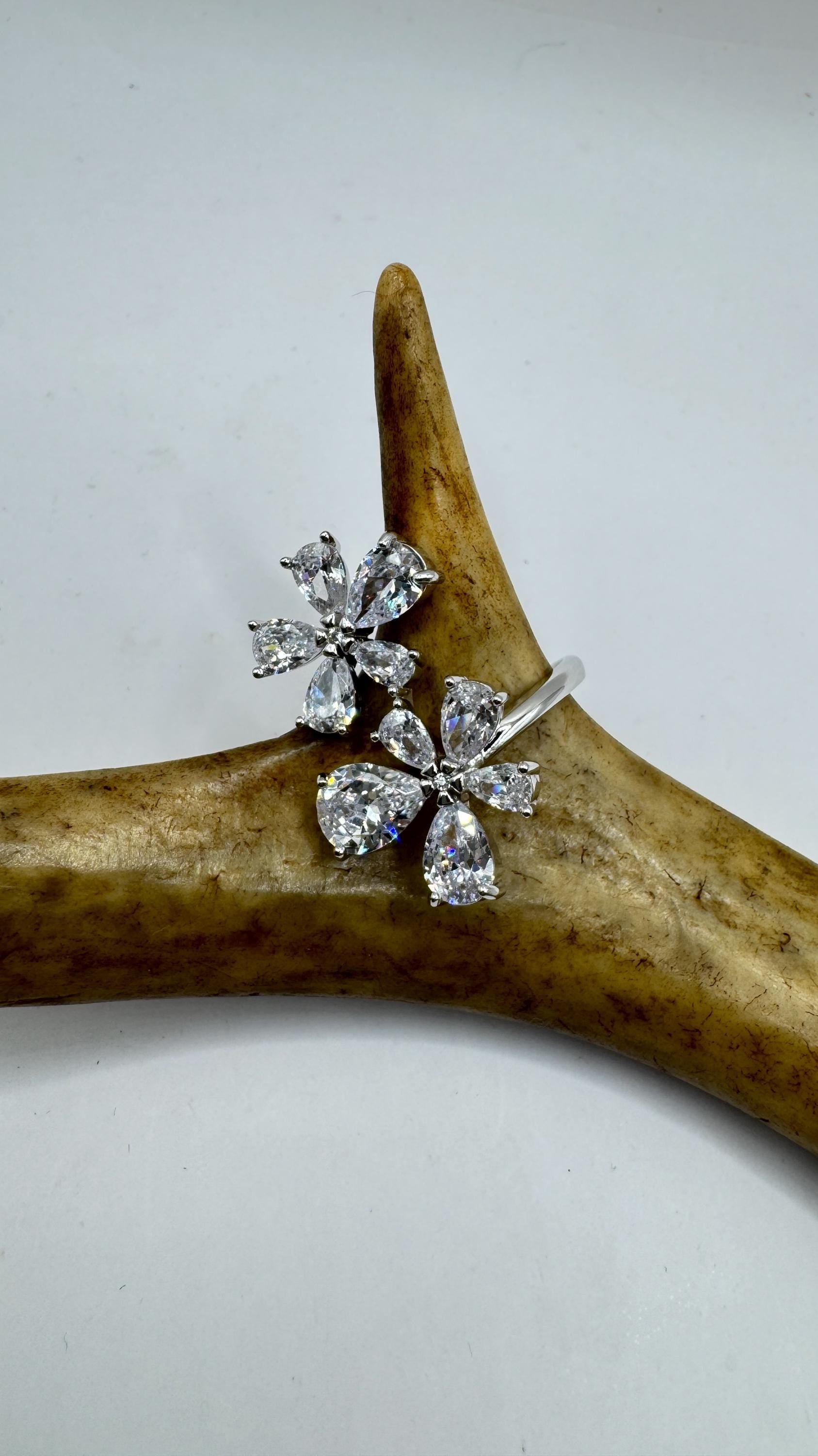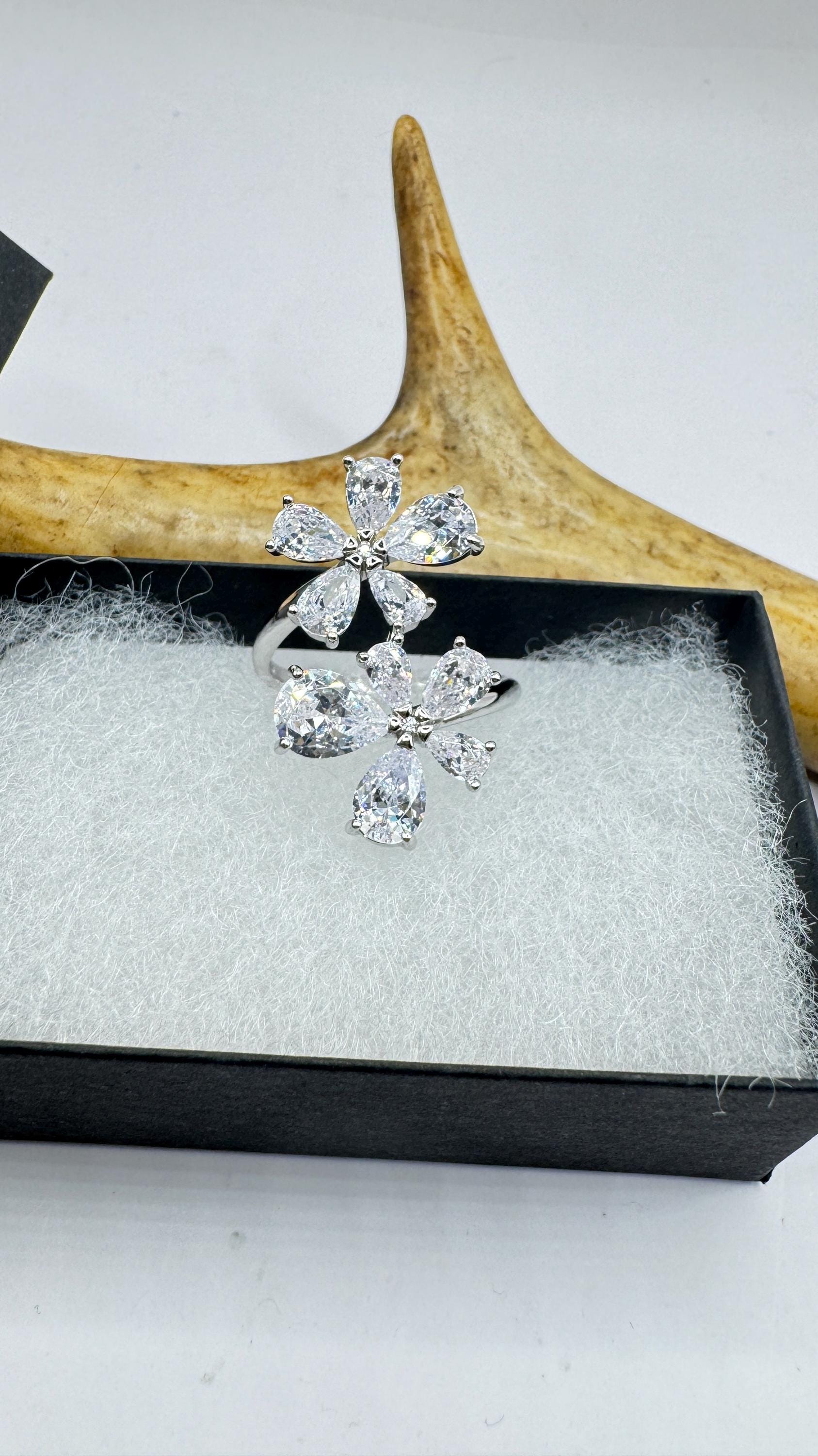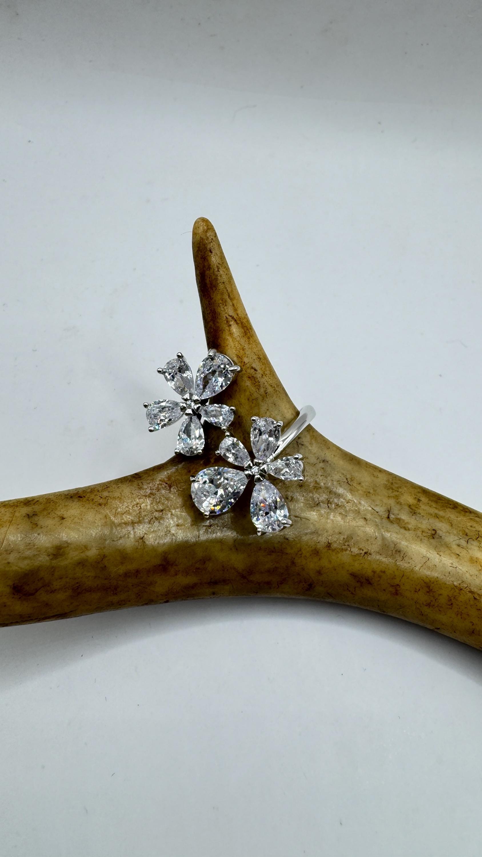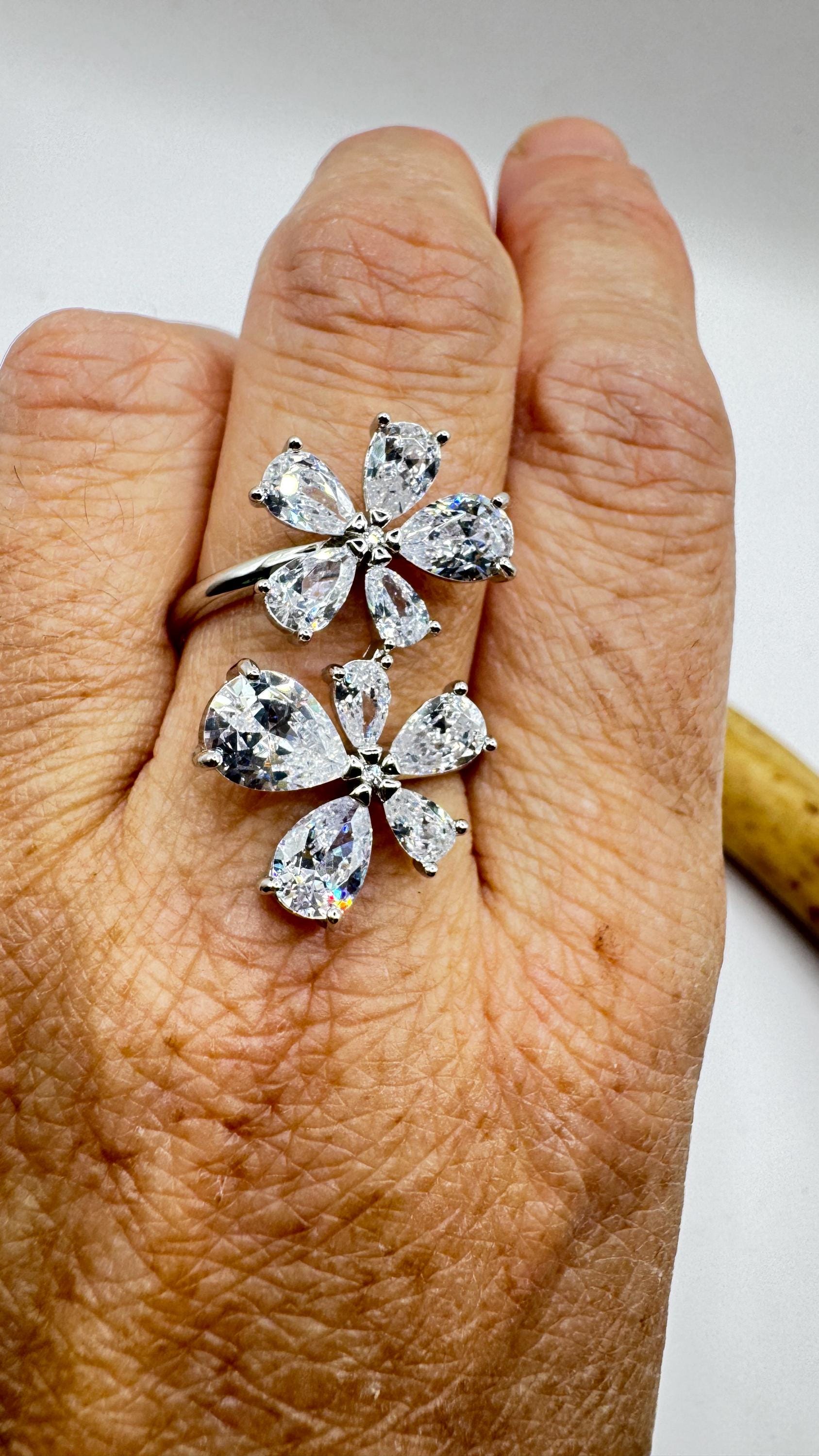 Vintage clear crystal stacking Wedding Ring Band set in 925 Sterling Silver wedding band or promise ring. lovely statement flower... Read more