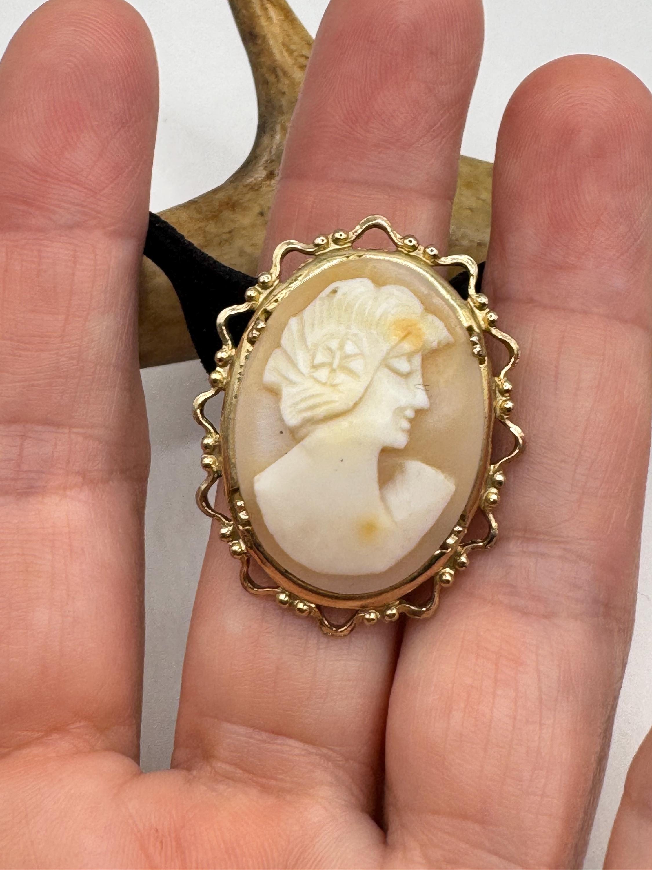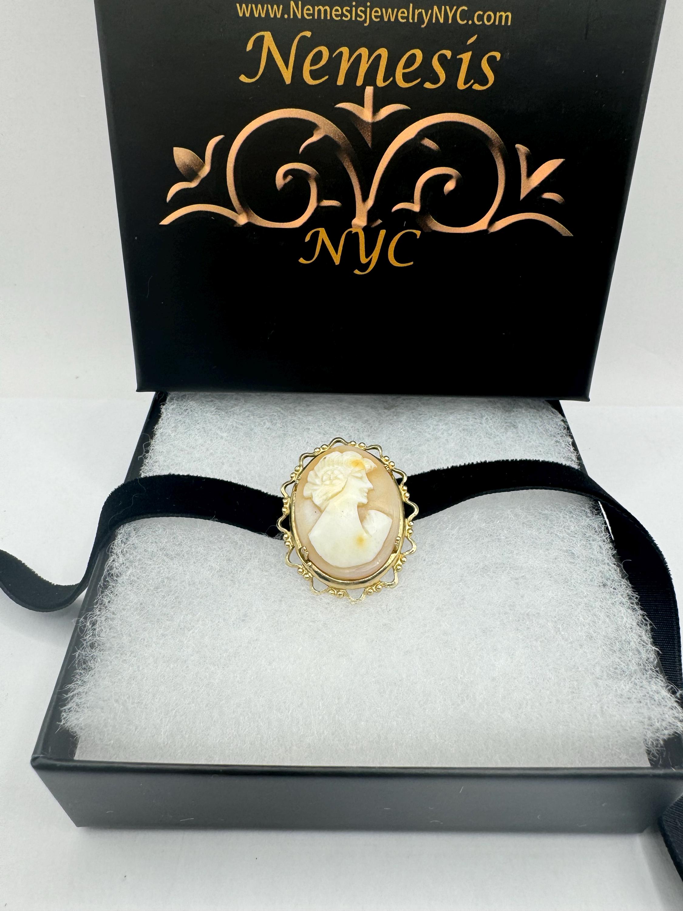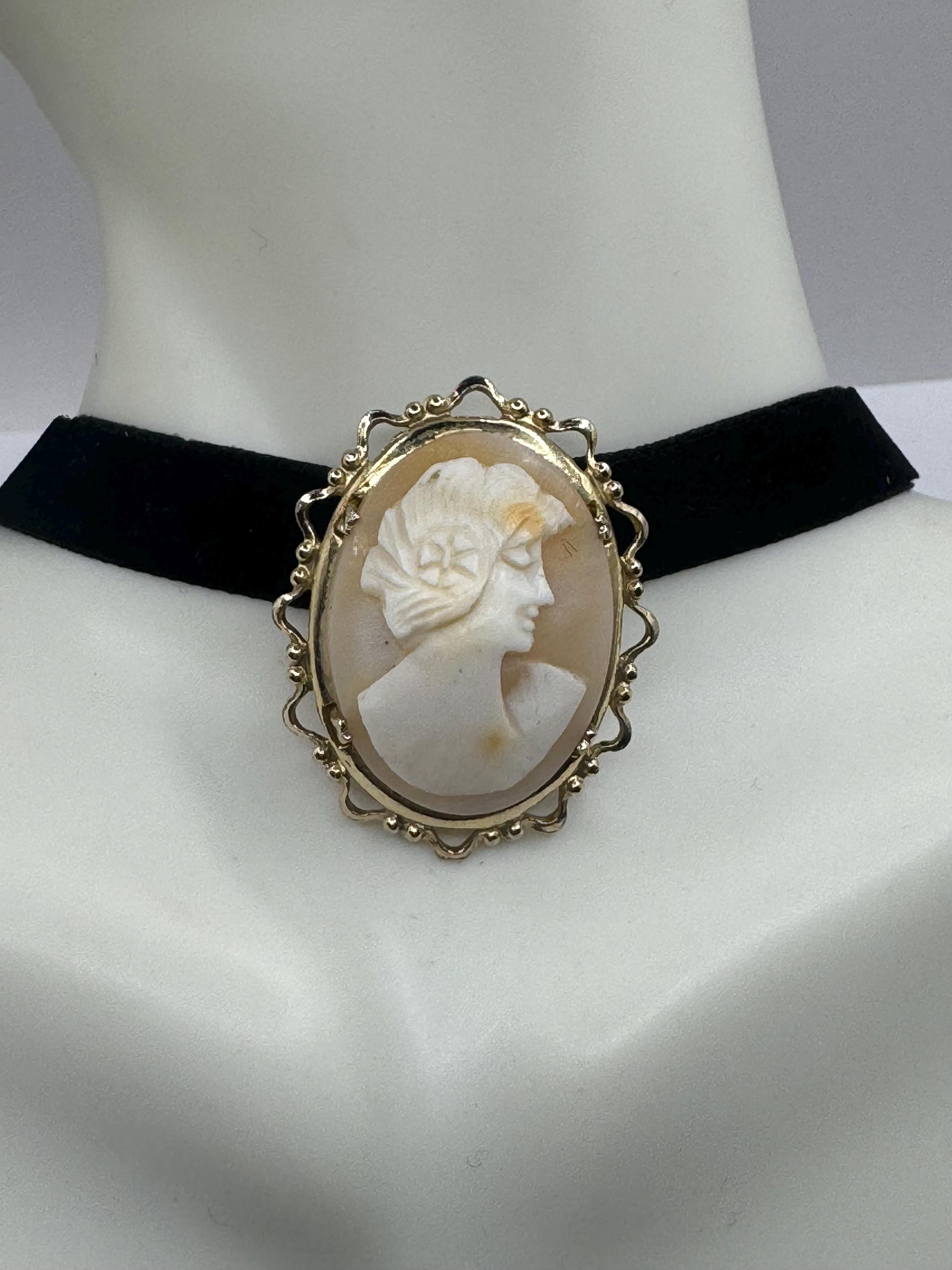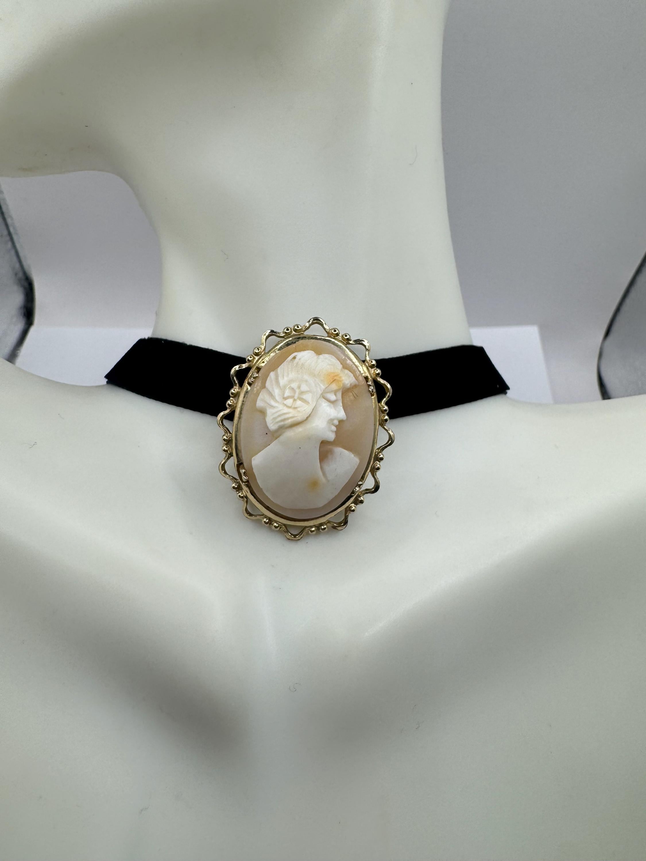 Vintage Cameo Brooch – Gold Filled Jewelry With Black Velvet Choker Ribbon