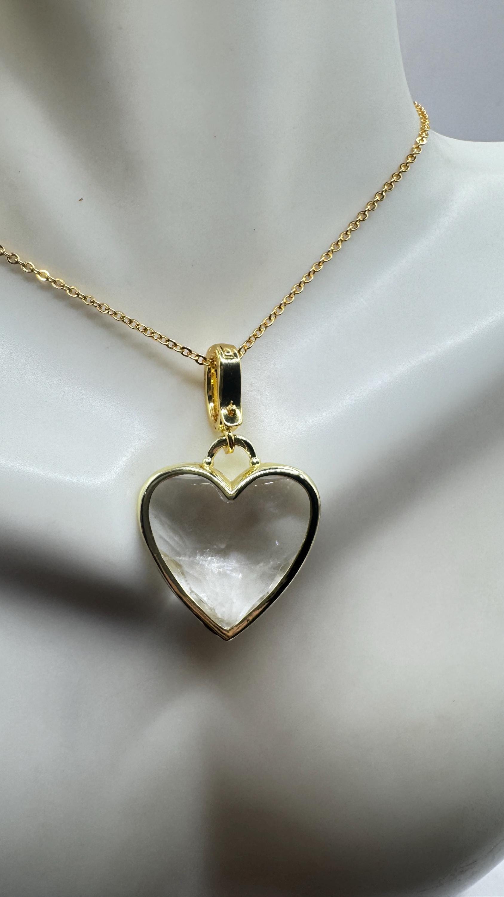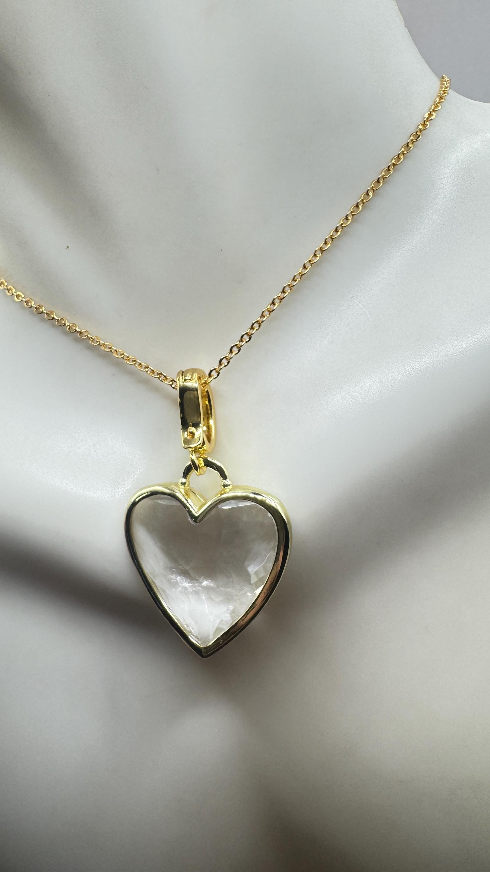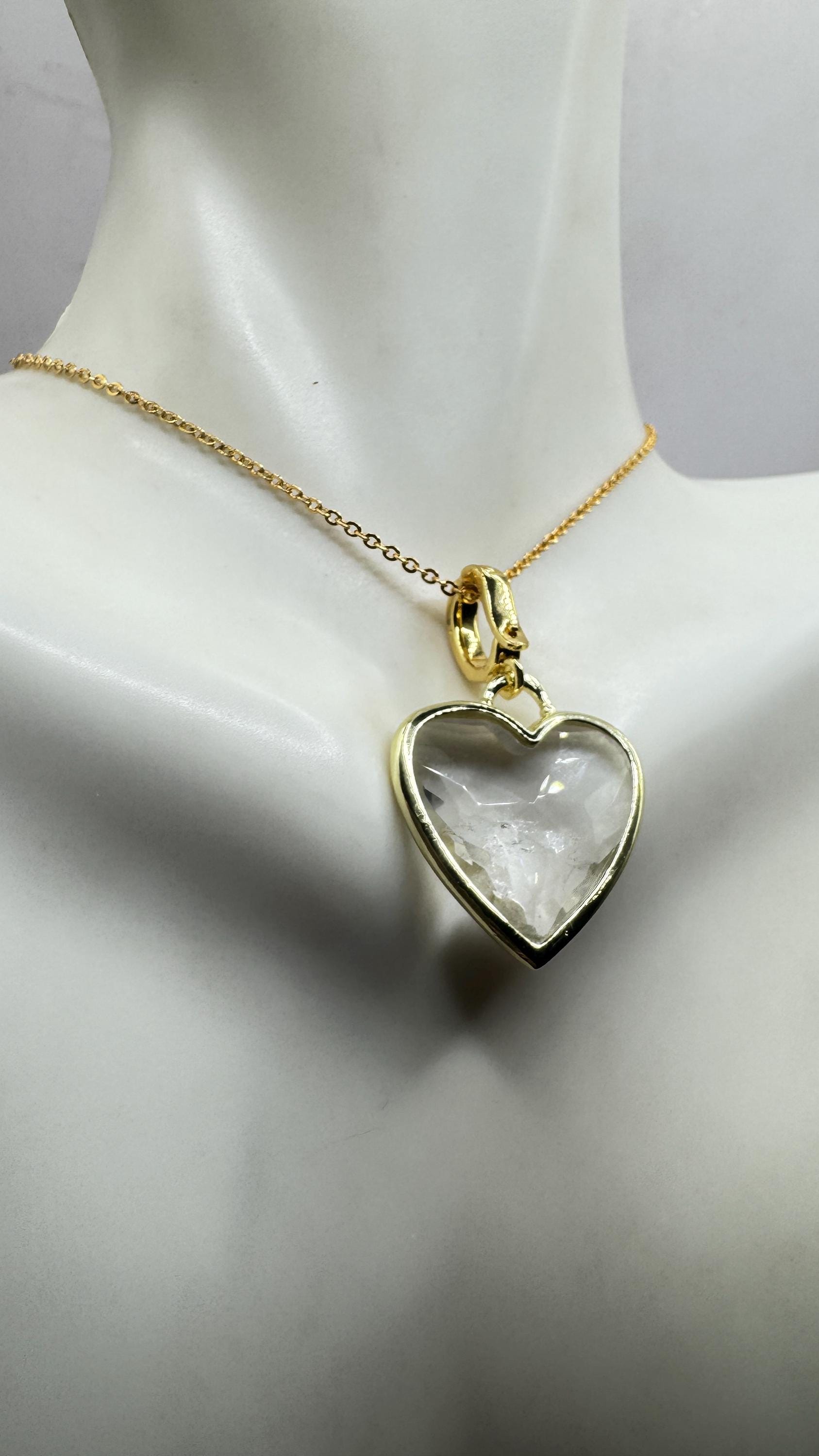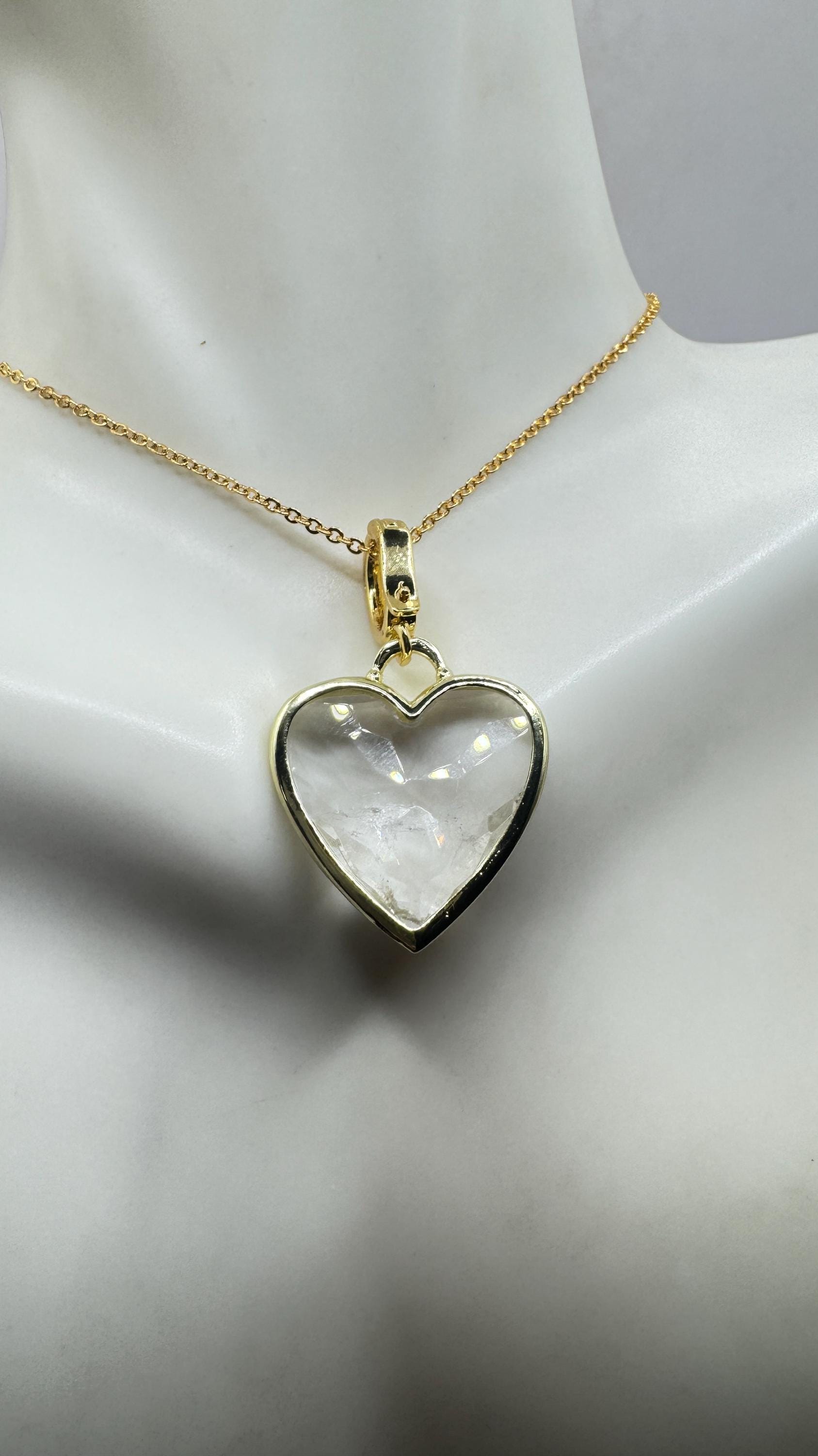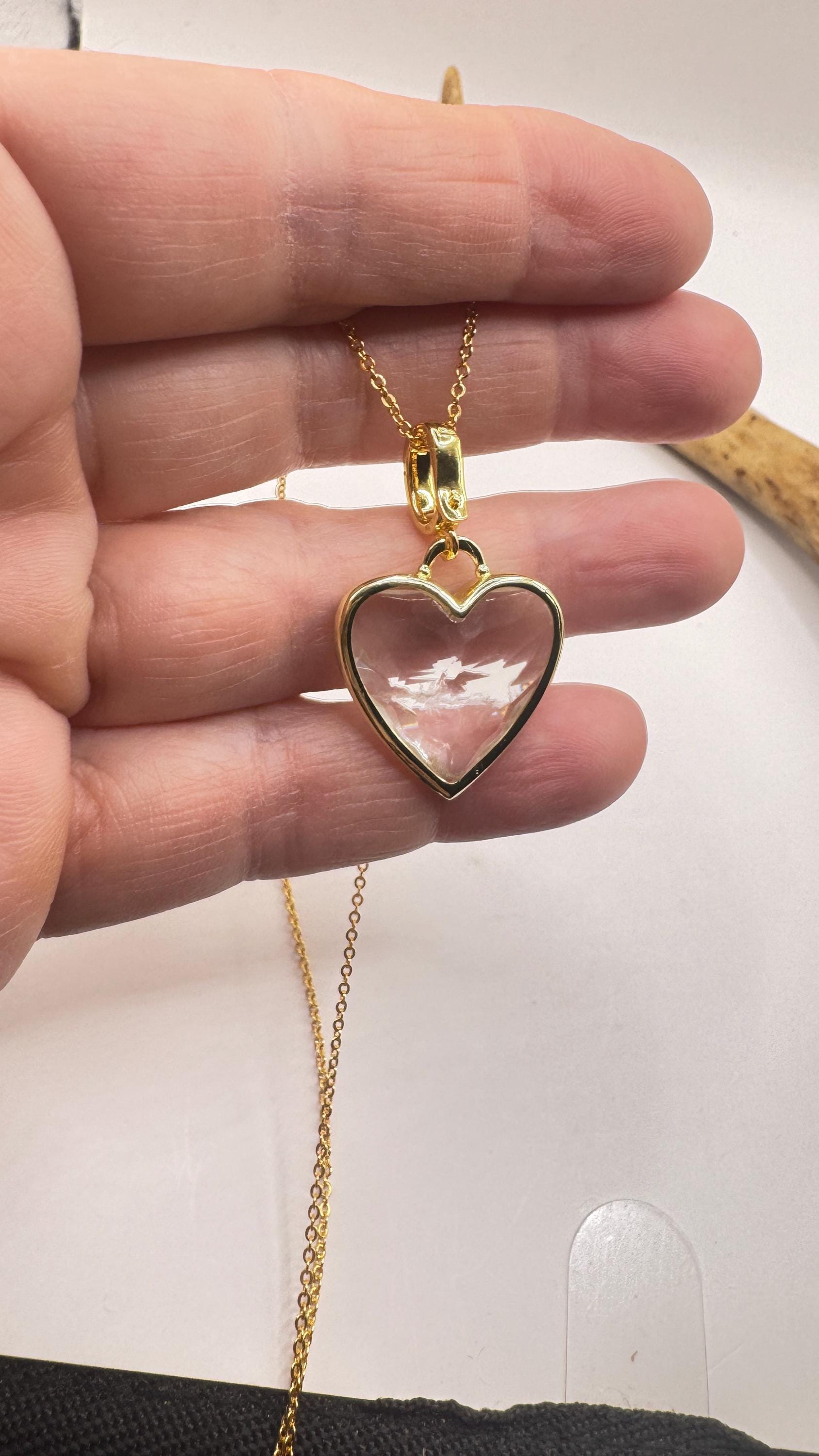 Our Vintage Gold Pendant Necklace features a gold filled clear quartz heartshaped charm. Measures about 1 inch long without the... Read more