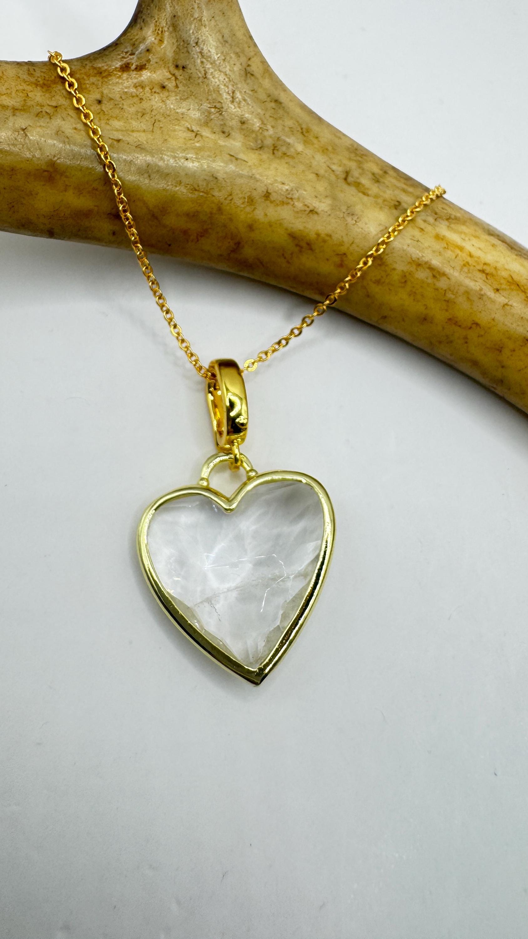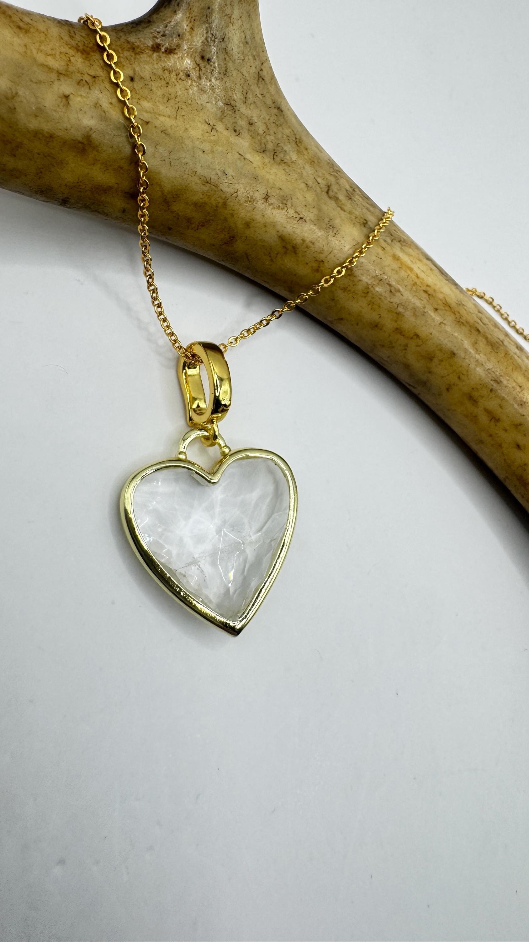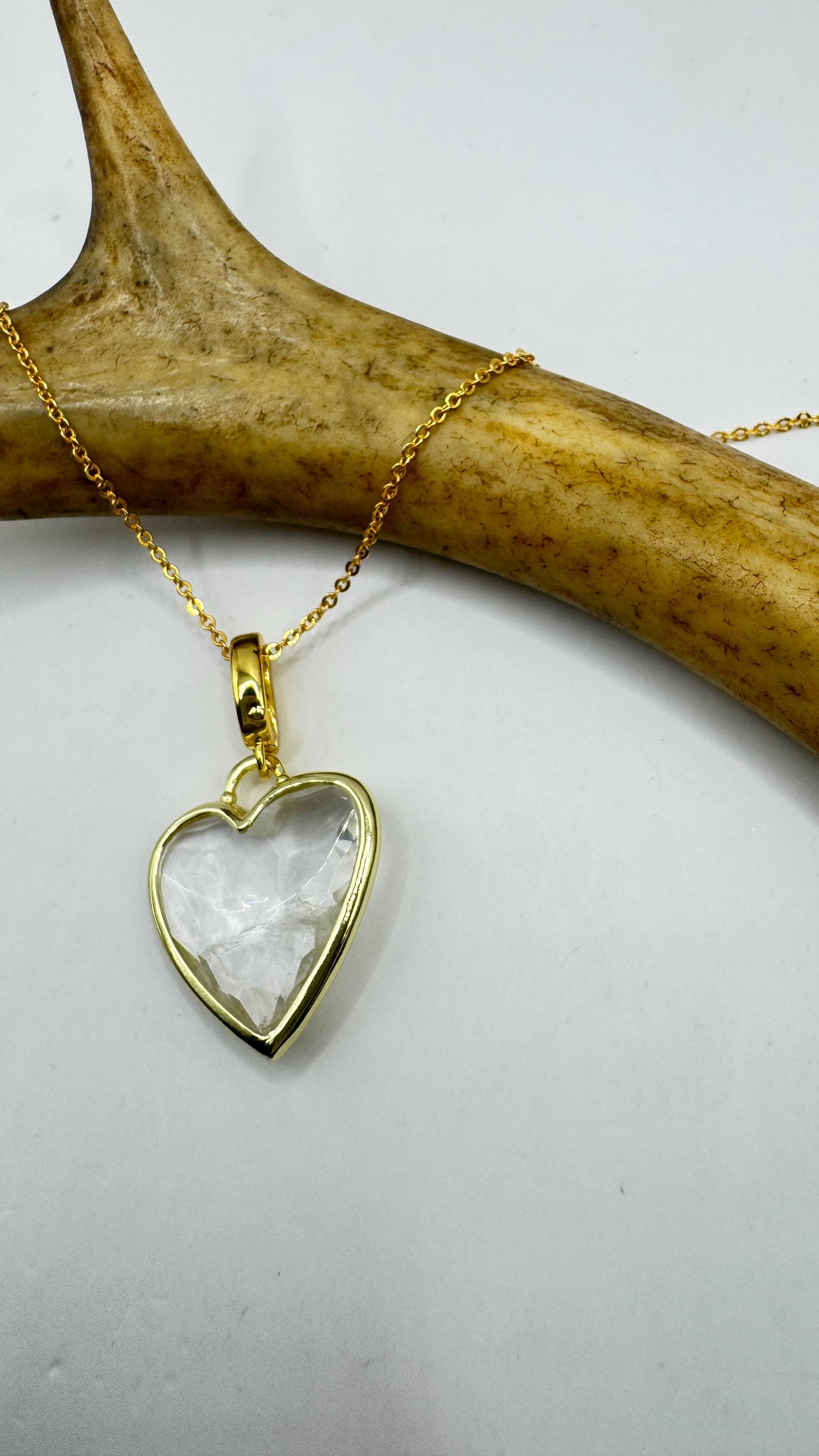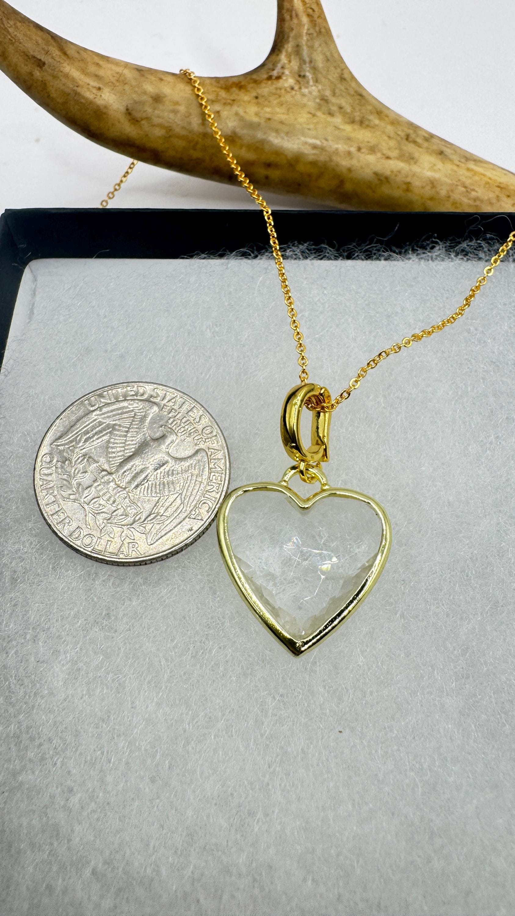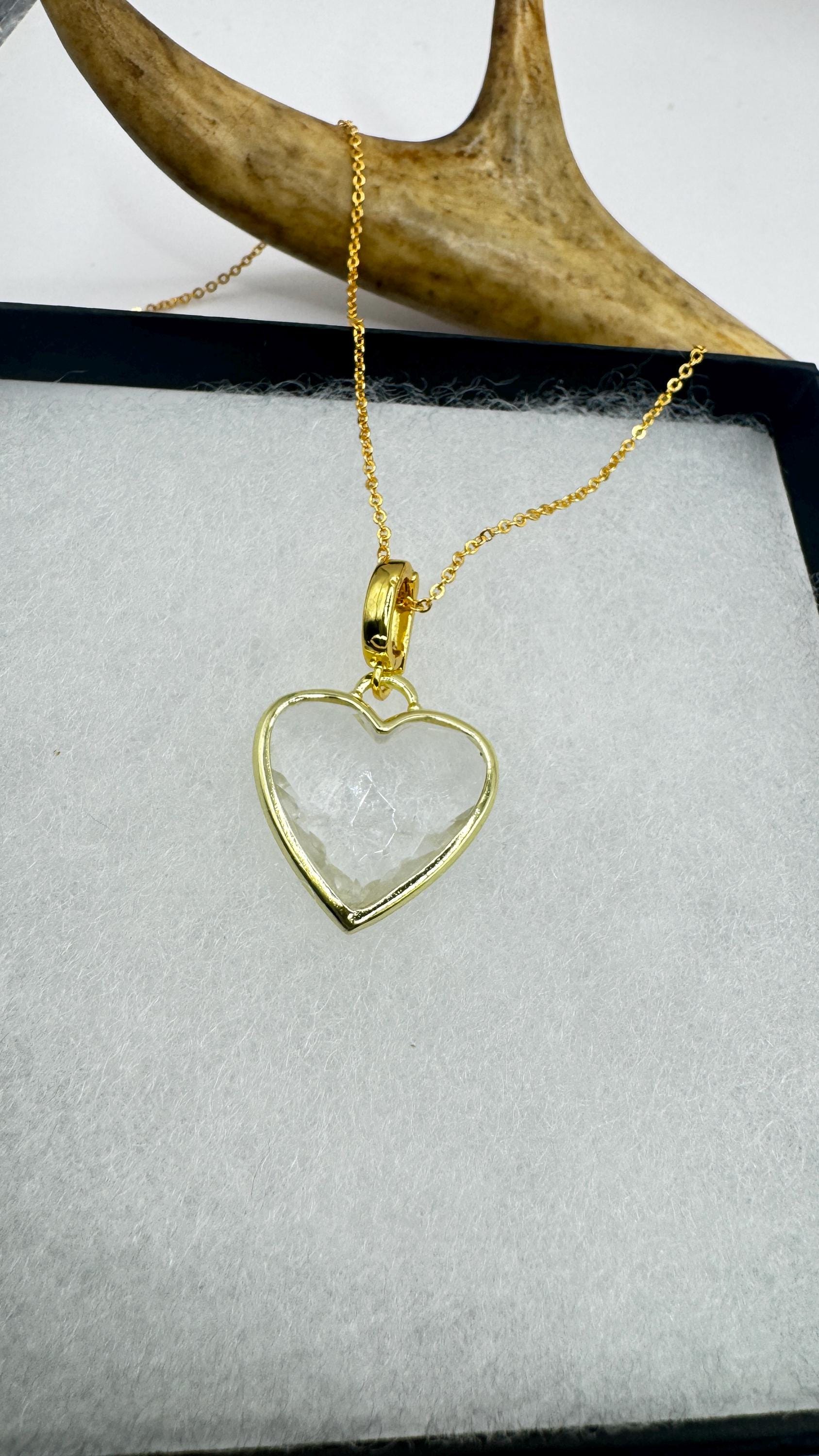 Our Vintage Gold Pendant Necklace features a gold filled clear quartz heartshaped charm. Measures about 1 inch long without the... Read more