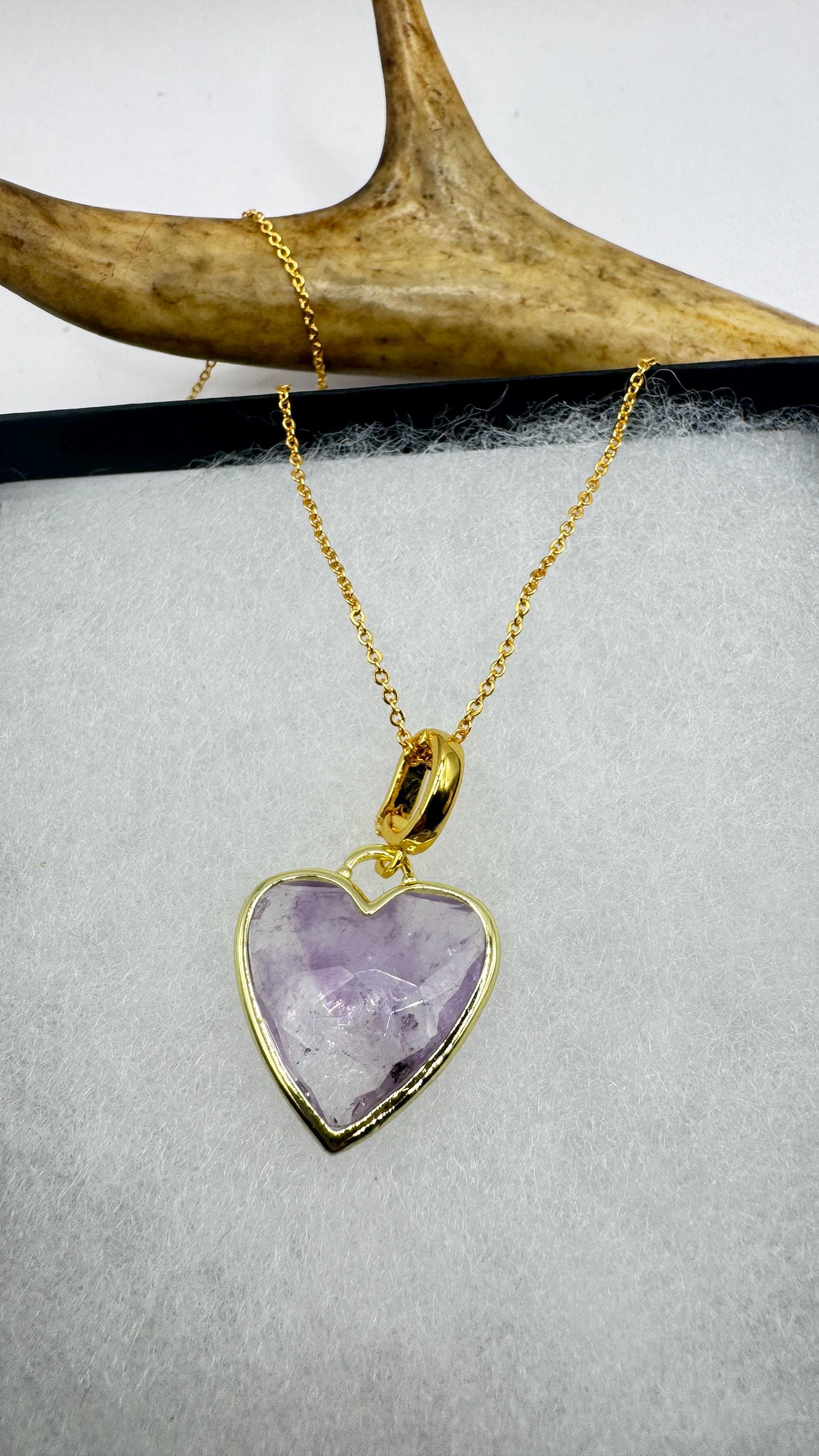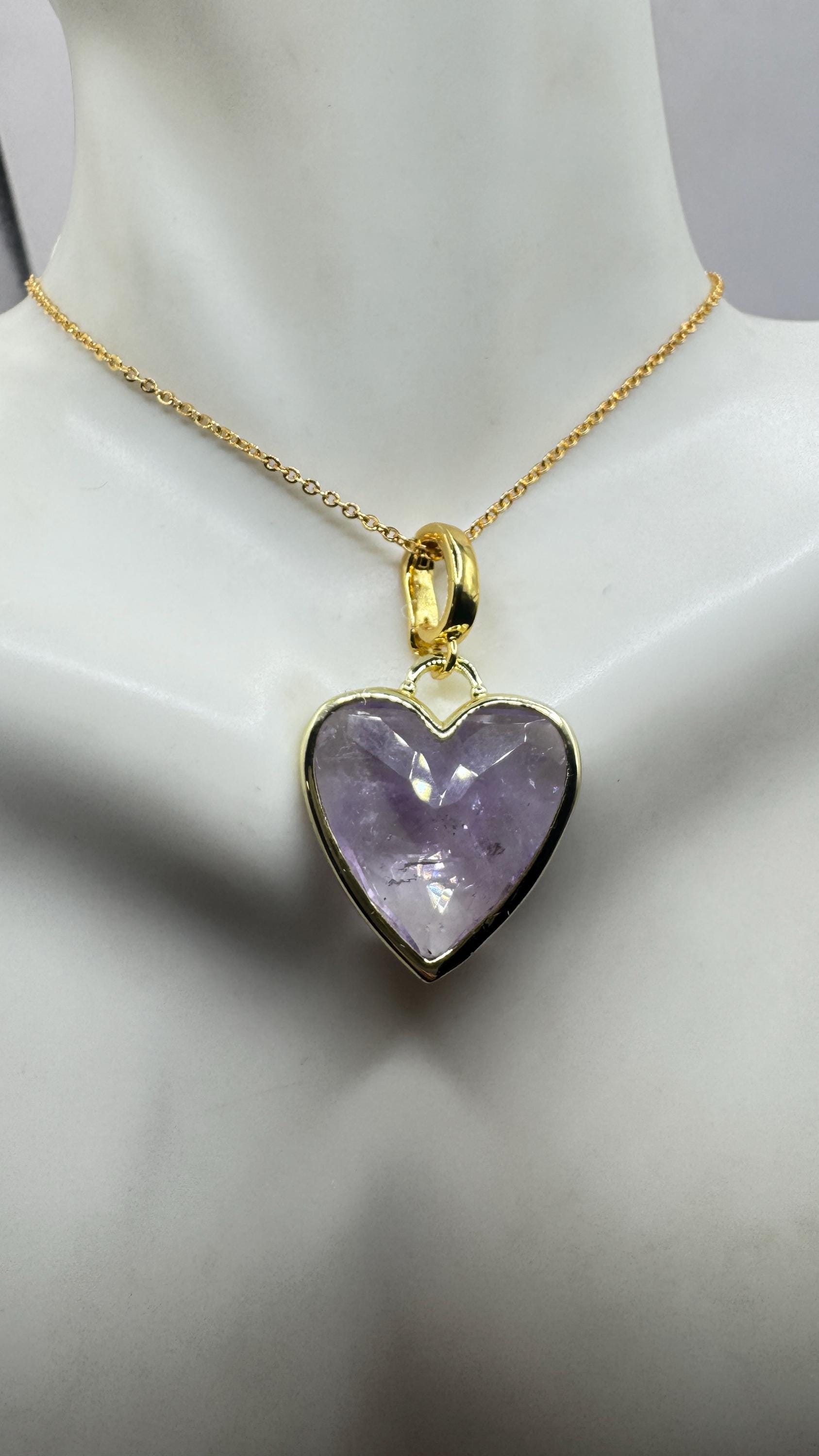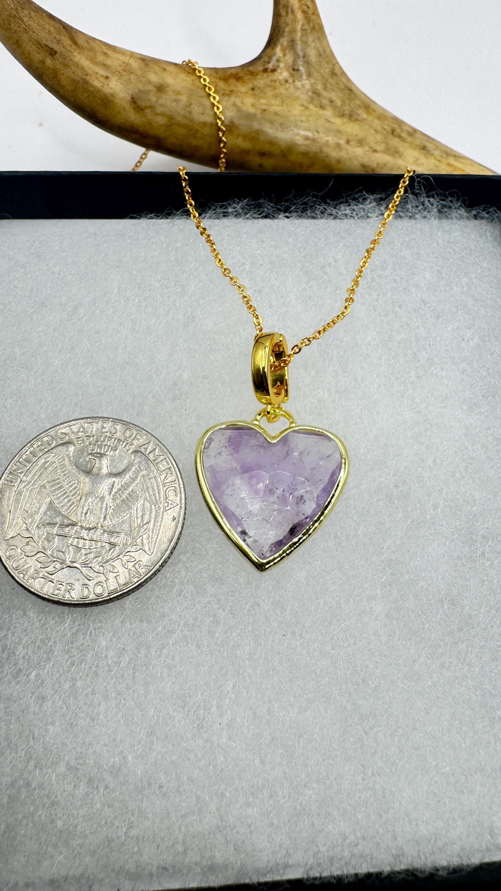 Our Vintage Gold Pendant Necklace features a gold filled purple amethyst heartshaped charm. Measures about 1 inch long without the... Read more
