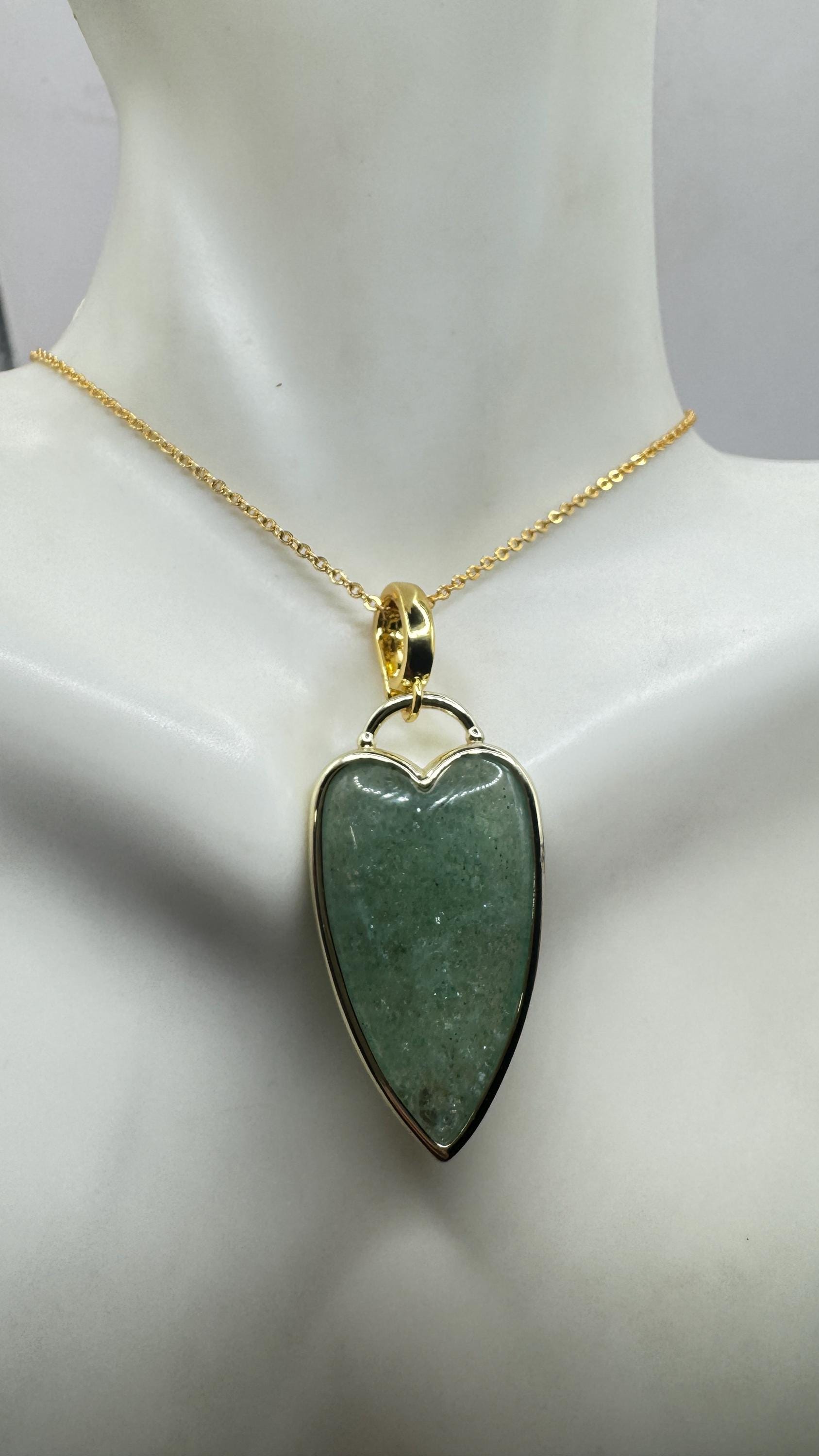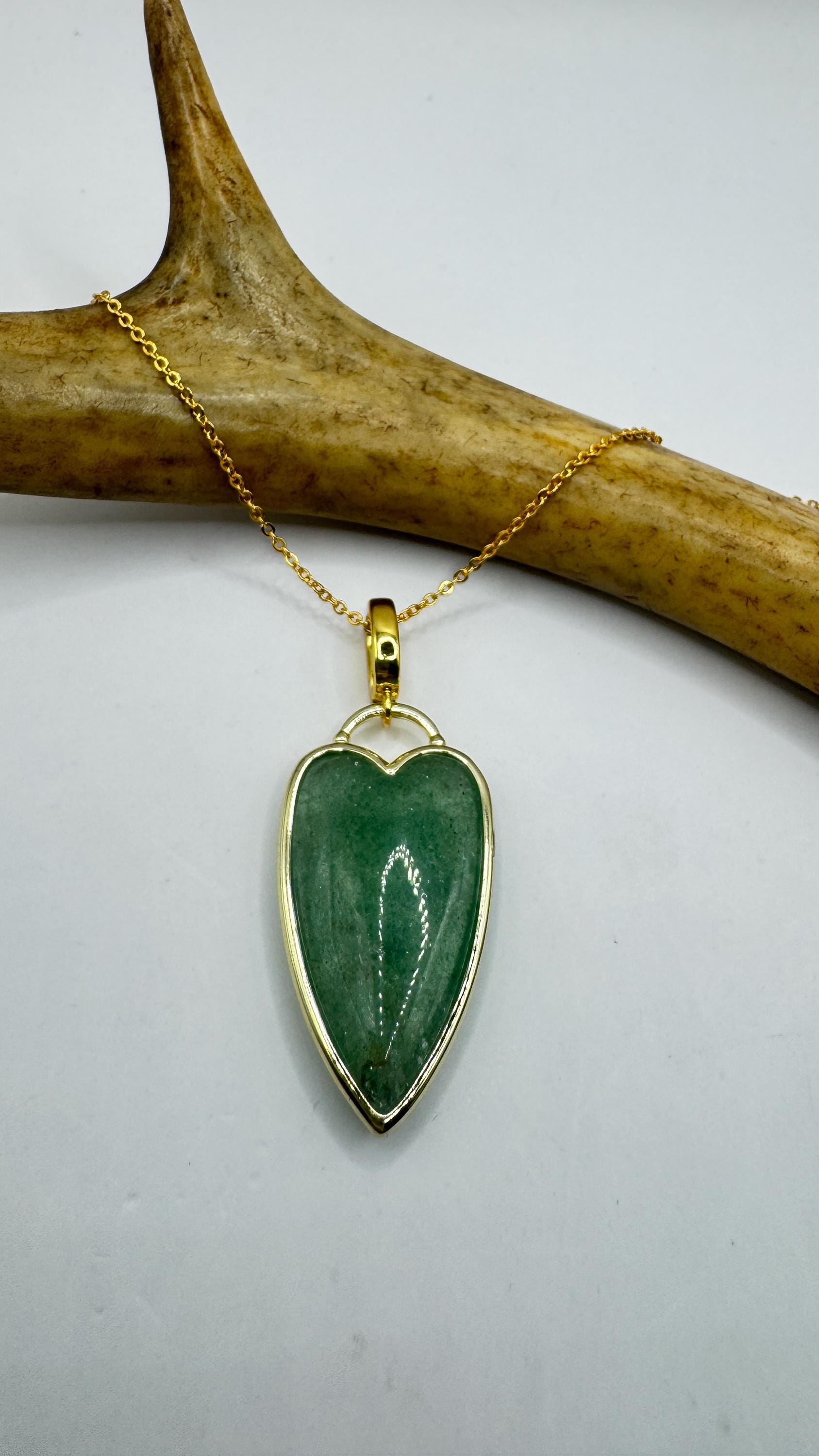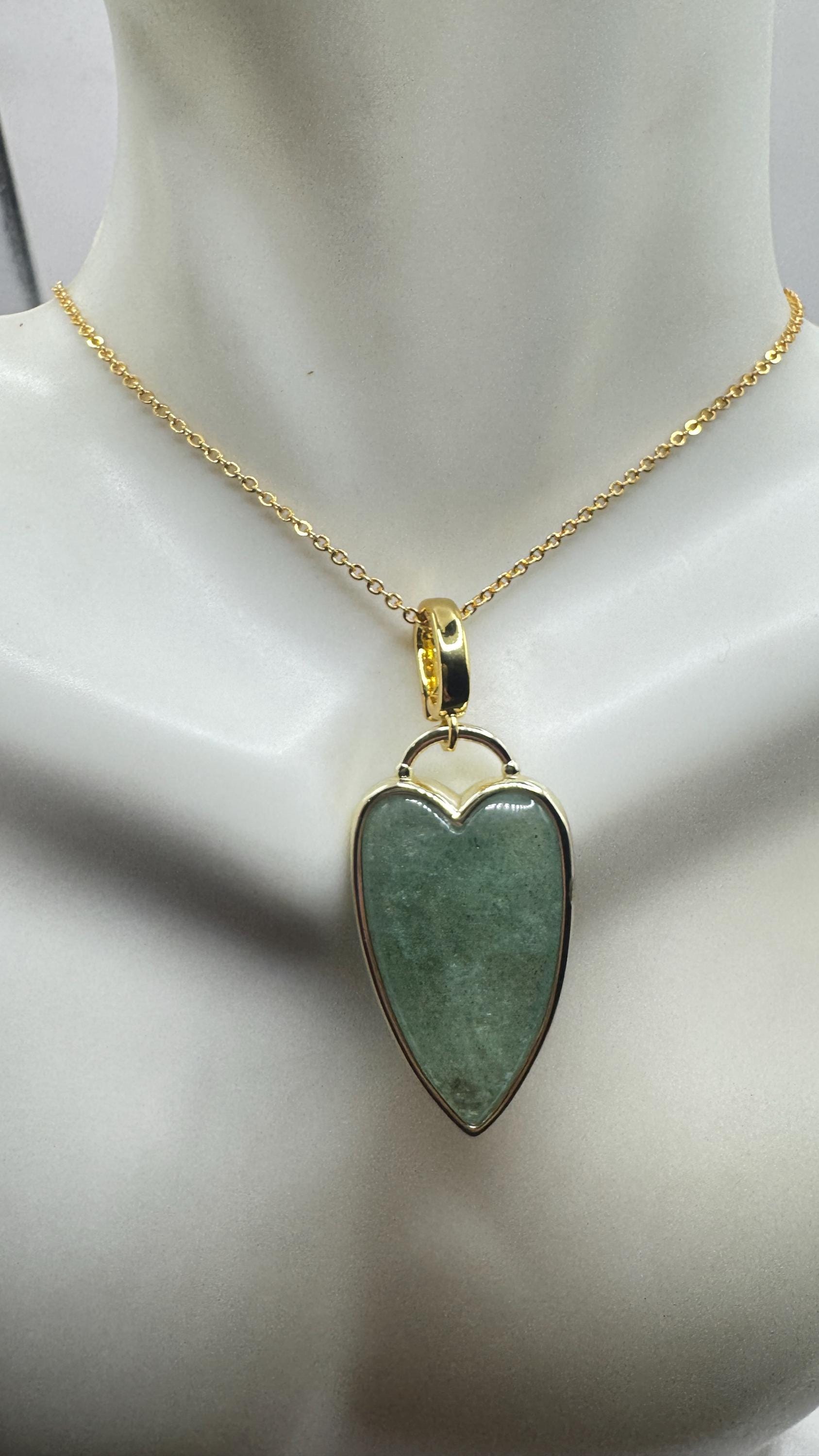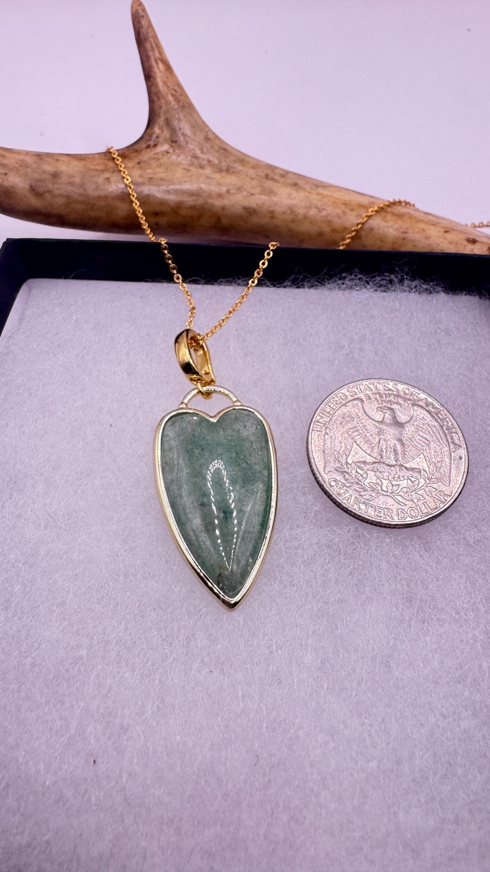 Our Vintage Gold Pendant Necklace features a gold filled green fluorite heart shaped charm. Measures about 1 inch long without... Read more