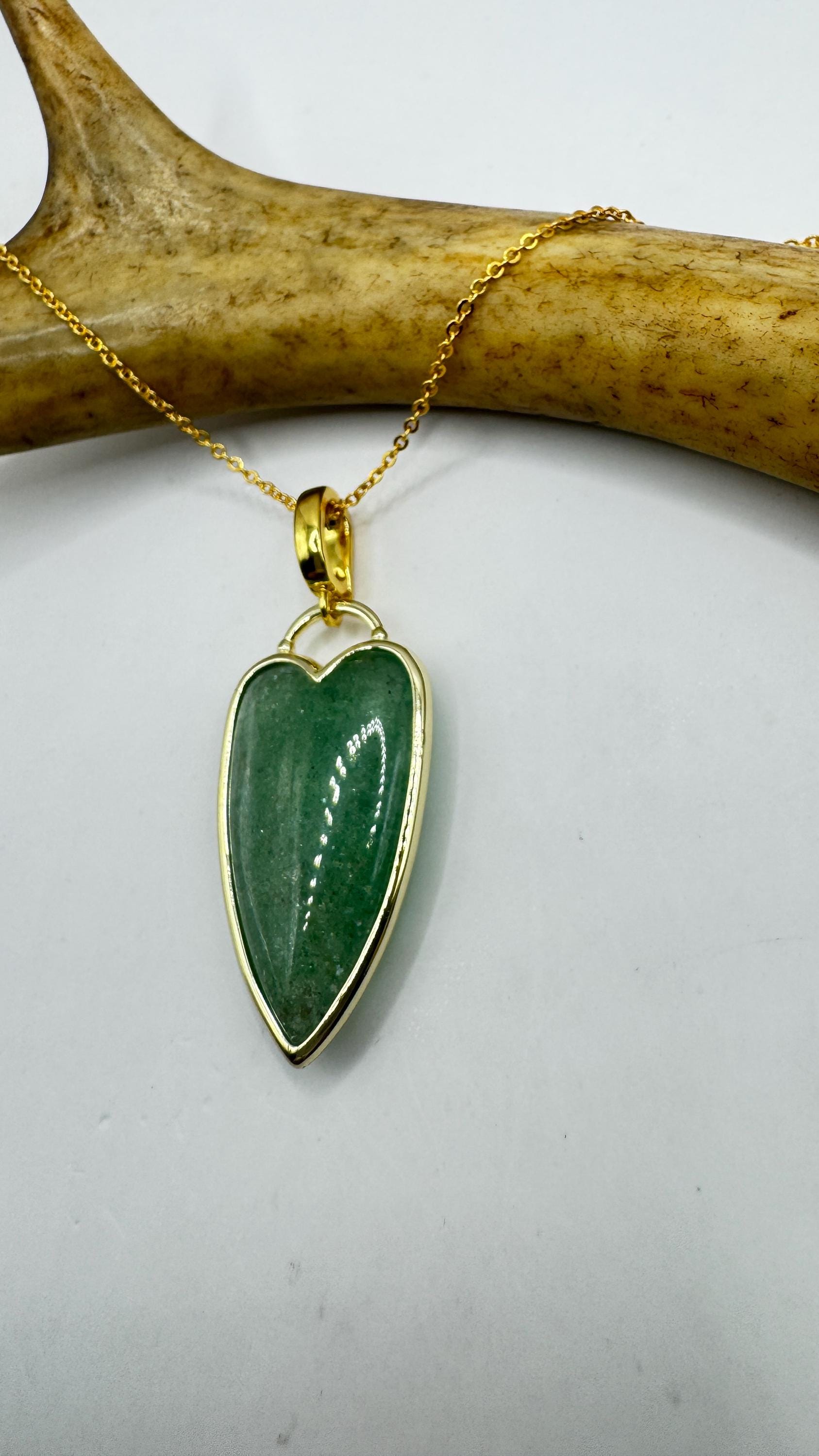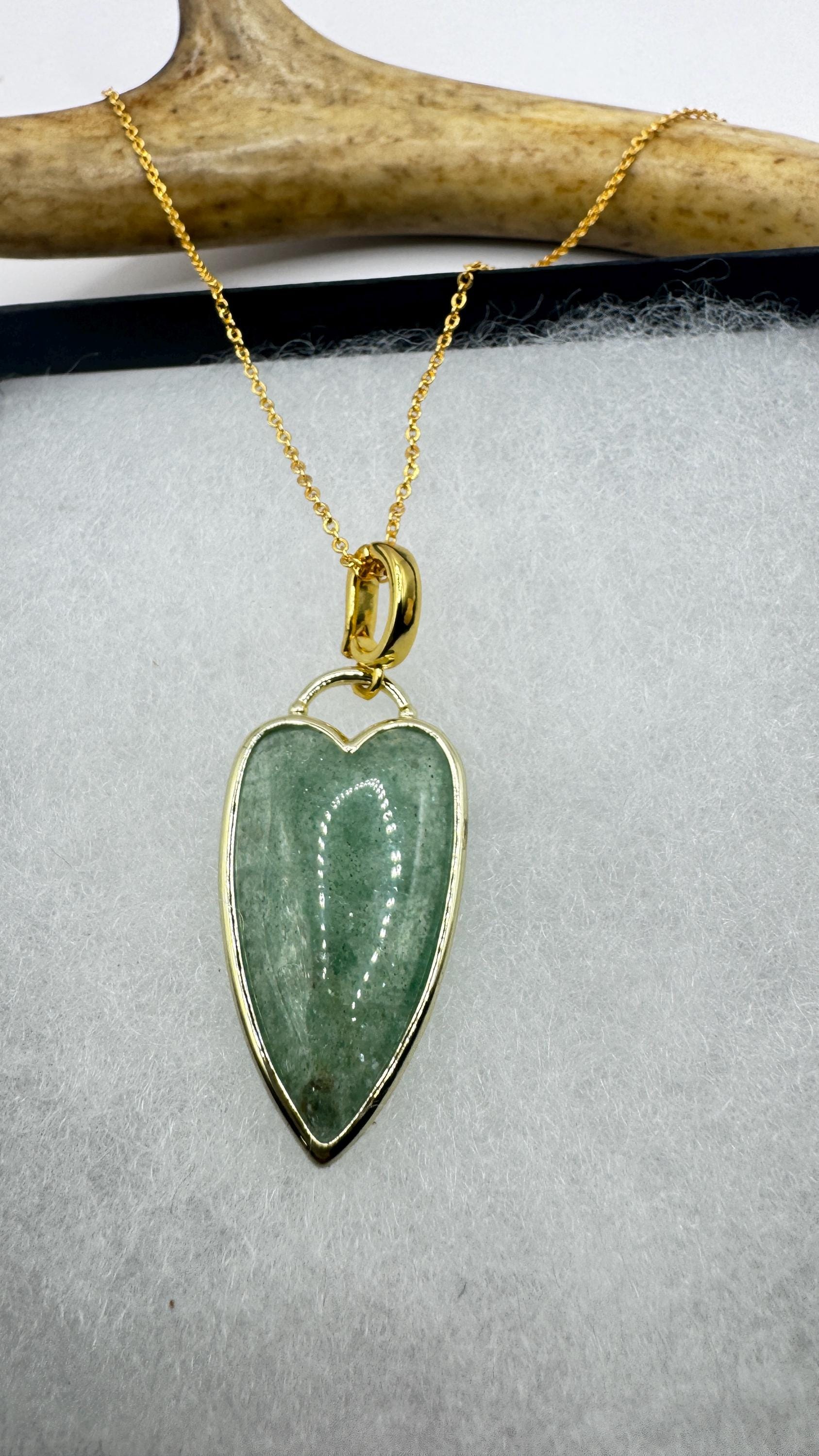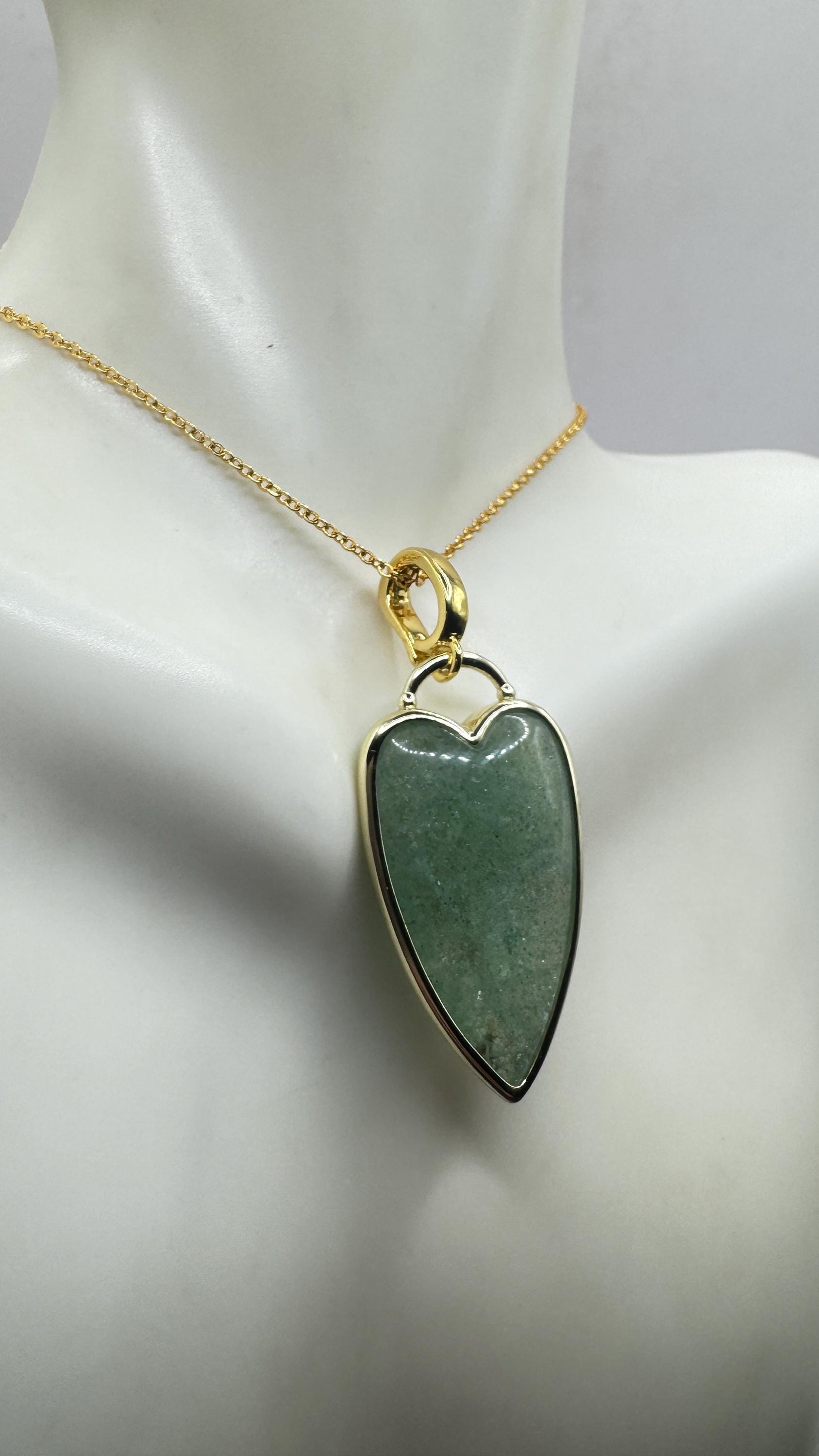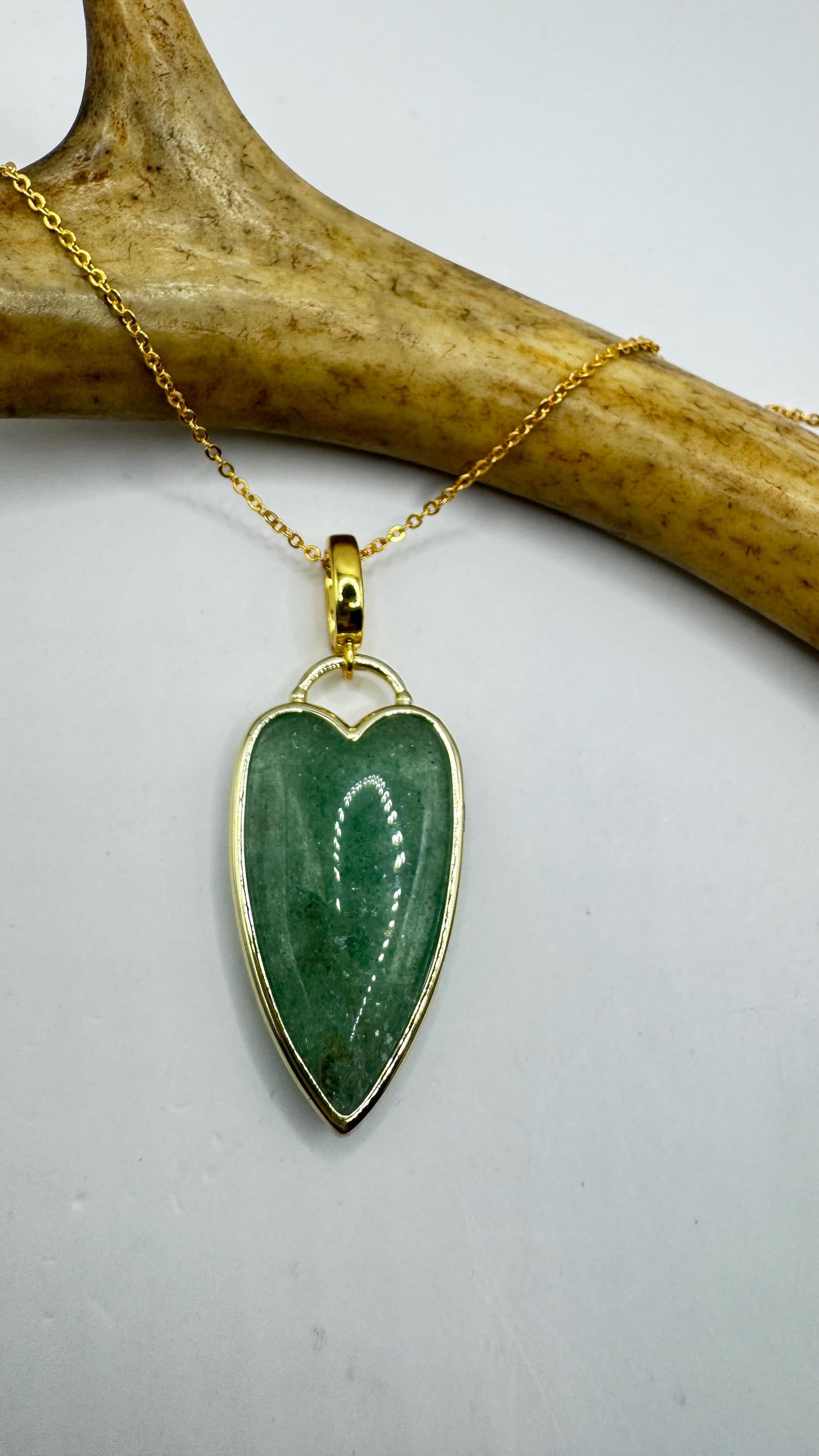 Our Vintage Gold Pendant Necklace features a gold filled green fluorite heart shaped charm. Measures about 1 inch long without... Read more