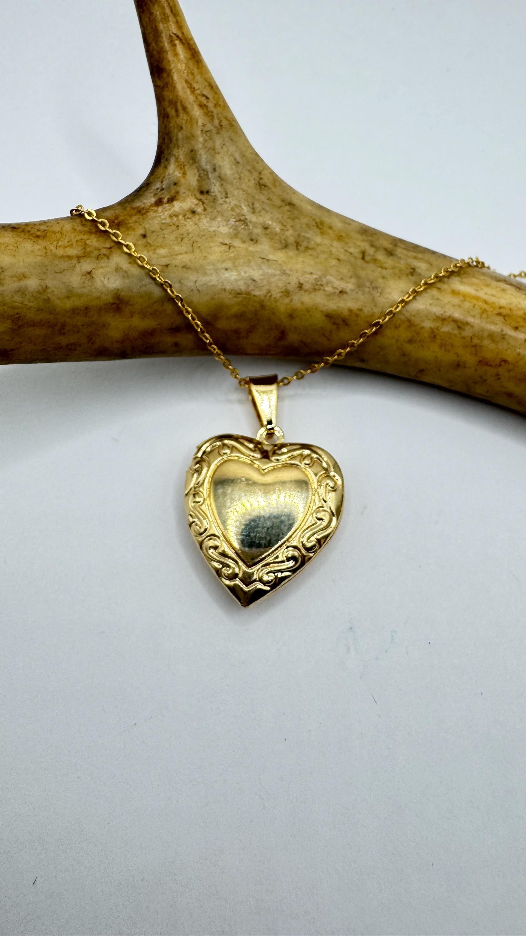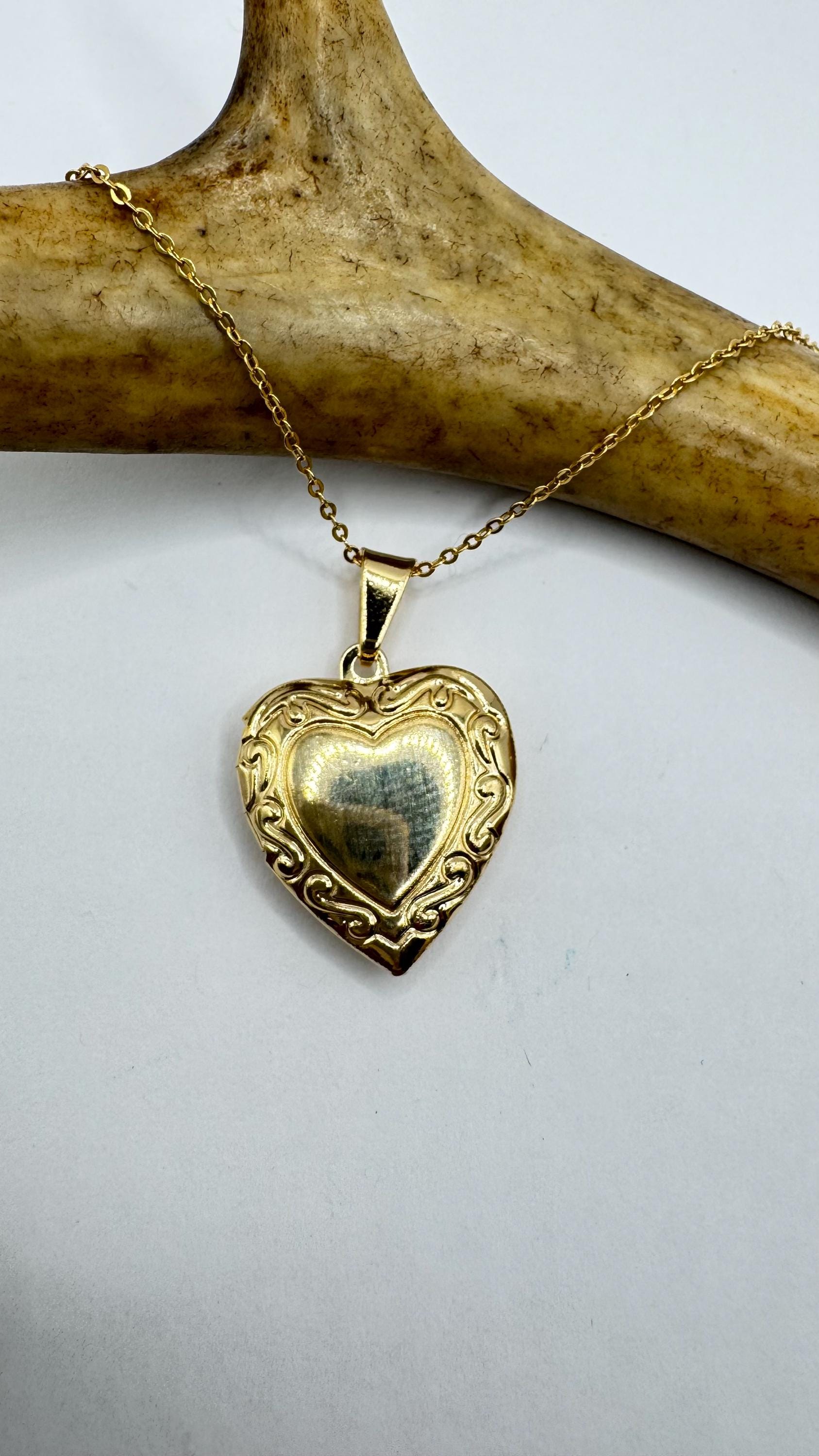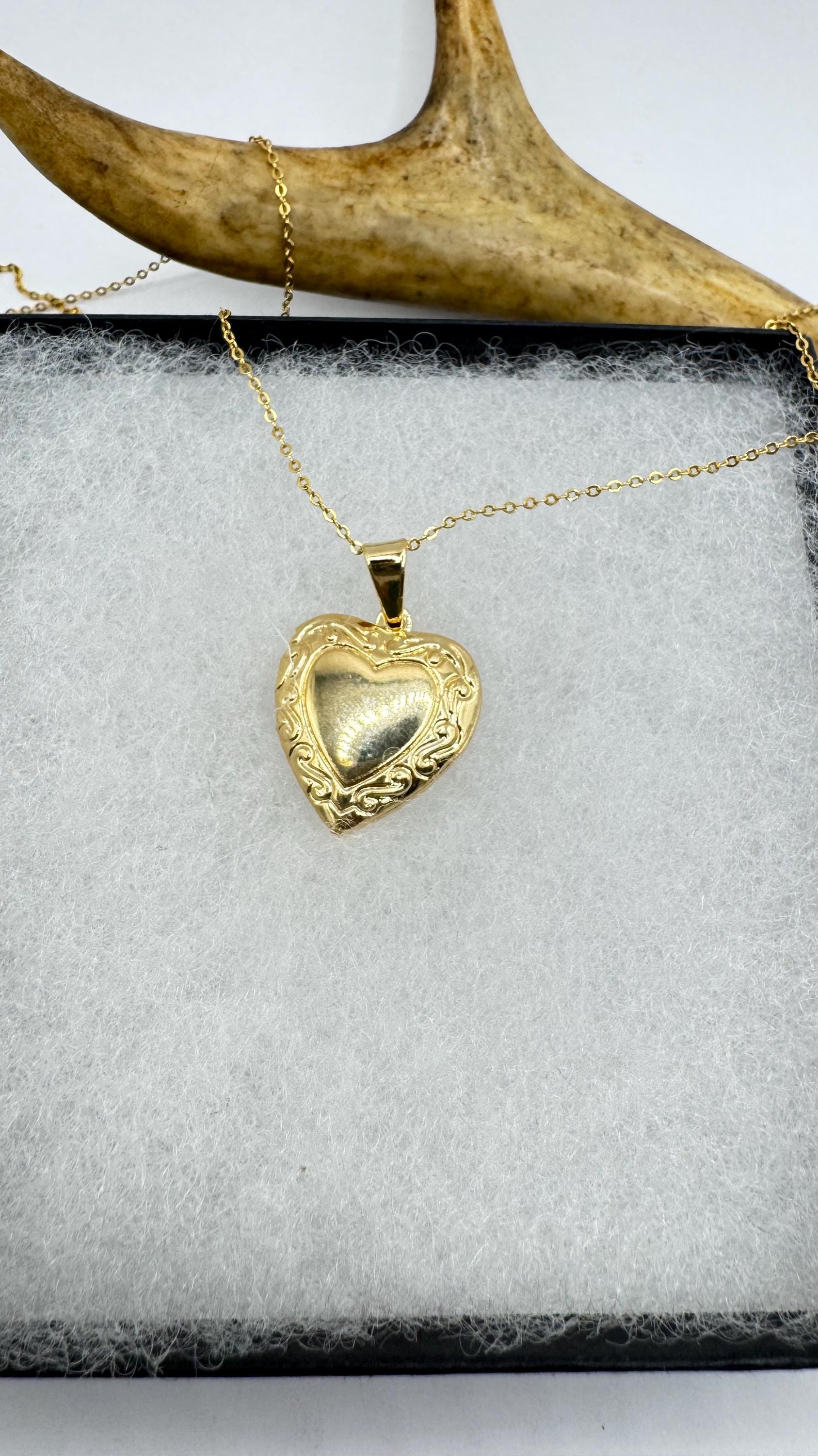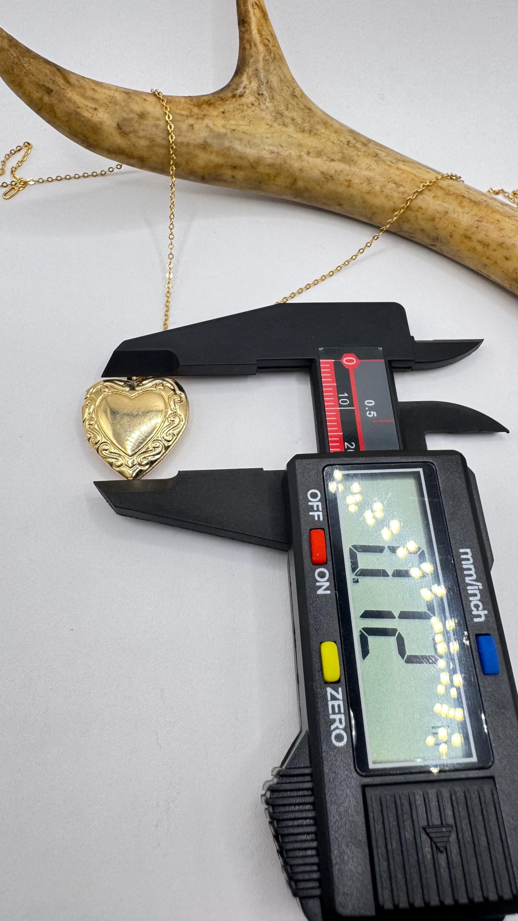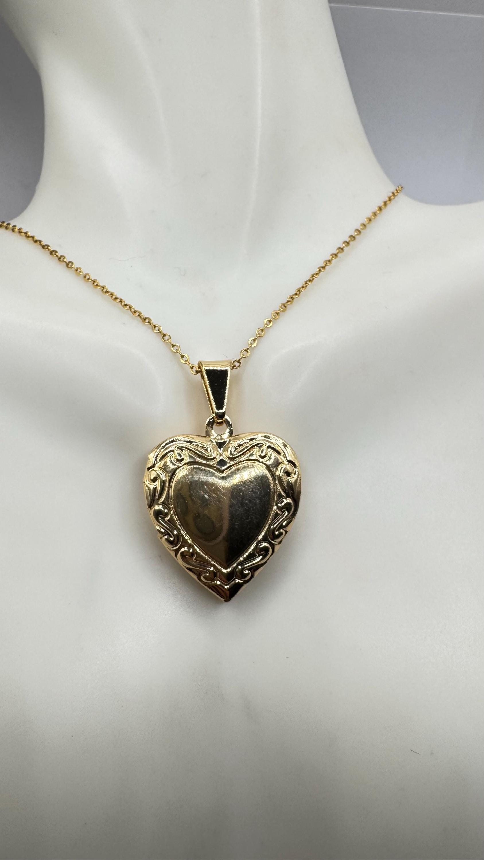 Vintage Gold Heart Photo Locket Necklace 9K Gold Filled Memory Charm on Delicate Gold Chain - Vintage Style Photo Necklace 1 review Share Deel Pin it Vintage Gold Heart Photo Locket Necklace 9K Gold Filled Memory Charm on Delicate Gold Chain - Vintage Style Photo Necklace 1 review Share Deel Pin it Product form Vintage heart locket 9k Gold filled Engraved This tiny treasure has about an inch photo space, just the locket without... Read more Necklace length Free pickup in our shop(s) 16 18 20 24 Free pickup in our shop(s) $110.00 $88.00 Quantity Add to cart This item is a recurring or deferred purchase. By continuing, I agree to the cancellation policy and authorize you to charge my payment method at the prices, frequency and dates listed on this page until my order is fulfilled or I cancel, if permitted.