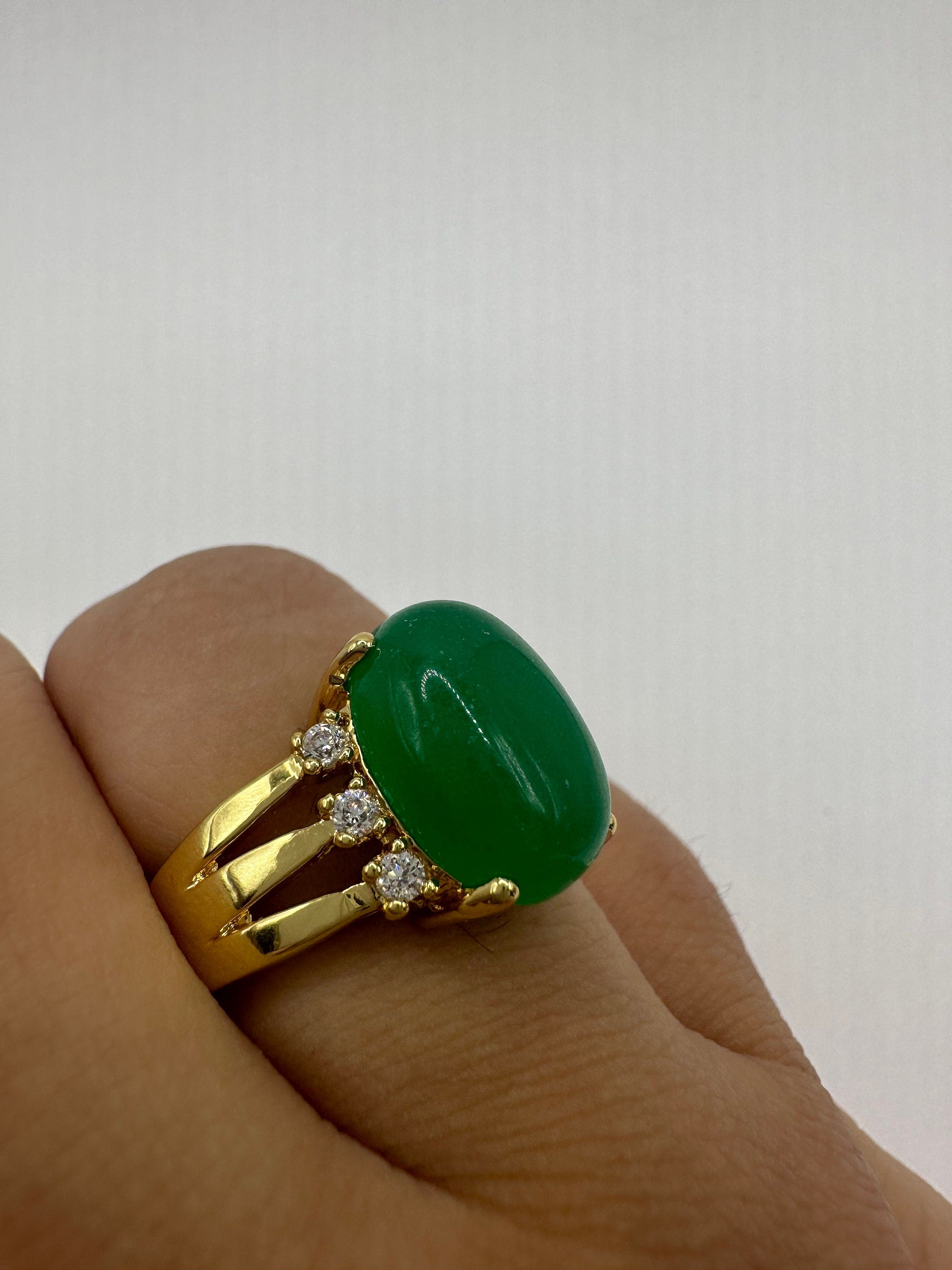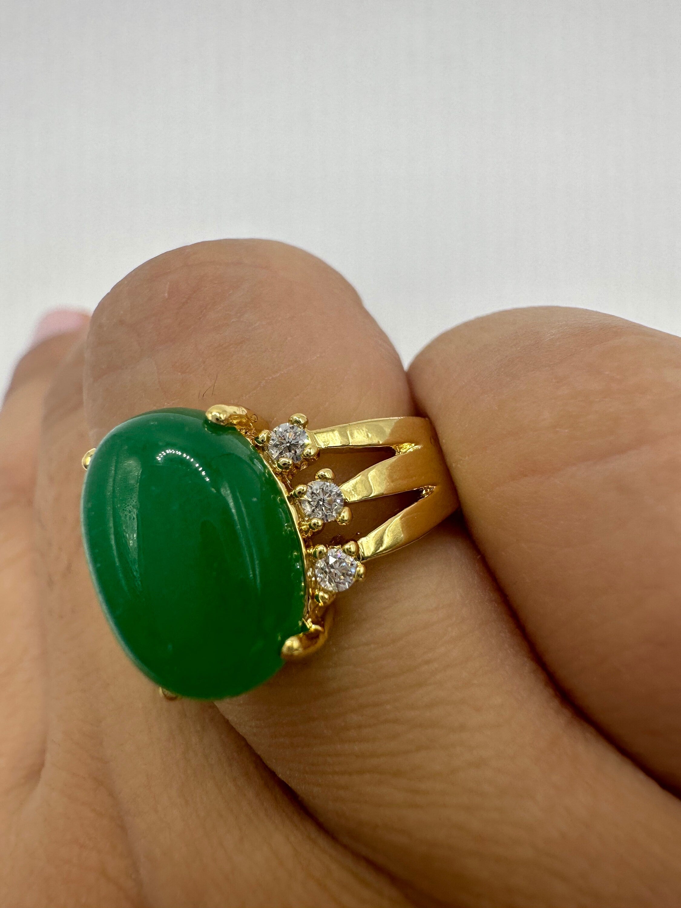 vintage green fun jade ring Setting is a golden finished bronze setting This is one of my hand re finished... Read more