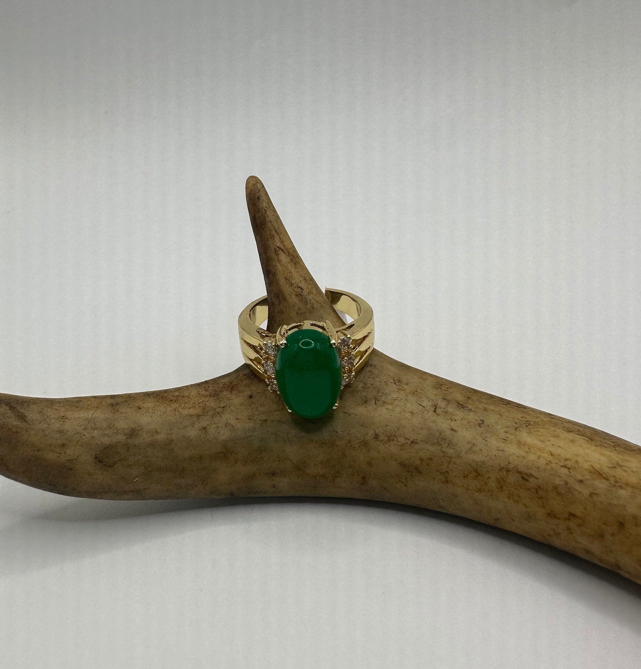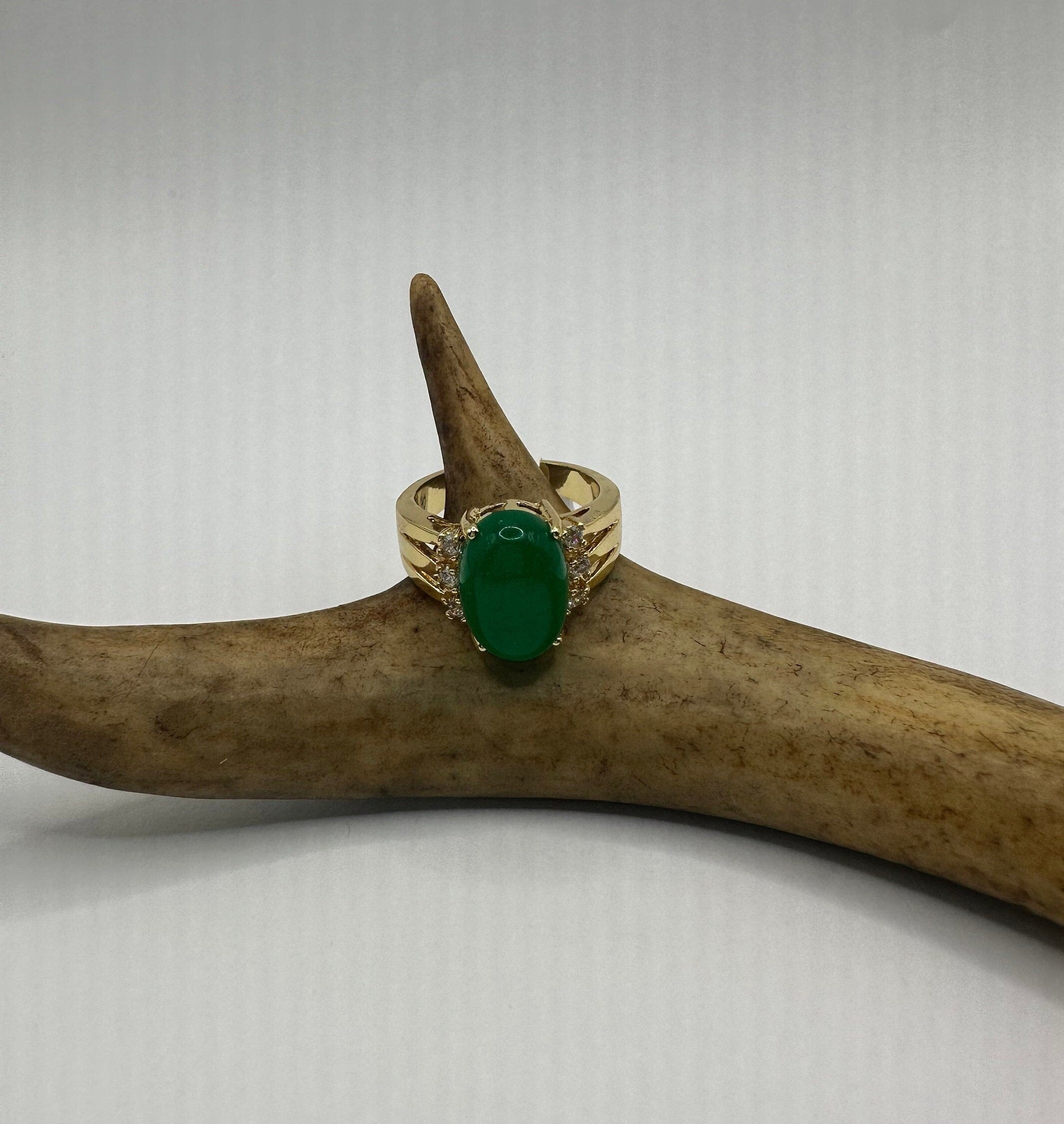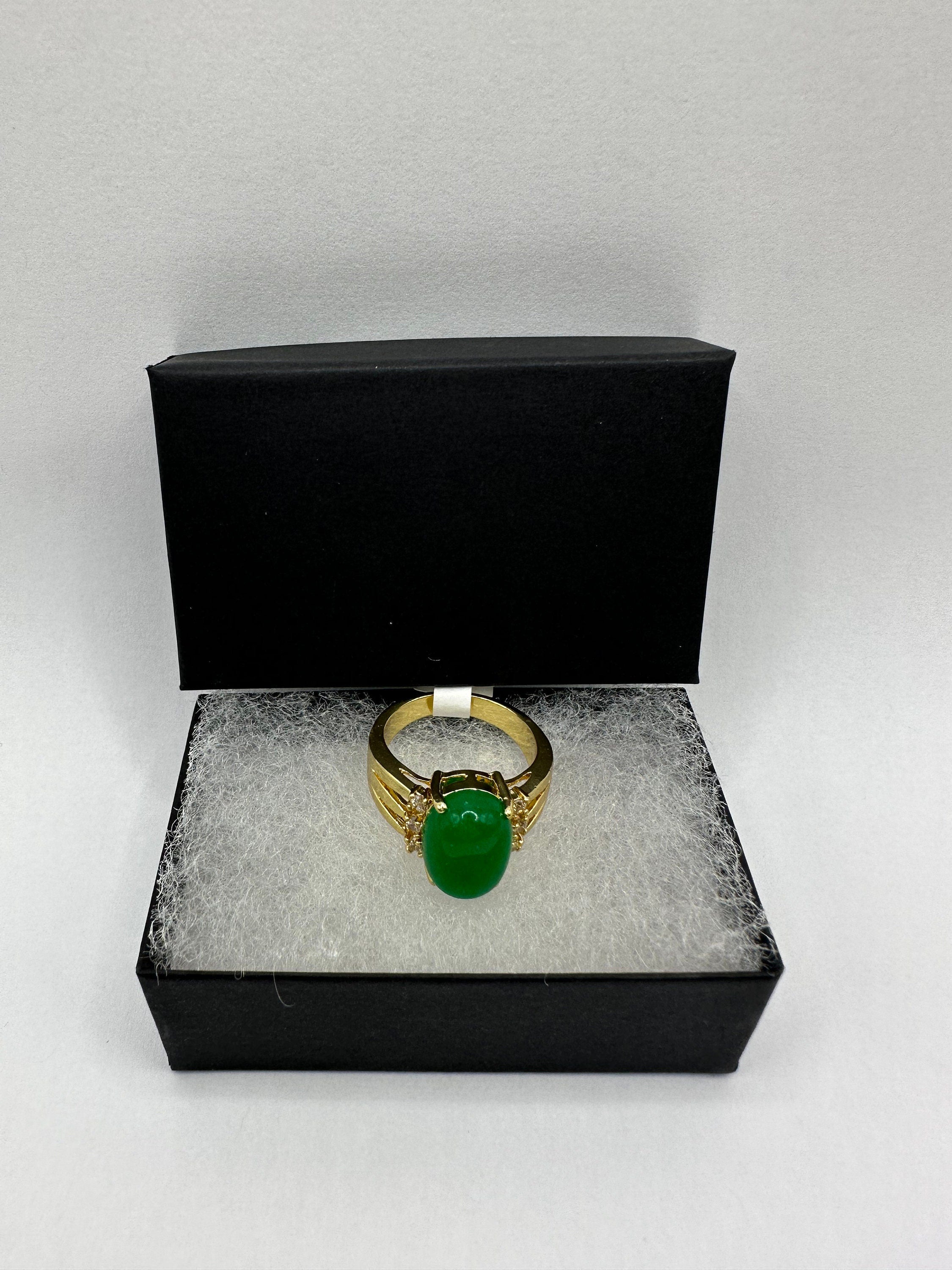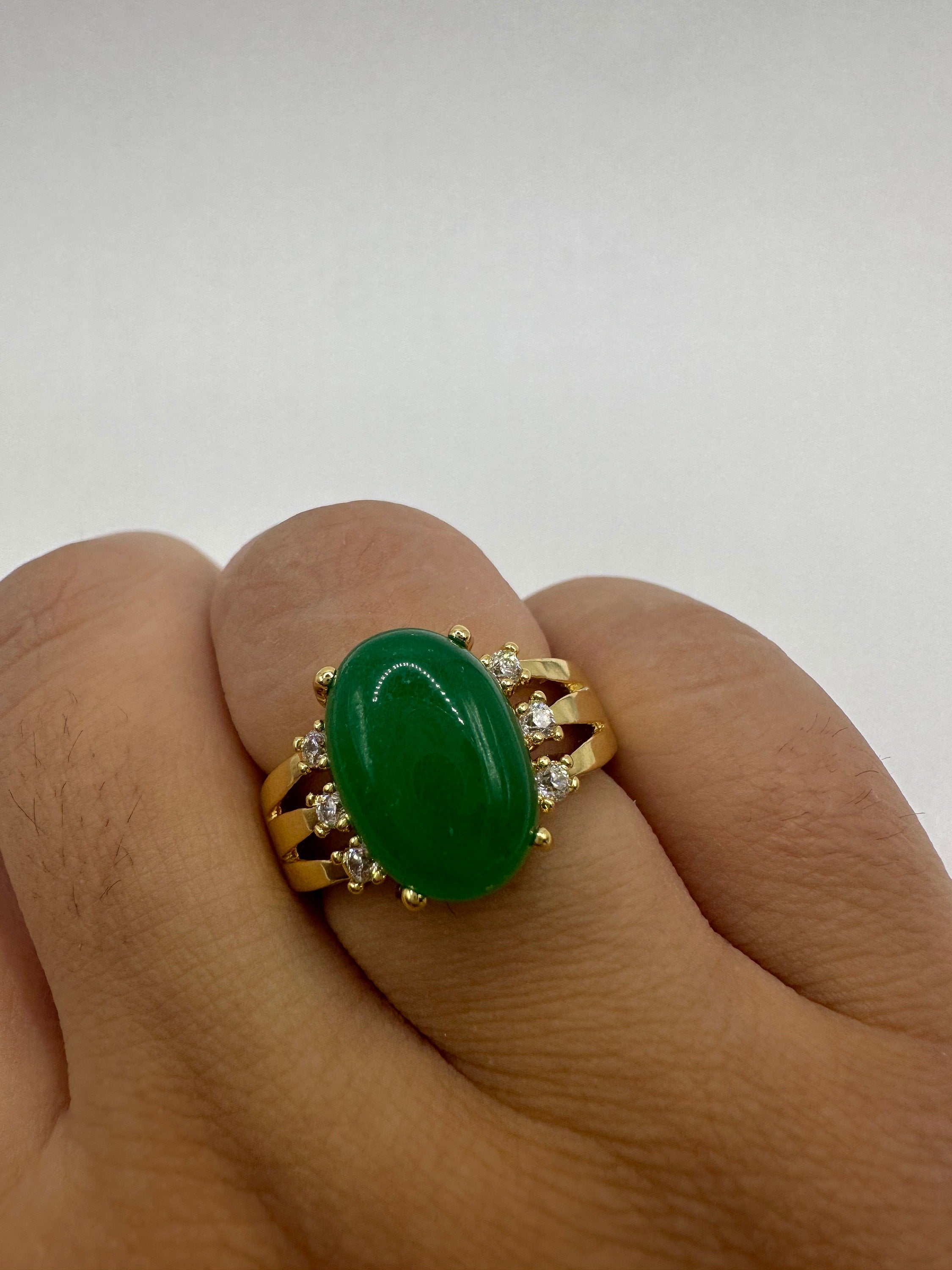 Vintage Gold Jade Ring | Green Gemstone Jade Crystal Birthstone Lucky Cocktail Ring | Golden Bronze Gold Ring