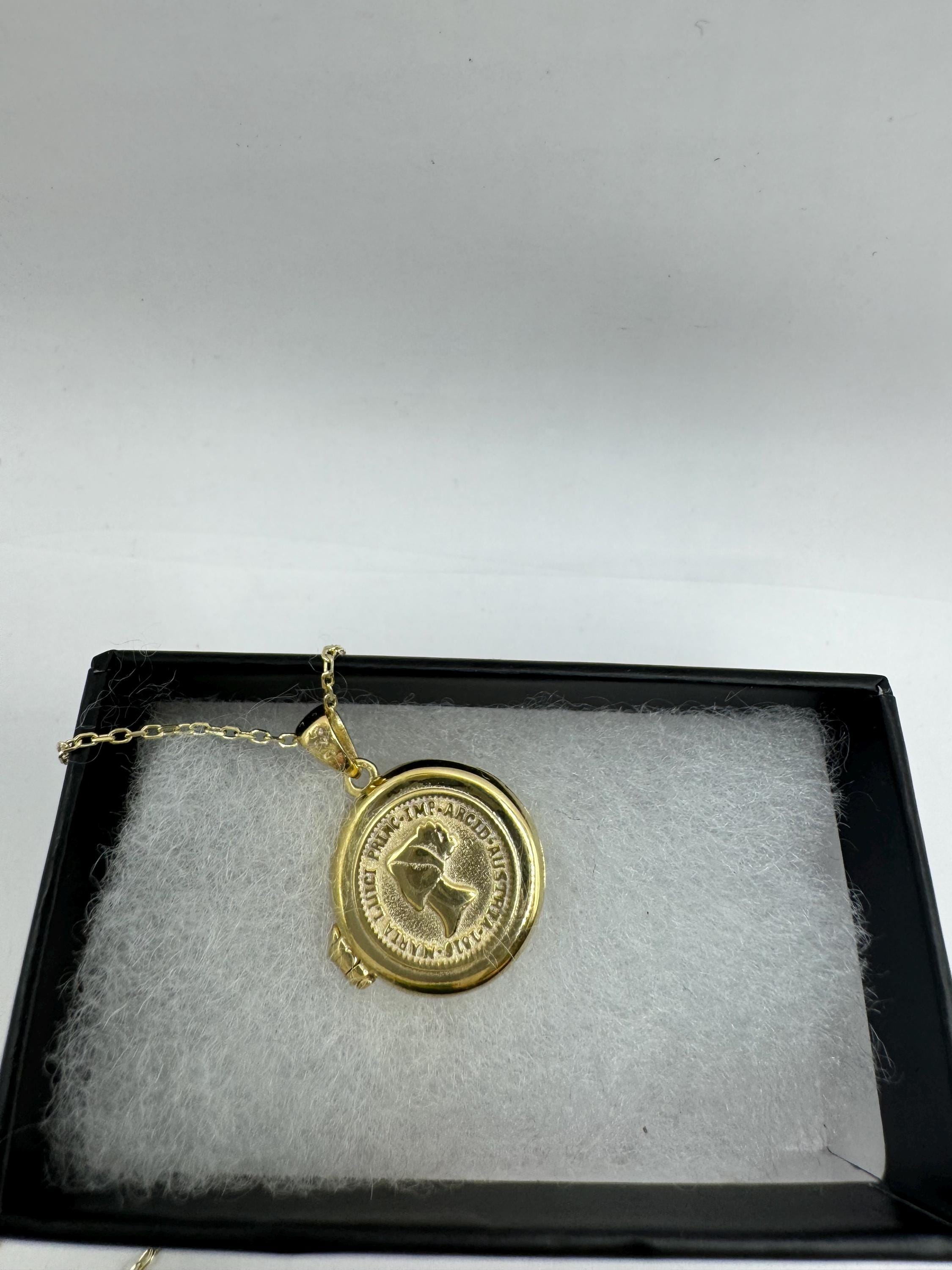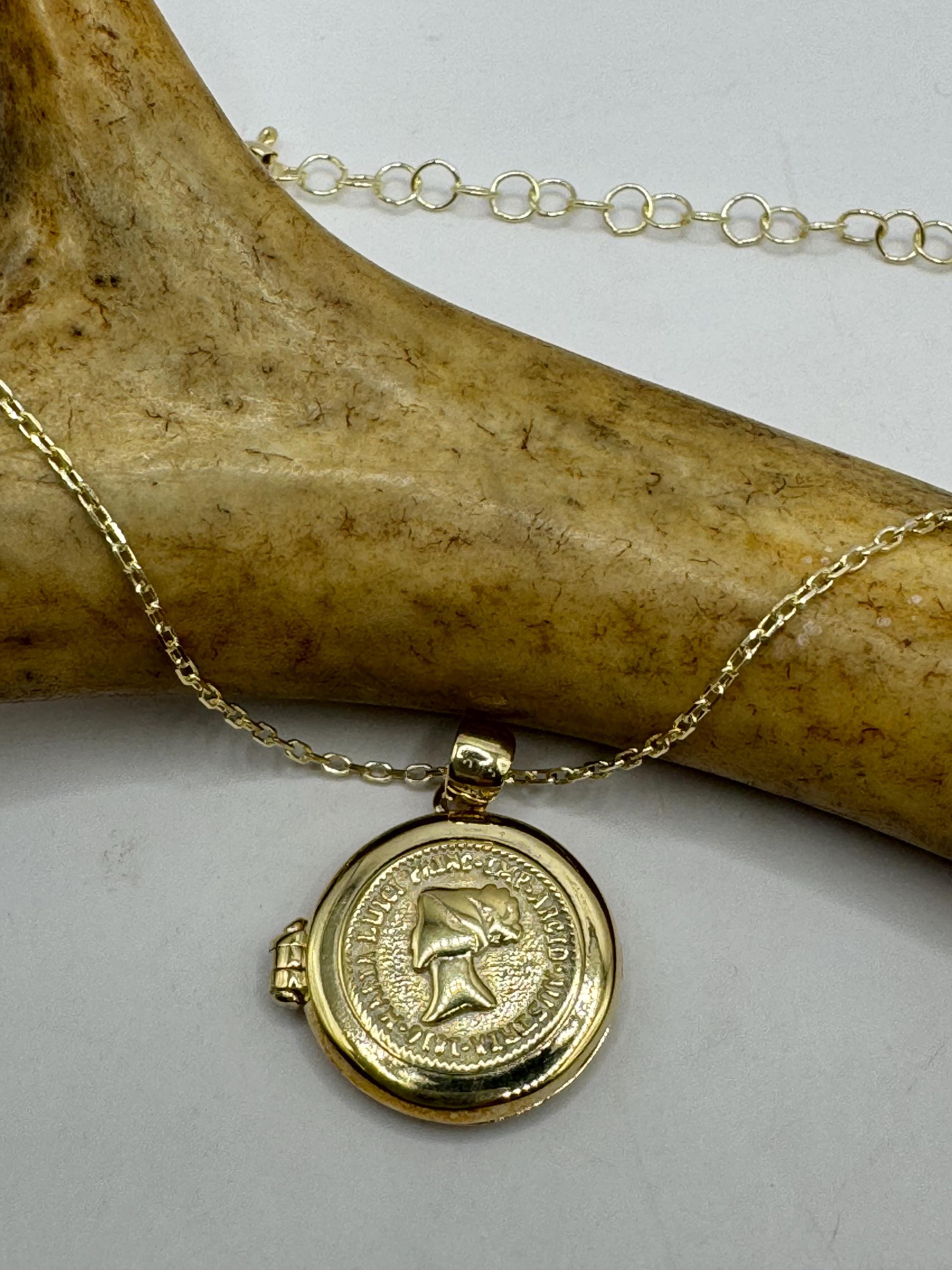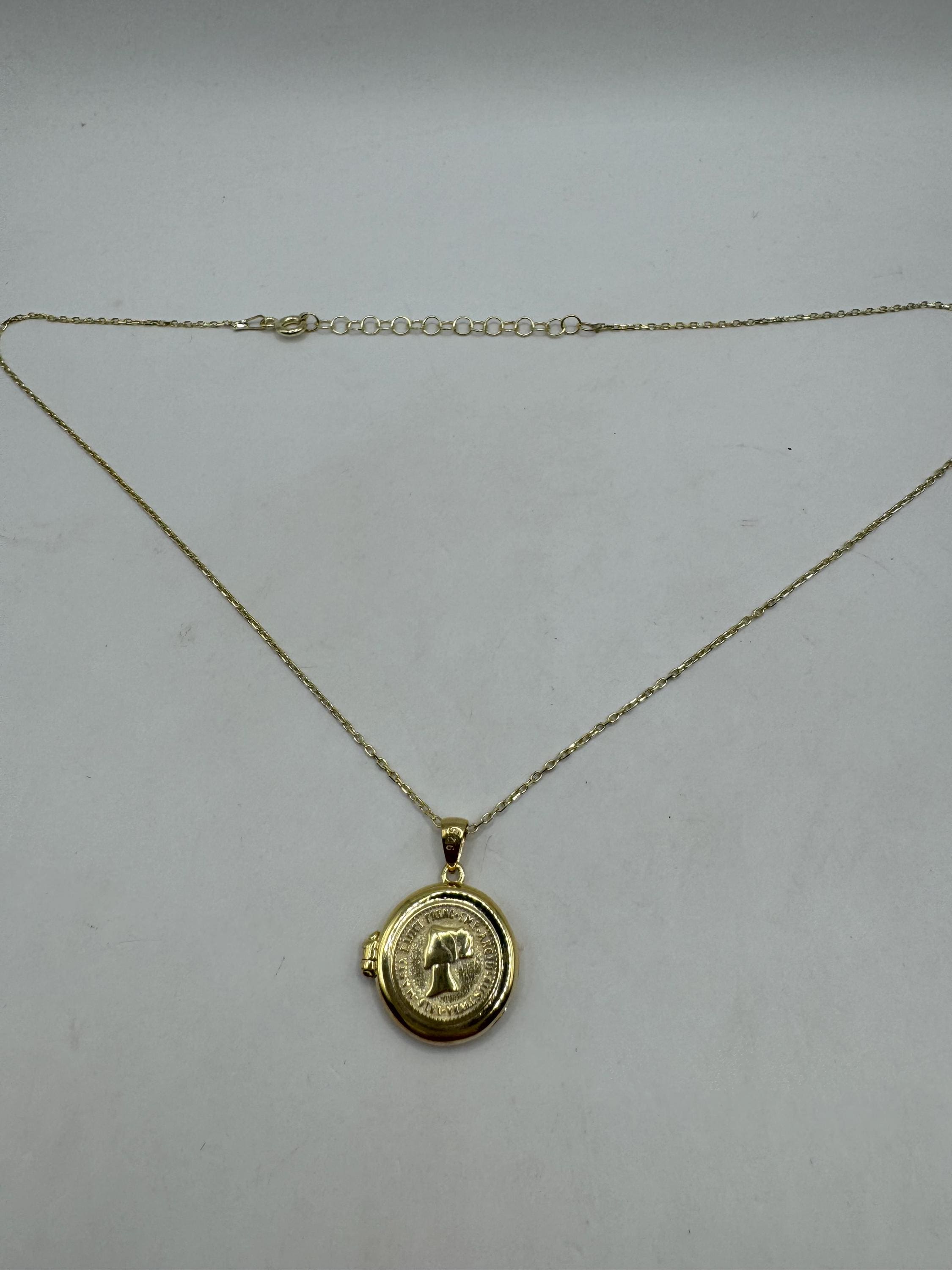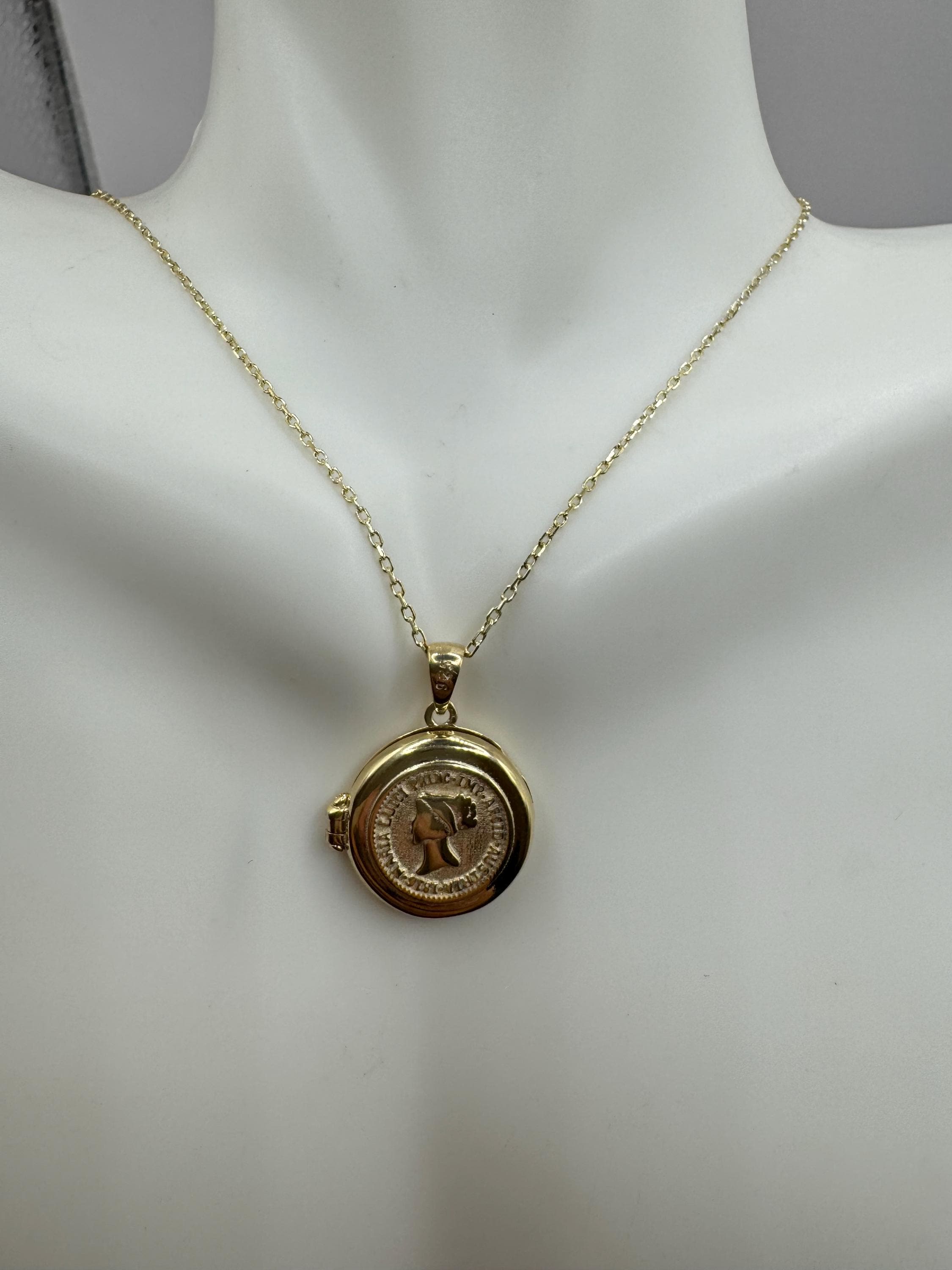 Vintage Gold Locket Necklace | Tiny Gold Coin Photo Memory Charm Pendant | 925 Sterling Silver Delicate Chain | Small Photo Mini Memory