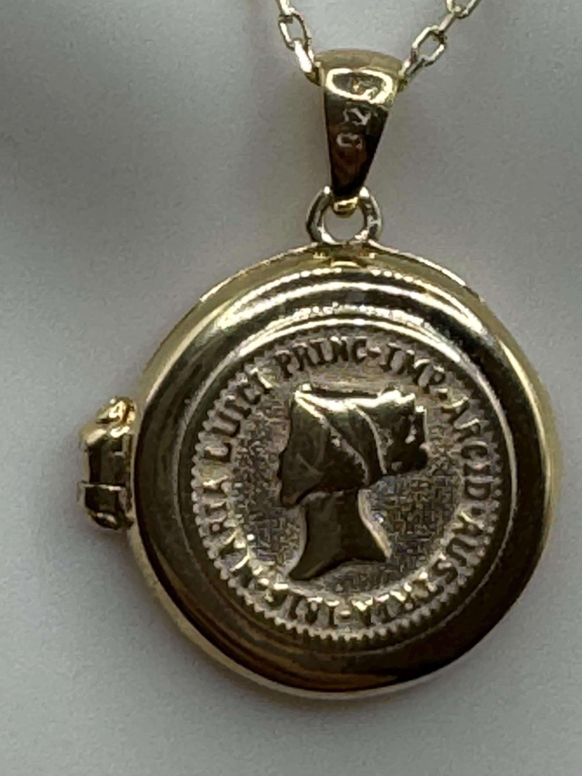 Our Vintage Tiny gold Photo Austrian coin casting Locket is about 1/2 inch (12mm) long and features a lovely etched... Read more