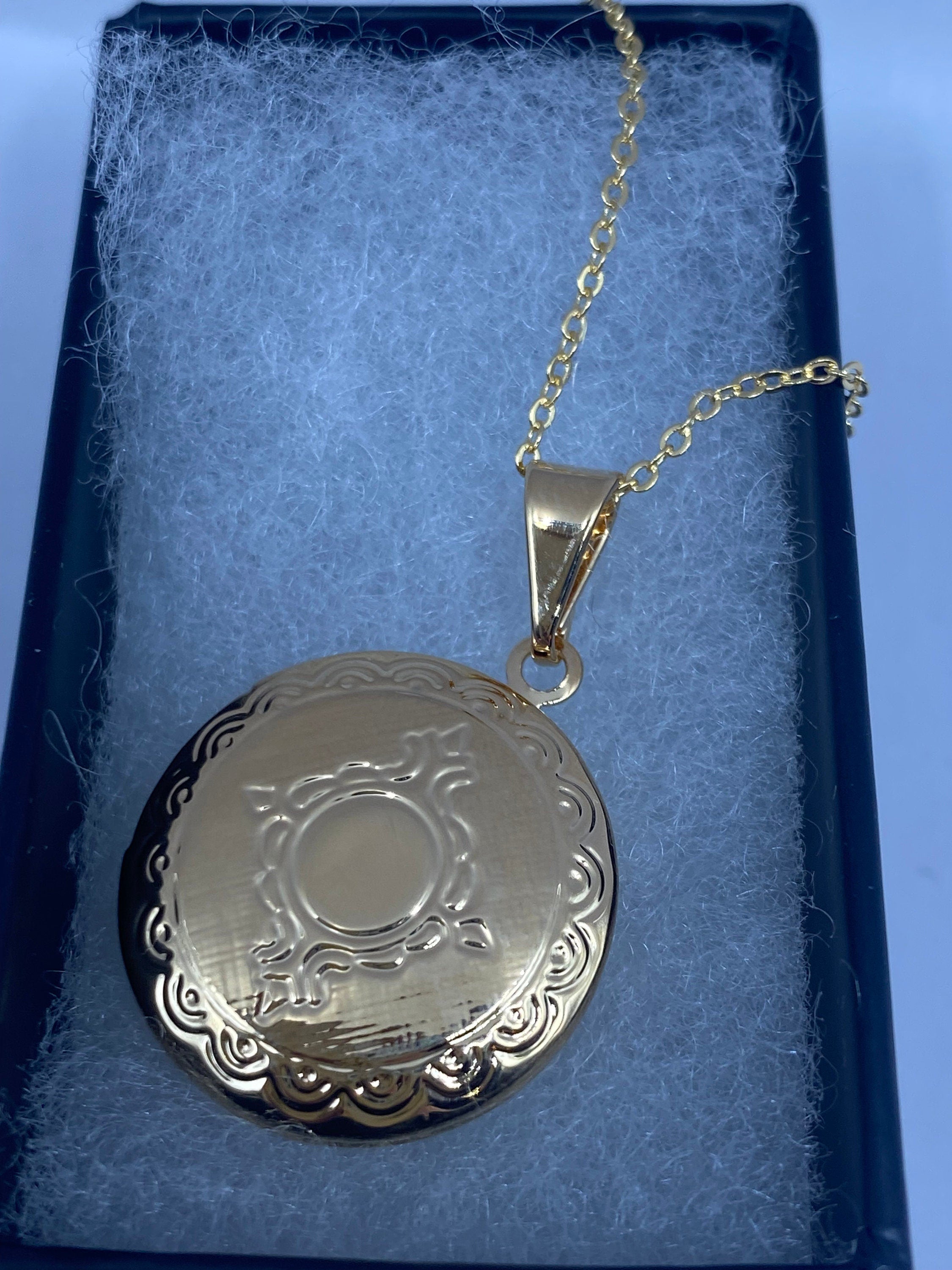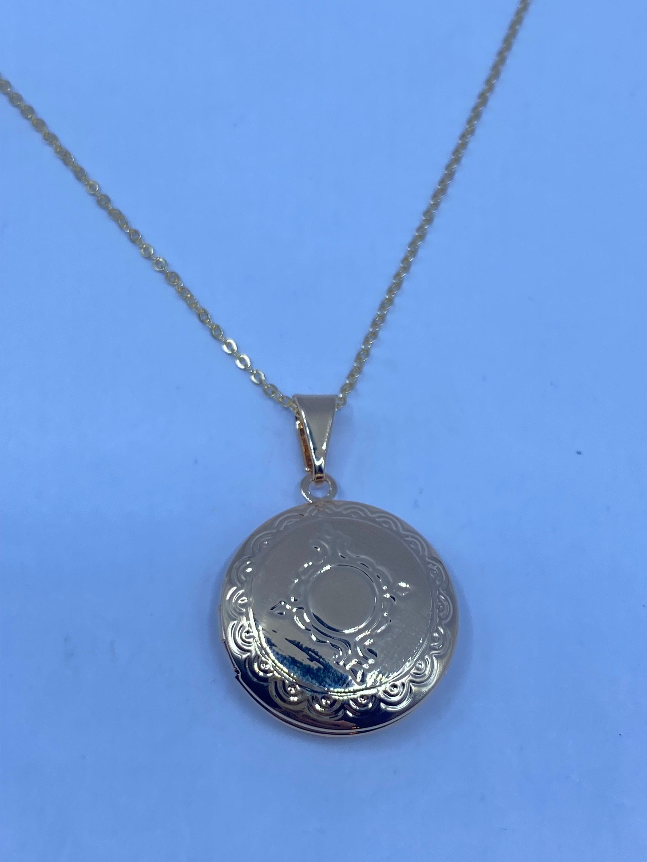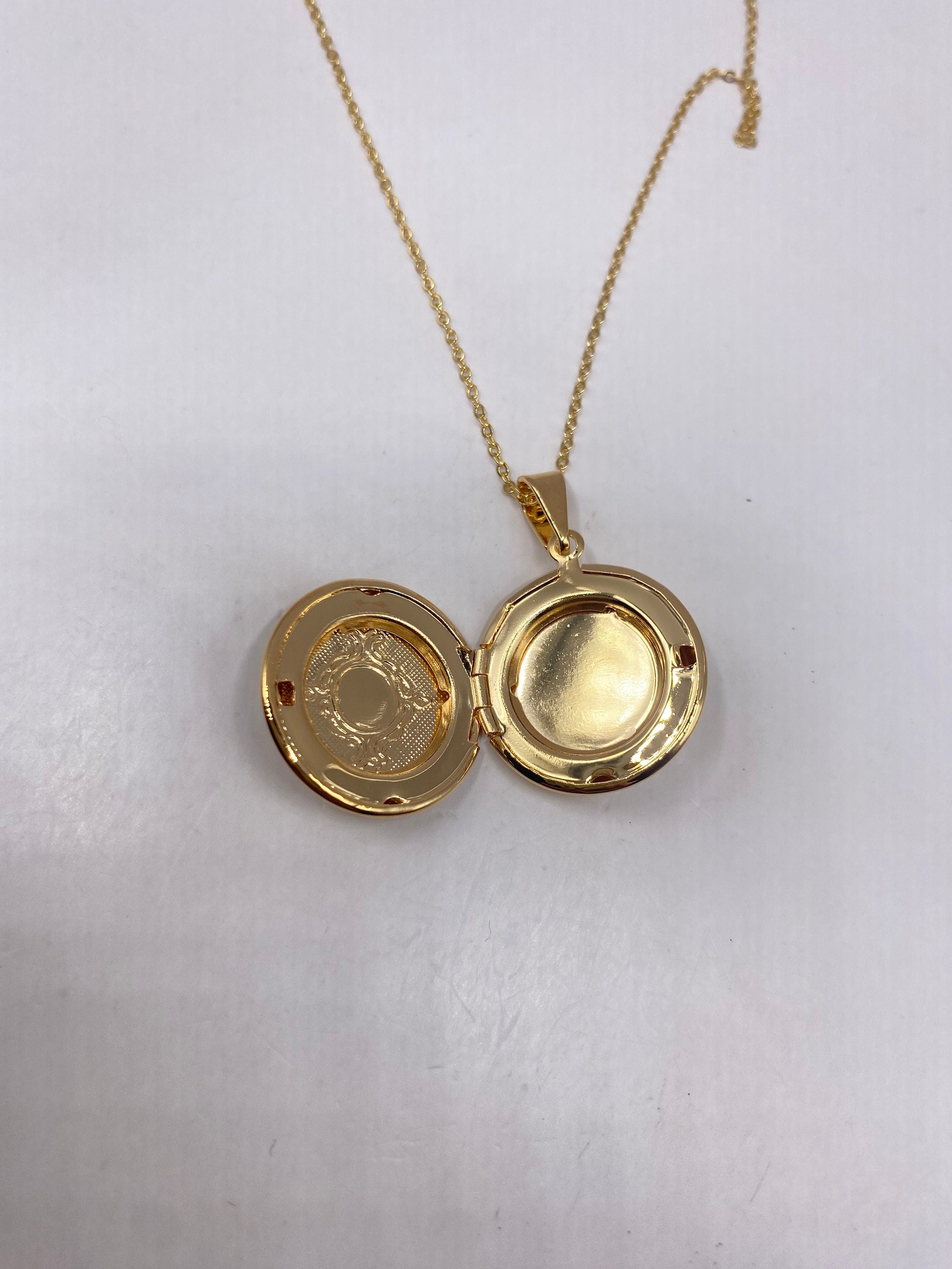Vintage Tiny Gold Locket featuring beautifully etched 9K Gold Filled photo charm pendant, measuring about 1" (2.5cm) in diameter on... Read more