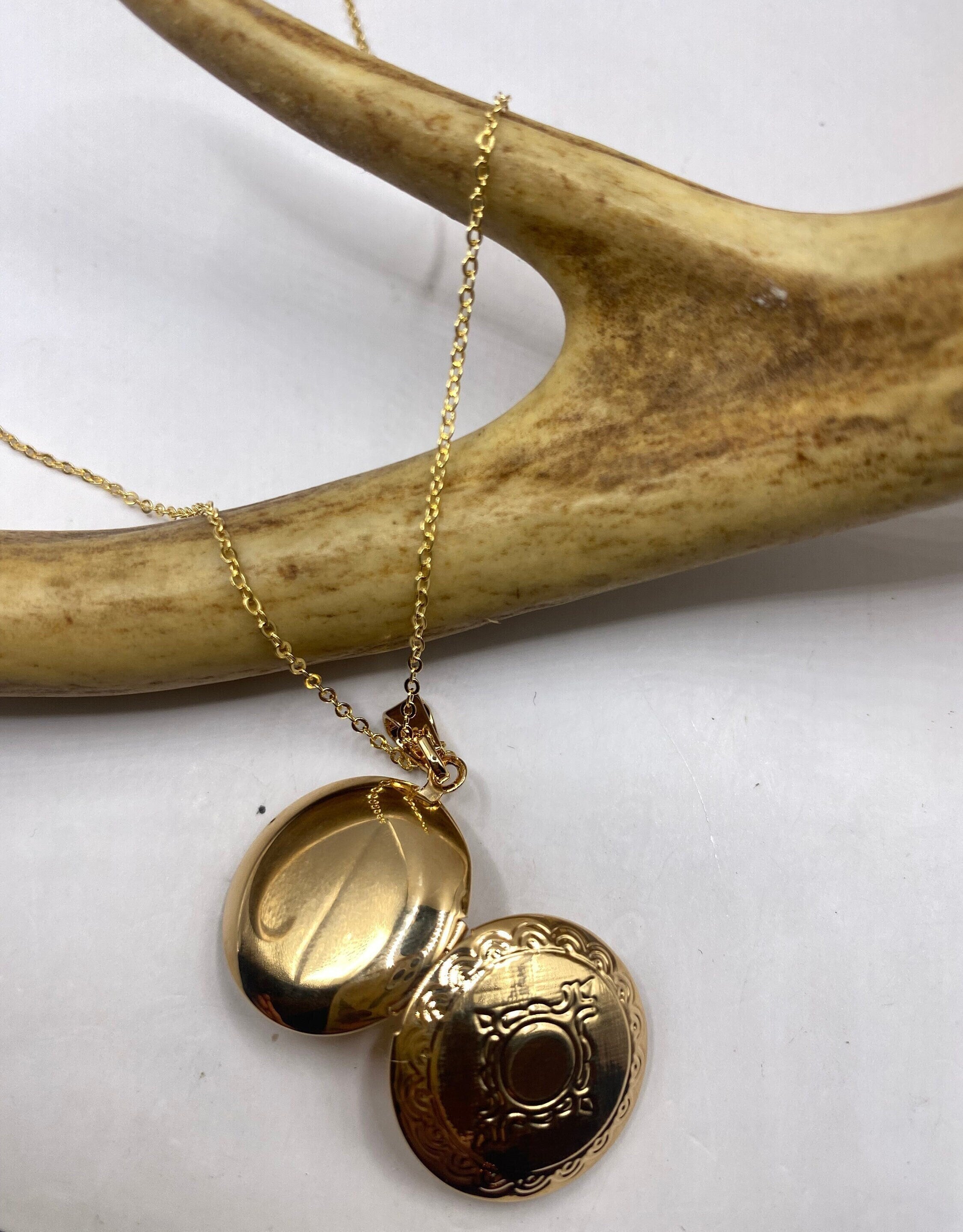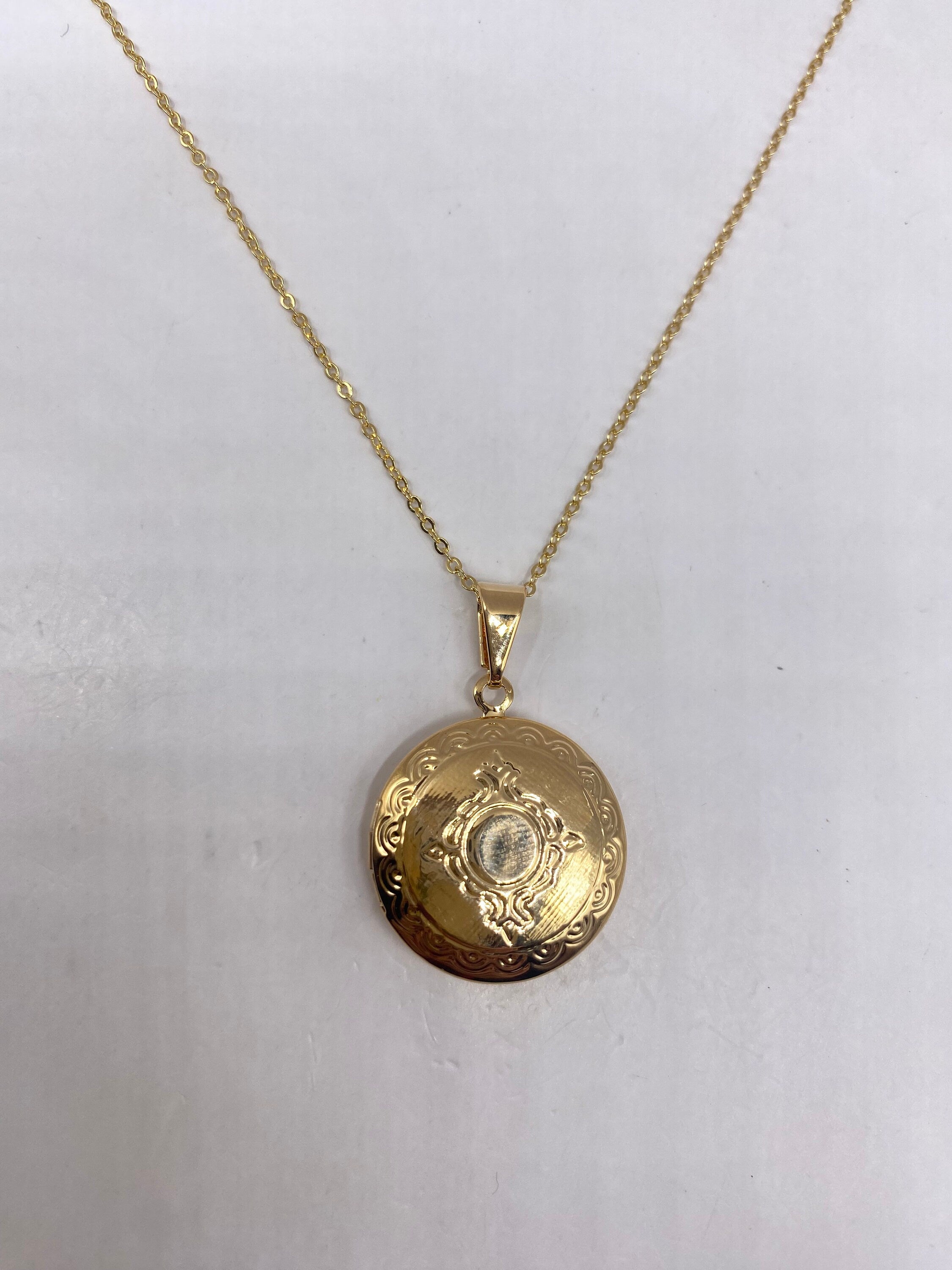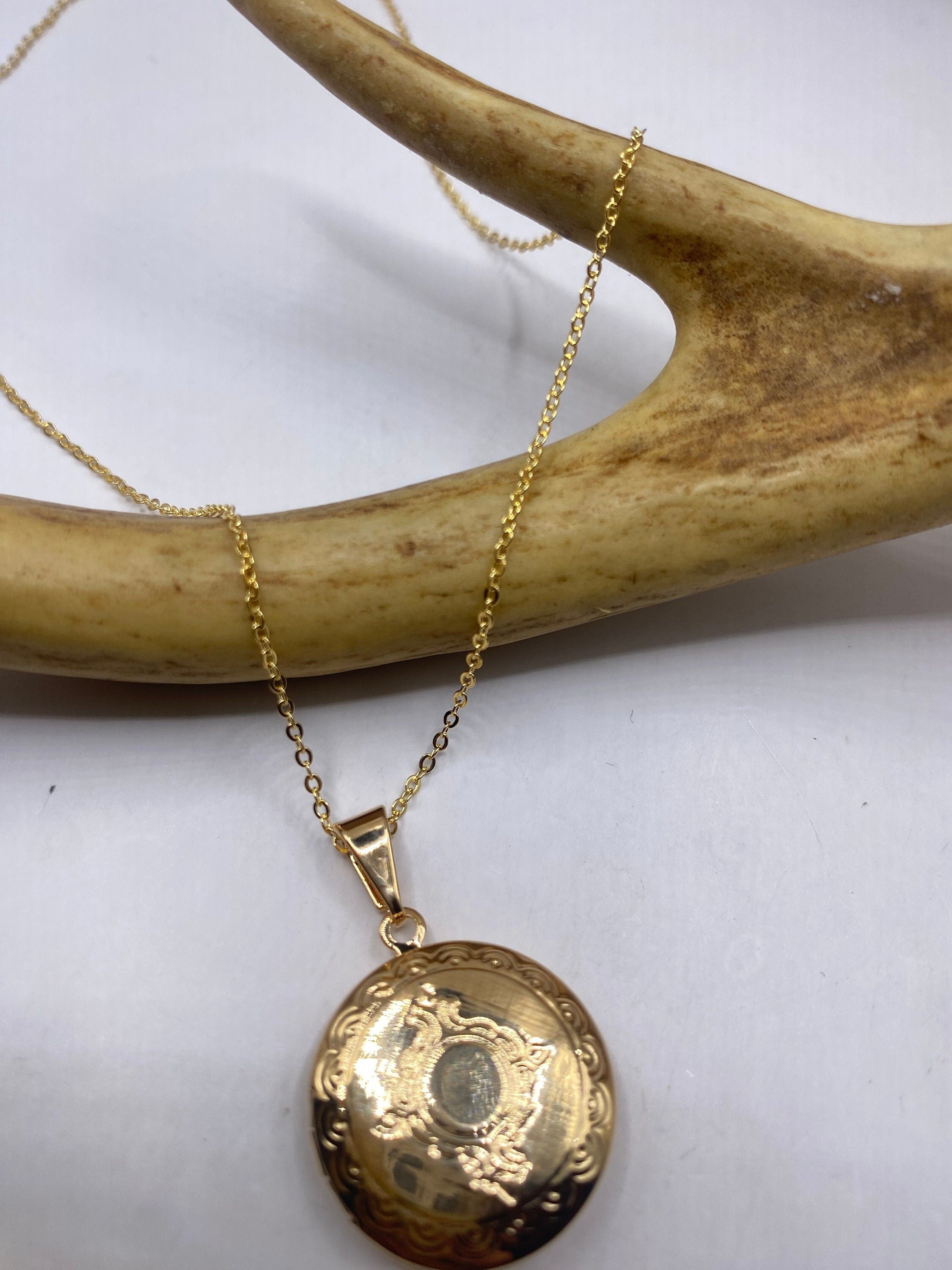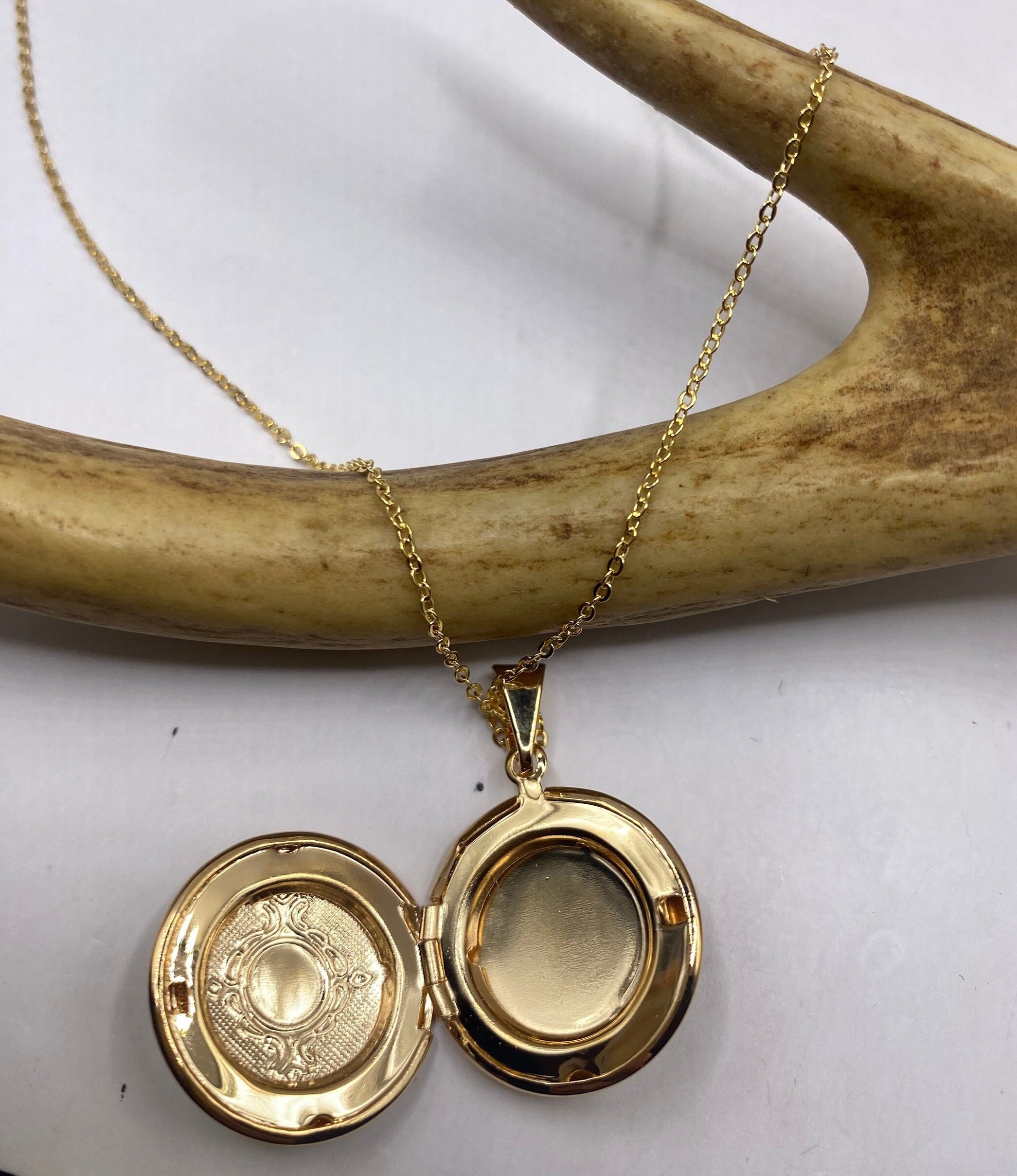 Vintage Gold Locket Necklace | Tiny Round Etched Engraved 9K Gold Filled Photo Memory Locket on Delicate Gold Chain | Small Photo Memory