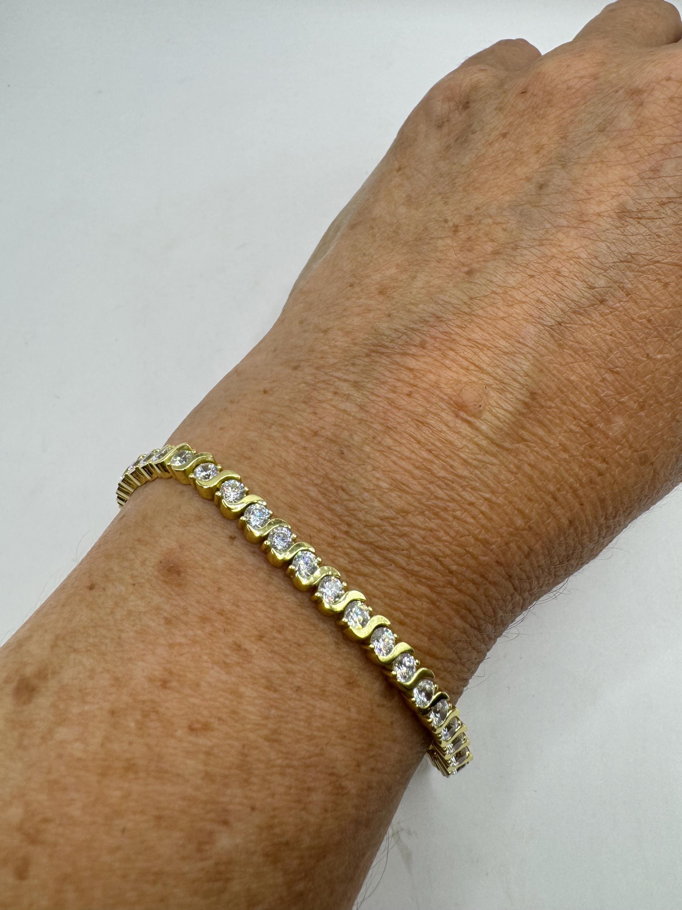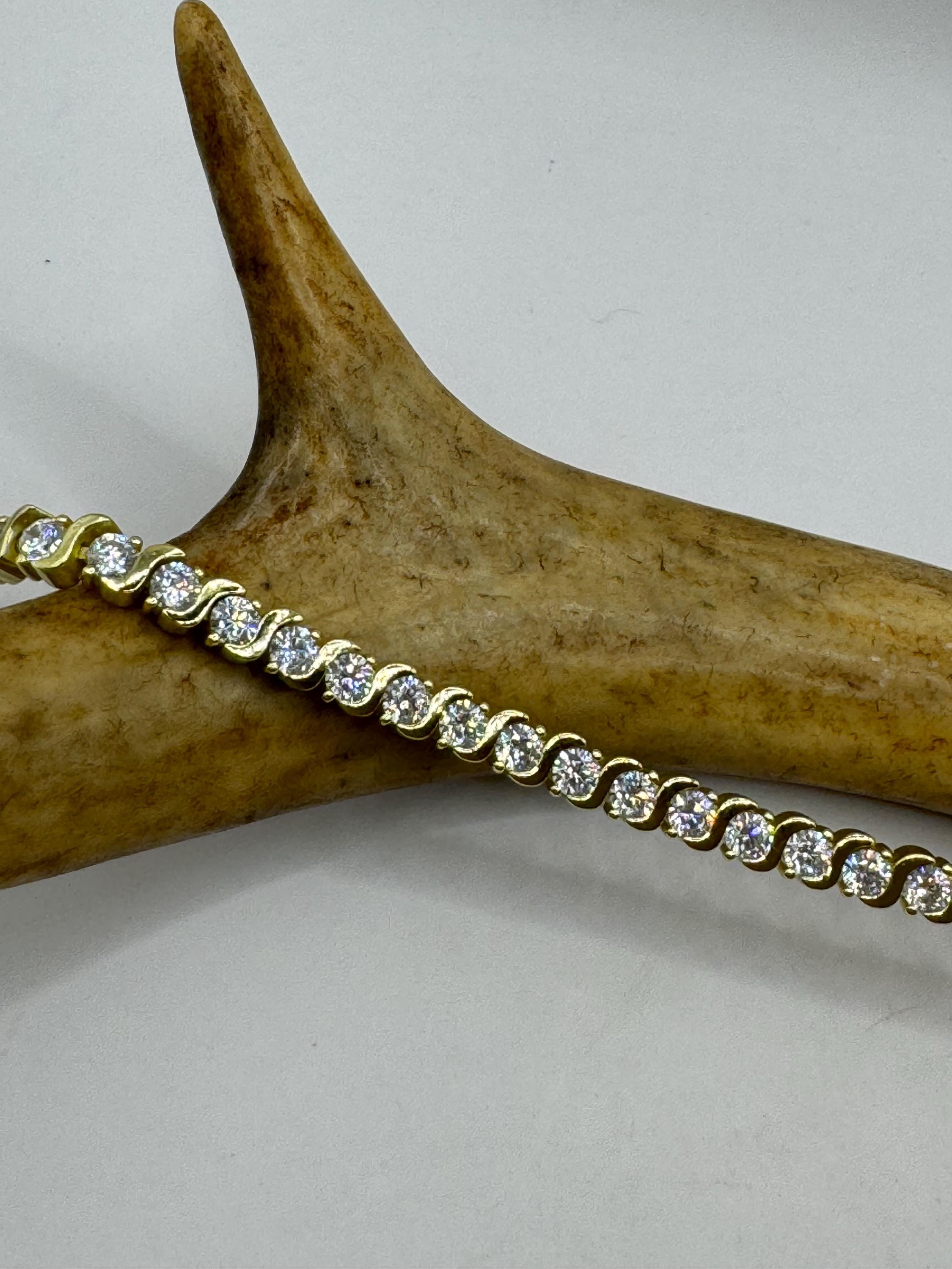 Vintage Gold Tennis Bracelet features a simple bezel set with small 2 mm Cubic Zirconia crystal diamond gemstones.simple, minimal design... Read more