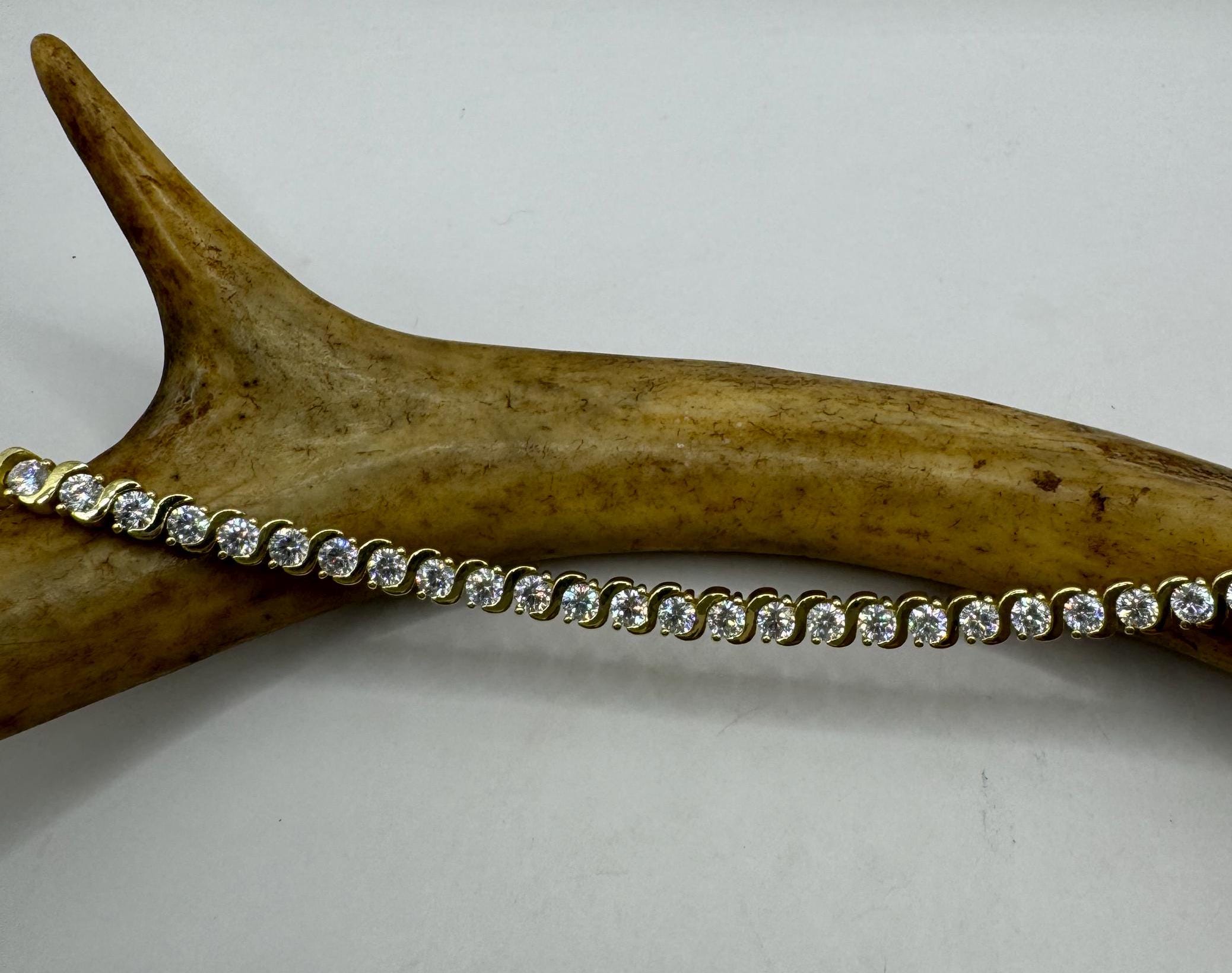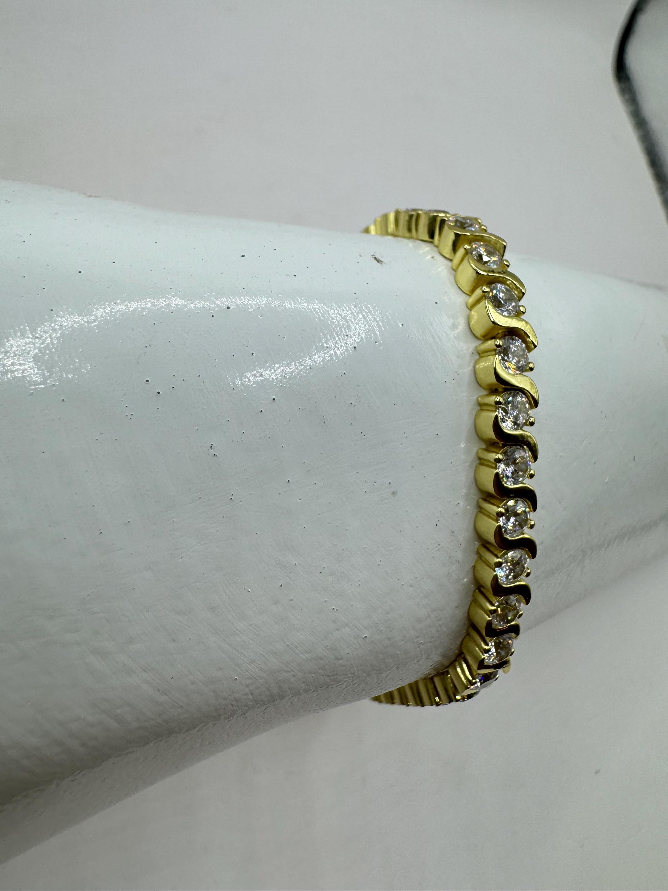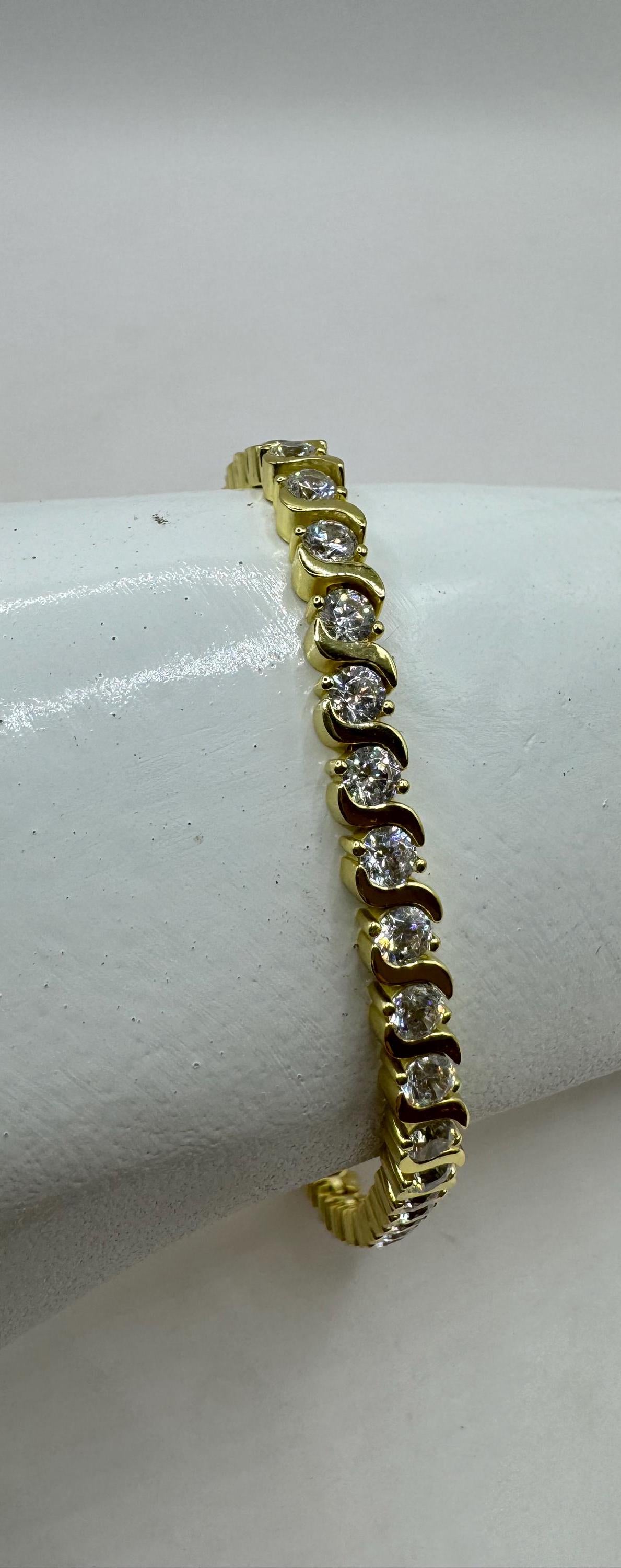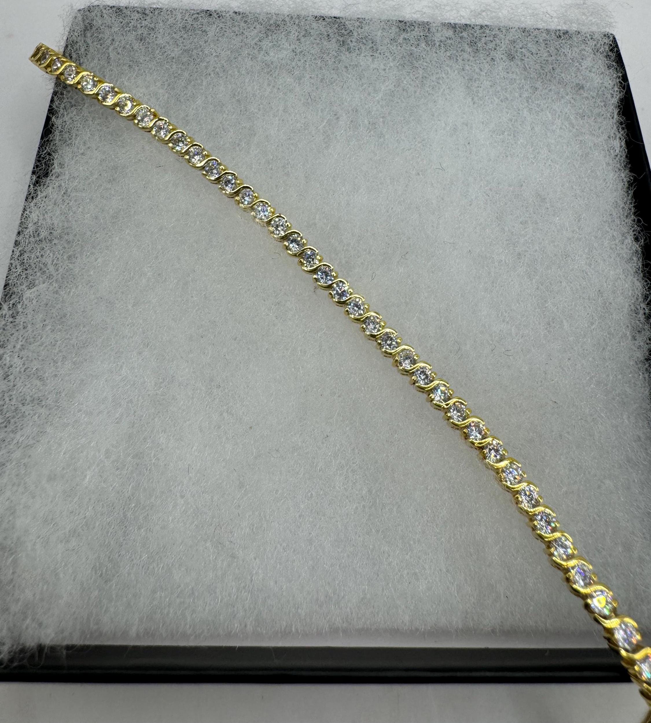 Vintage Gold Tennis Bracelet Cubic Zirconia Crystal Diamond Gemstone Gold 925 Sterling Silver Stackable Layered everyday minimal dainty