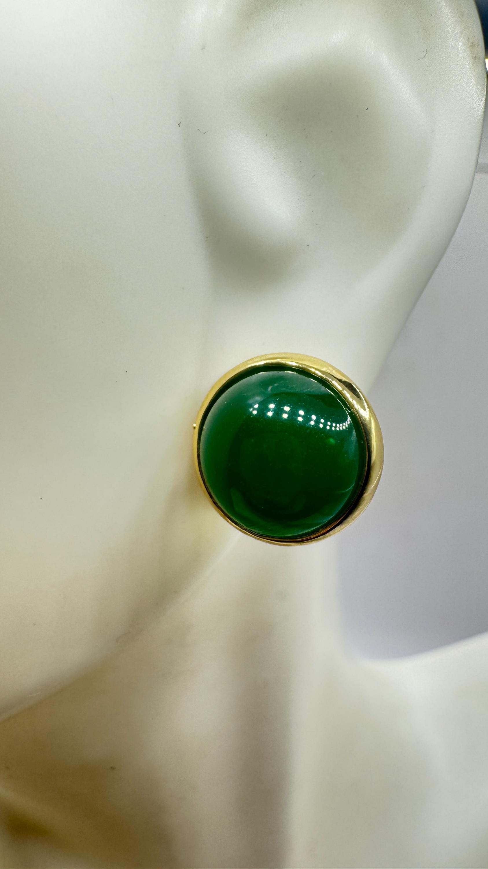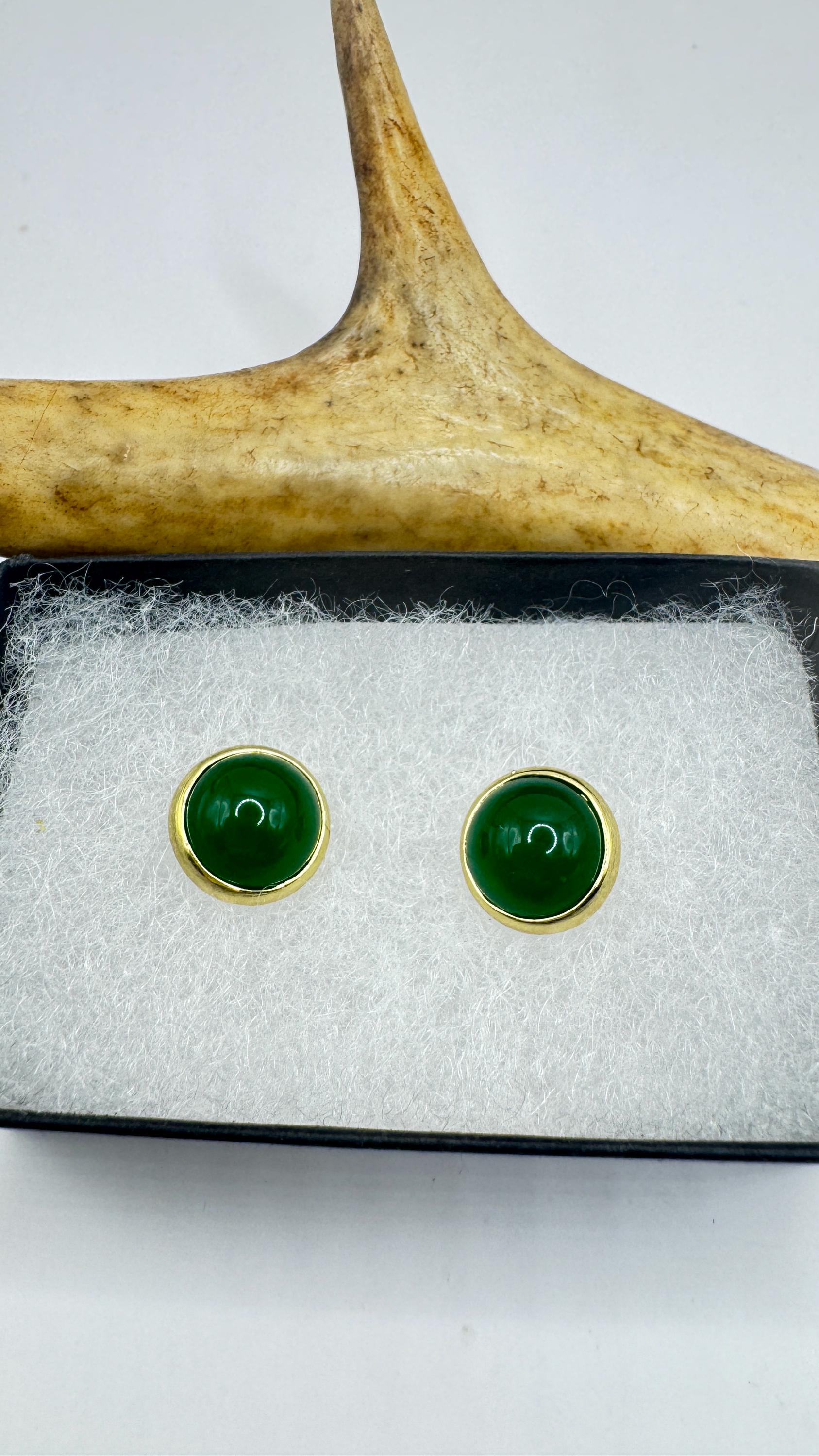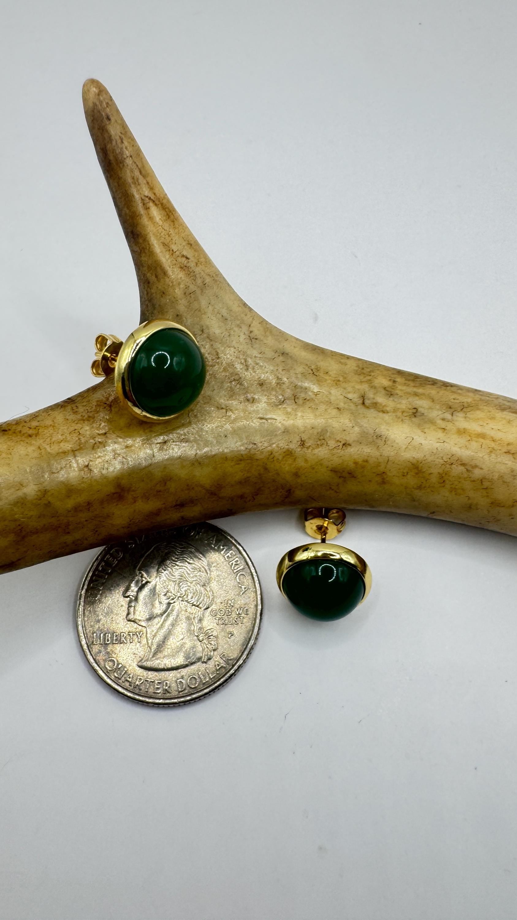 Vintage green jade stud earrings Golden Bronze casting This is “fun jade” color enhanced Thank you for supporting a small... Read more