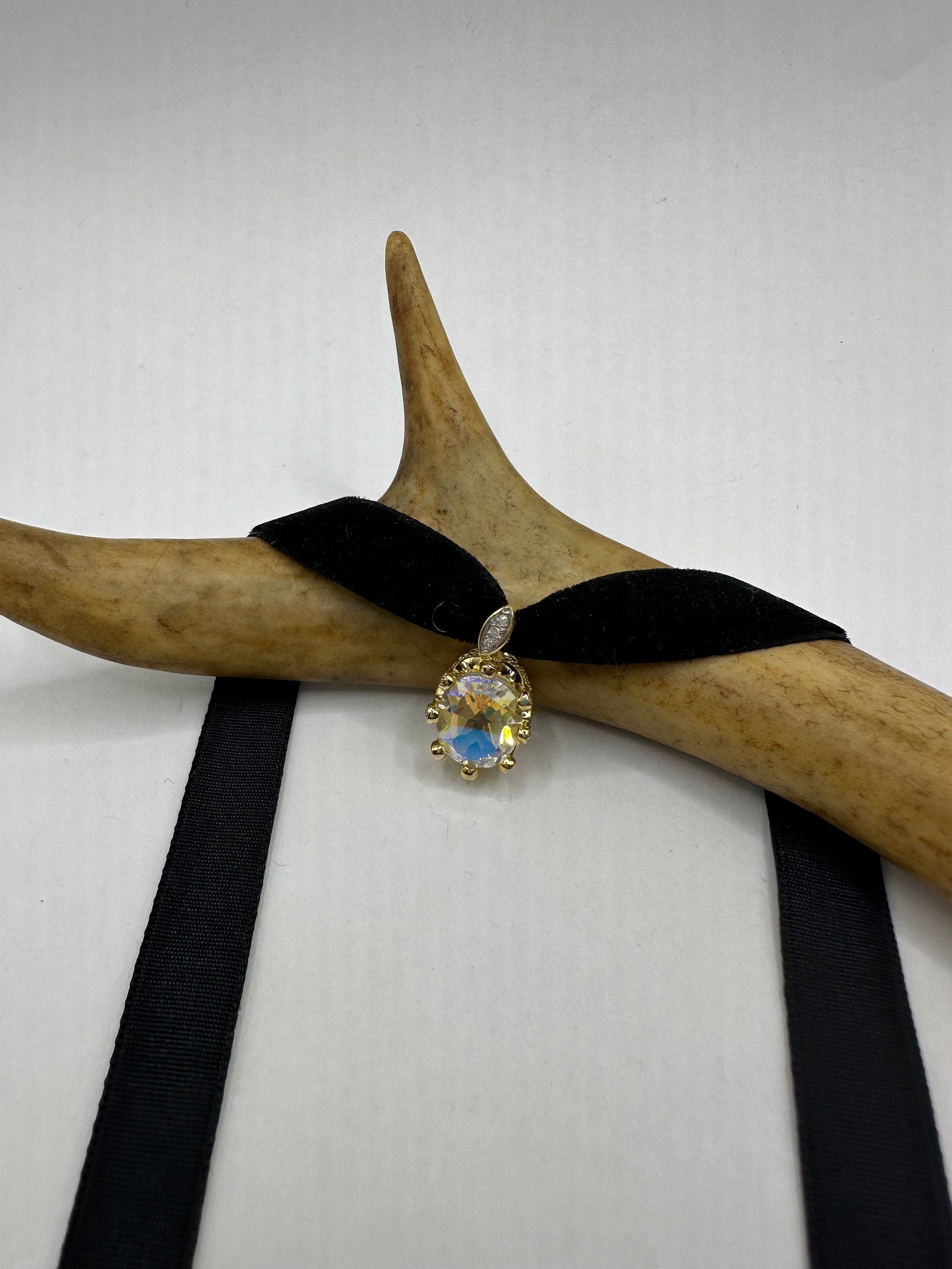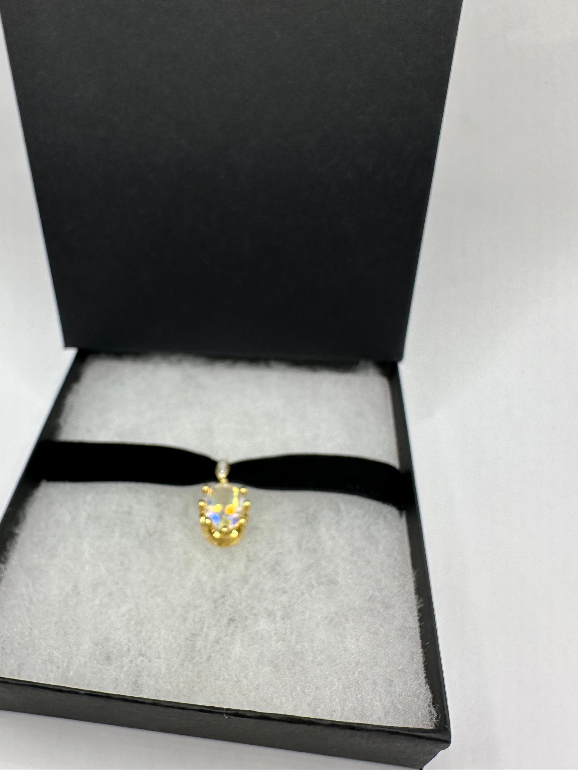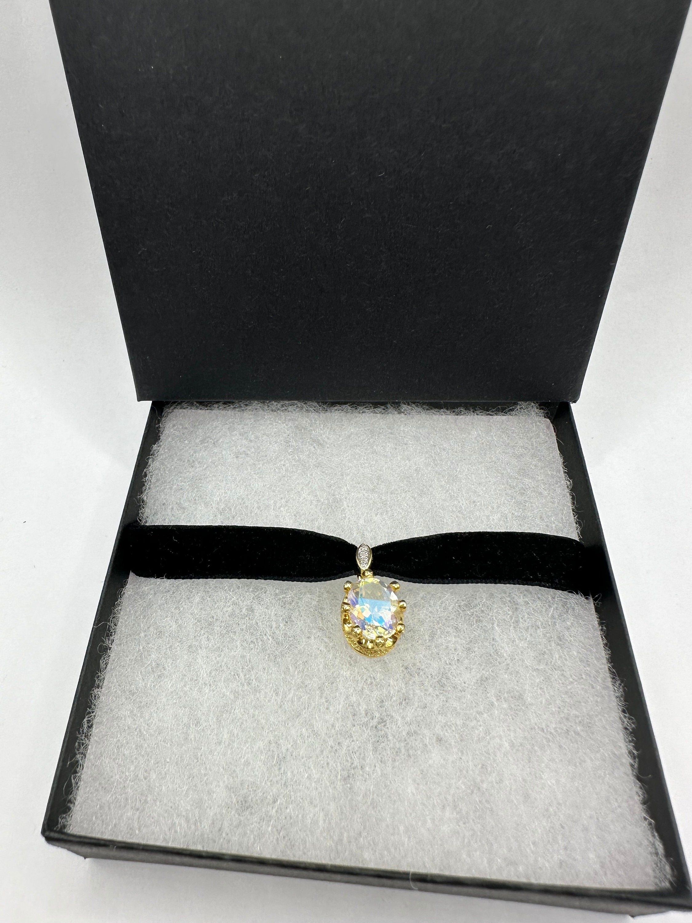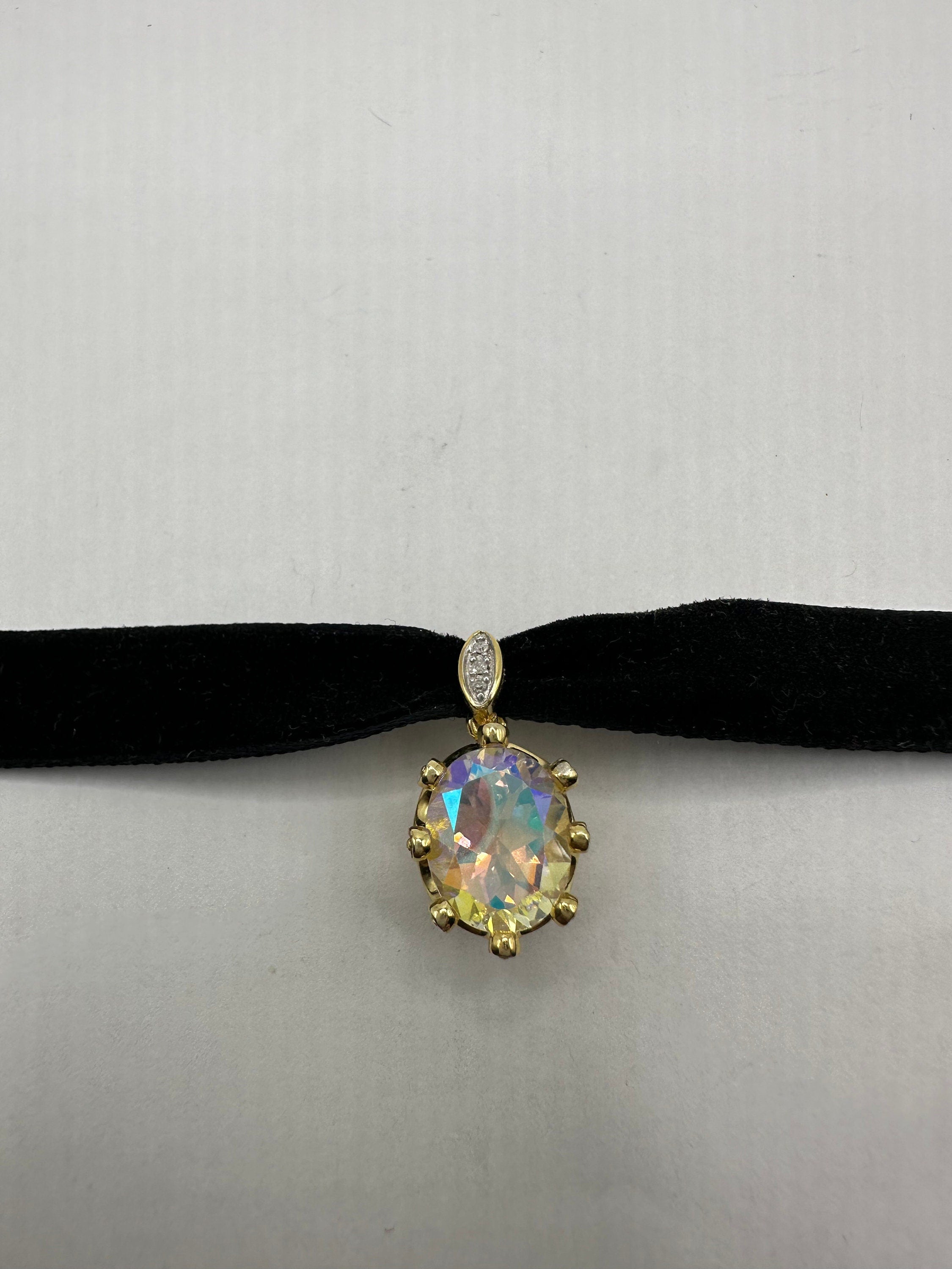 Vintage Golden Velvet Choker Necklace 925 Sterling Silver White Mystic Topaz