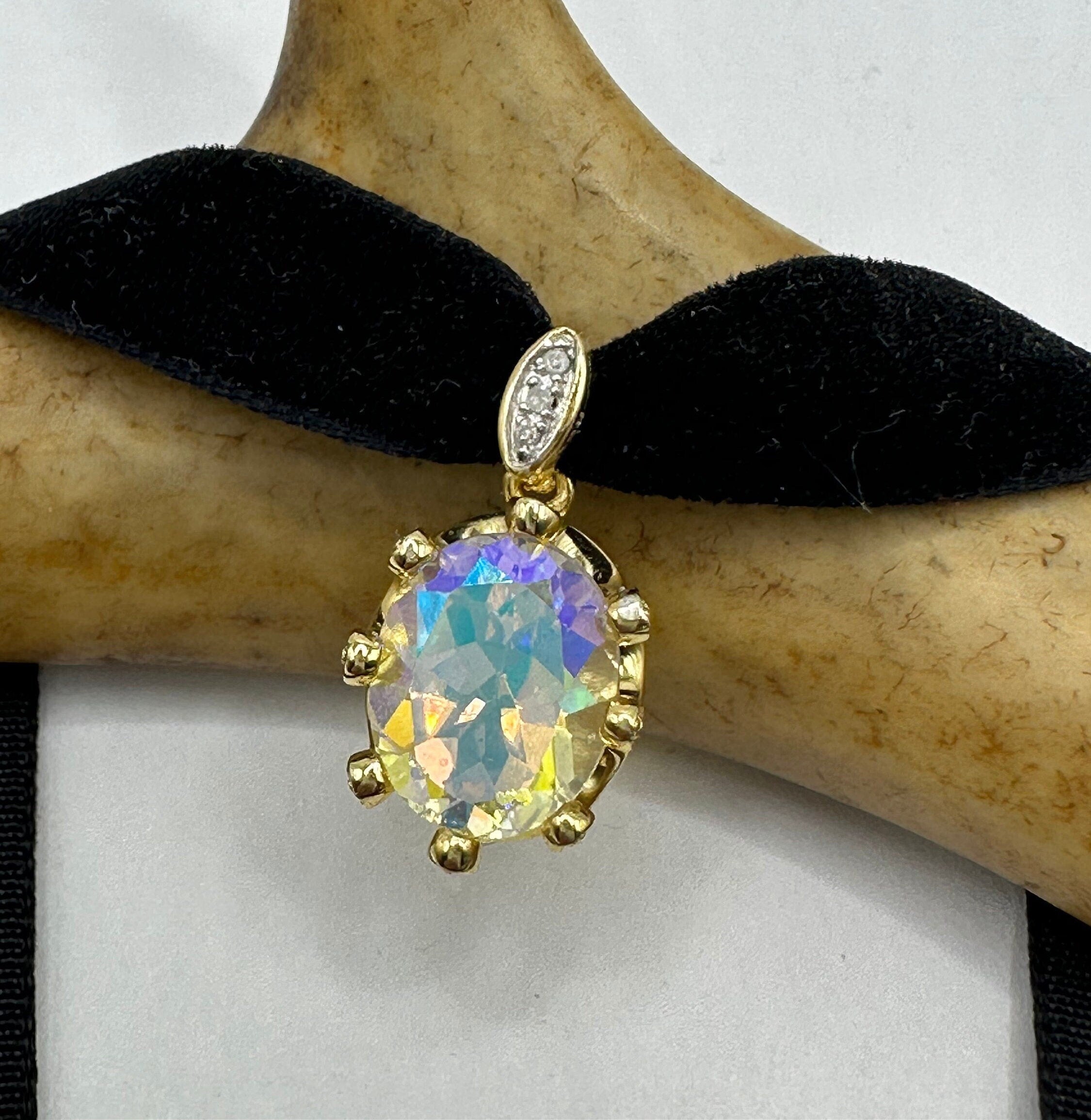 Vintage choker golden 925 sterling silver Huge center of purple clear mystic topaz surrounded by white sapphire Hand refurbished Thank... Read more