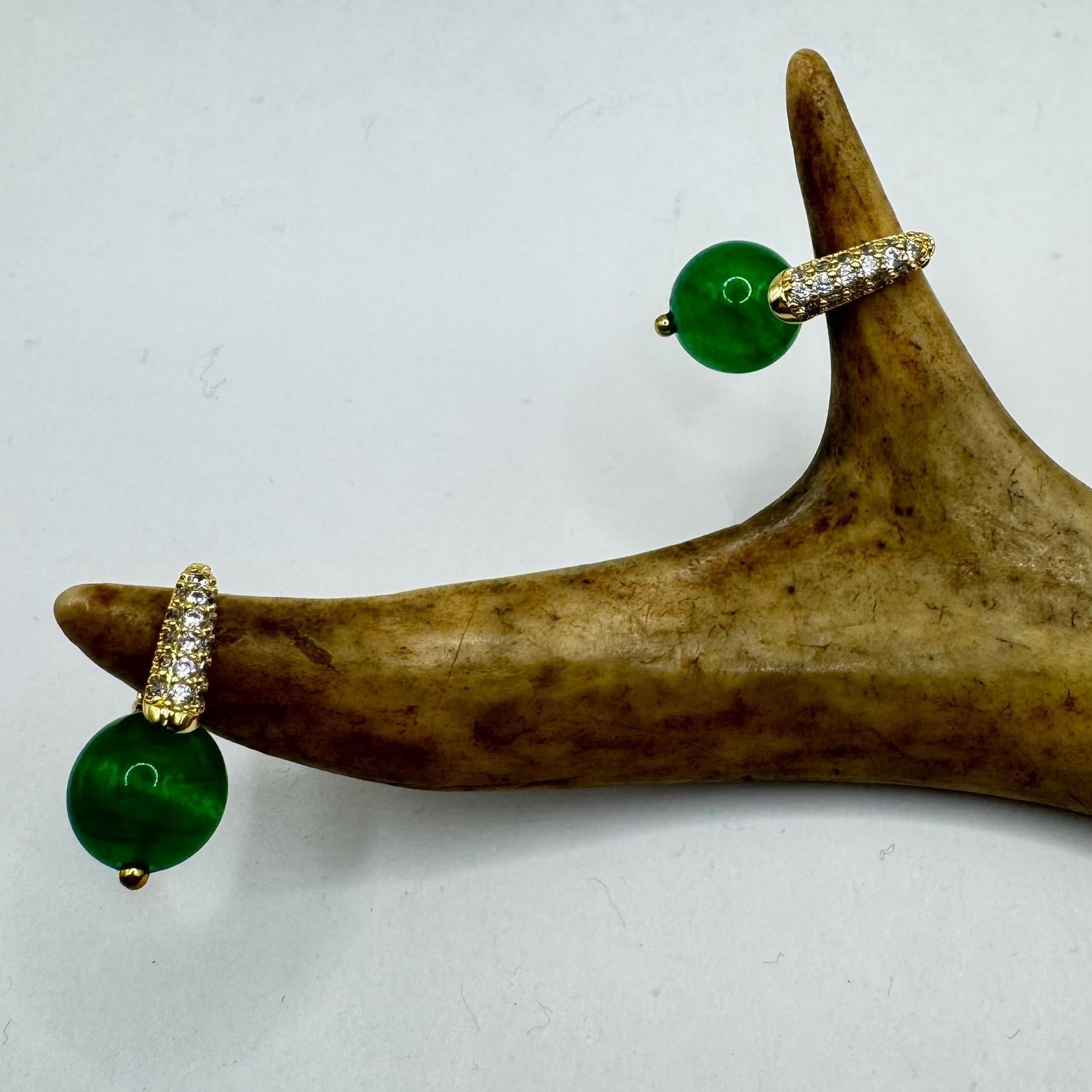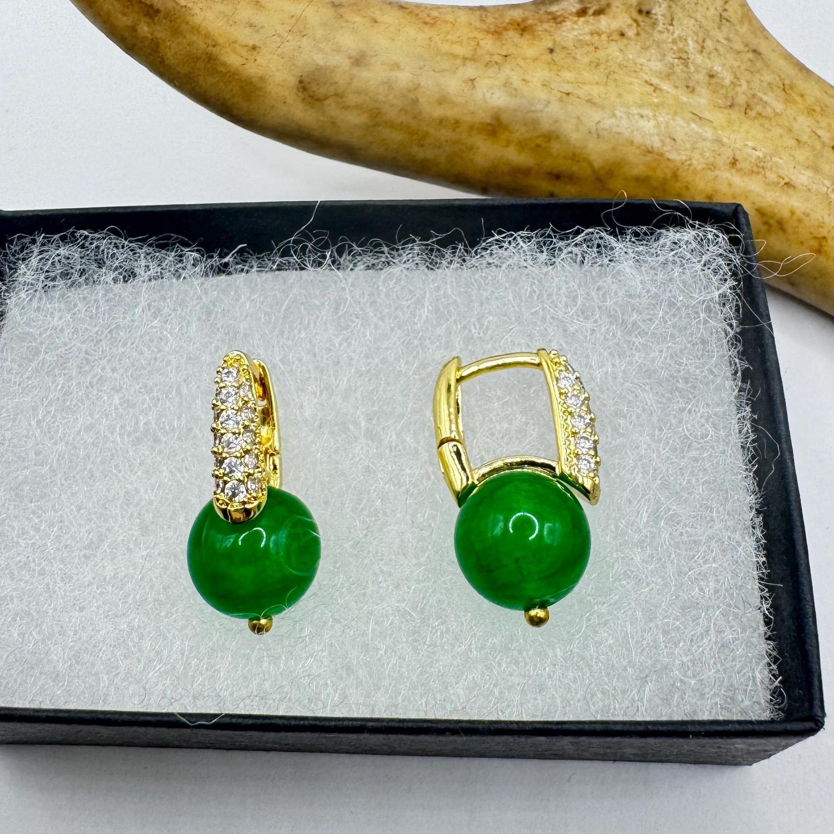 Vintage Green Jade Dangle Lucky Gold Earrings
