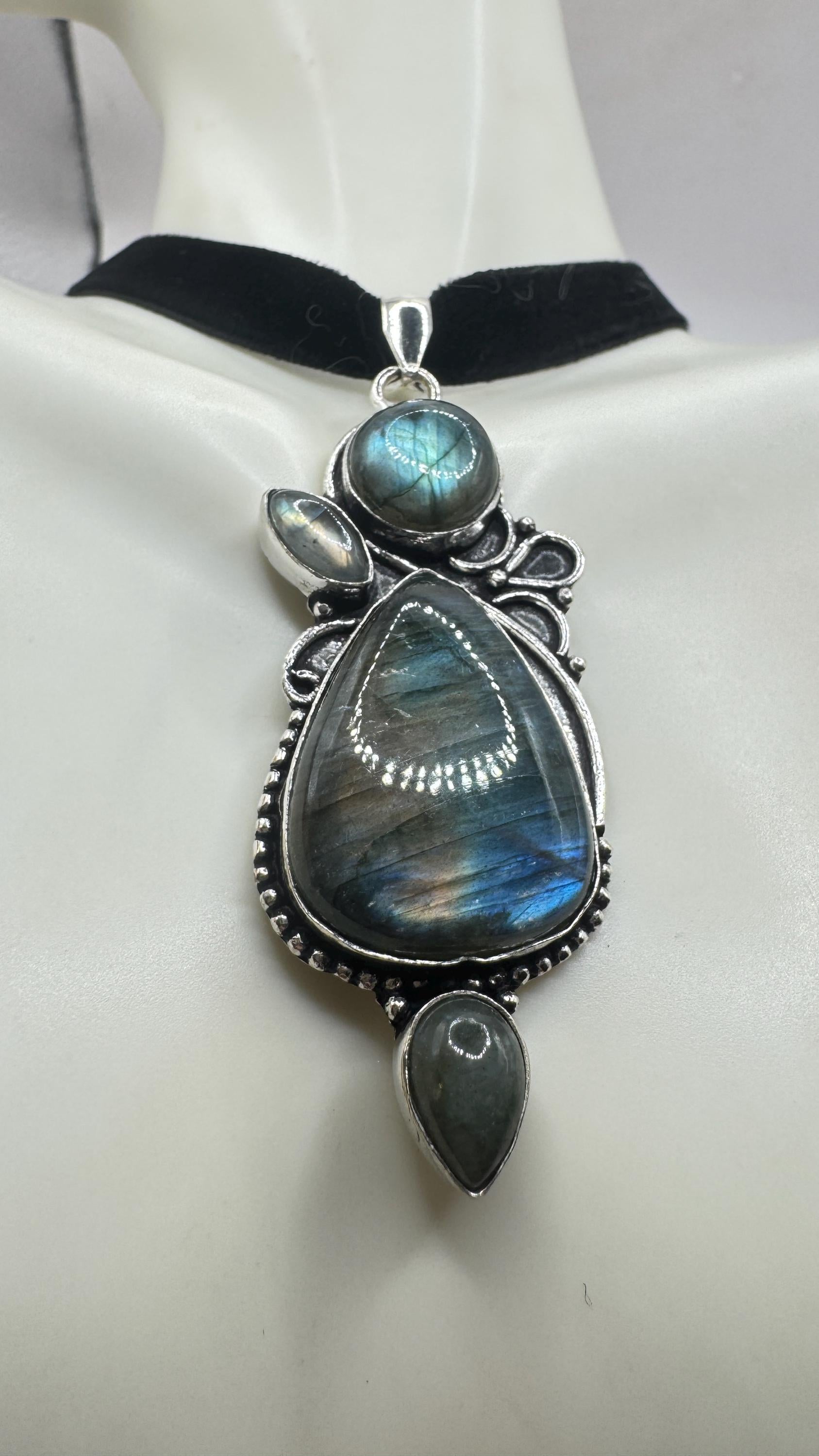 Vintage green rainbow labradorite choker necklace Rare color stone. Bronze with silver finish NOT 925 Sterling Silver very chunky piece... Read more