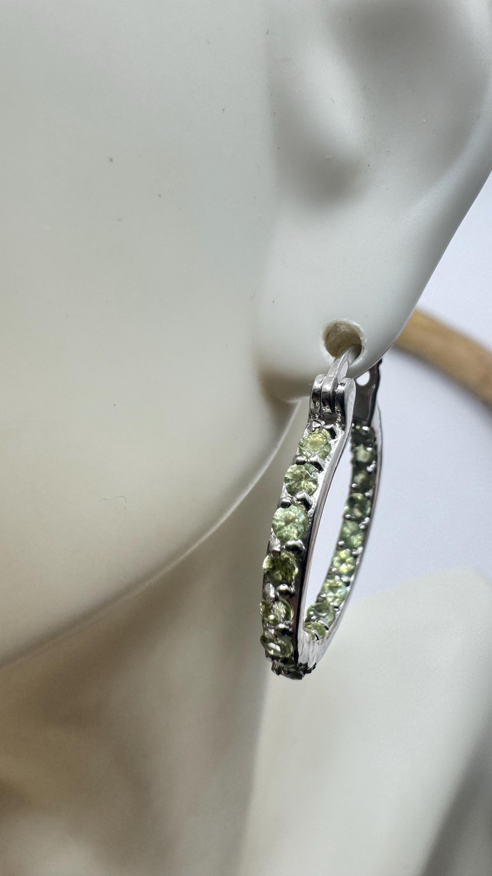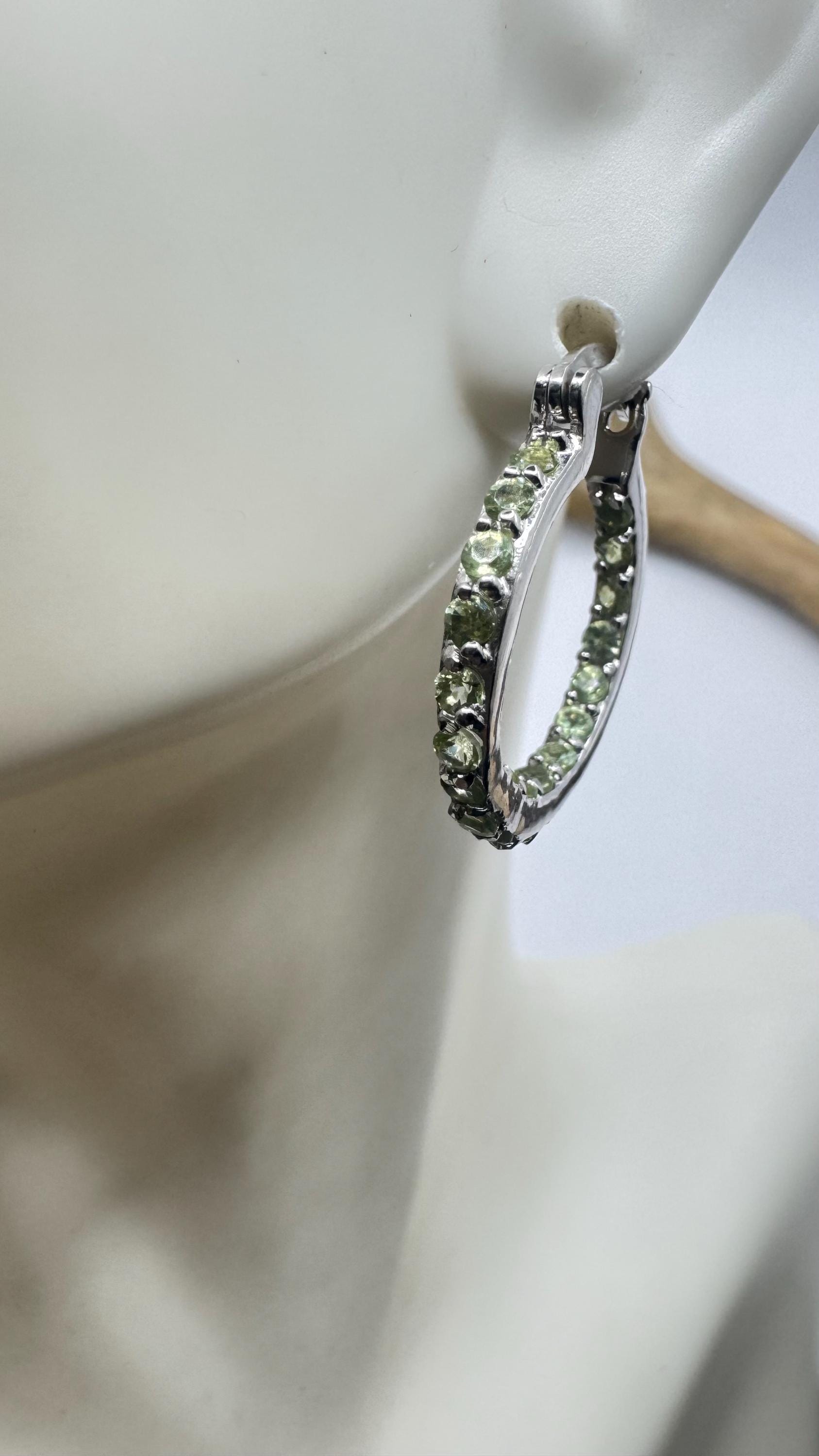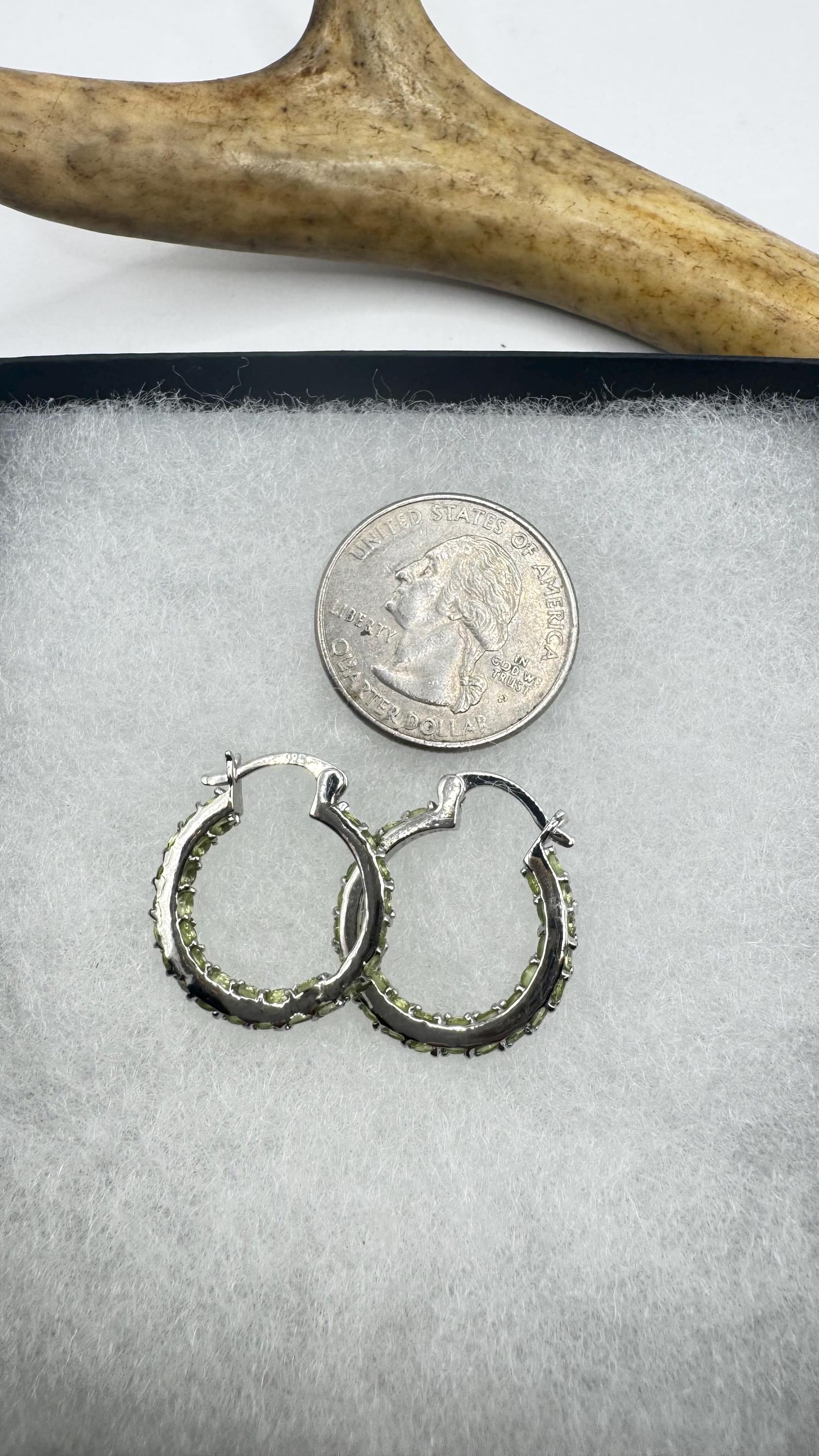 Vintage Green Peridot 925 Sterling Silver Hoop Earrings